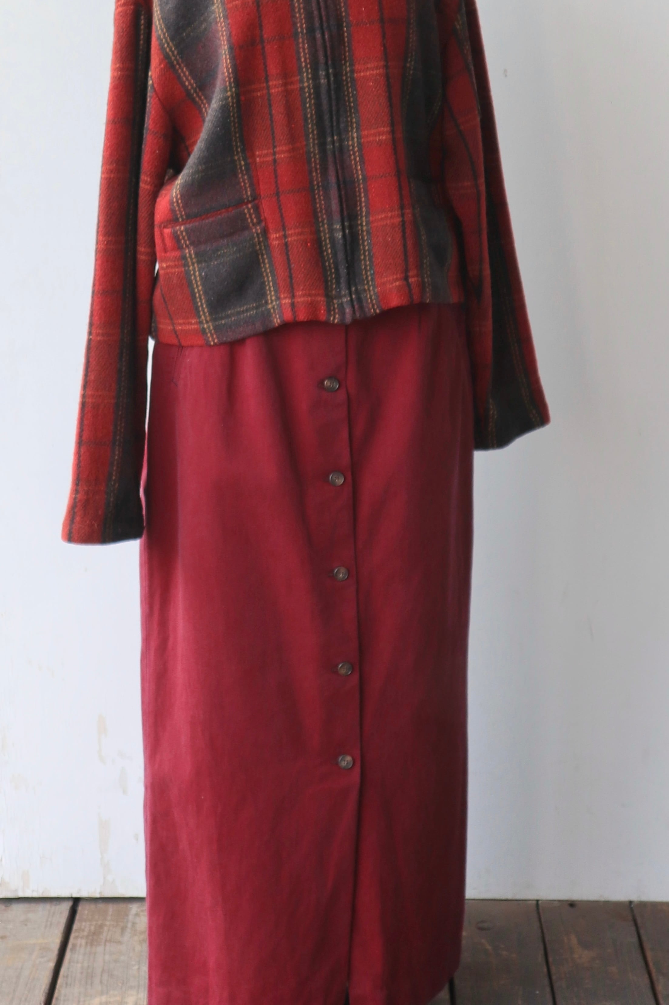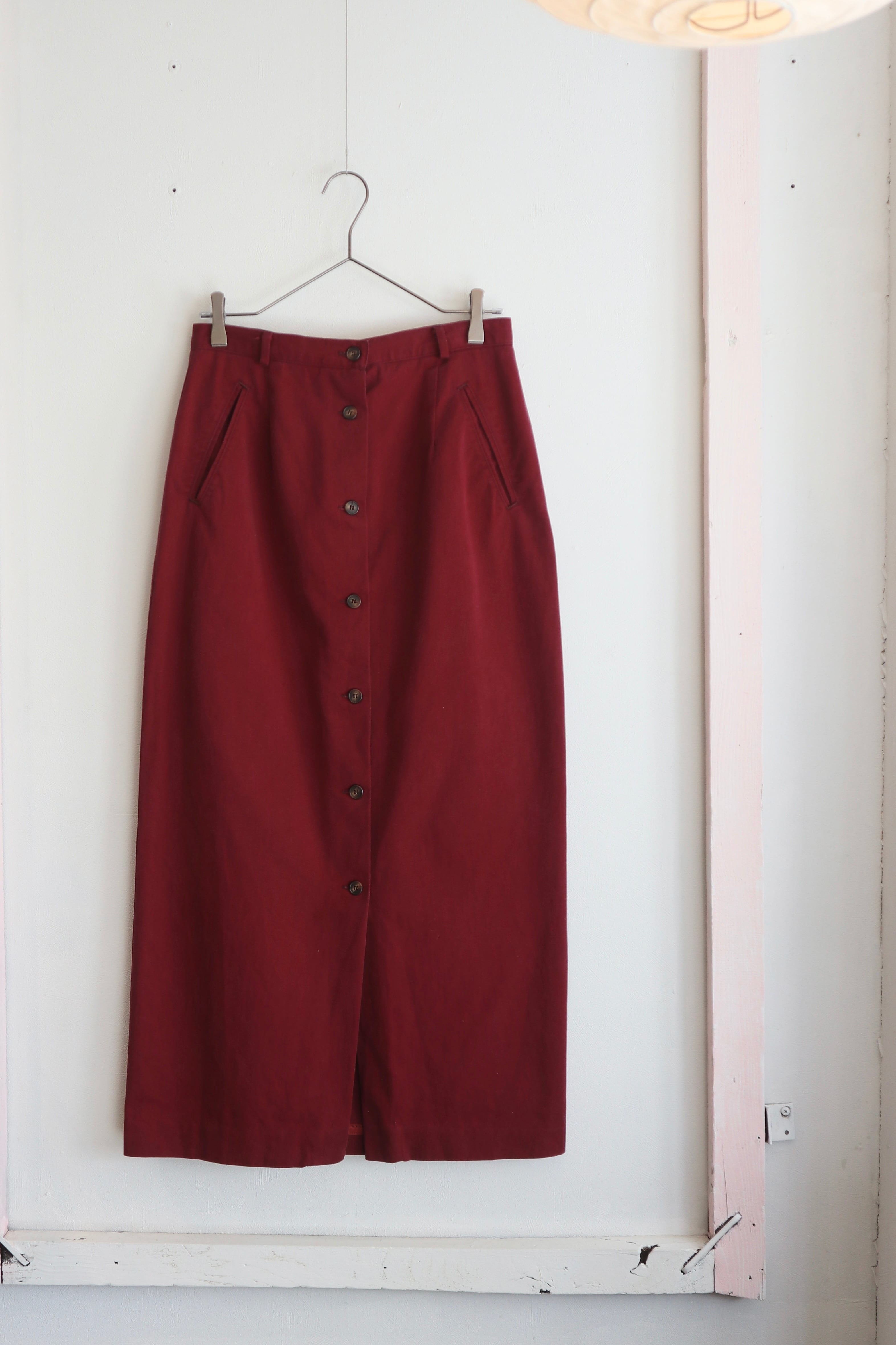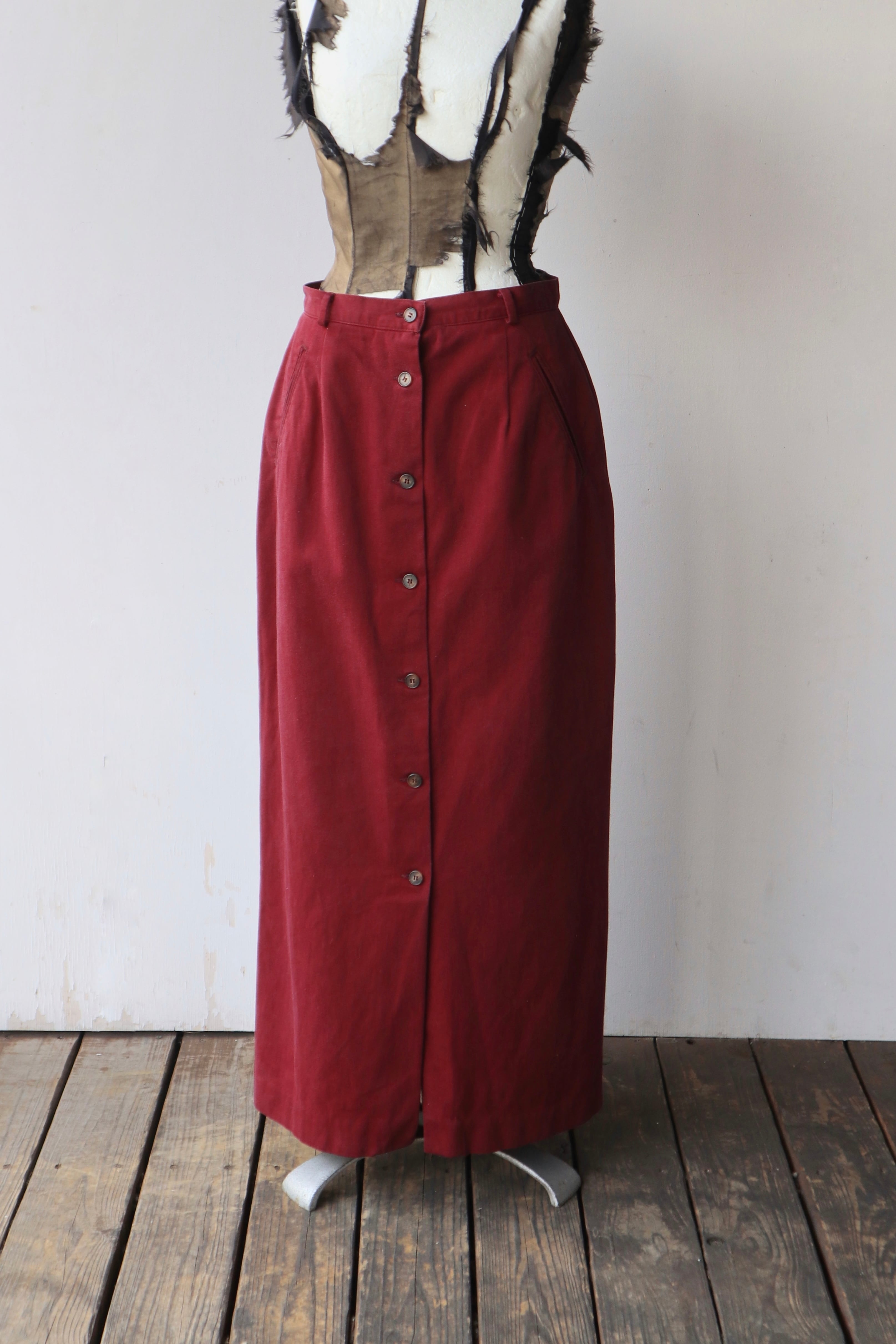 フロントボタン仕様のマキシスカート。