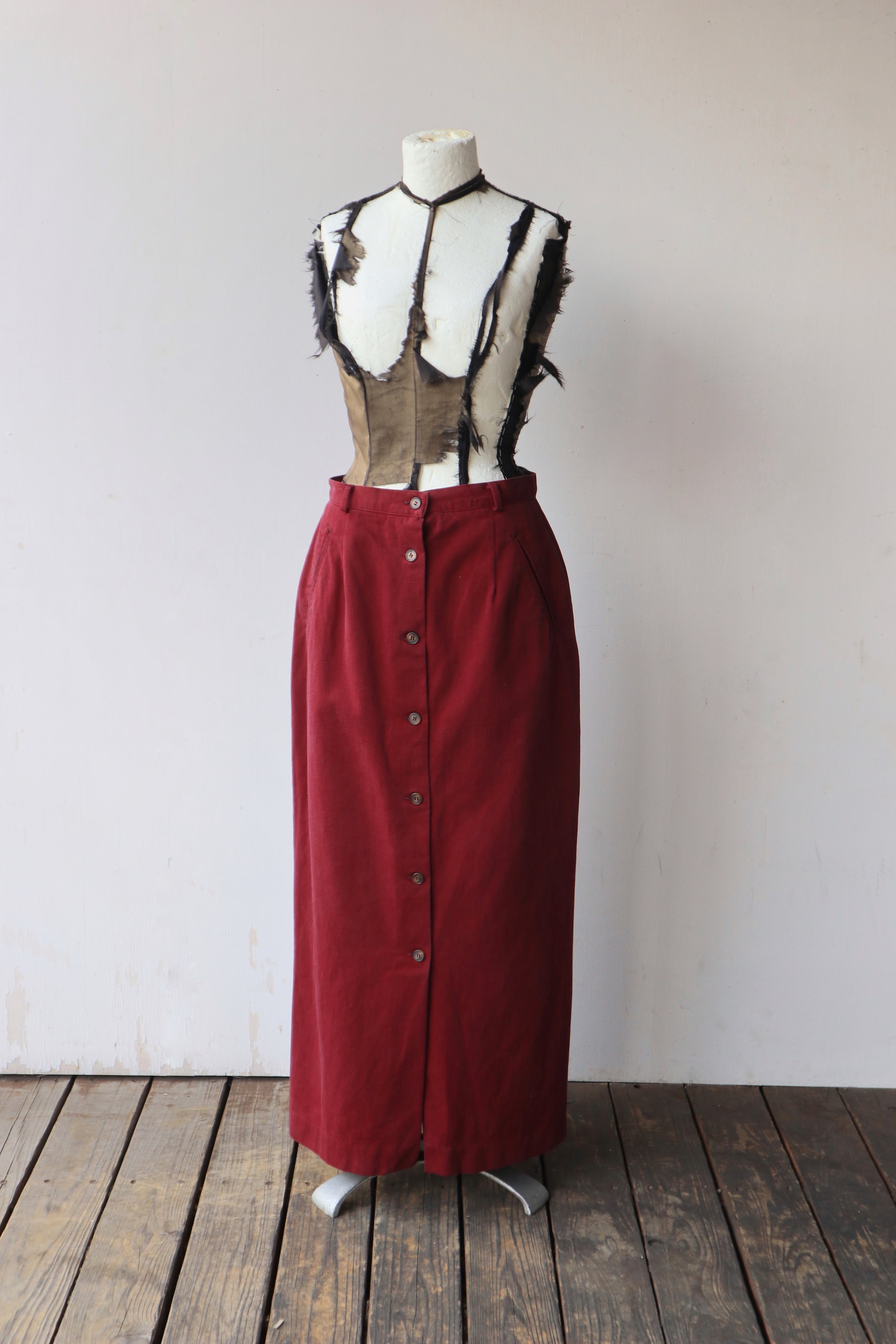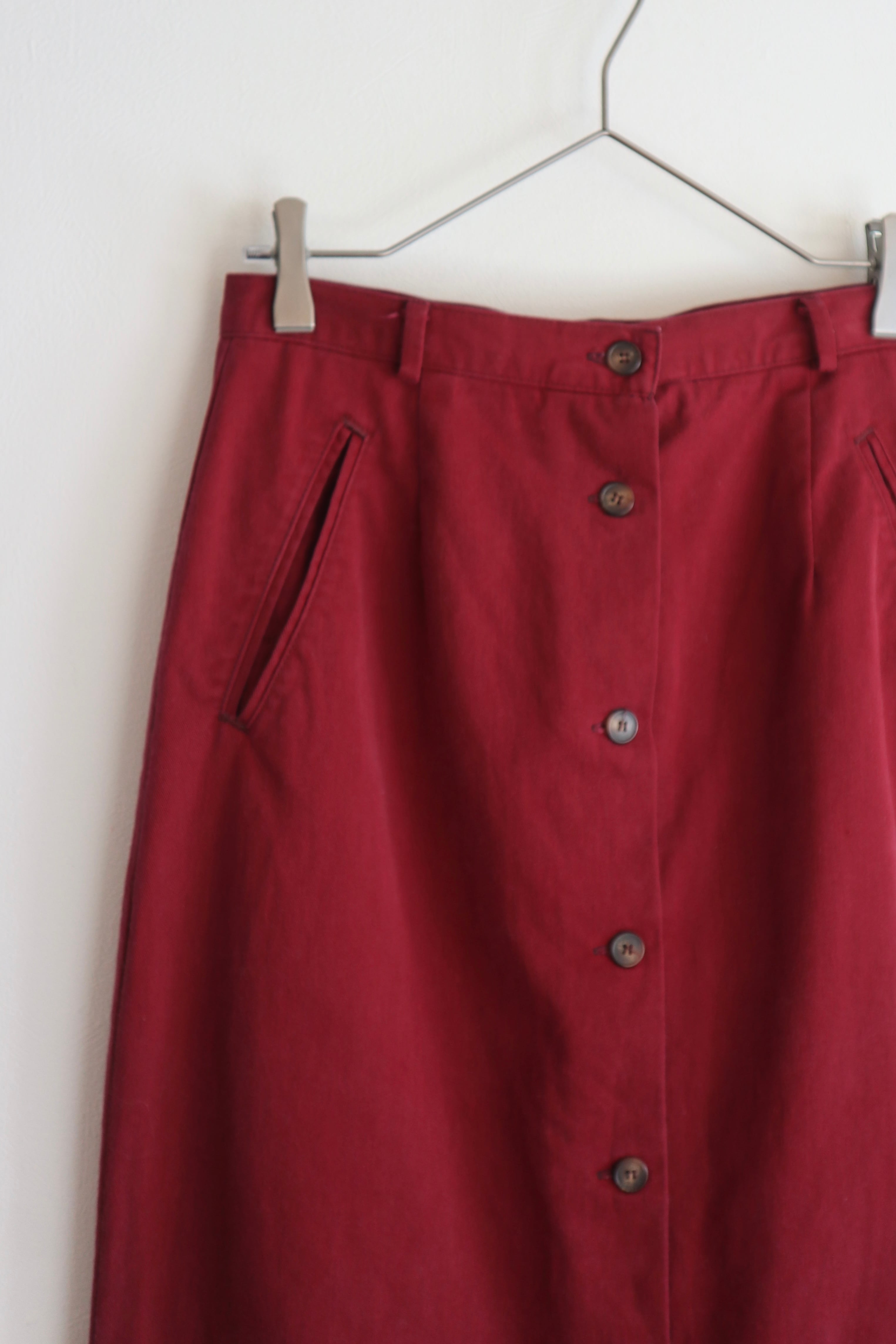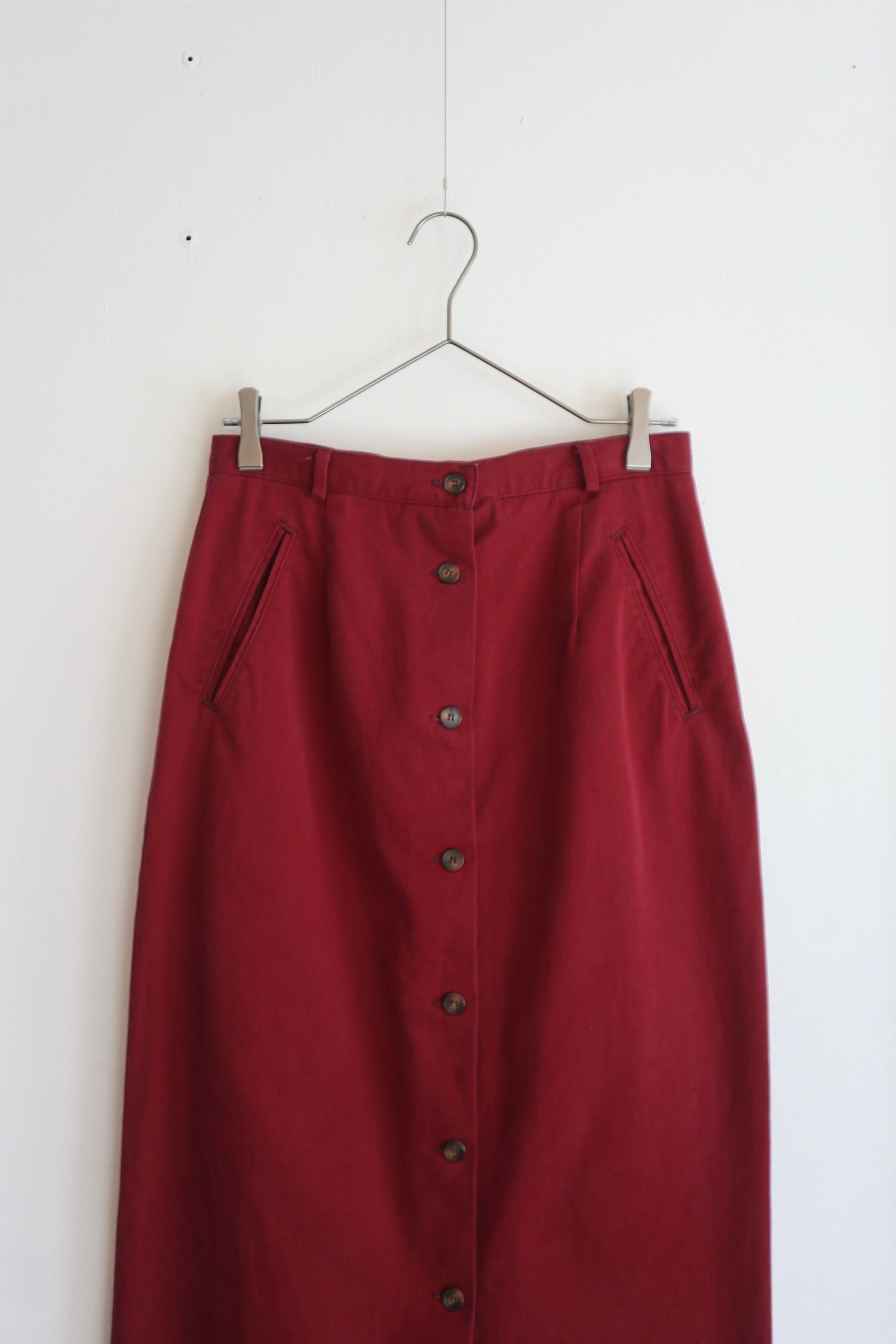 フロントボタン仕様のマキシスカート。