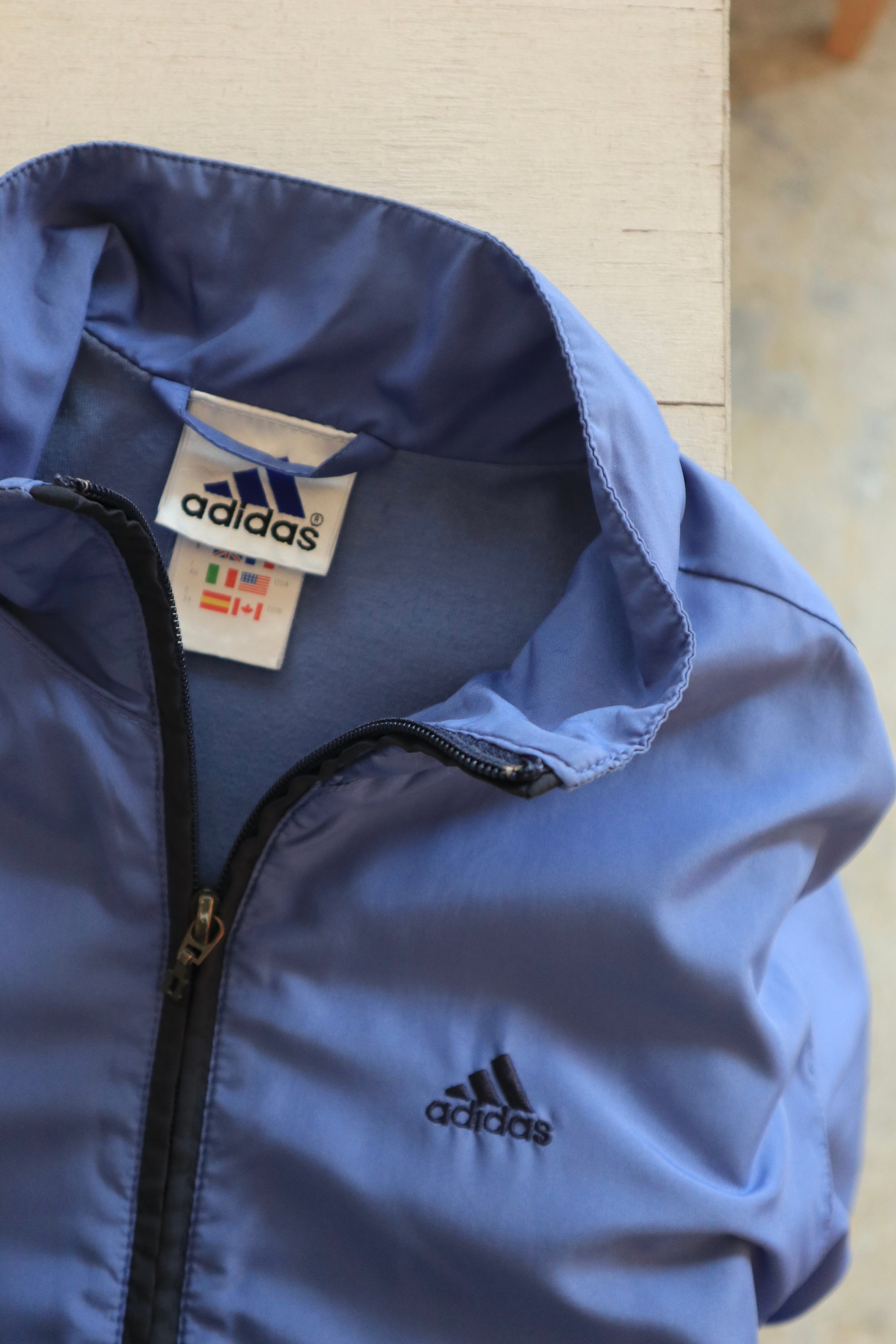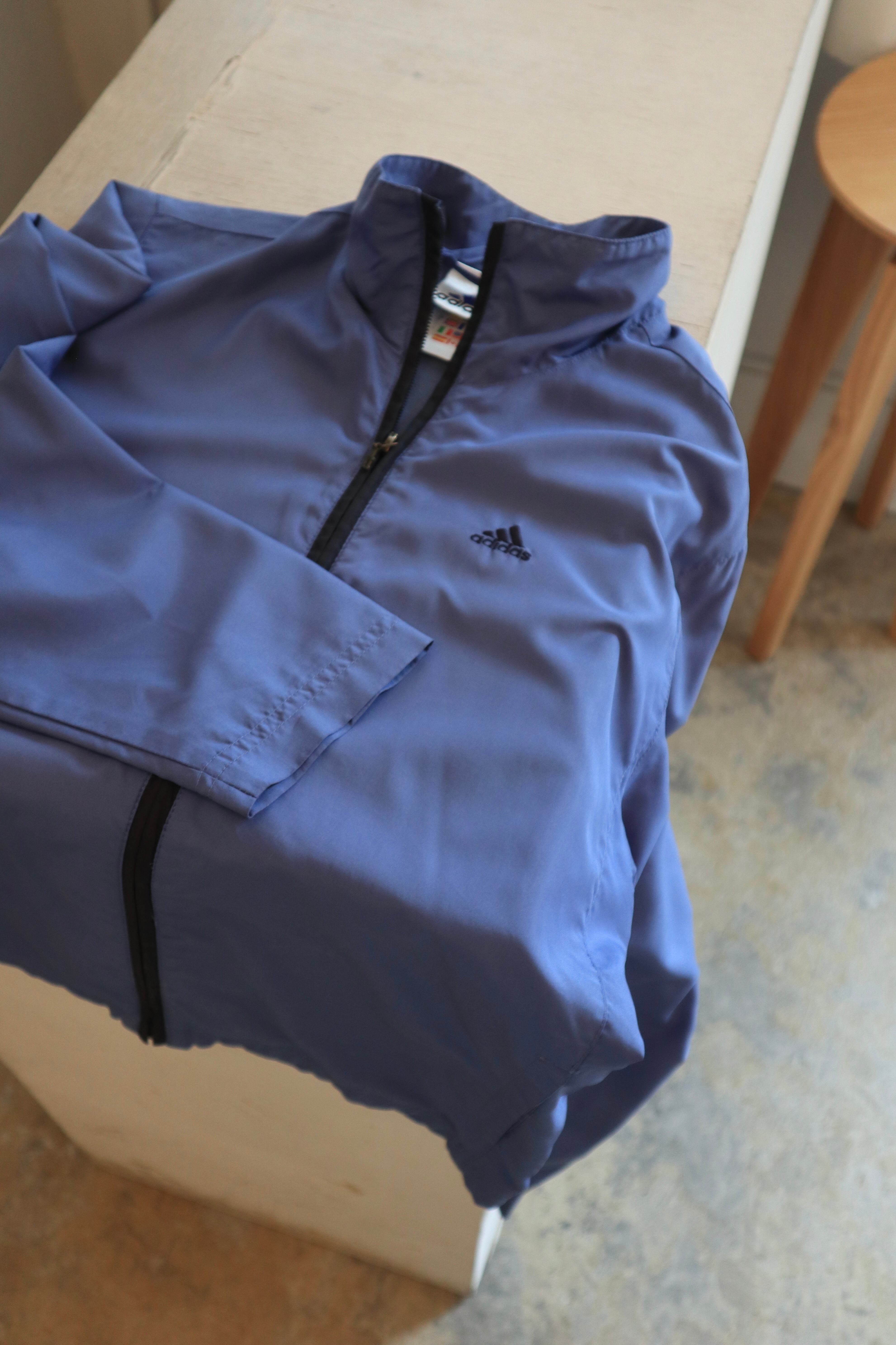 [soft blue adidas nylon zip jacket]