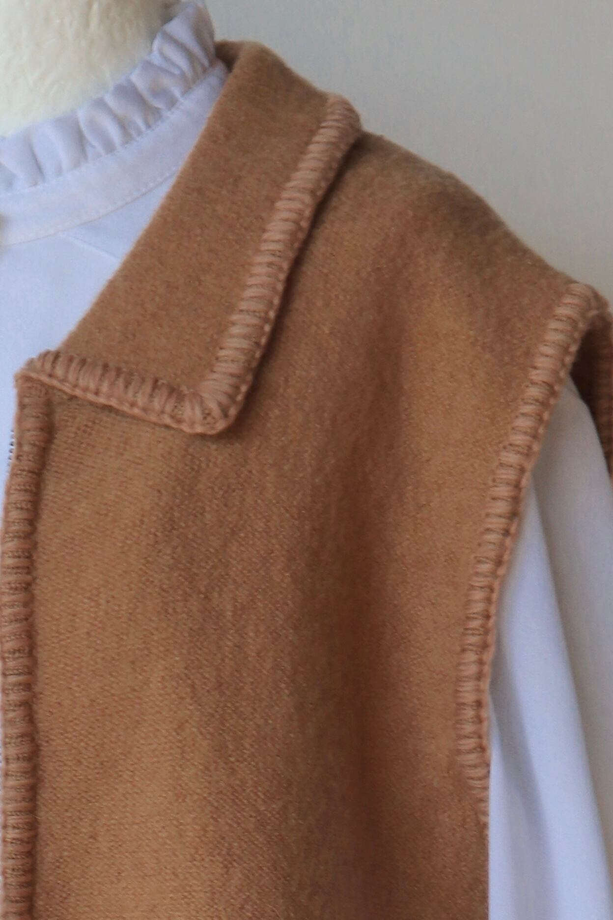 [beige stitch zip wool vest]