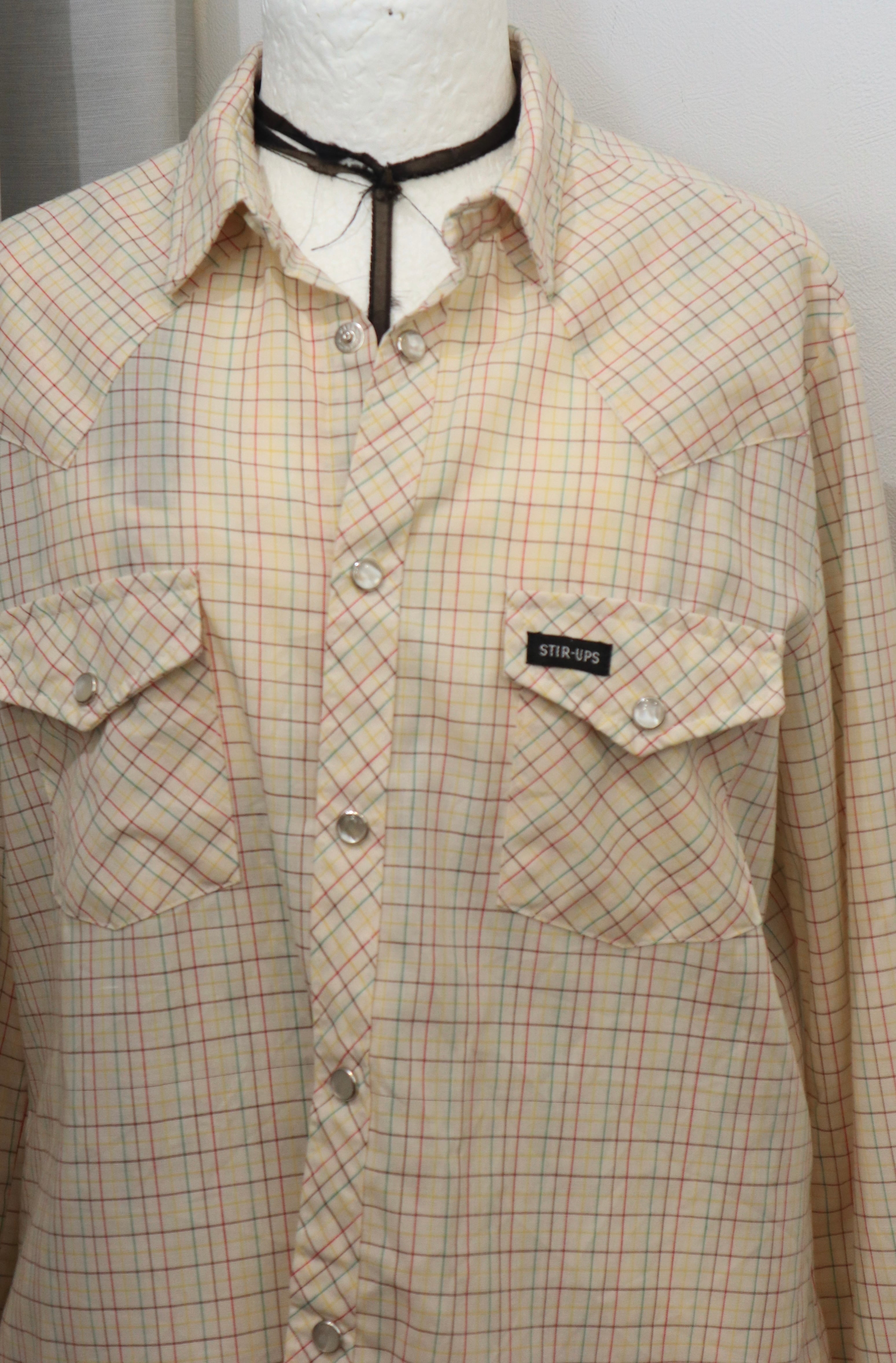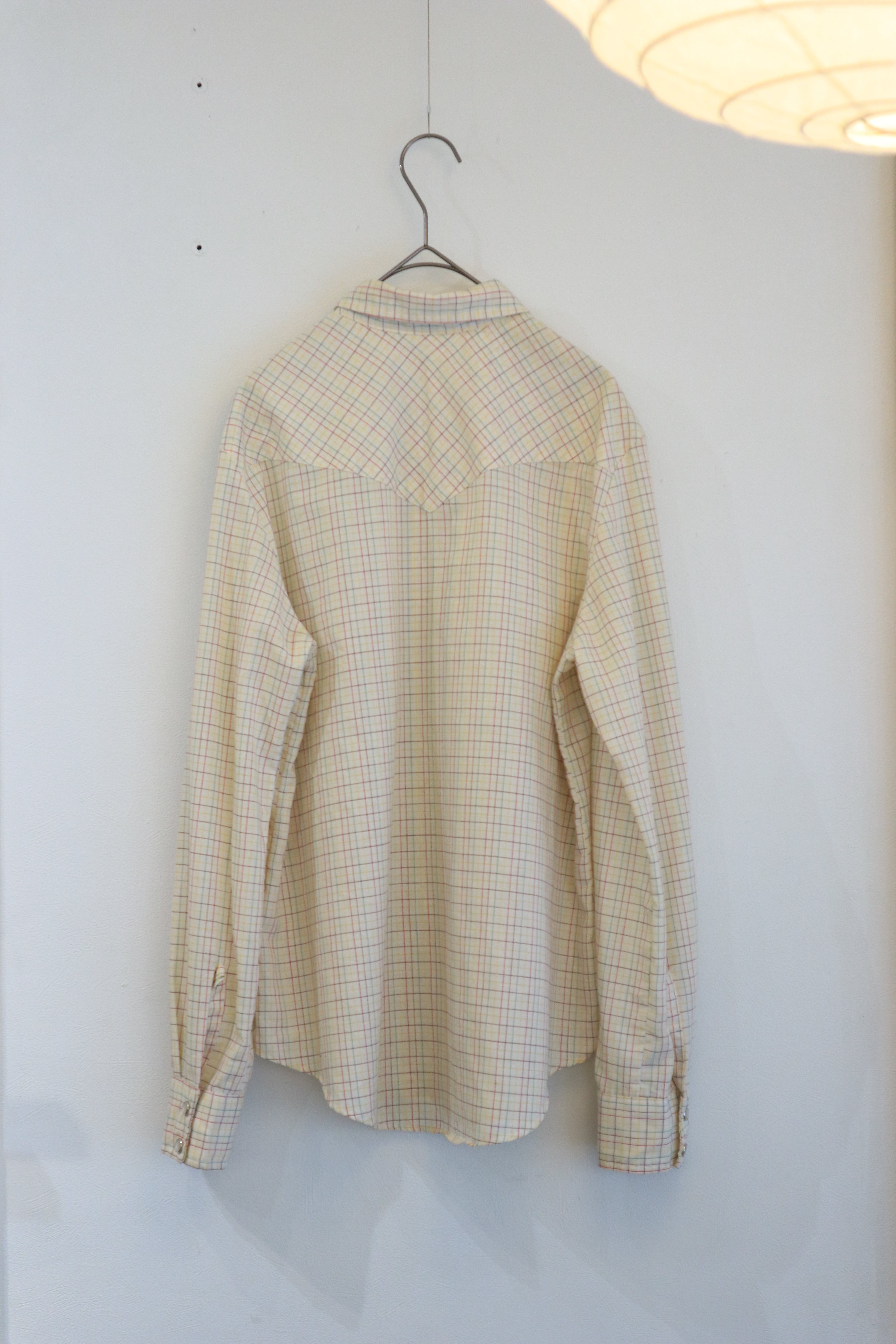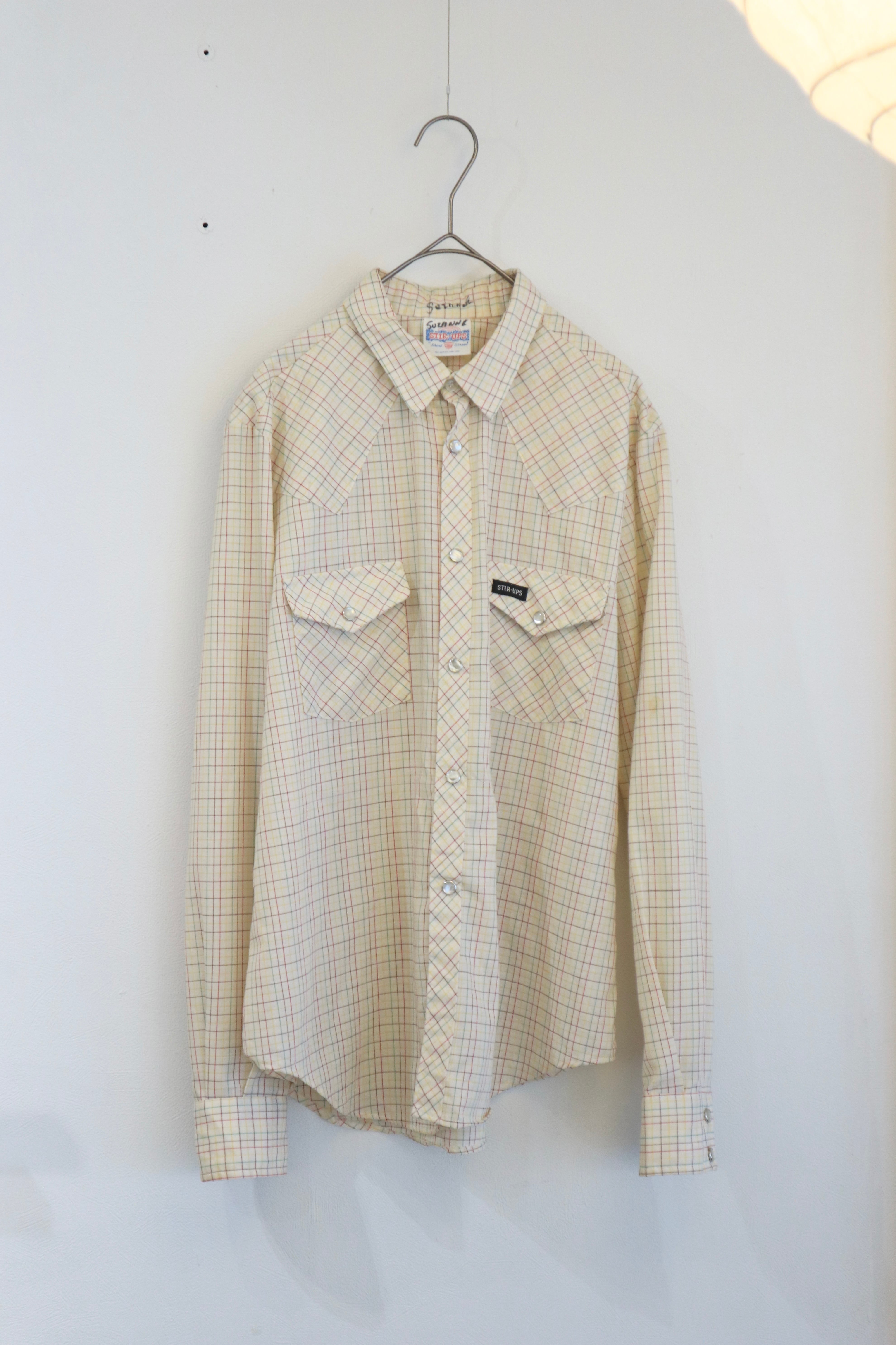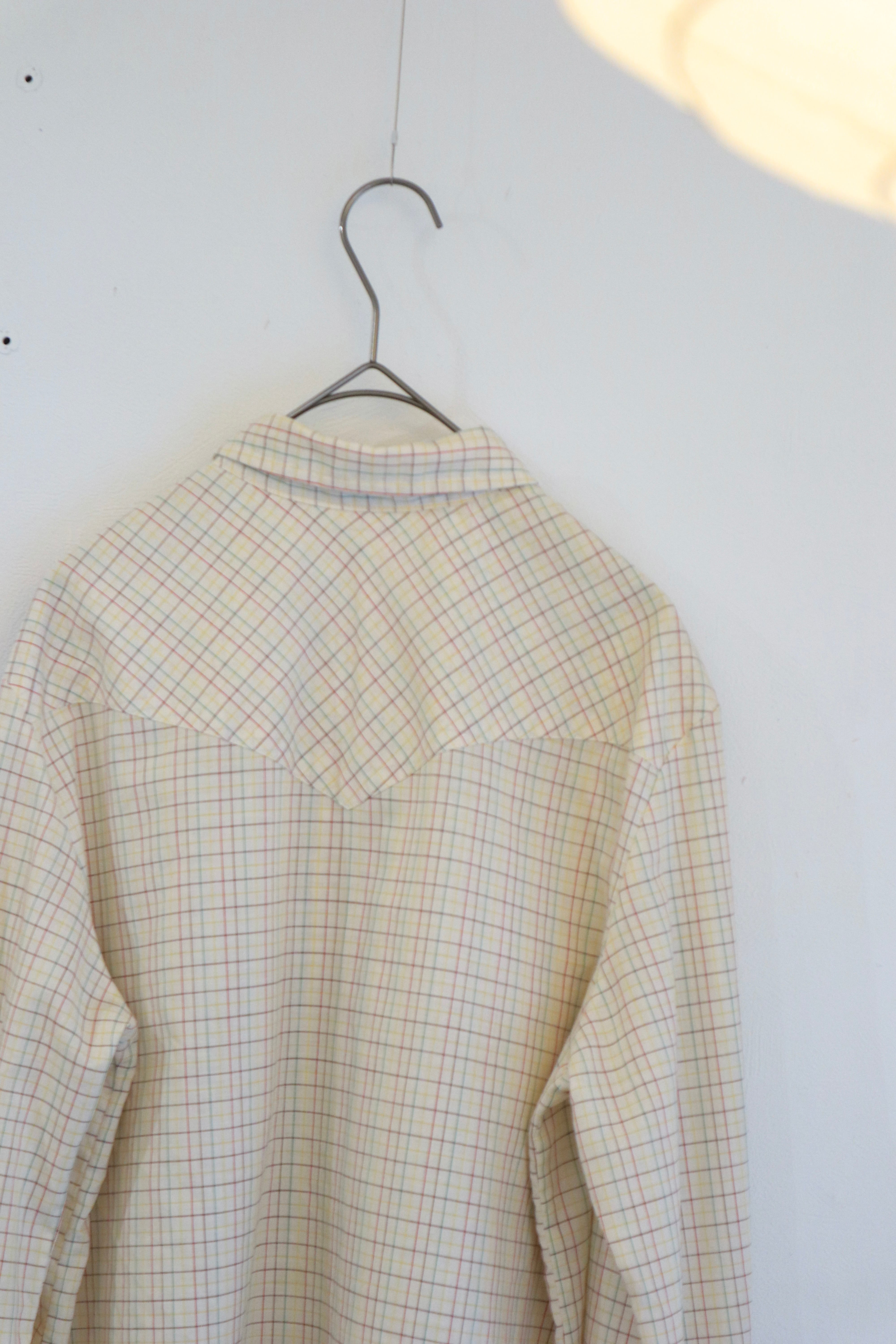 細かなチェックが重なるウエスタンシャツ。