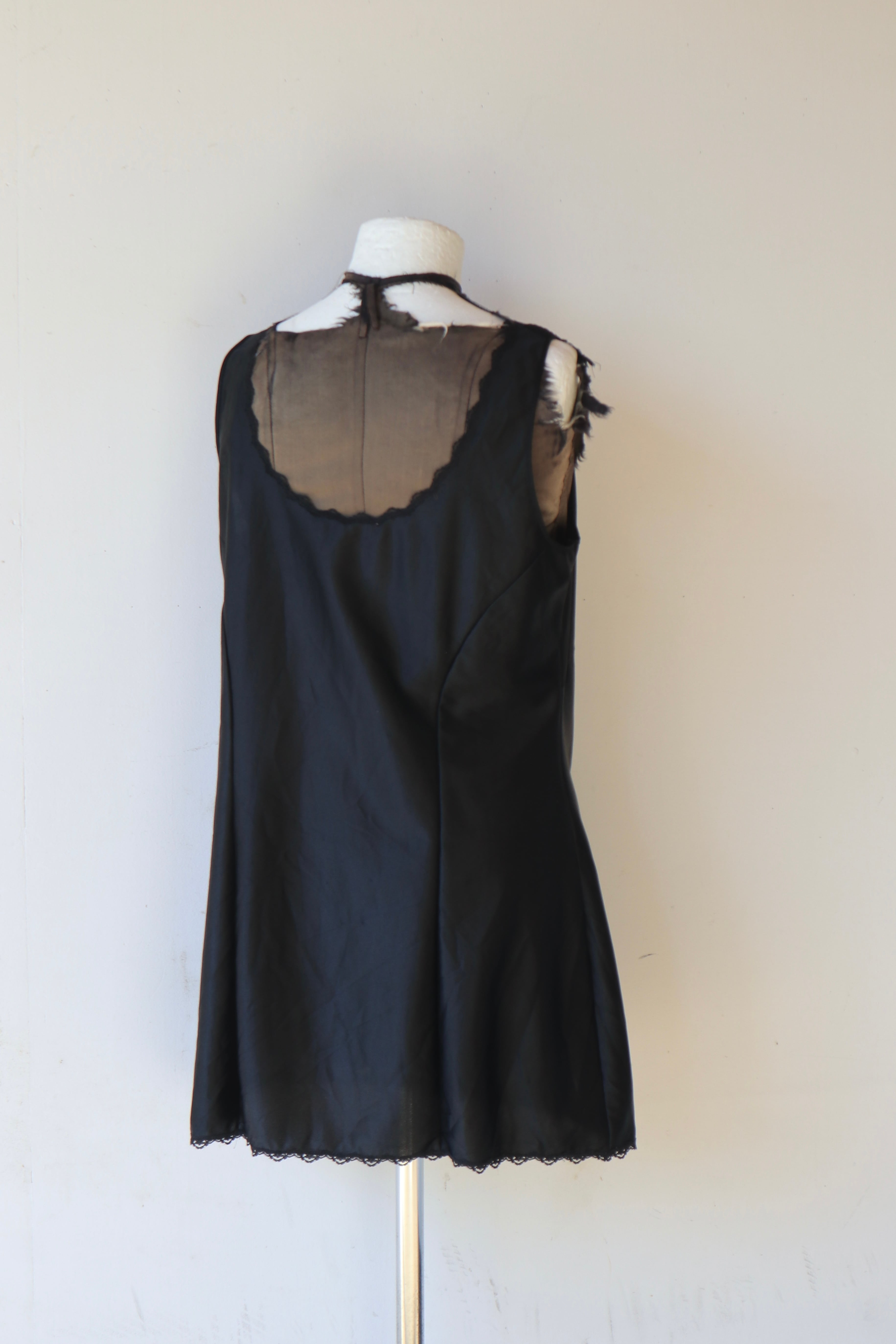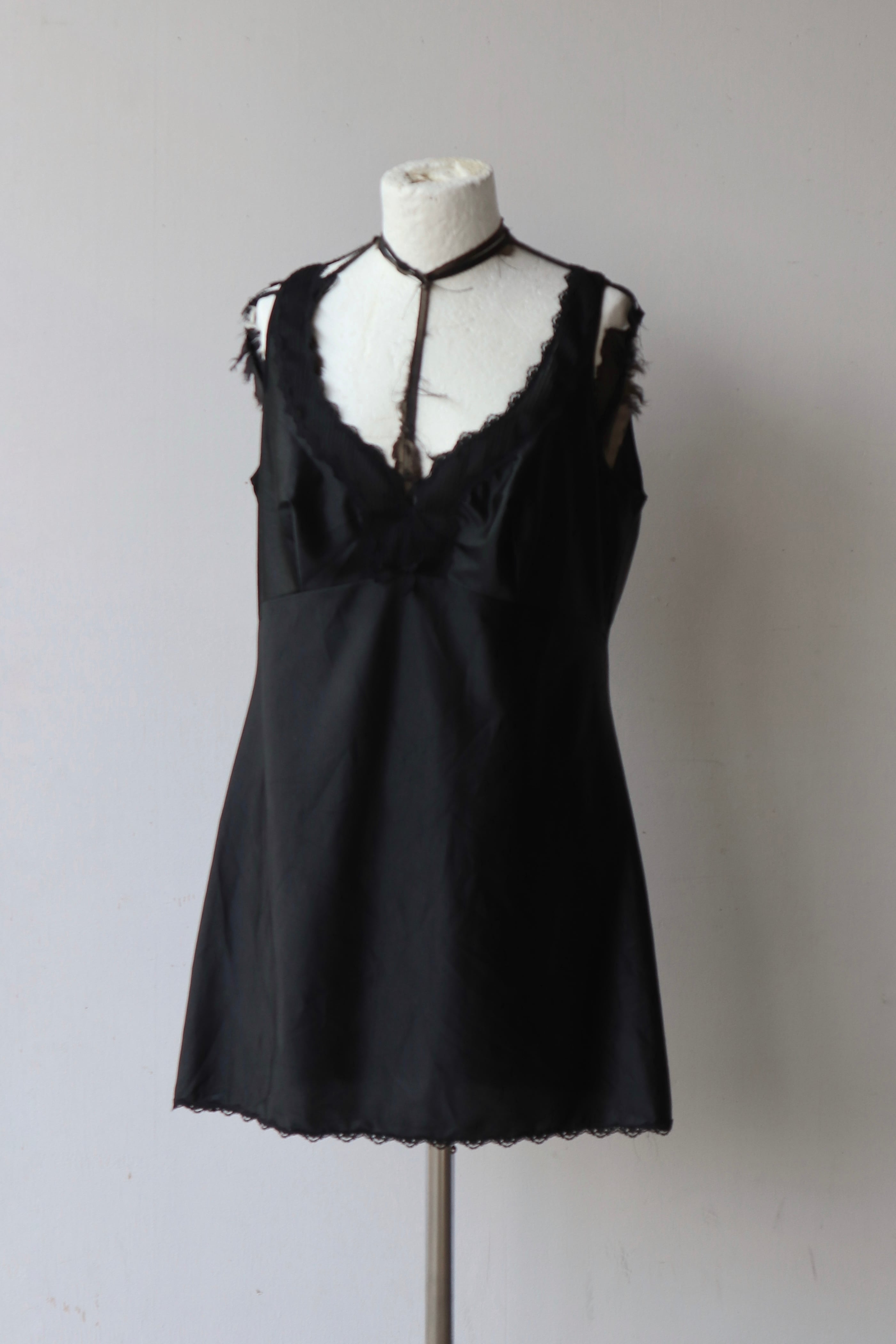 [lace satin black slip mini dress]