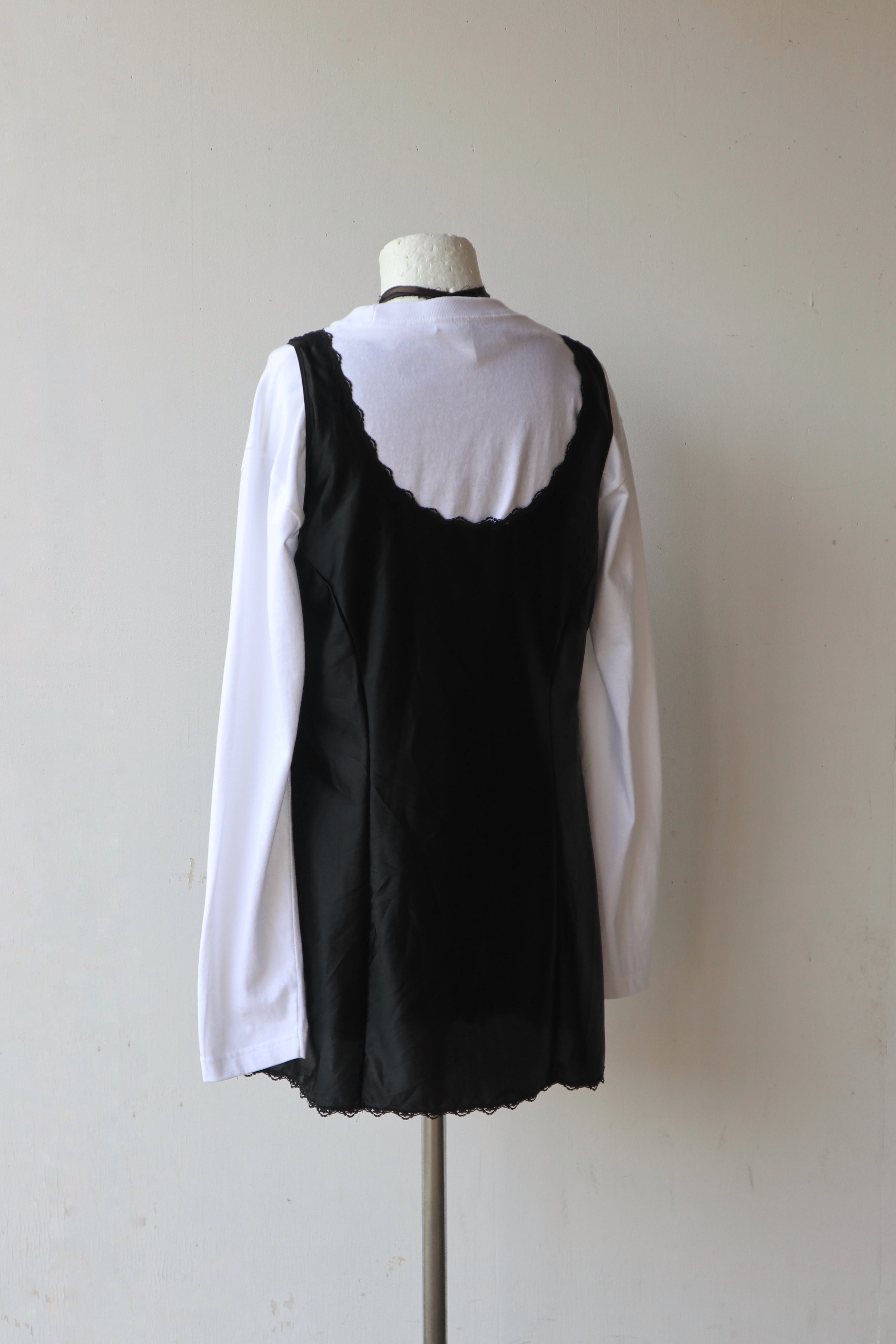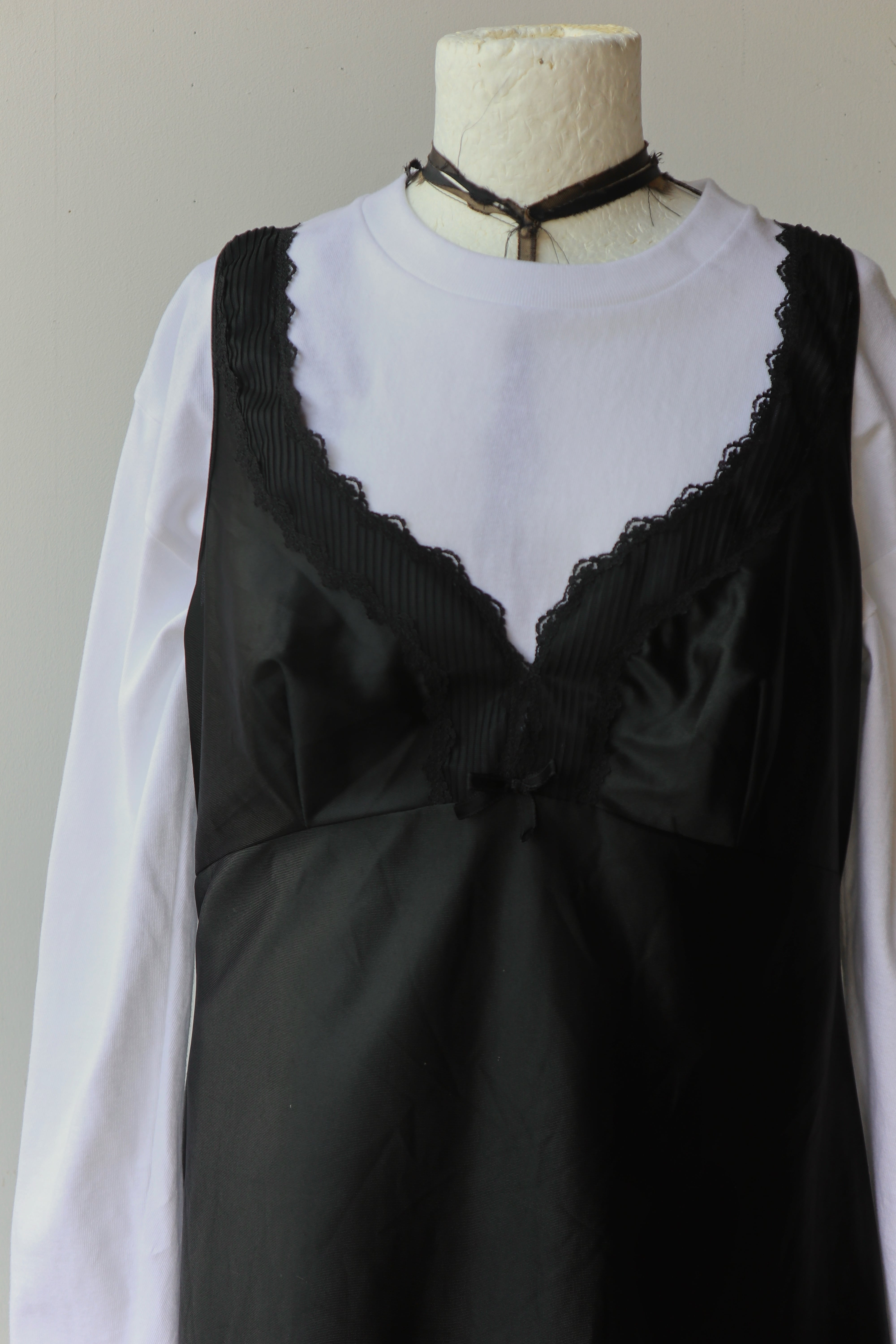 胸元と裾にレースがあしらわれた