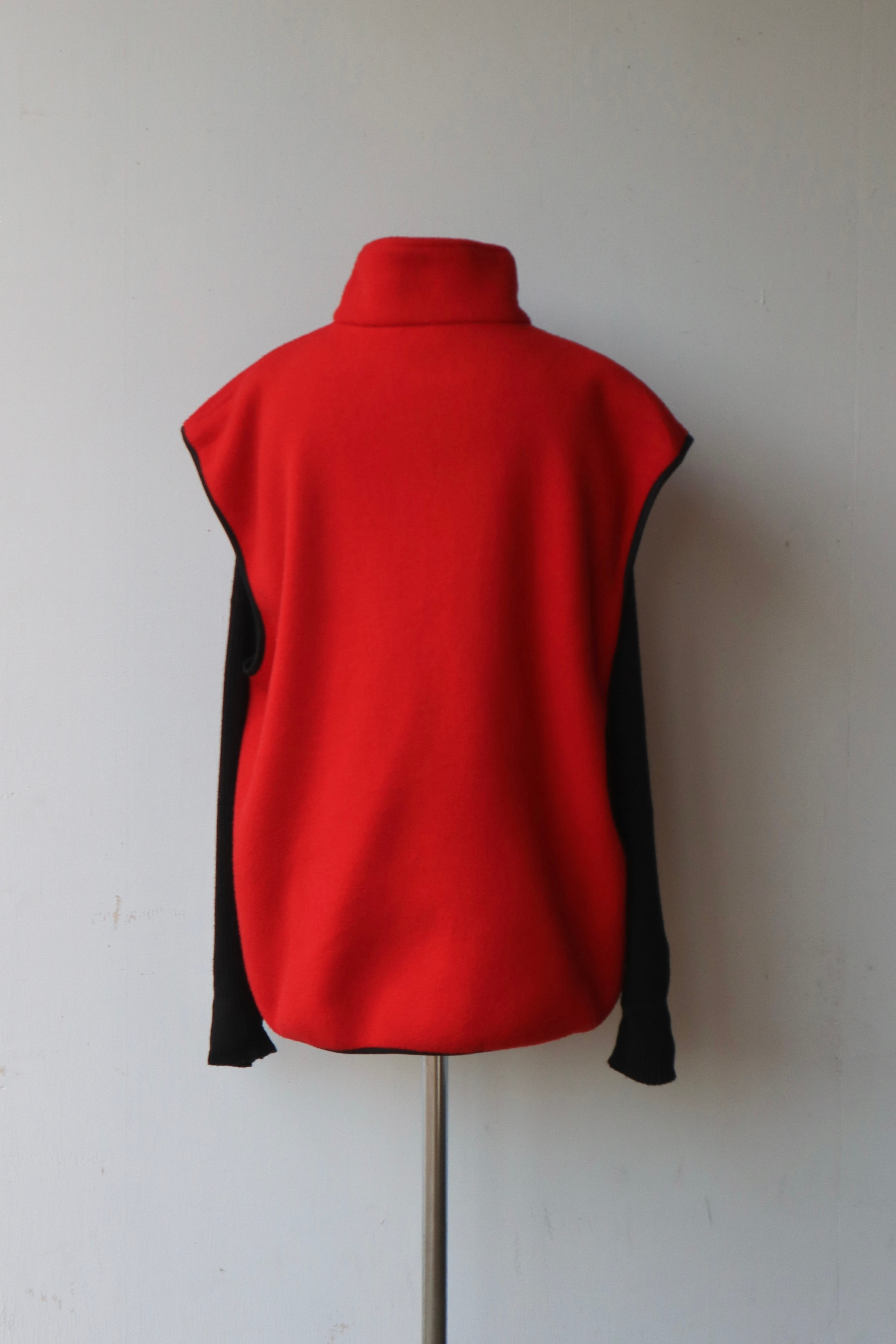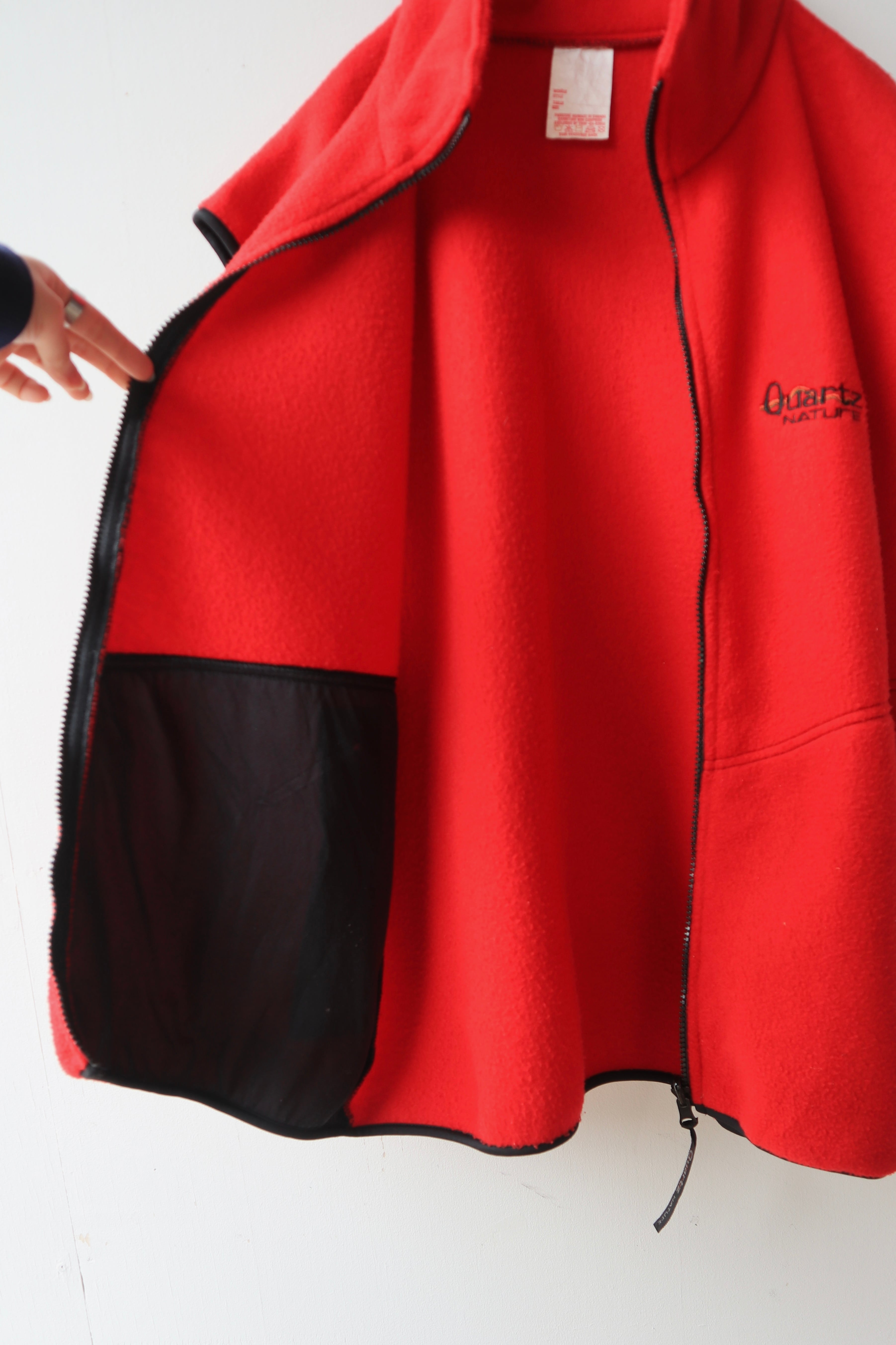 発色の良い真っ赤なフリースに、
