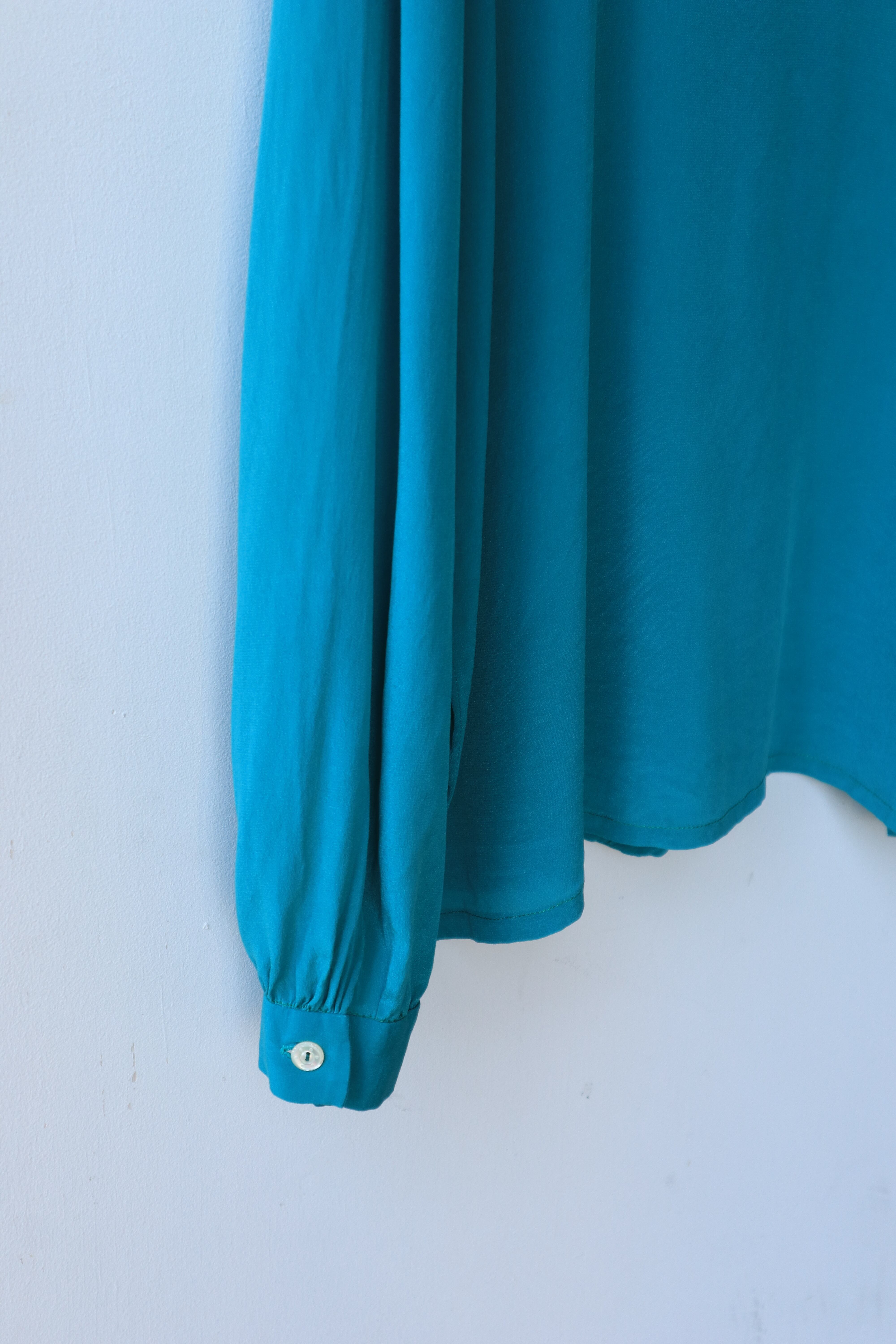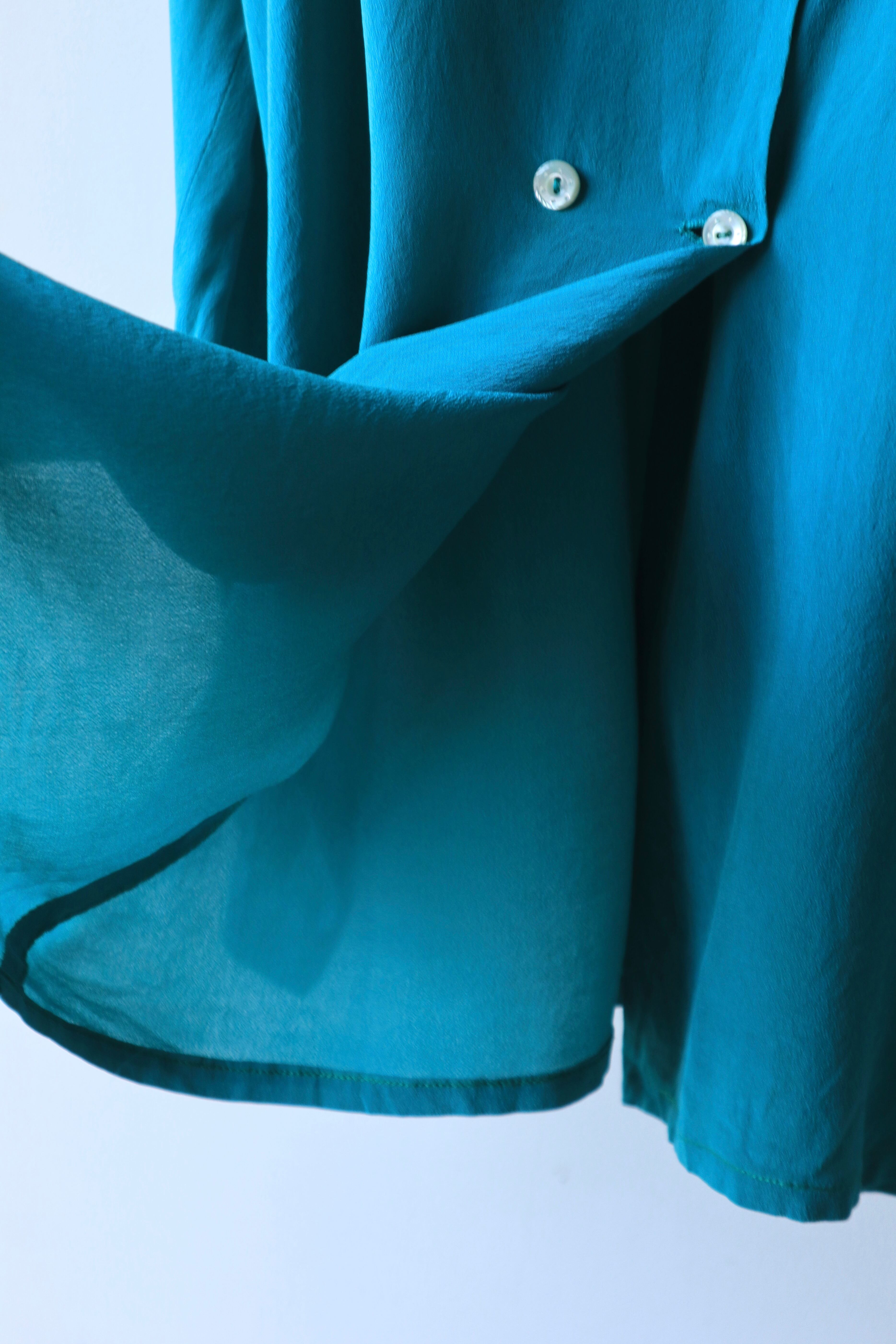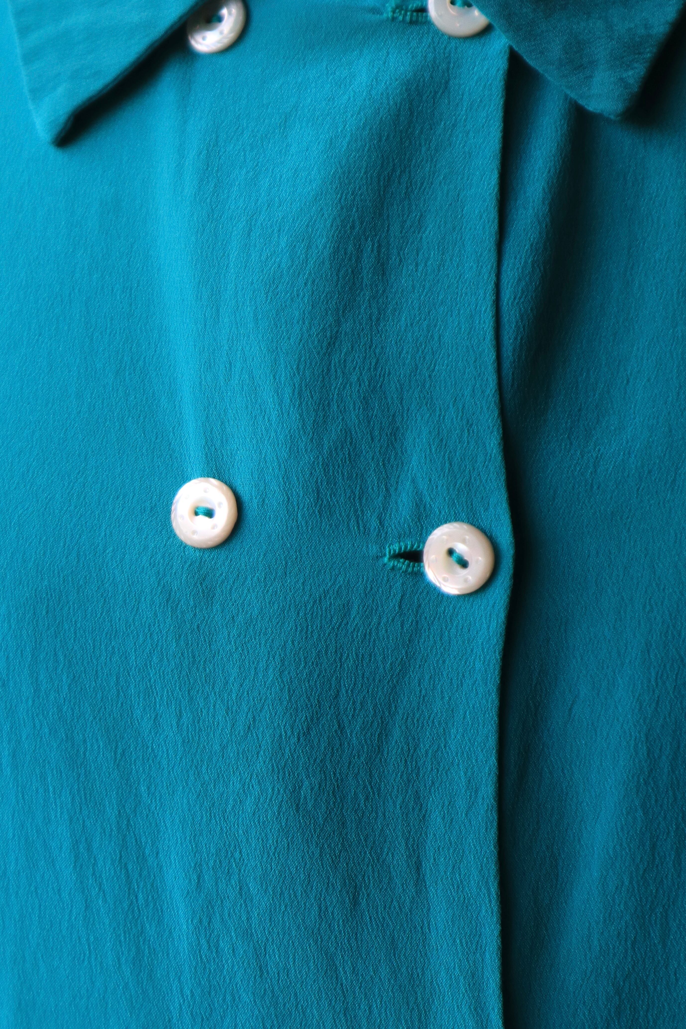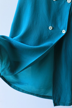 ダブルボタンのシルクシャツ。
