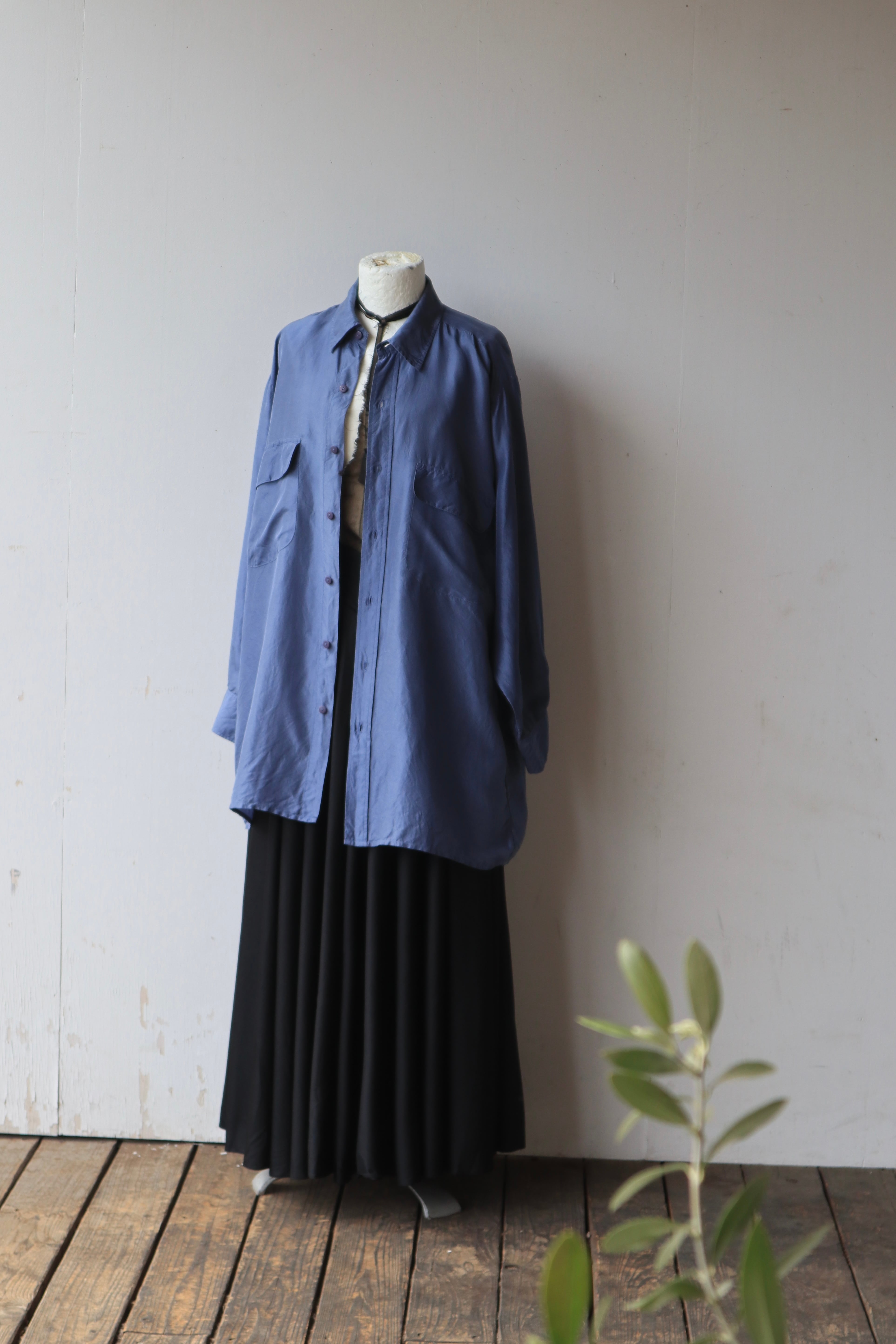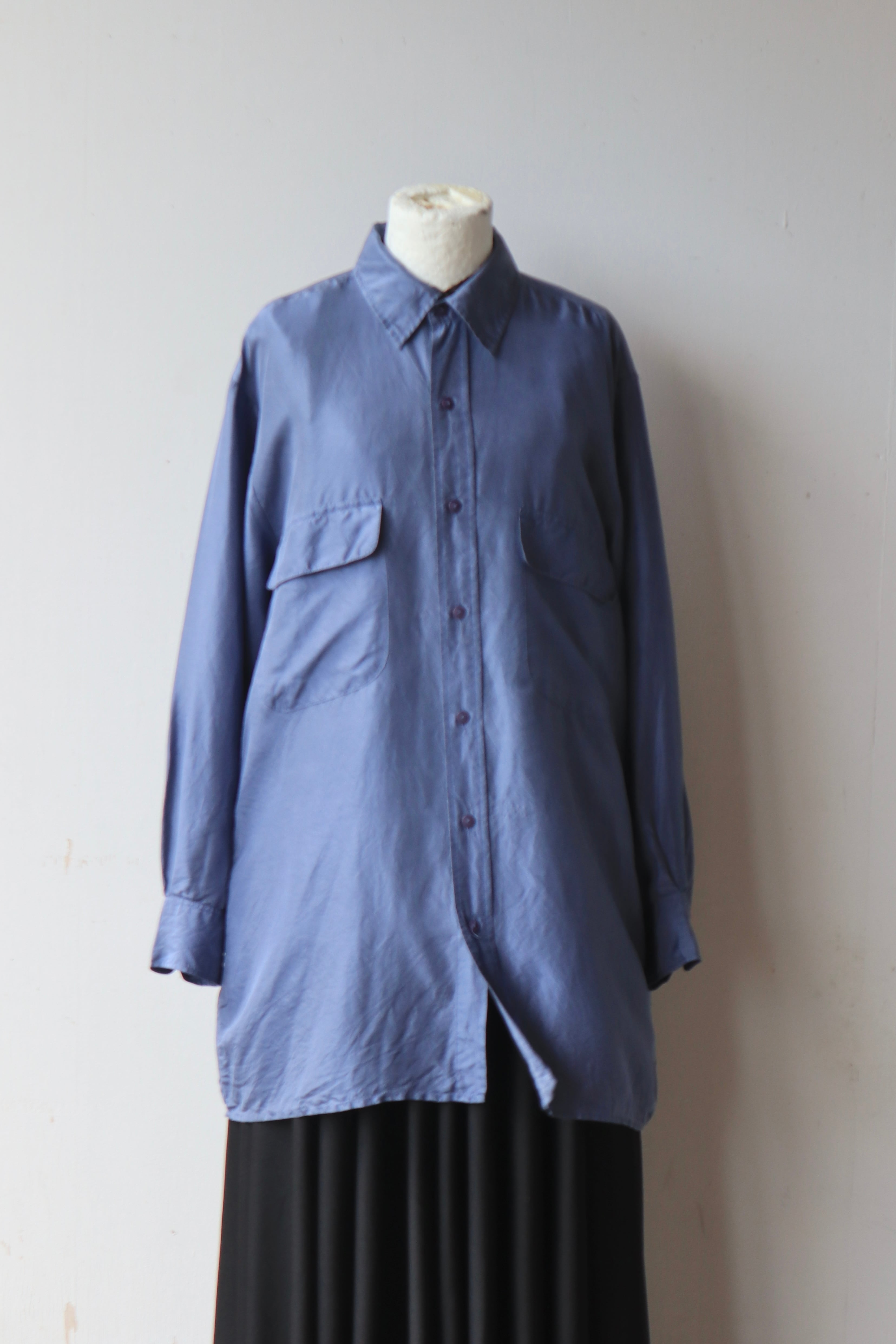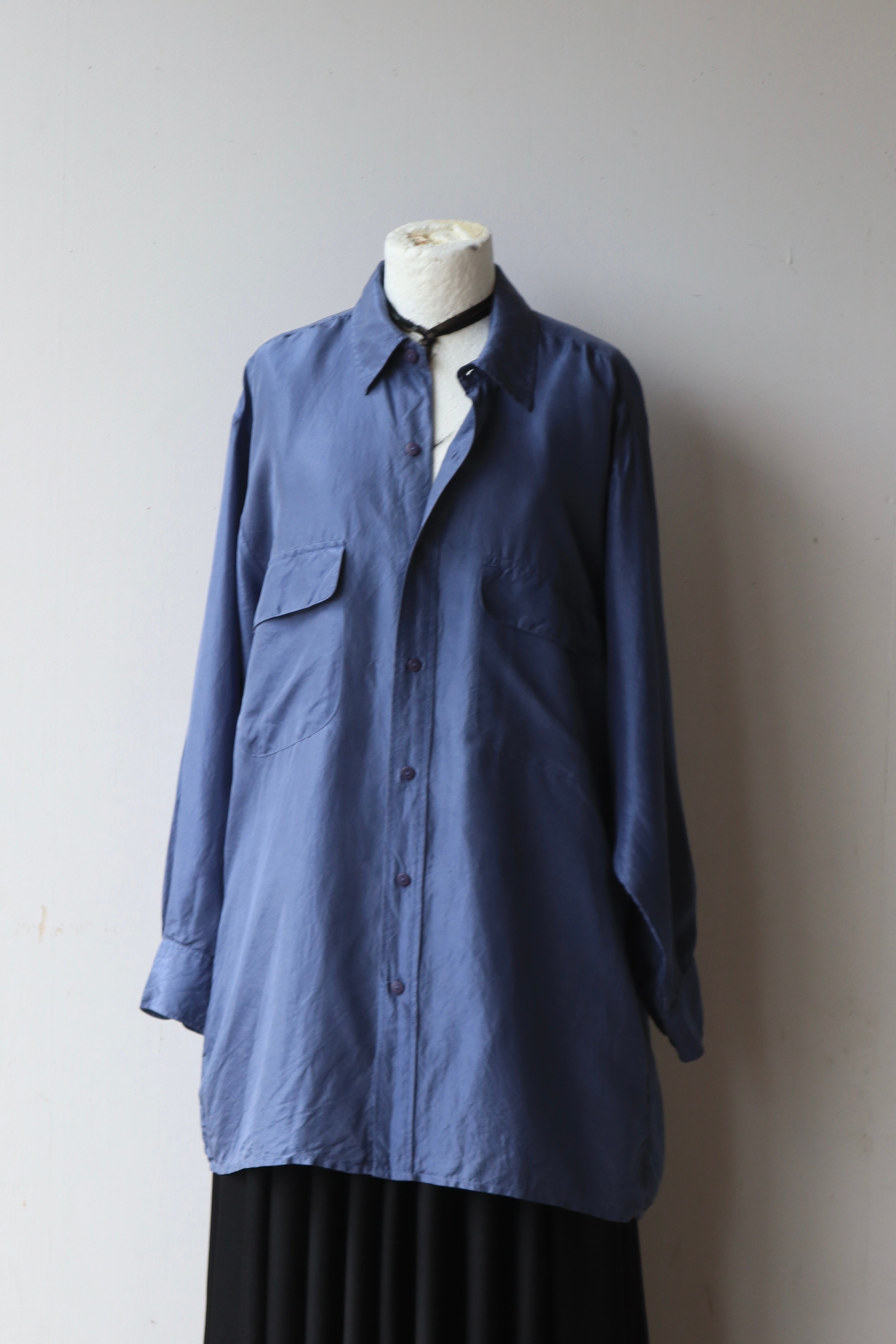 [Euro smoky blue silk shirt]