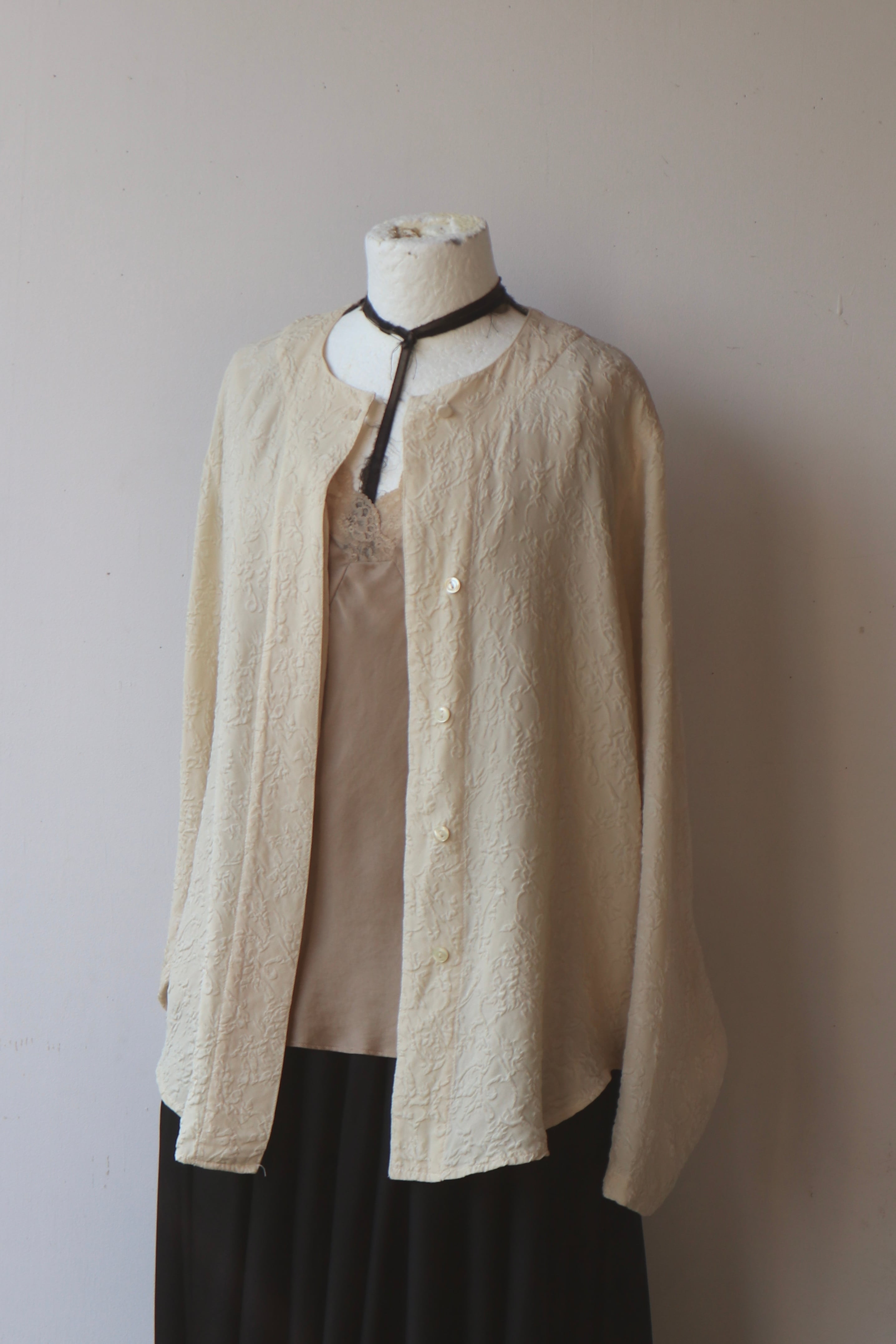 [jacquard ivory silk blouse]
