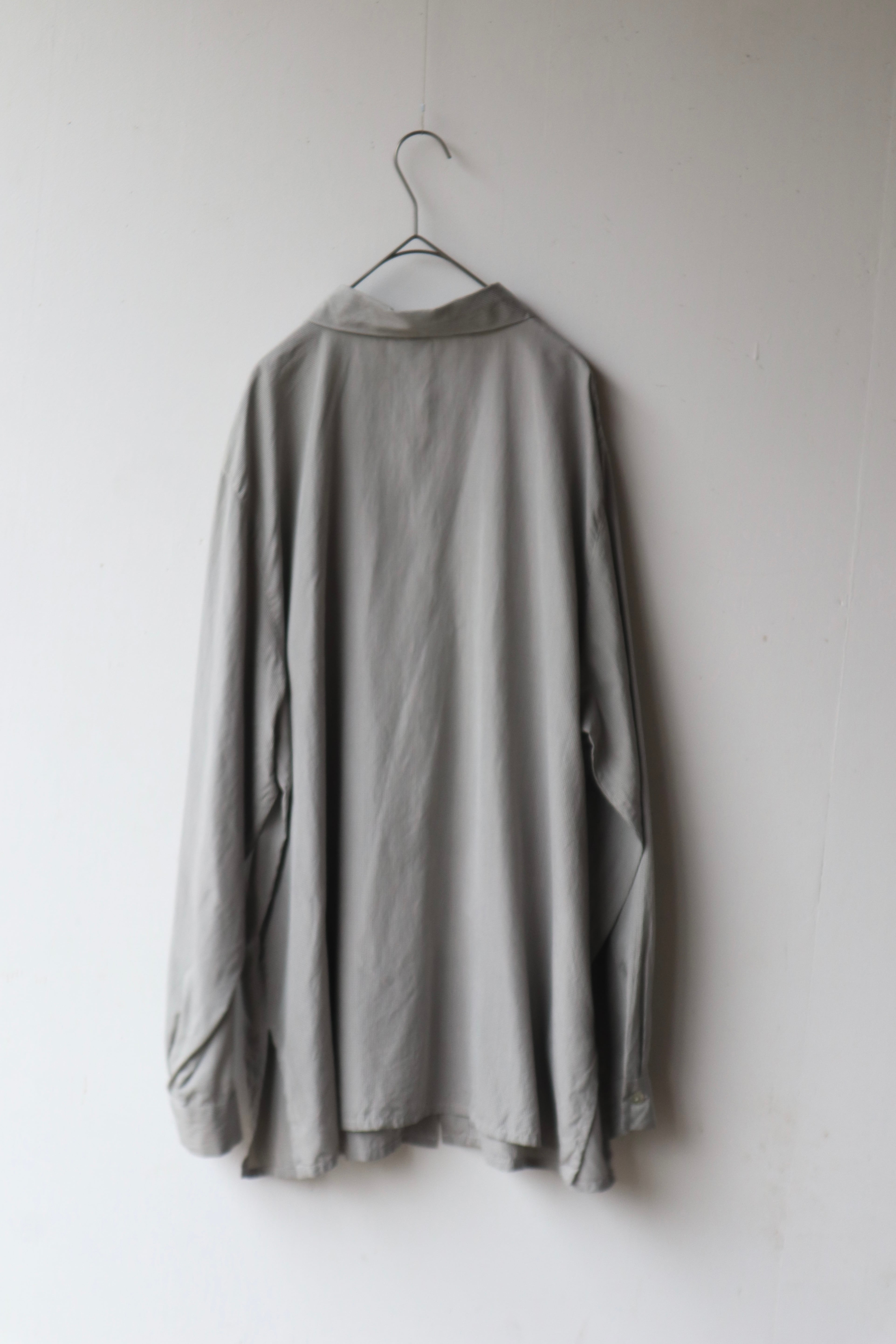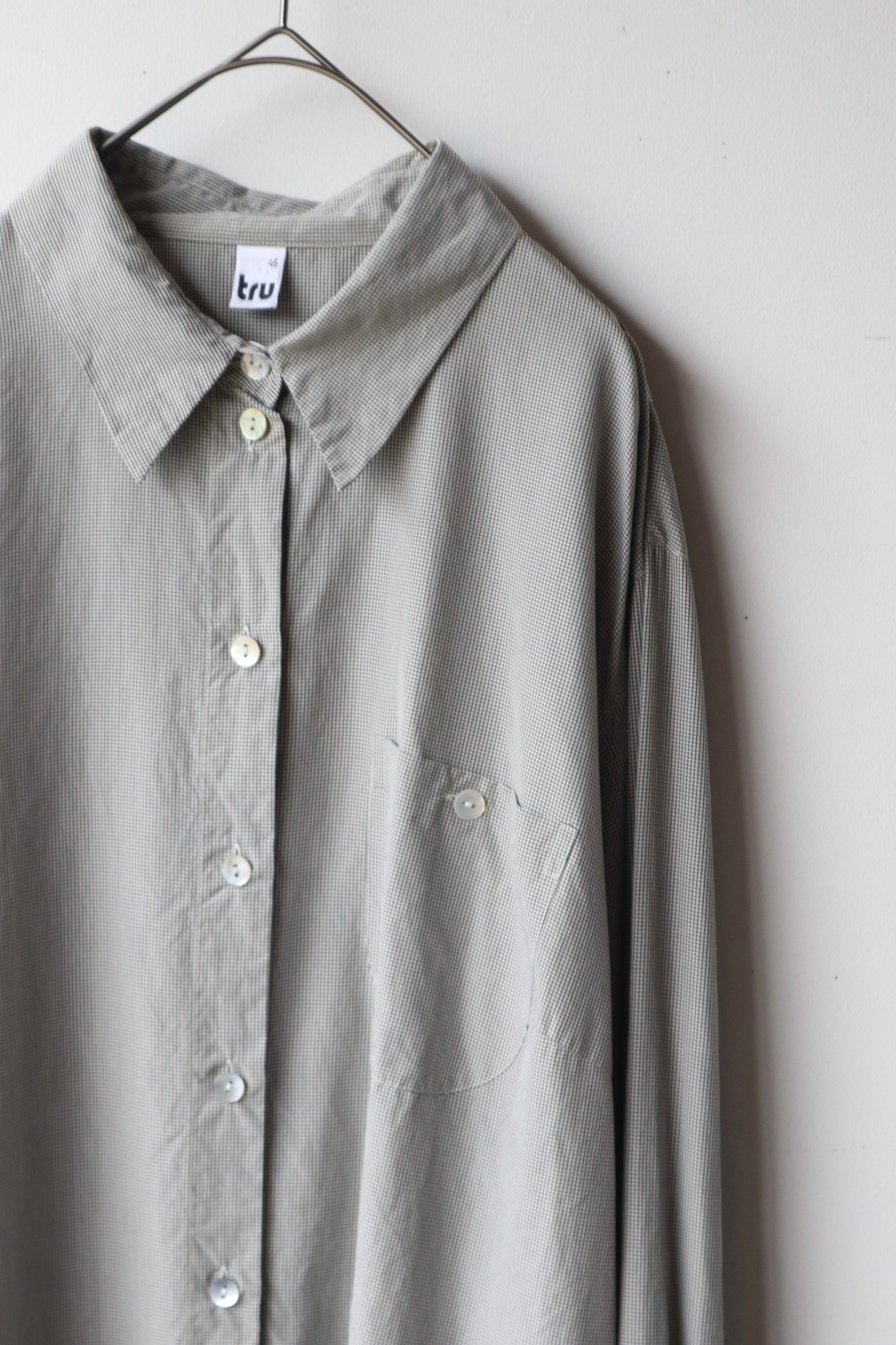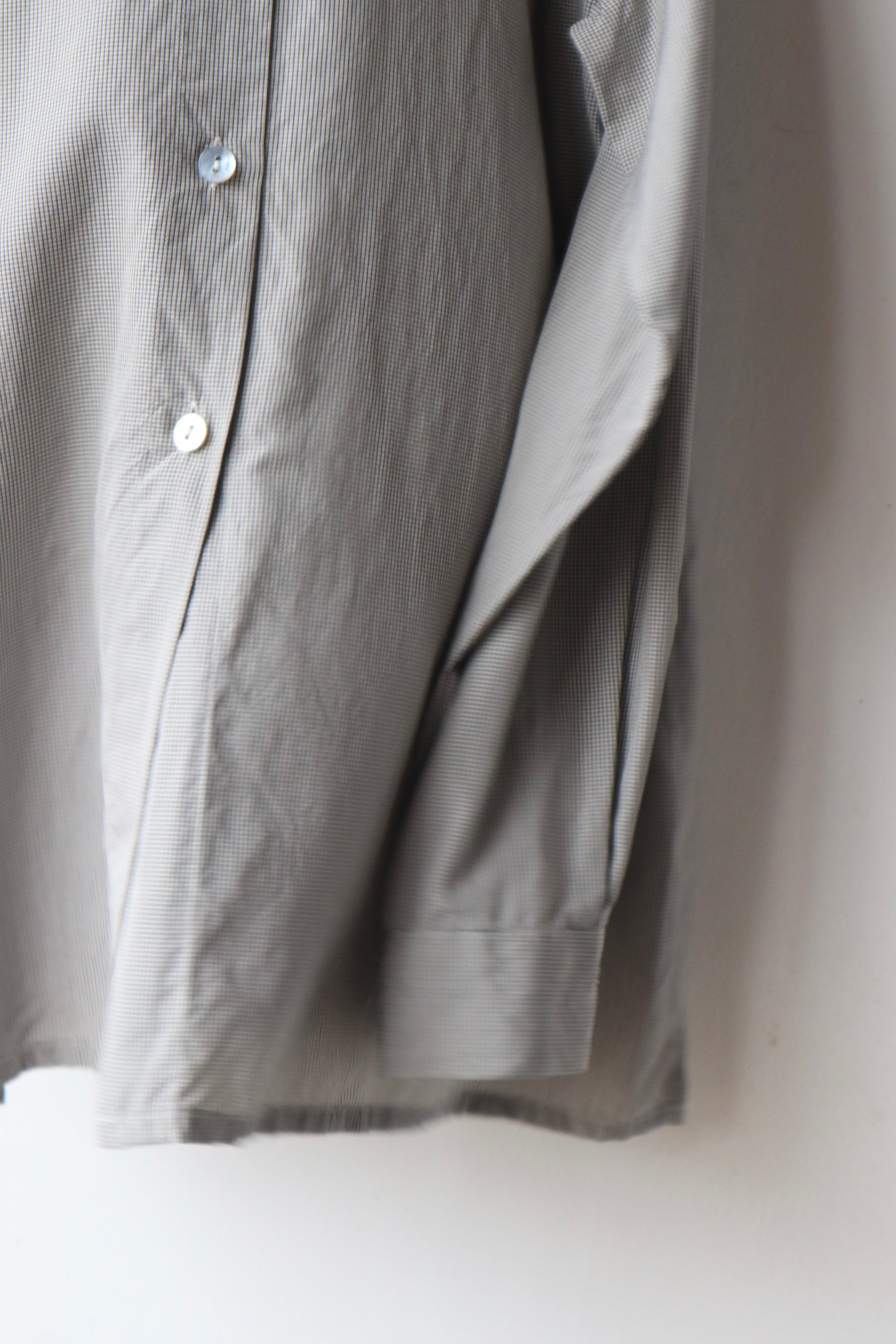 マイクロチェック柄シルクシャツ。