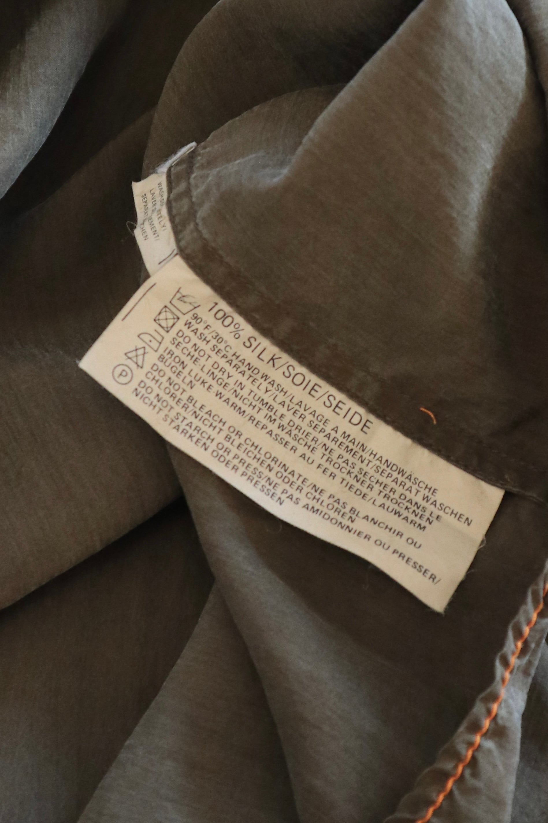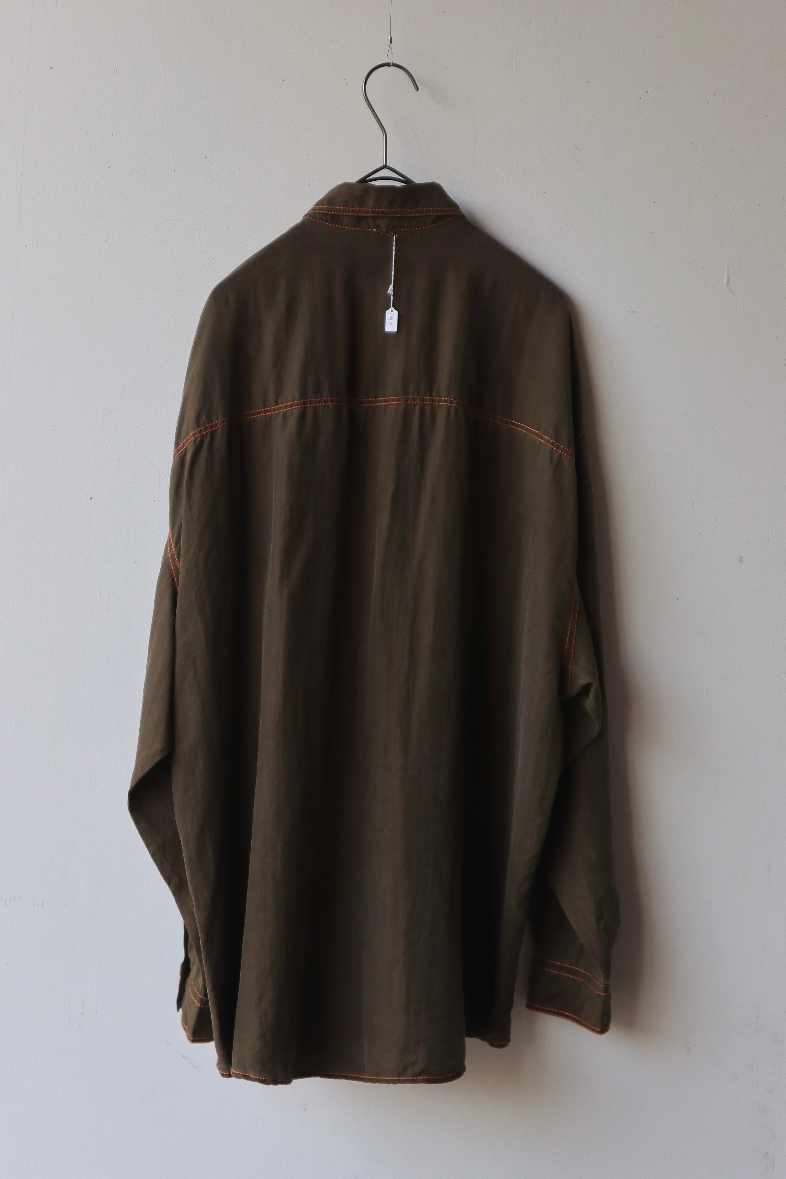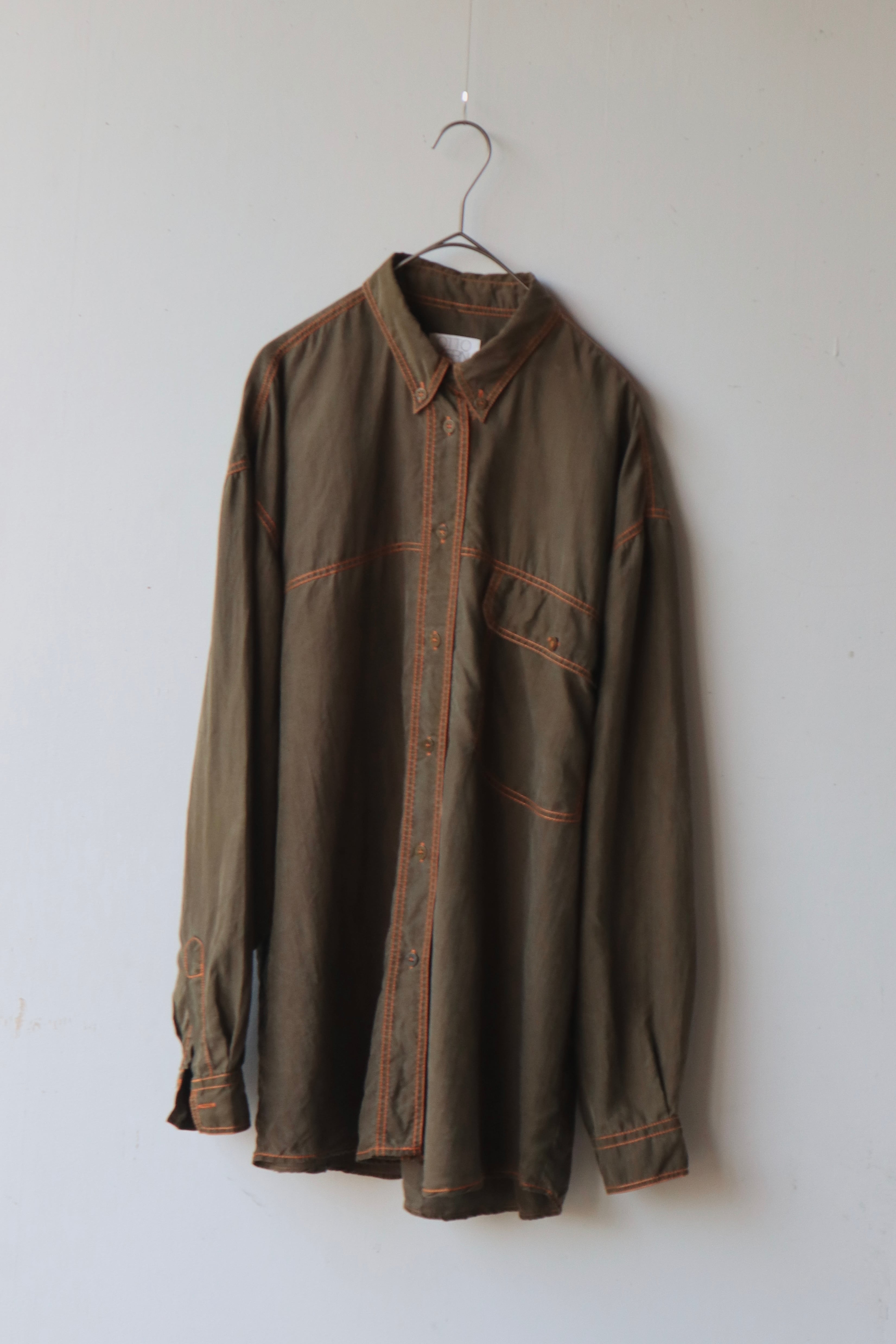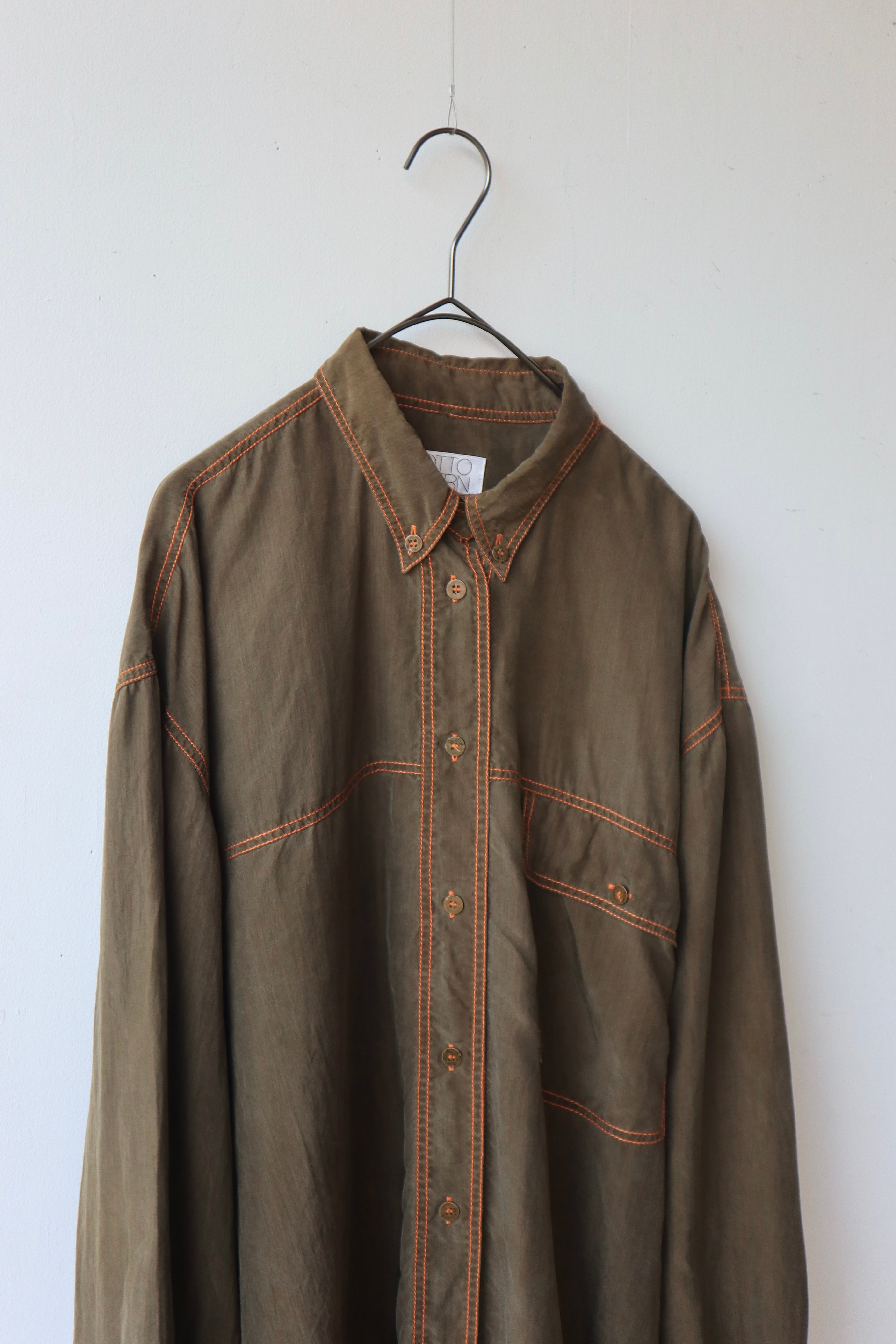 [khaki orange stitch silk shirt]