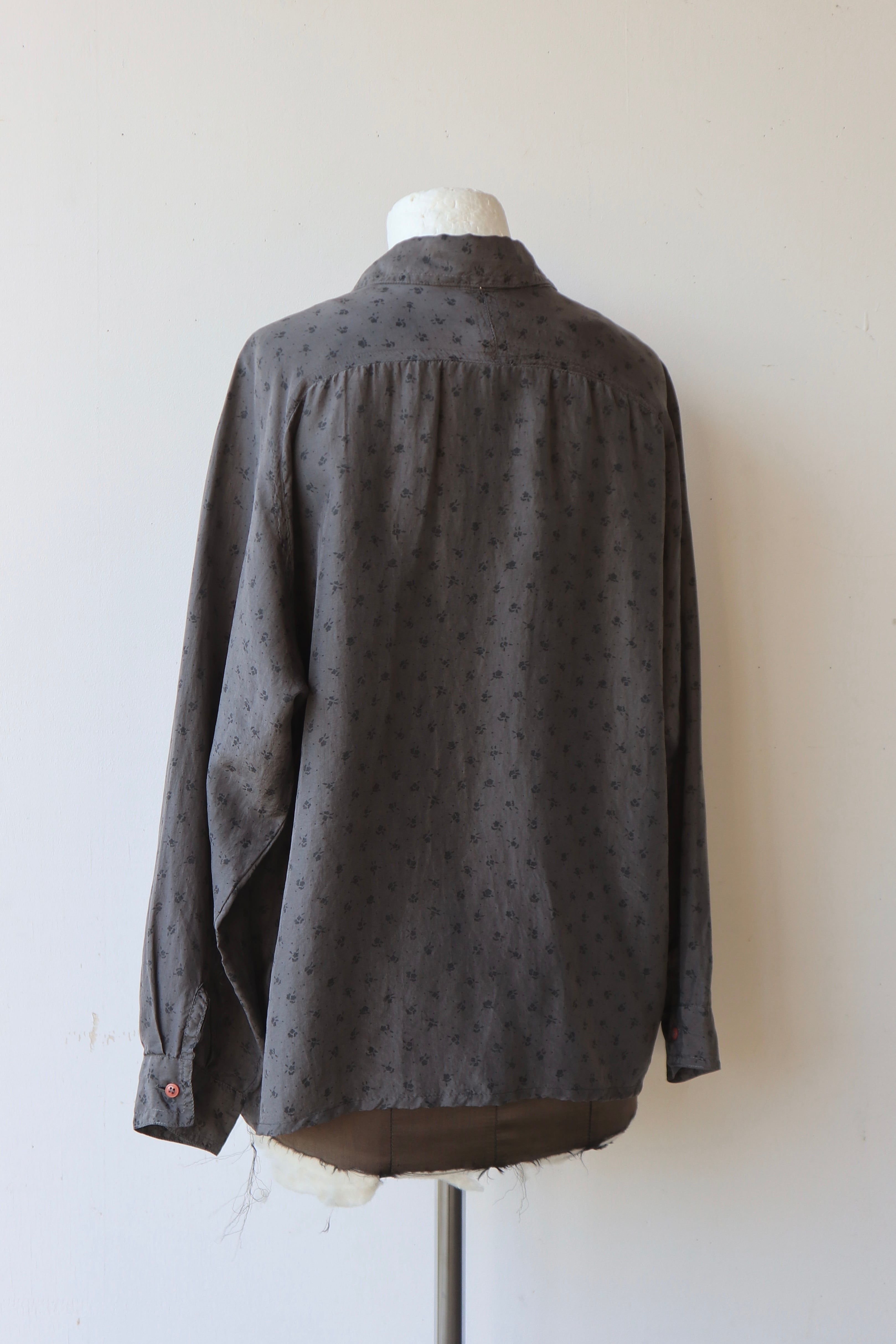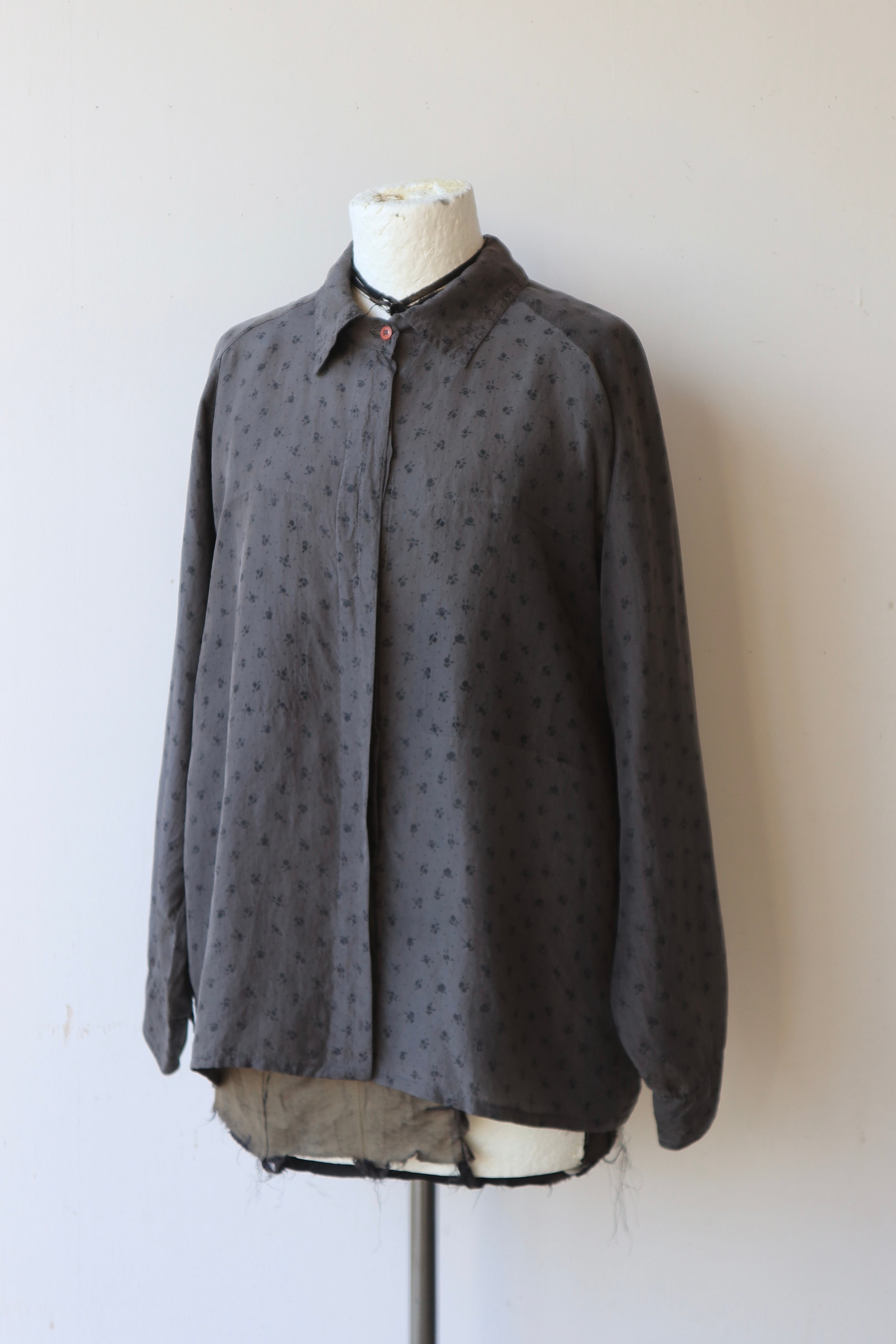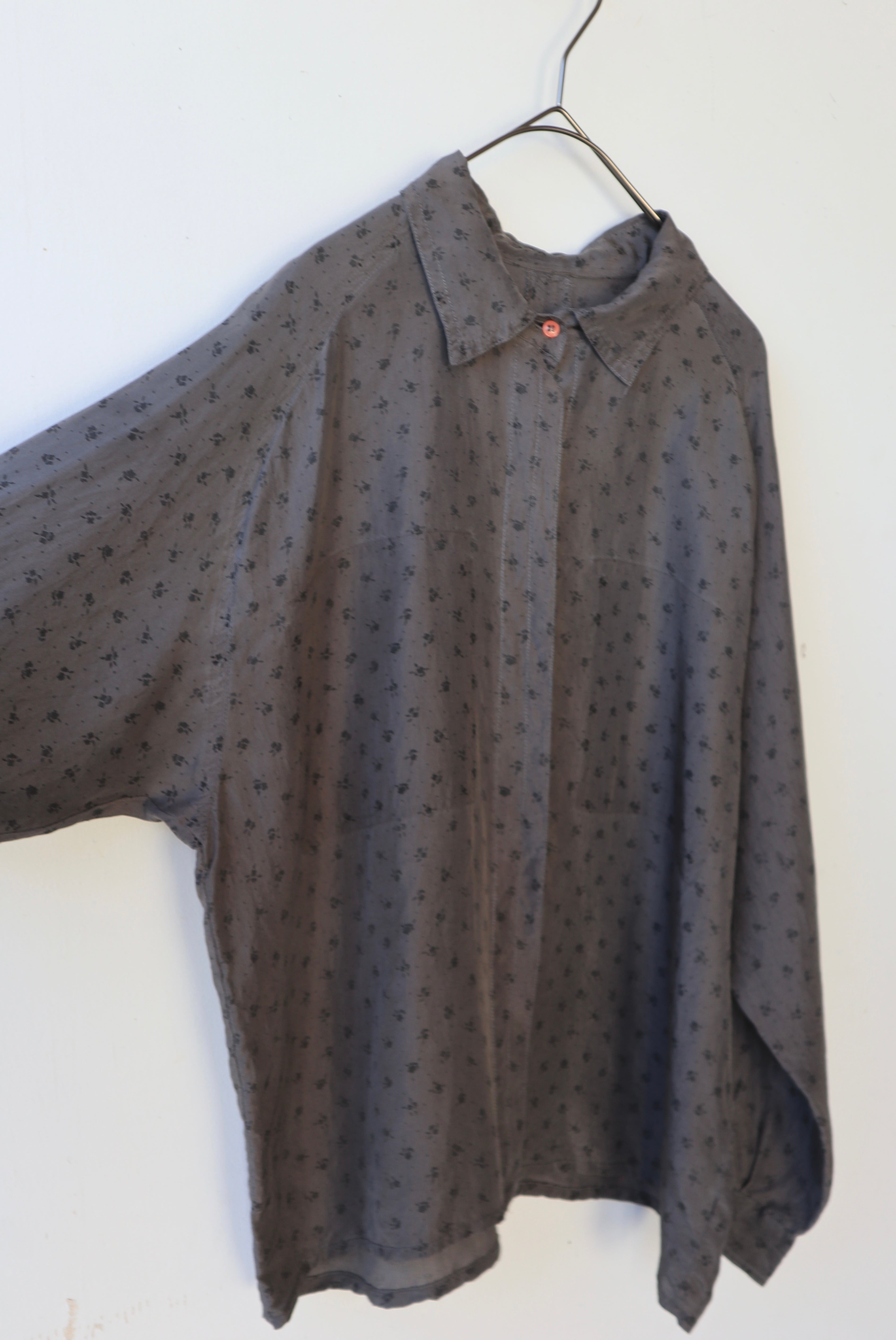 [flower pattern raglan sleeve silk shirt]