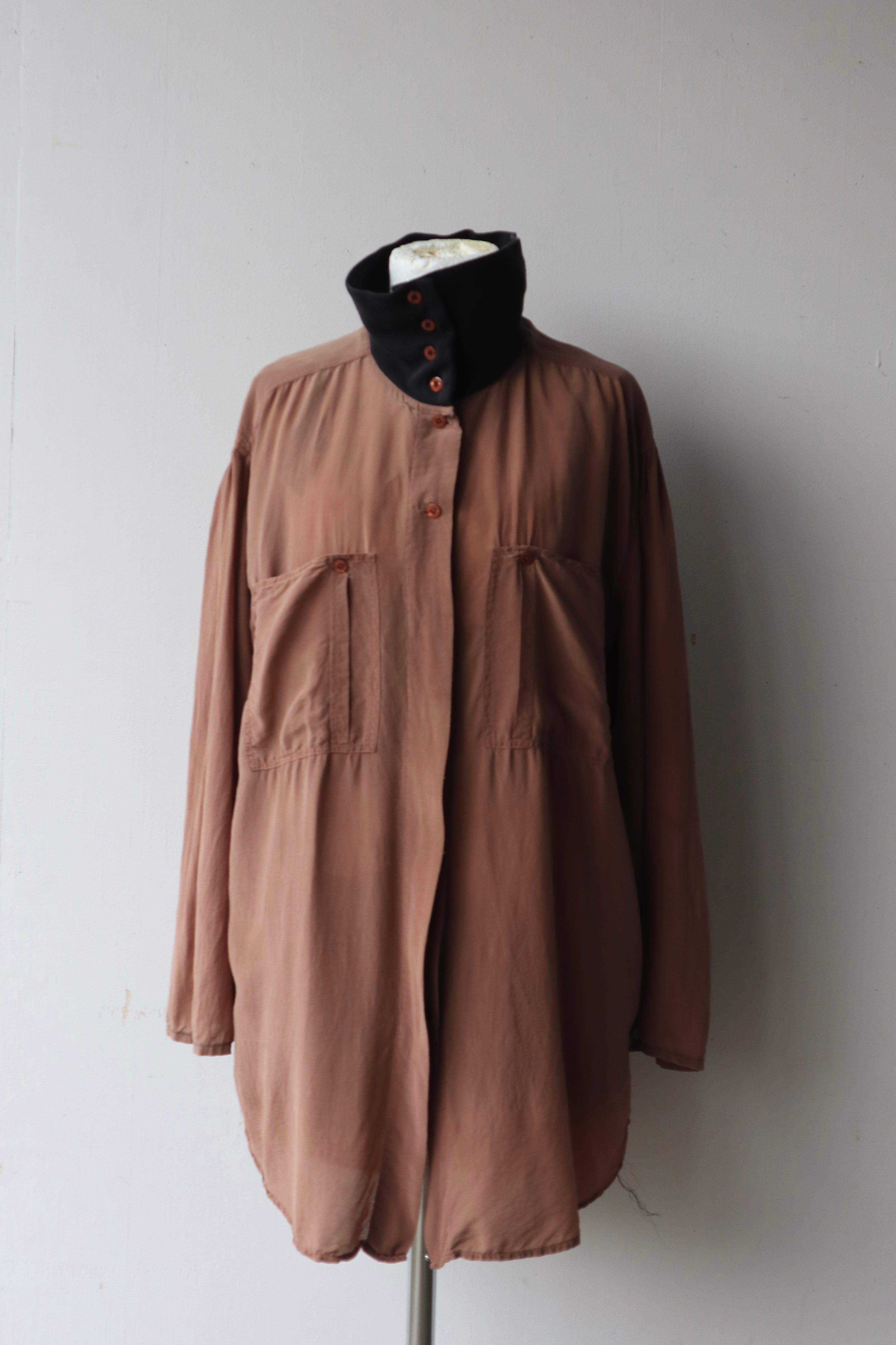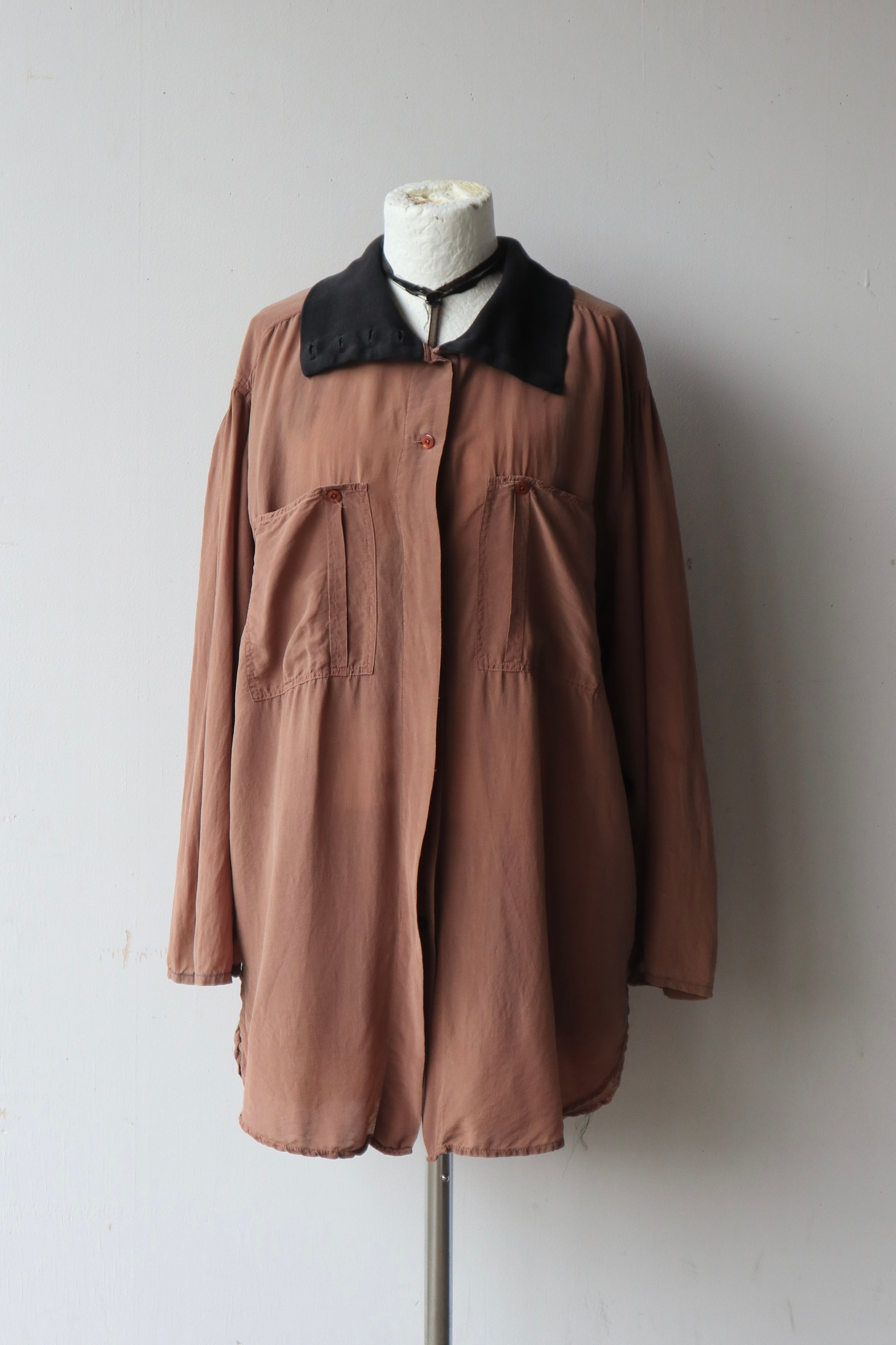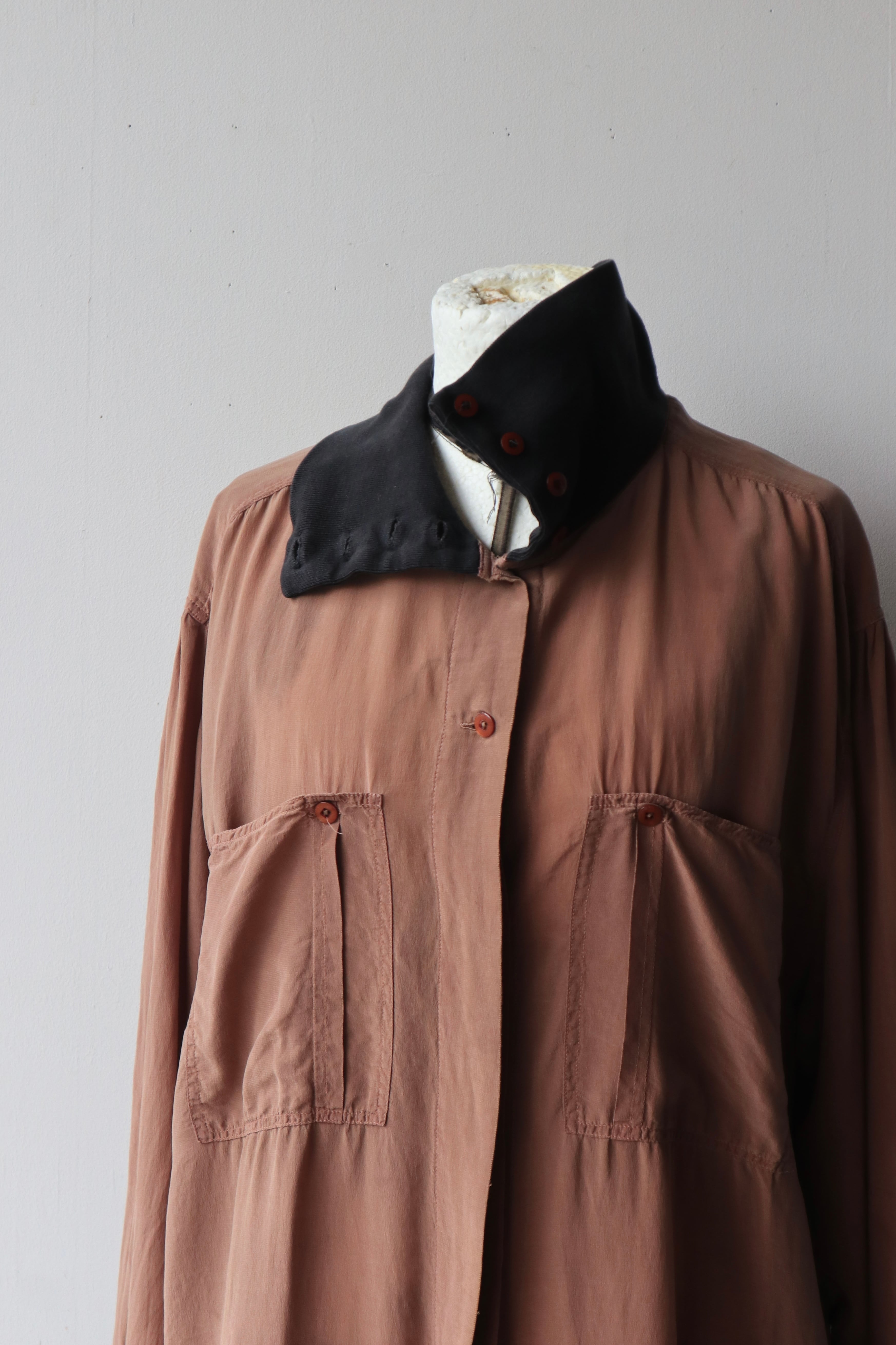 [contrast collar design silk shirt]