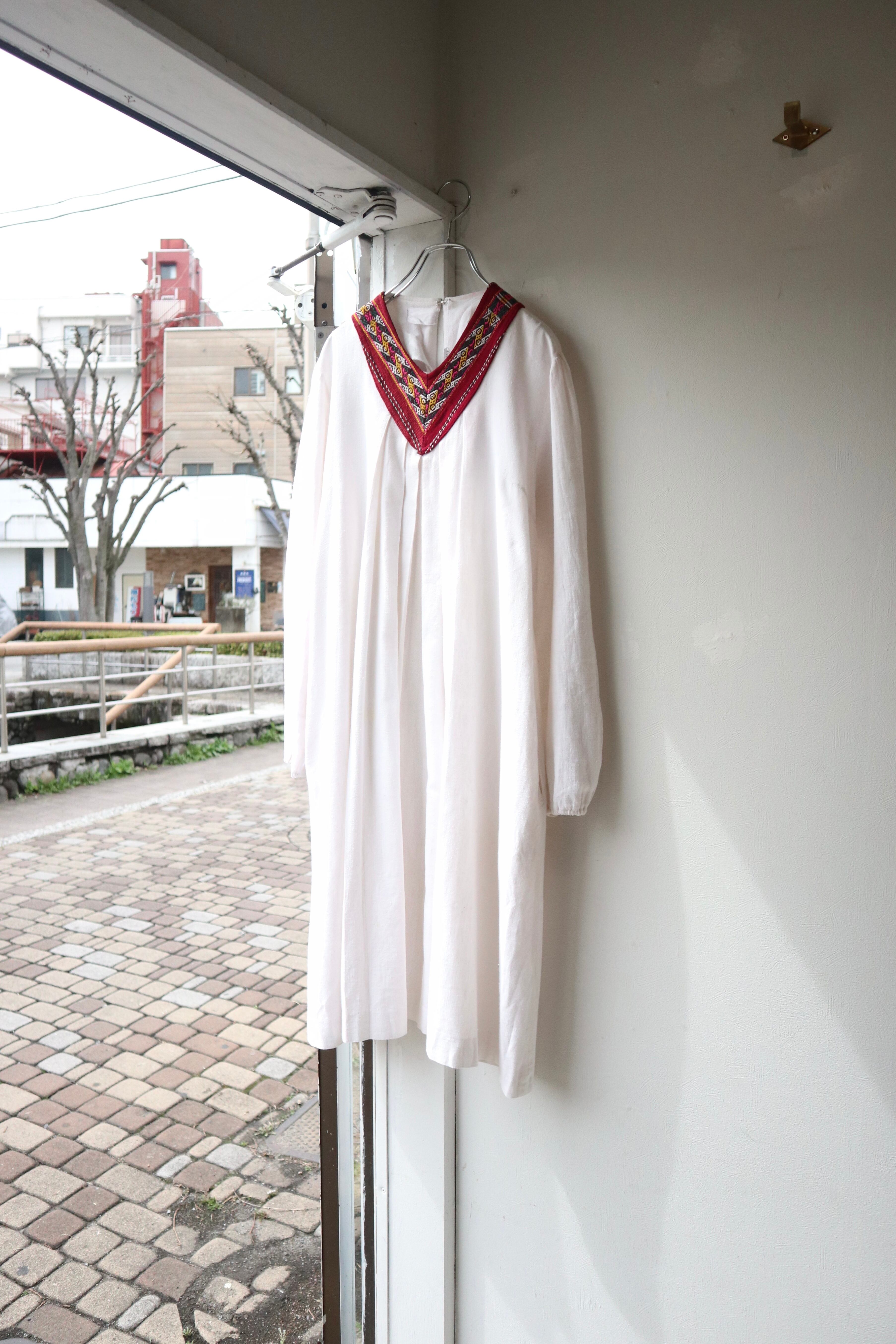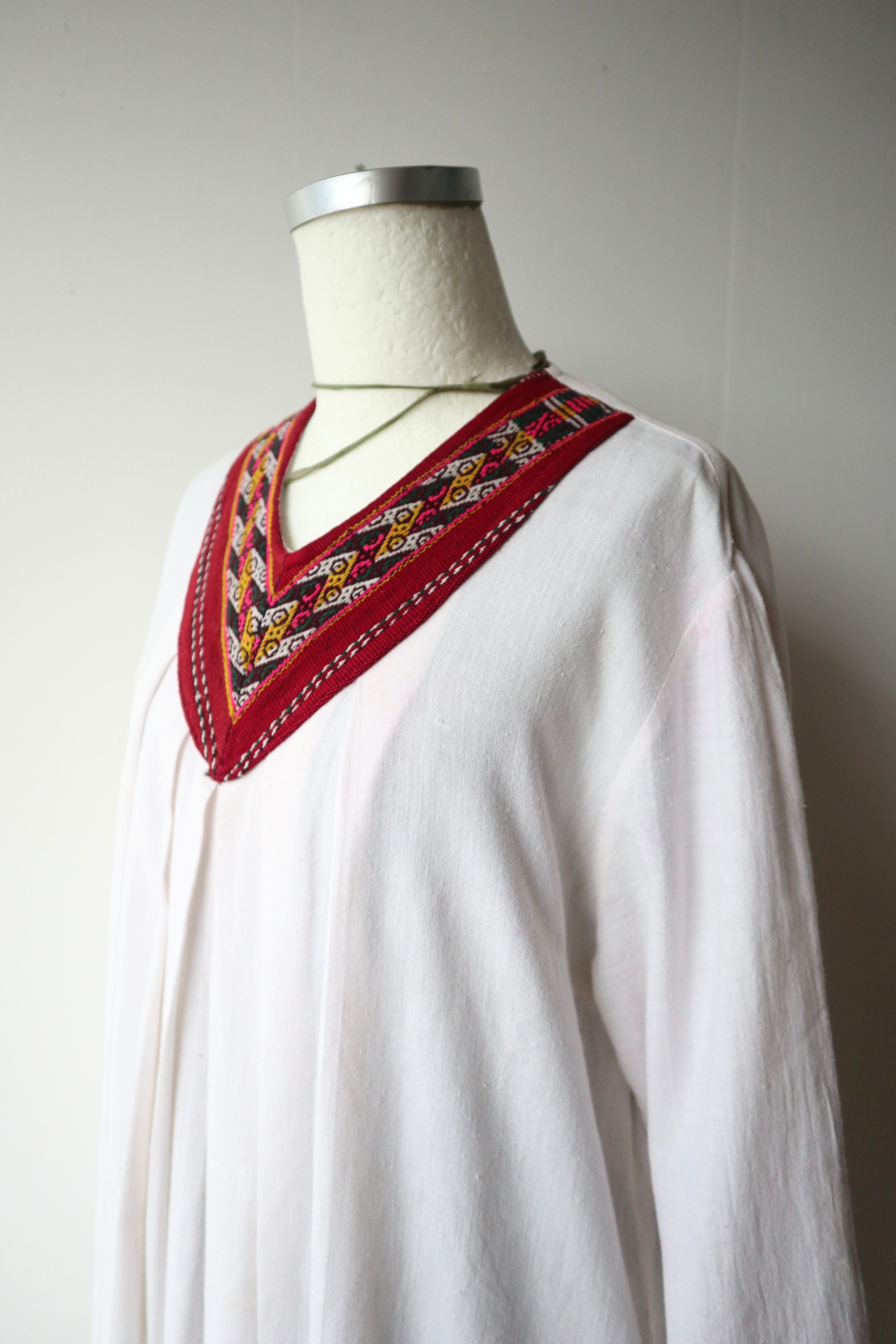 首元のリボンテープがエスニックな雰囲気もありホワイトカラーで普段使いしやすい1着