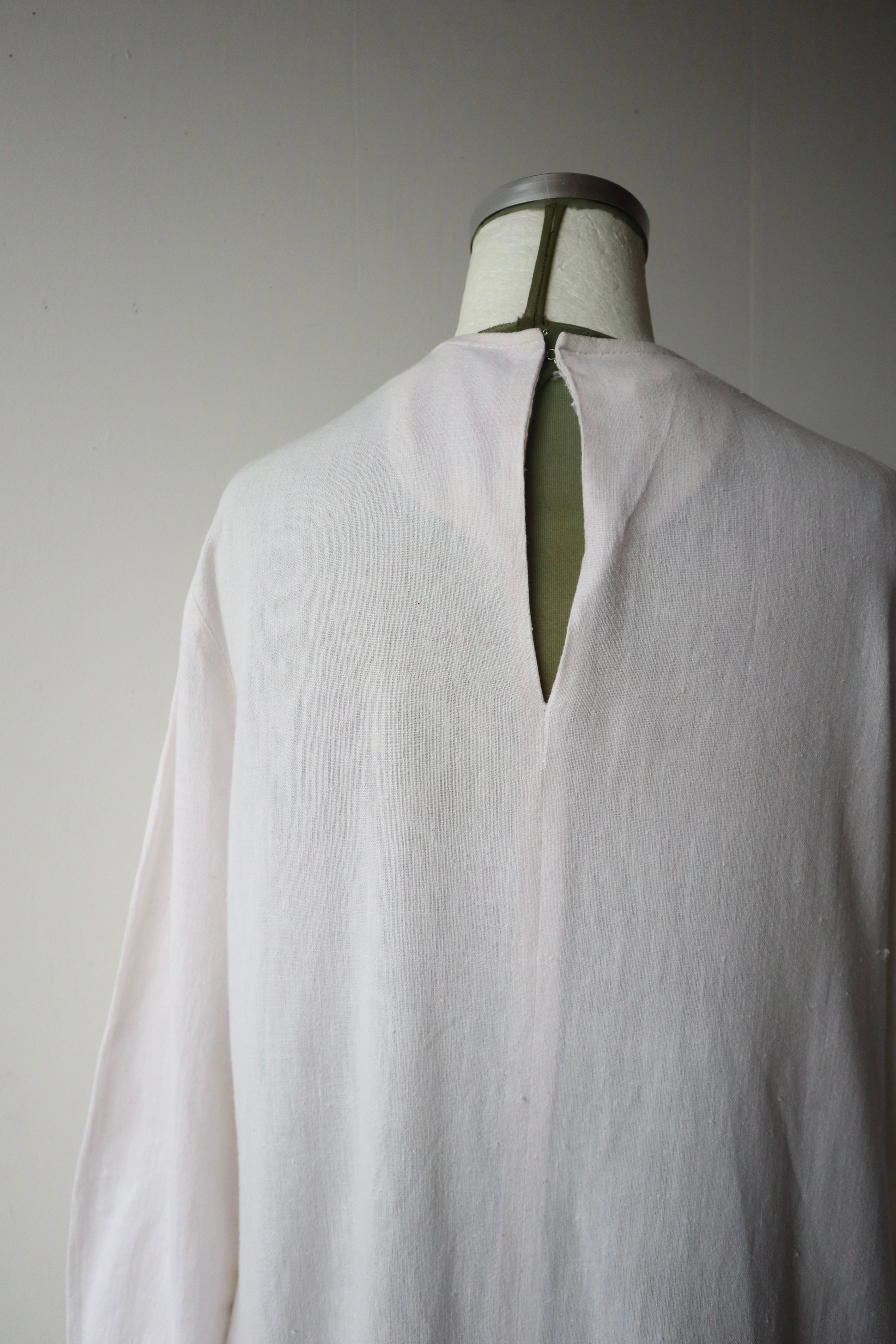 胸元のタックから綺麗に広がるシルエットがゆったり着用して頂けます。