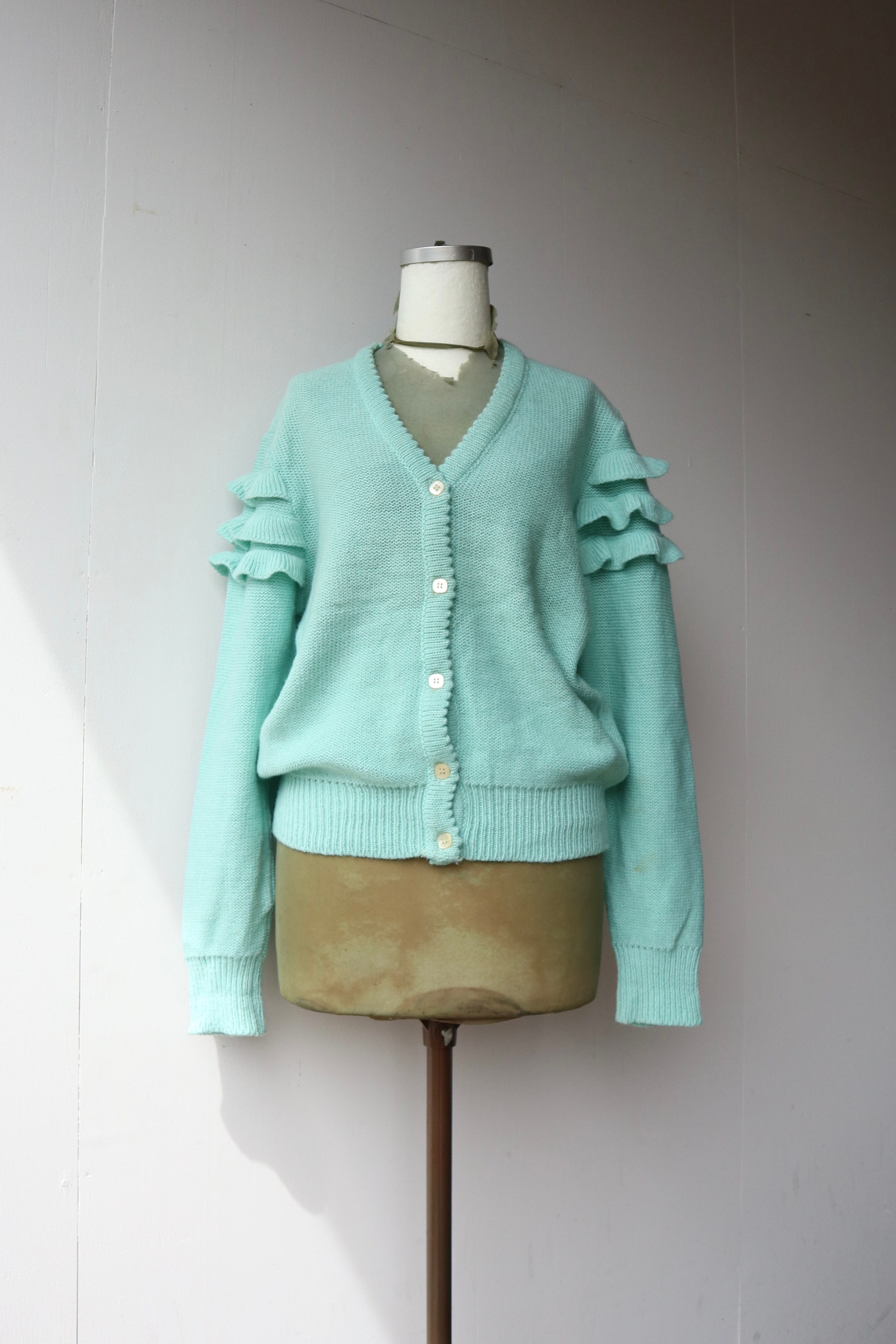 袖のフリルや淡いミントカラーが目を引く可愛らしいデザインです。