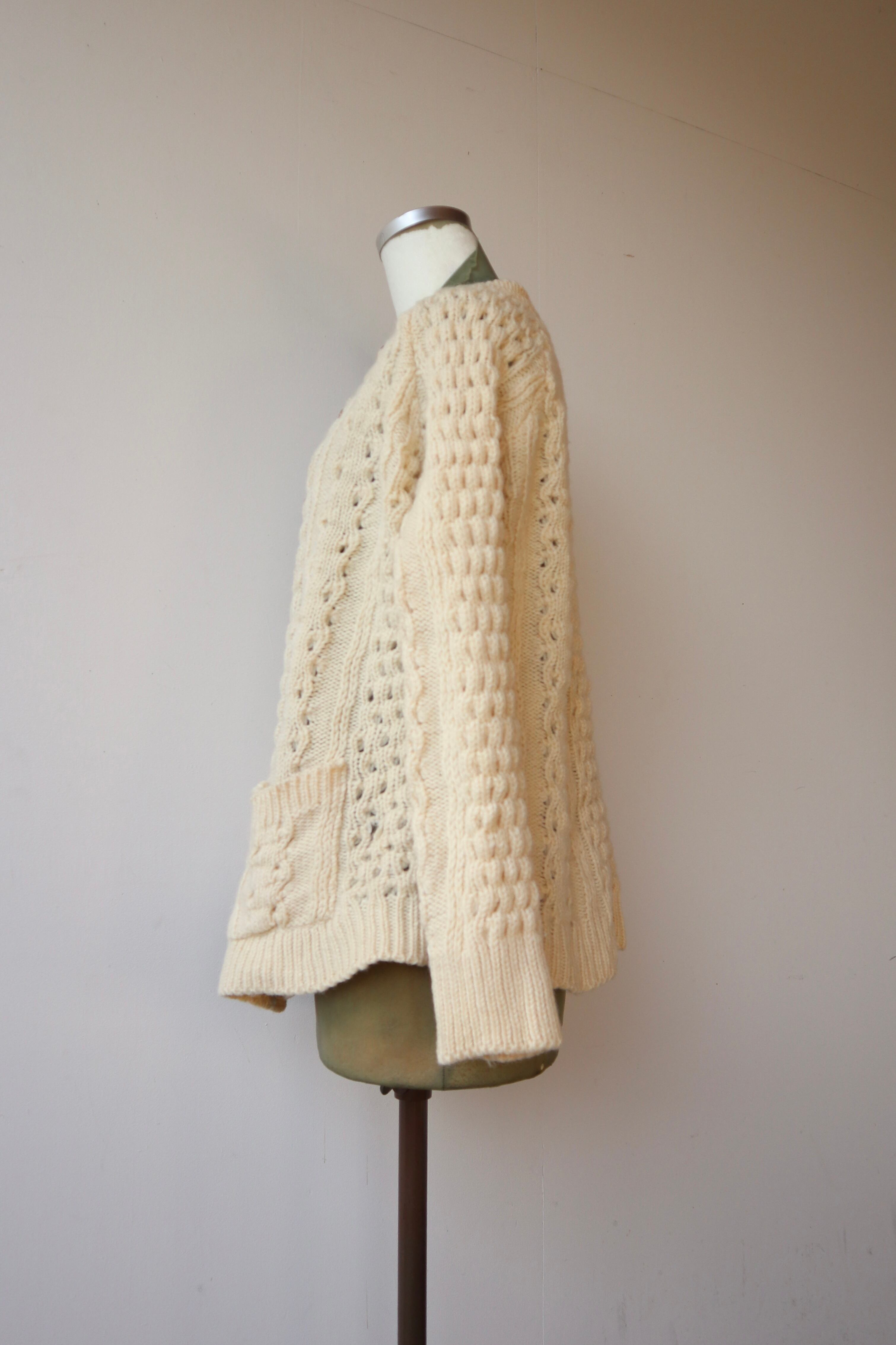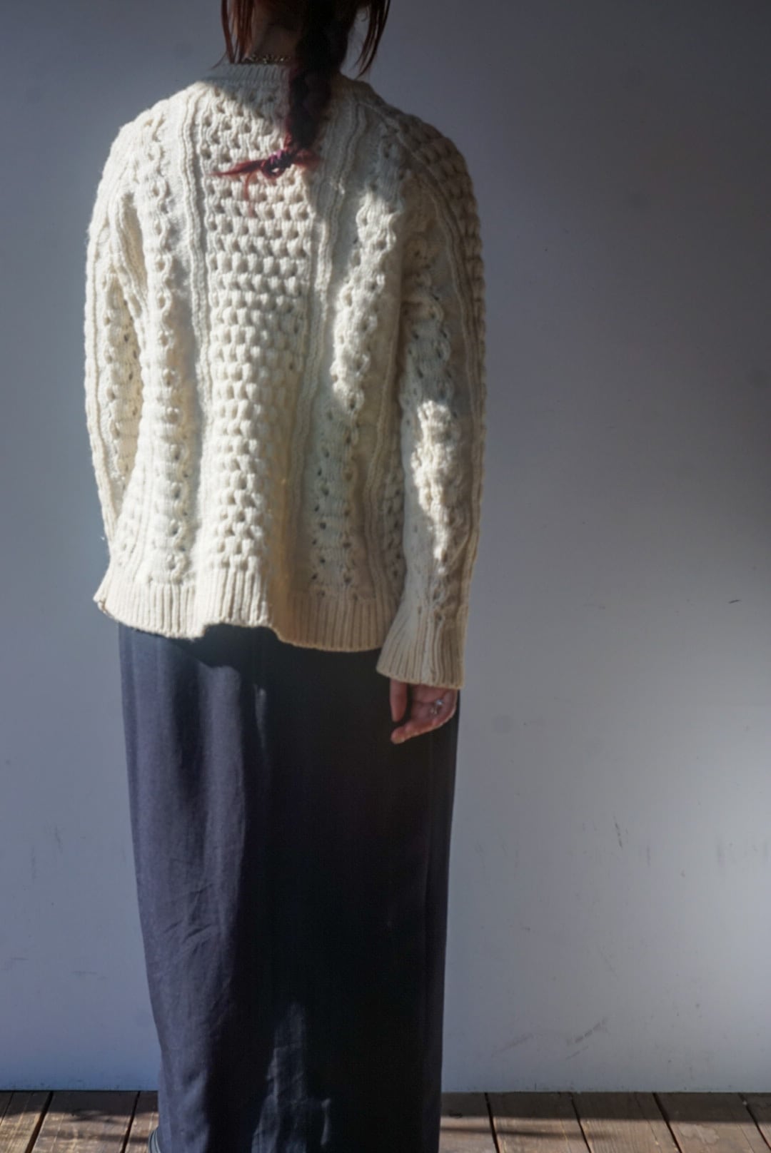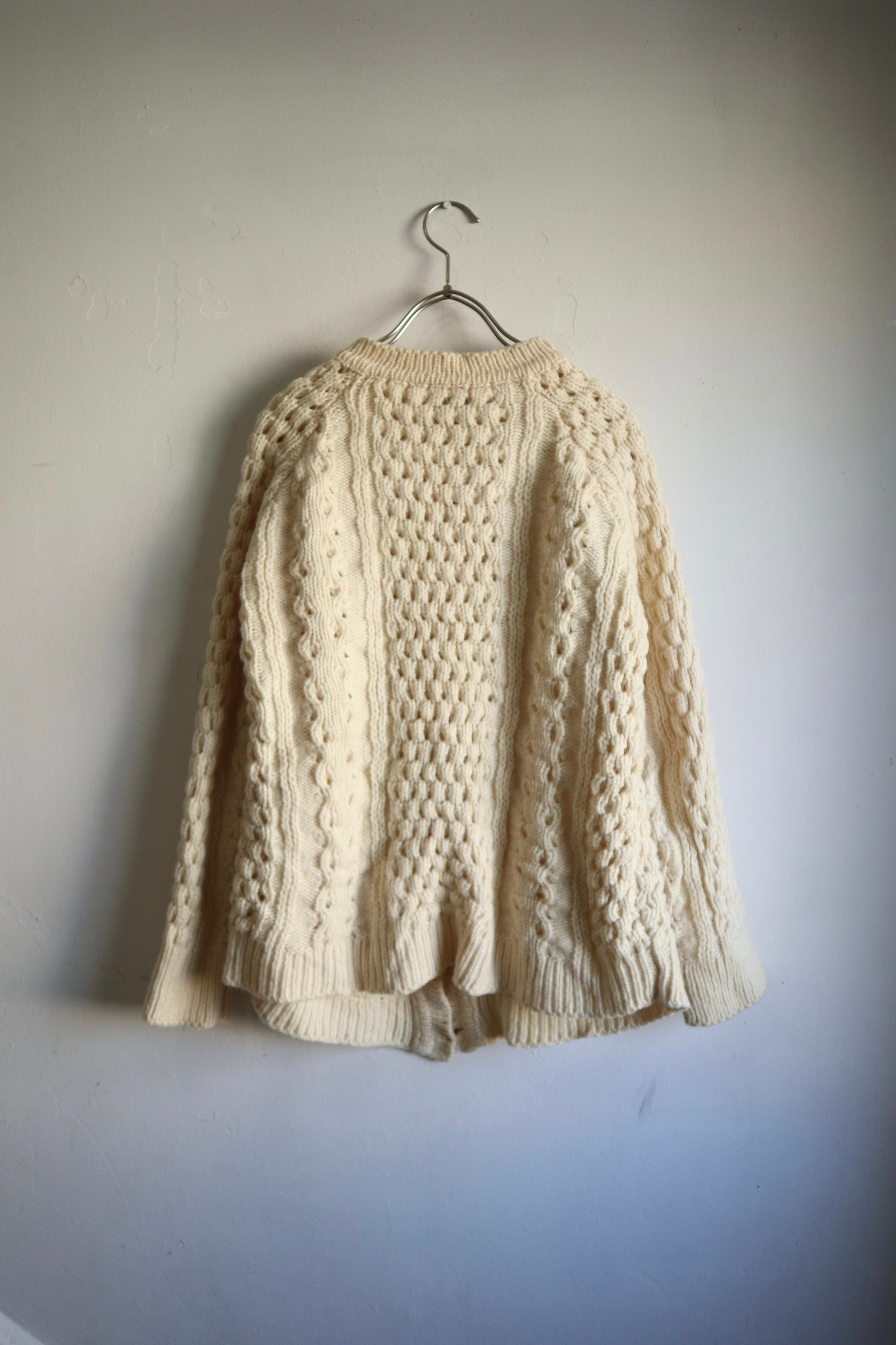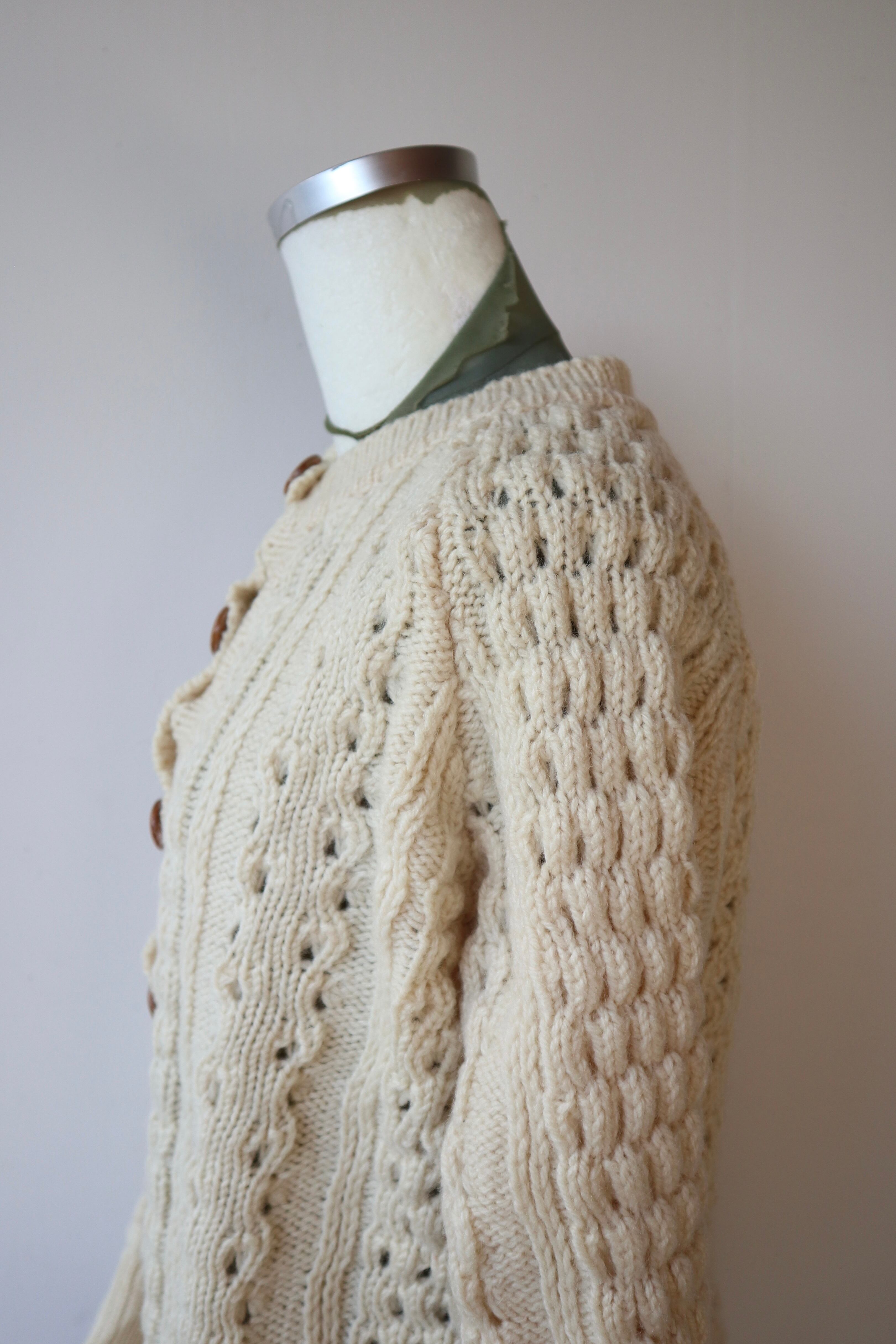 様々なスタイルに馴染みやすく、ウッドボタンが可愛らしい透かし編みのようなデザイン