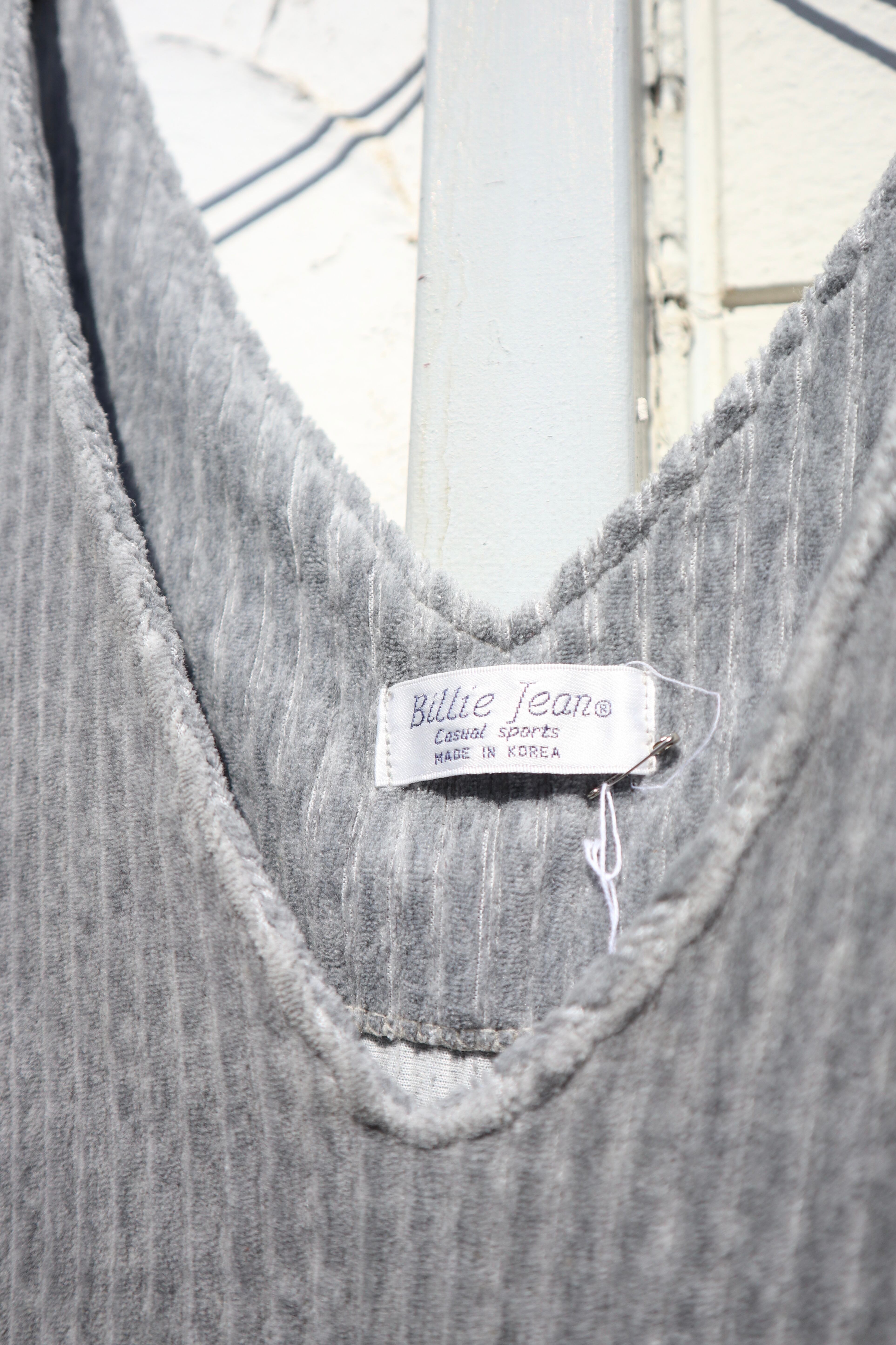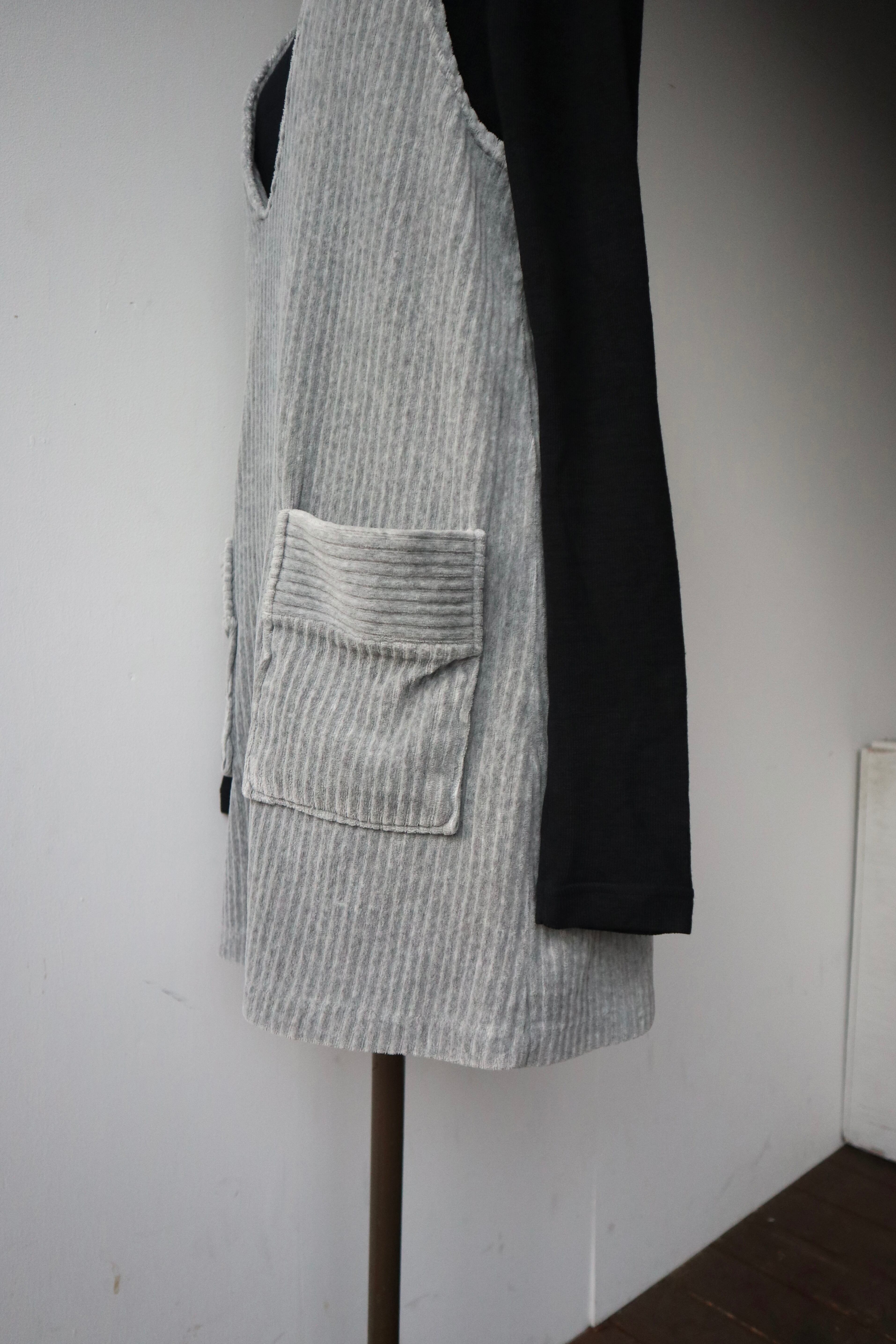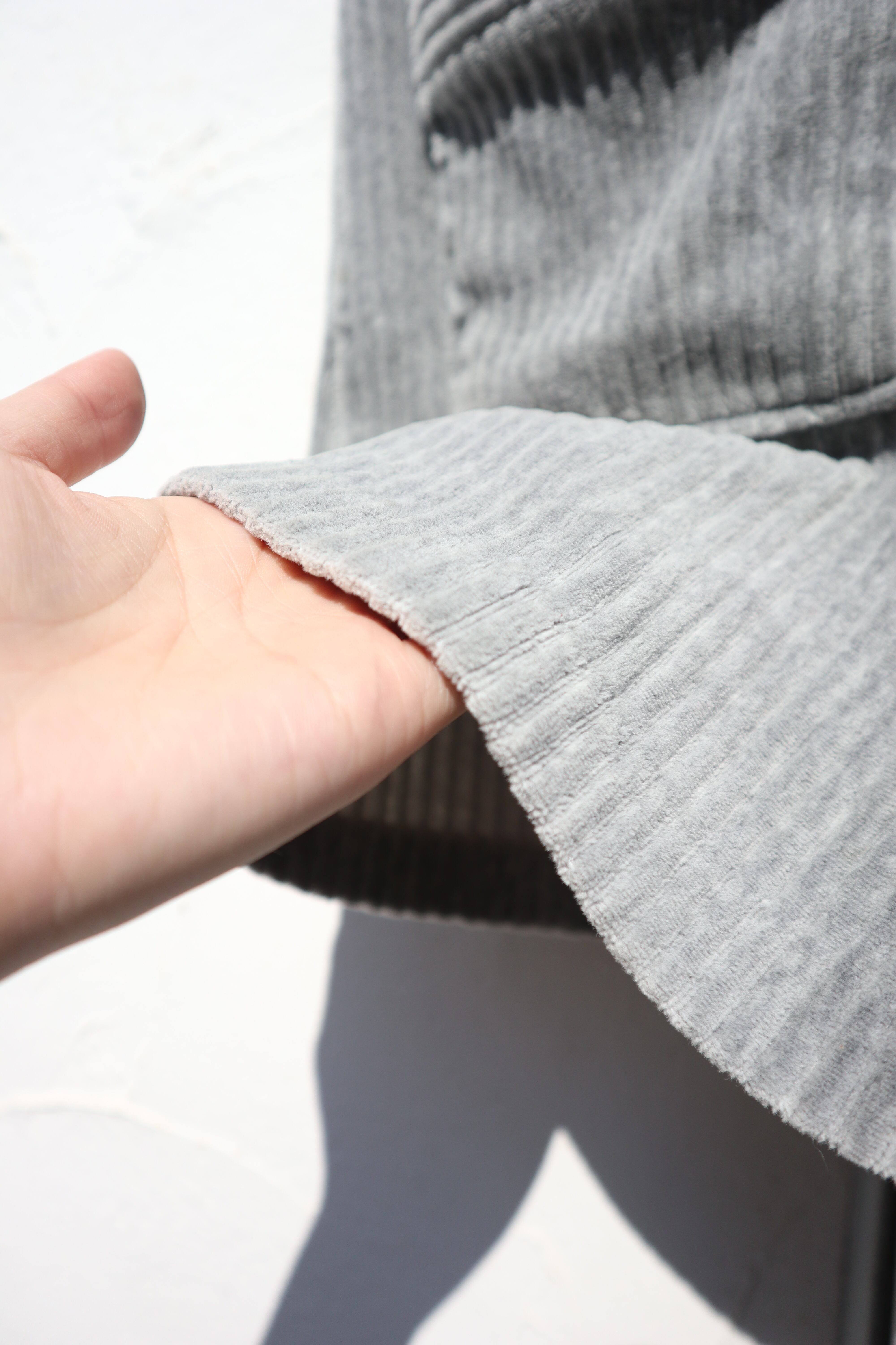 薄手のコーデュロイ素材にグレーカラーがシンプルで使いやすい1着