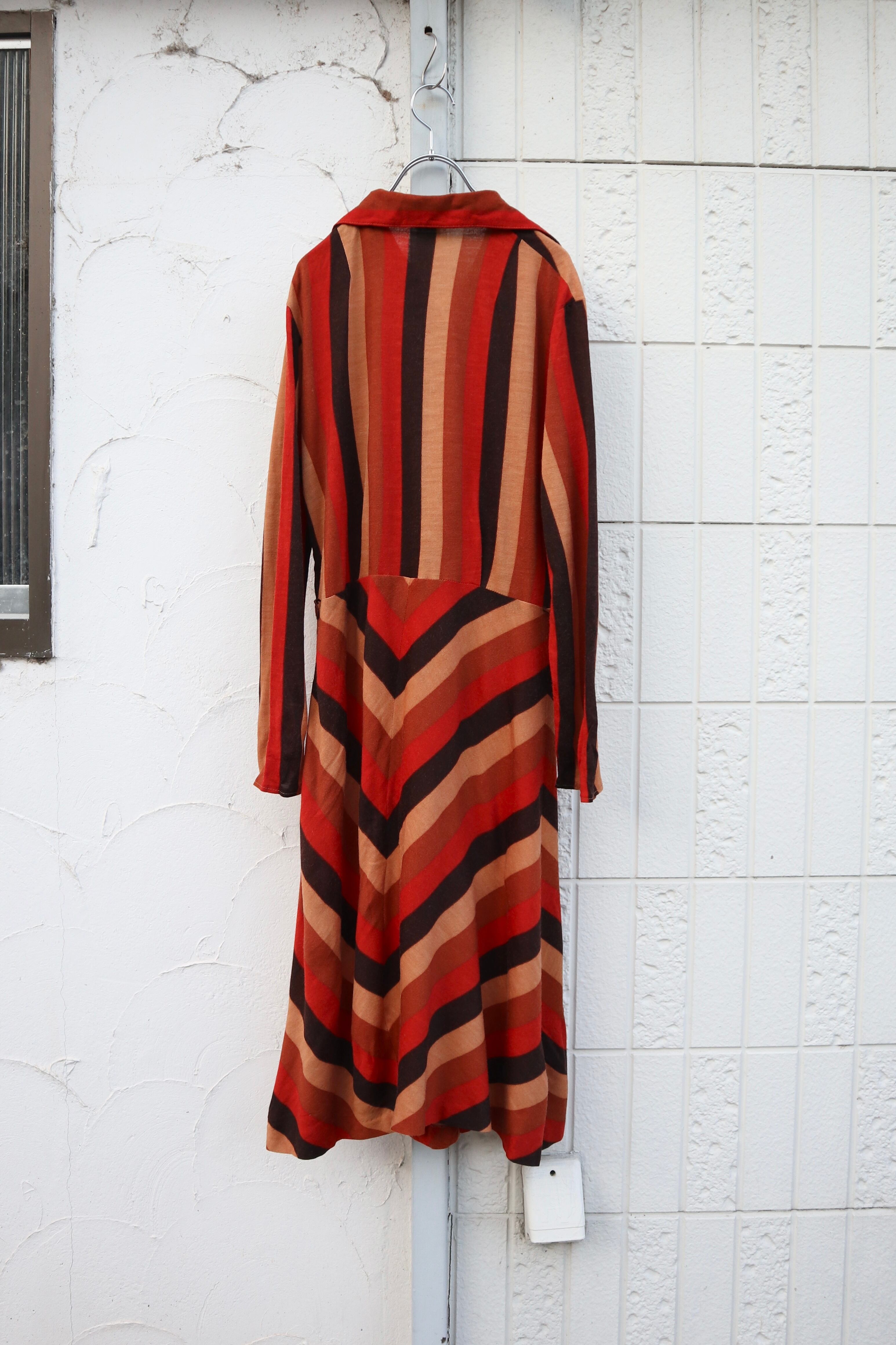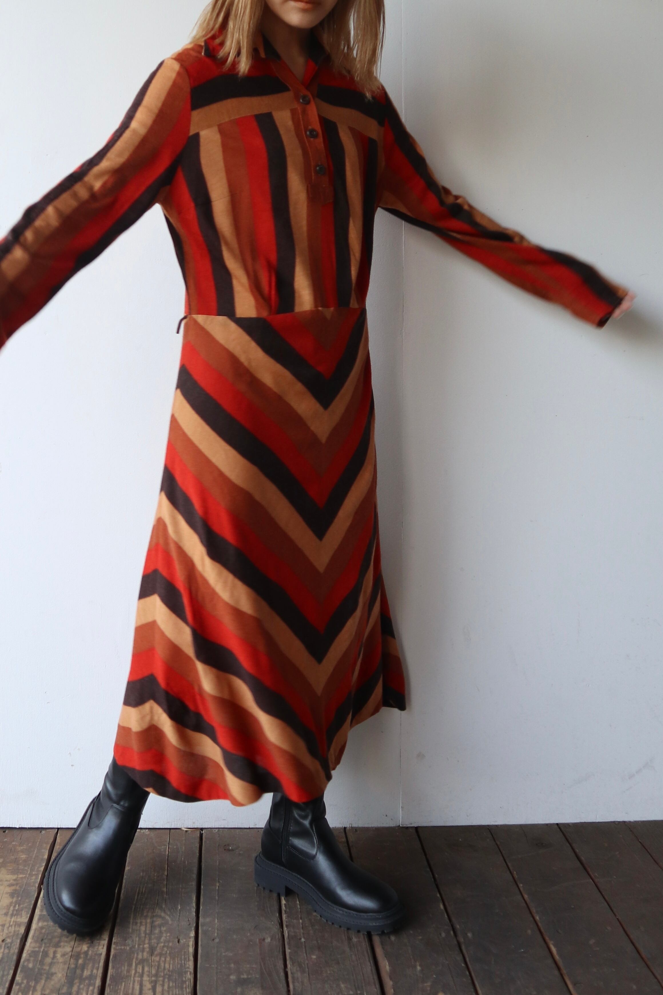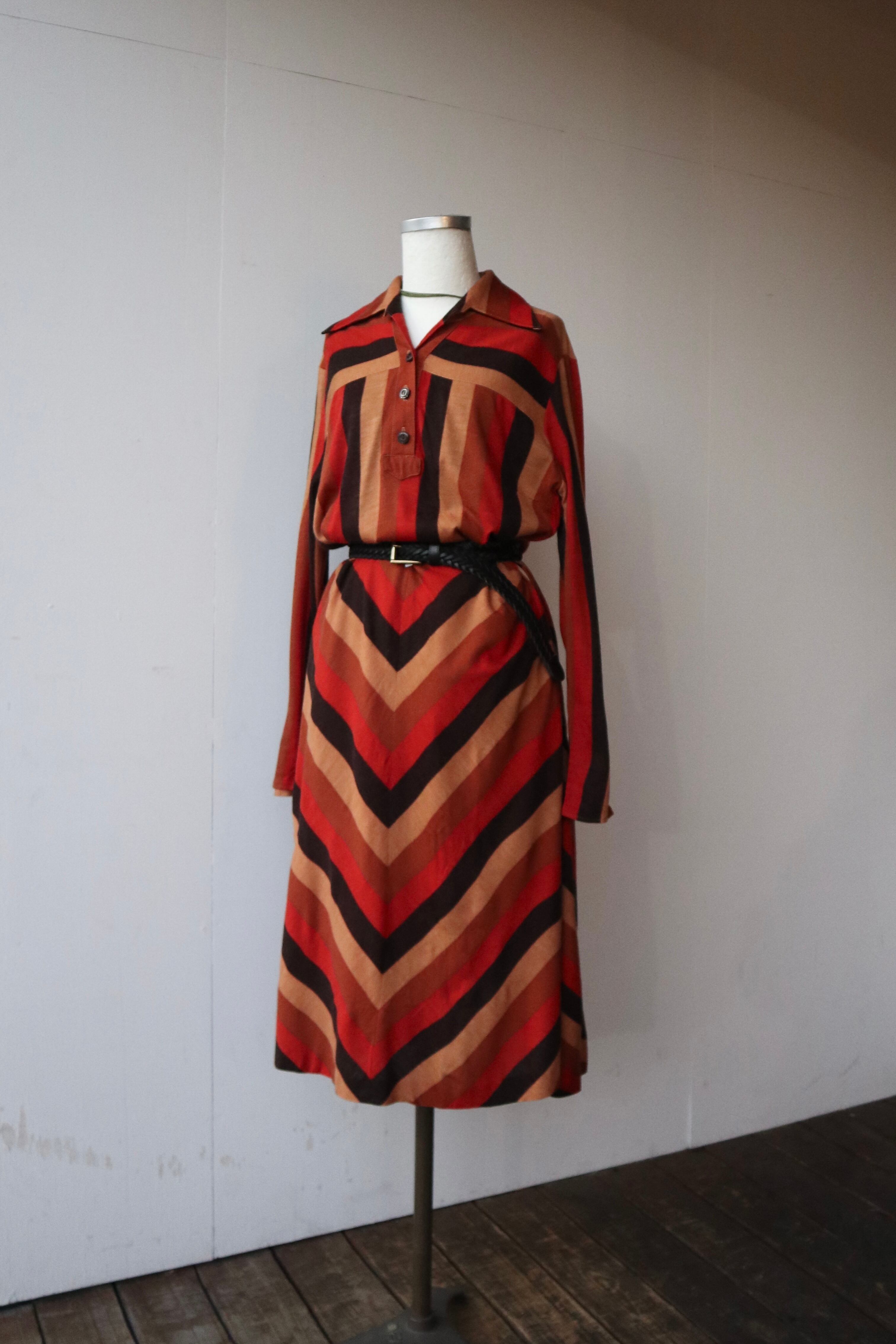 大柄なテキスタイルに、襟の形が大きくヴィンテージの風合いを楽しめるワンピース