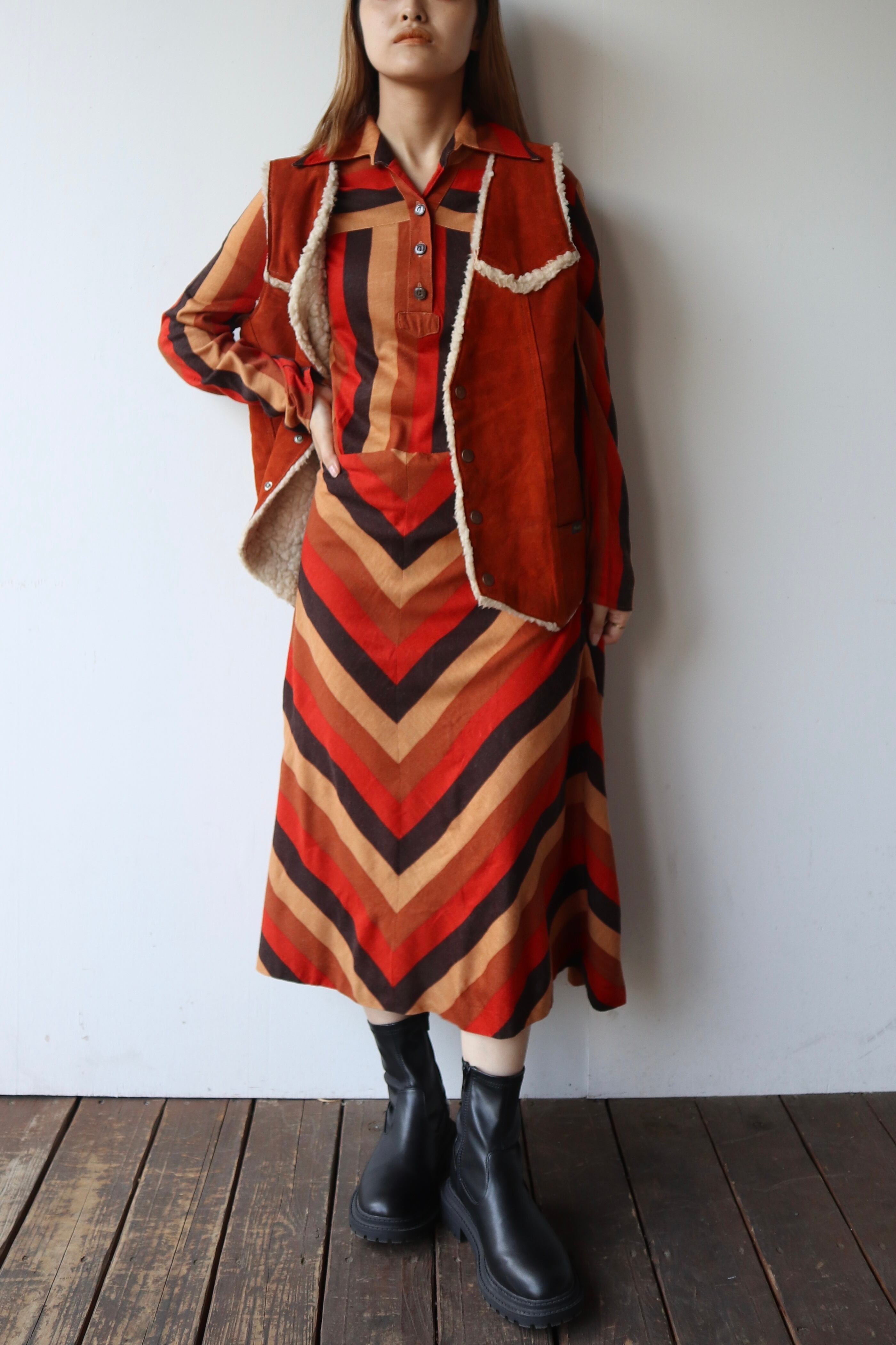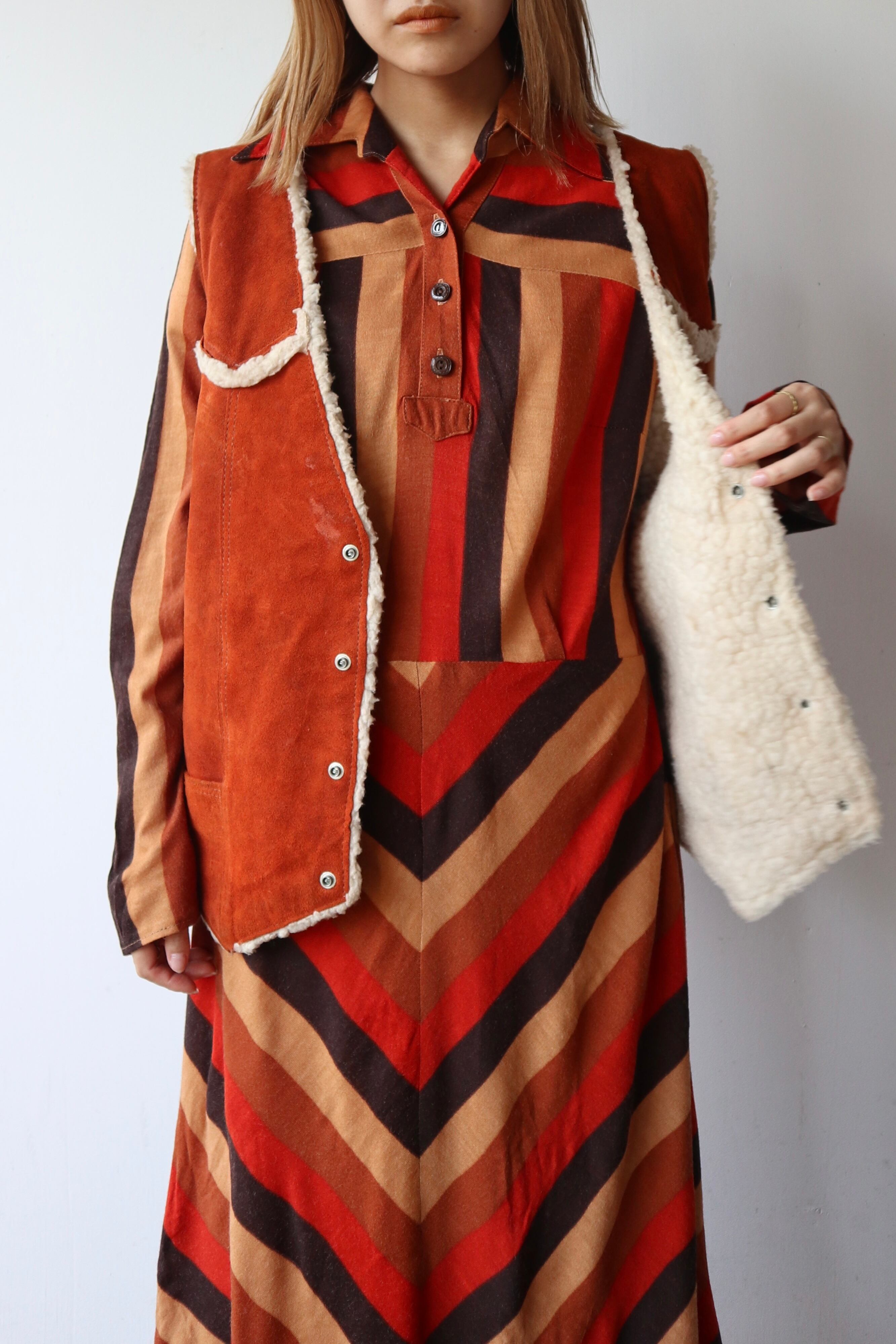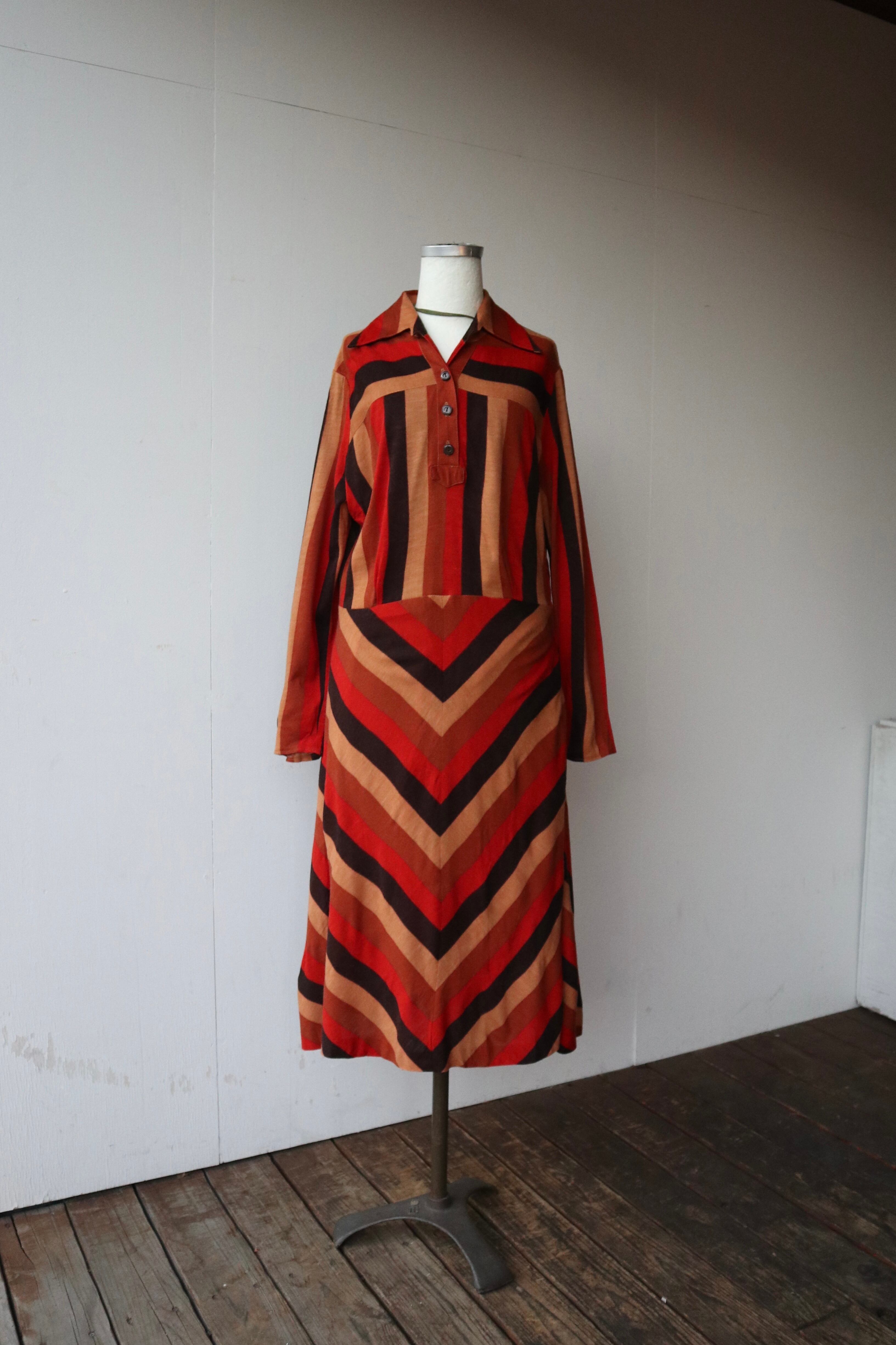 大柄なテキスタイルに、襟の形が大きくヴィンテージの風合いを楽しめるワンピース