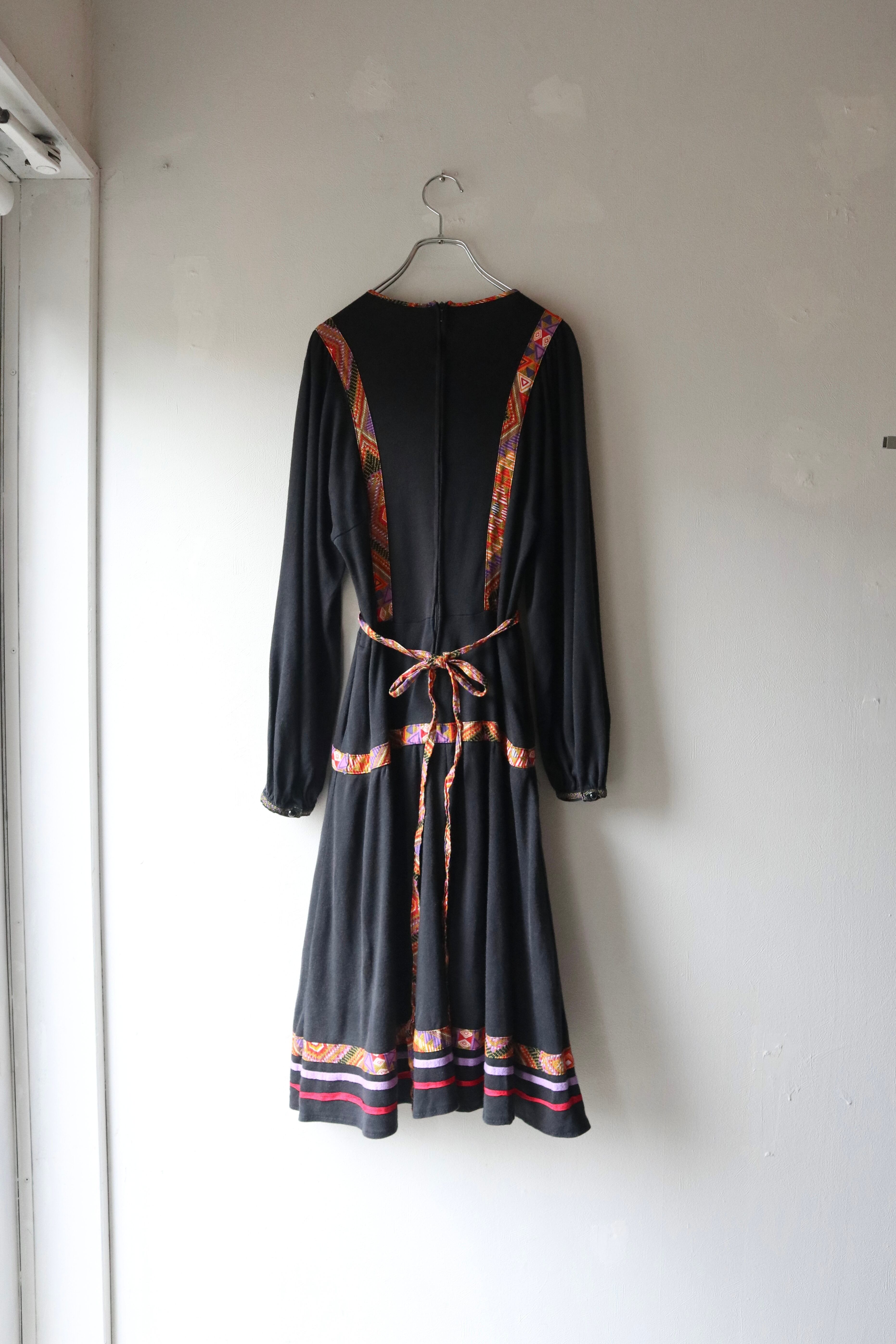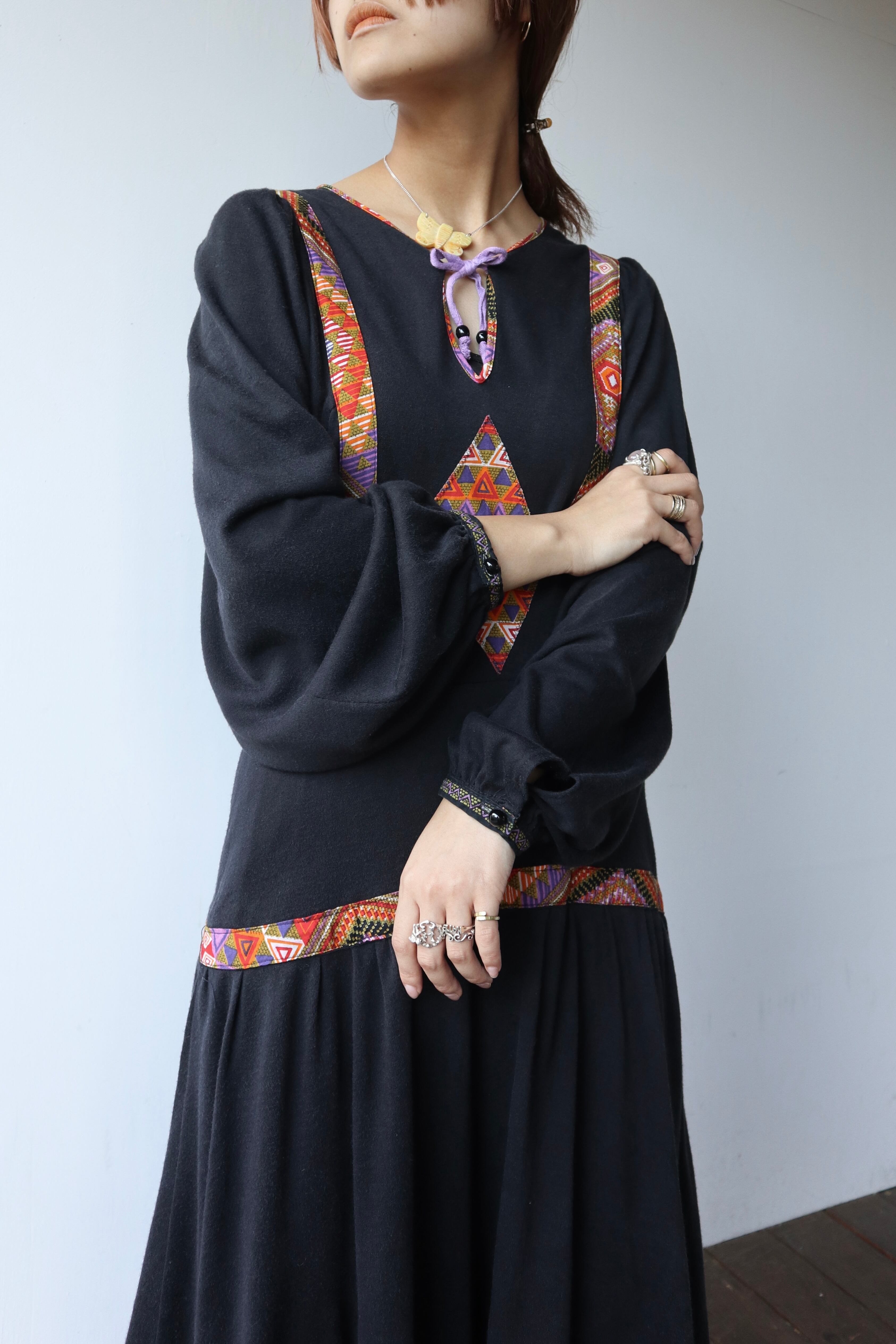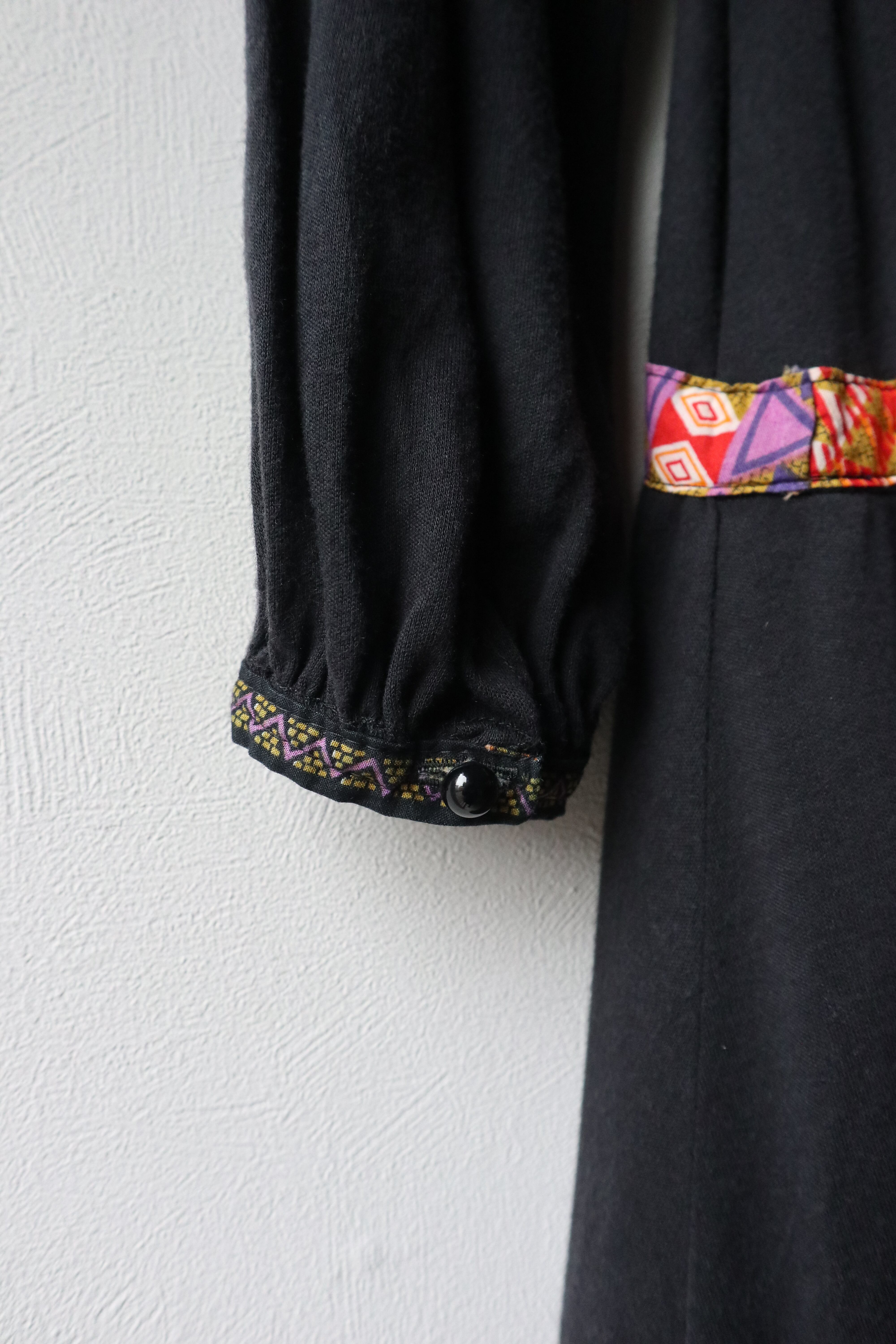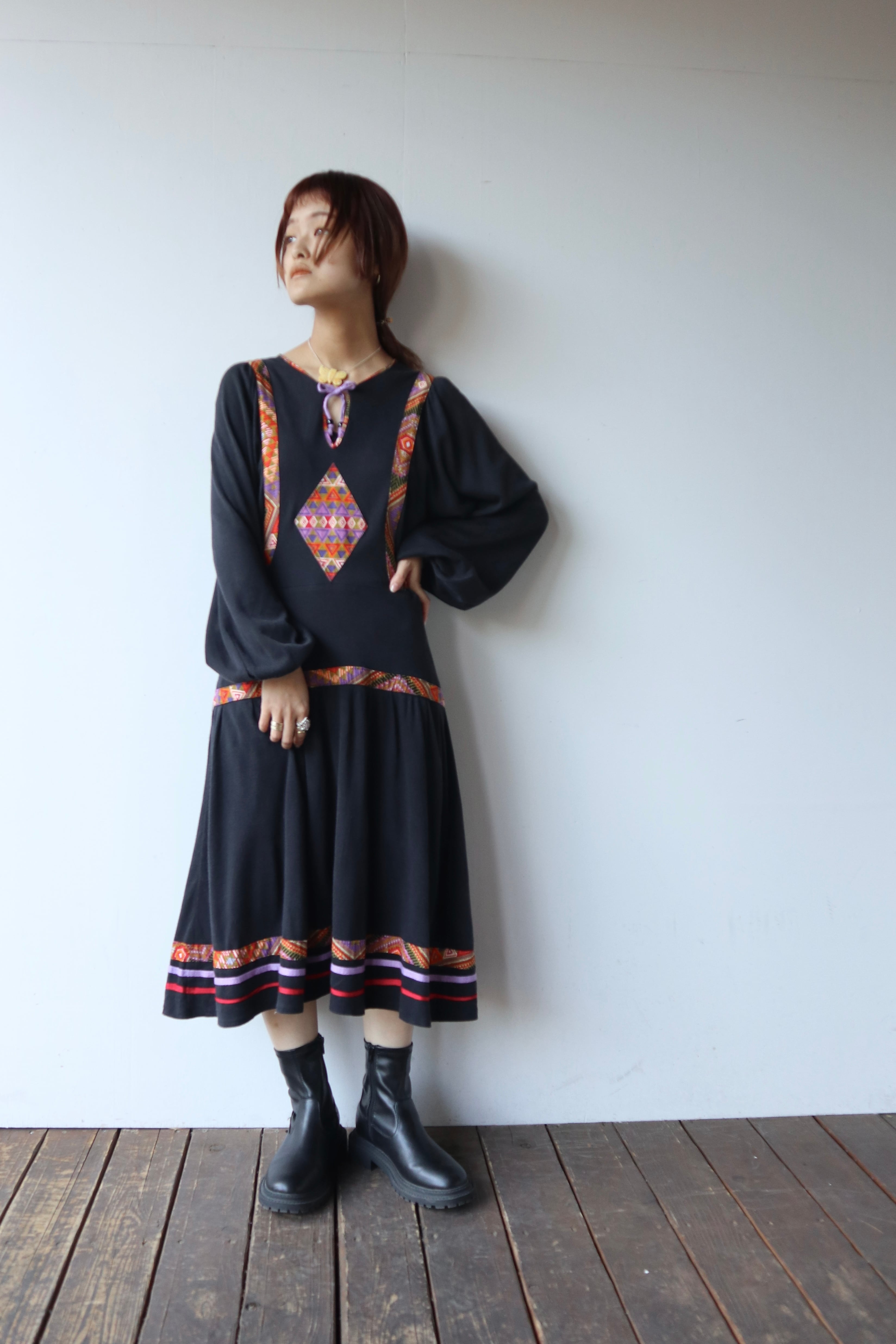 ブラックカラーにエスニック柄が程よくデザインされたワンピース