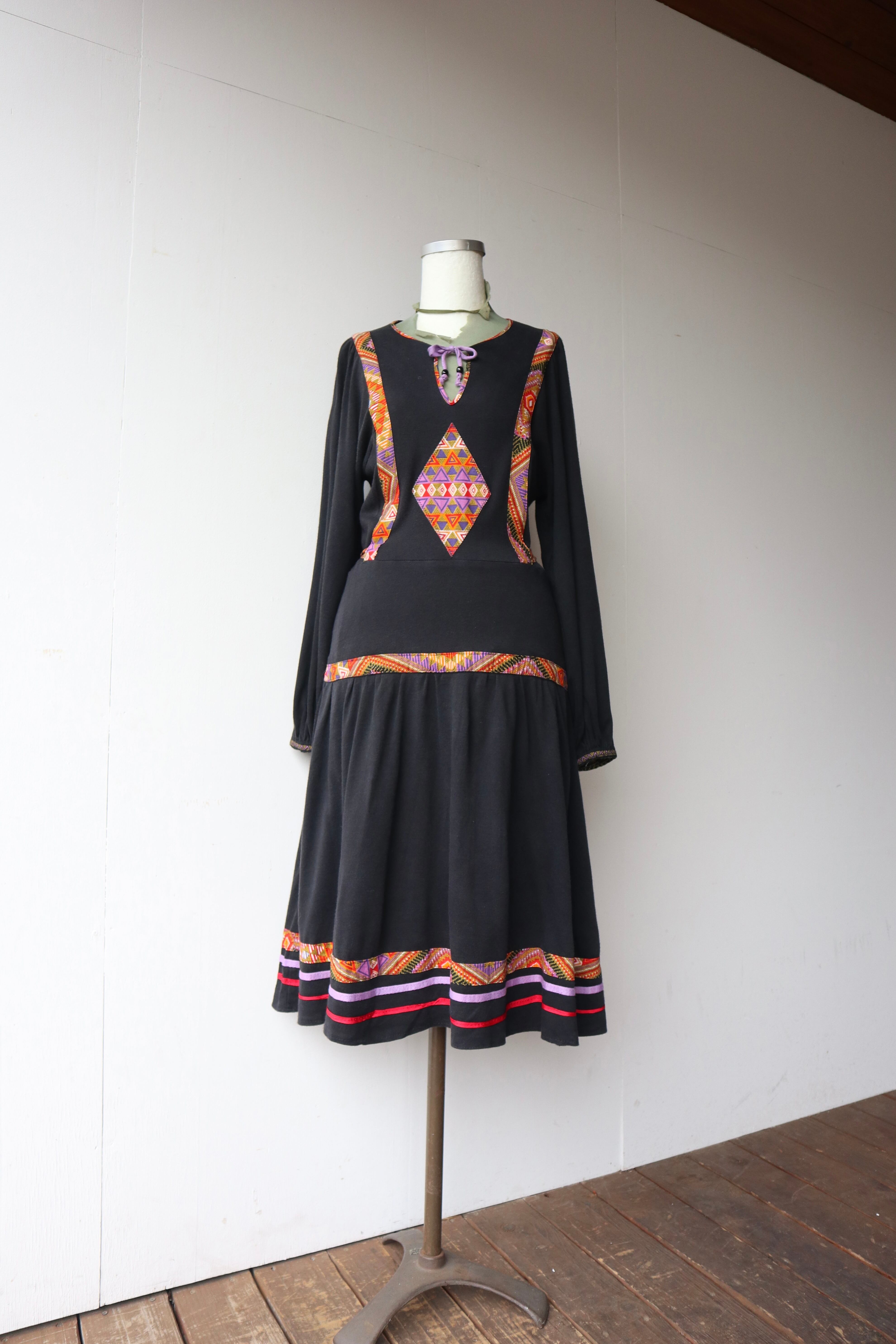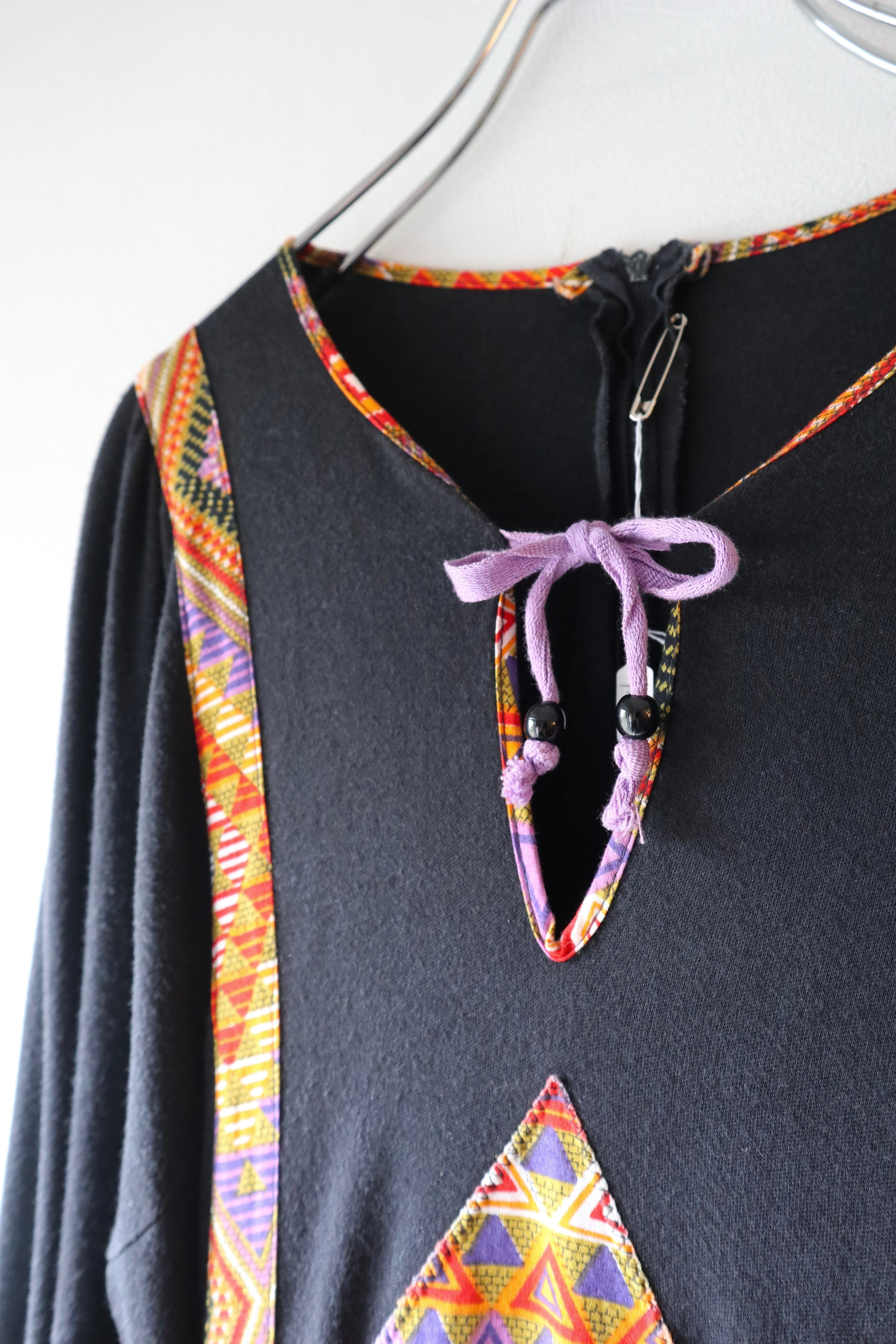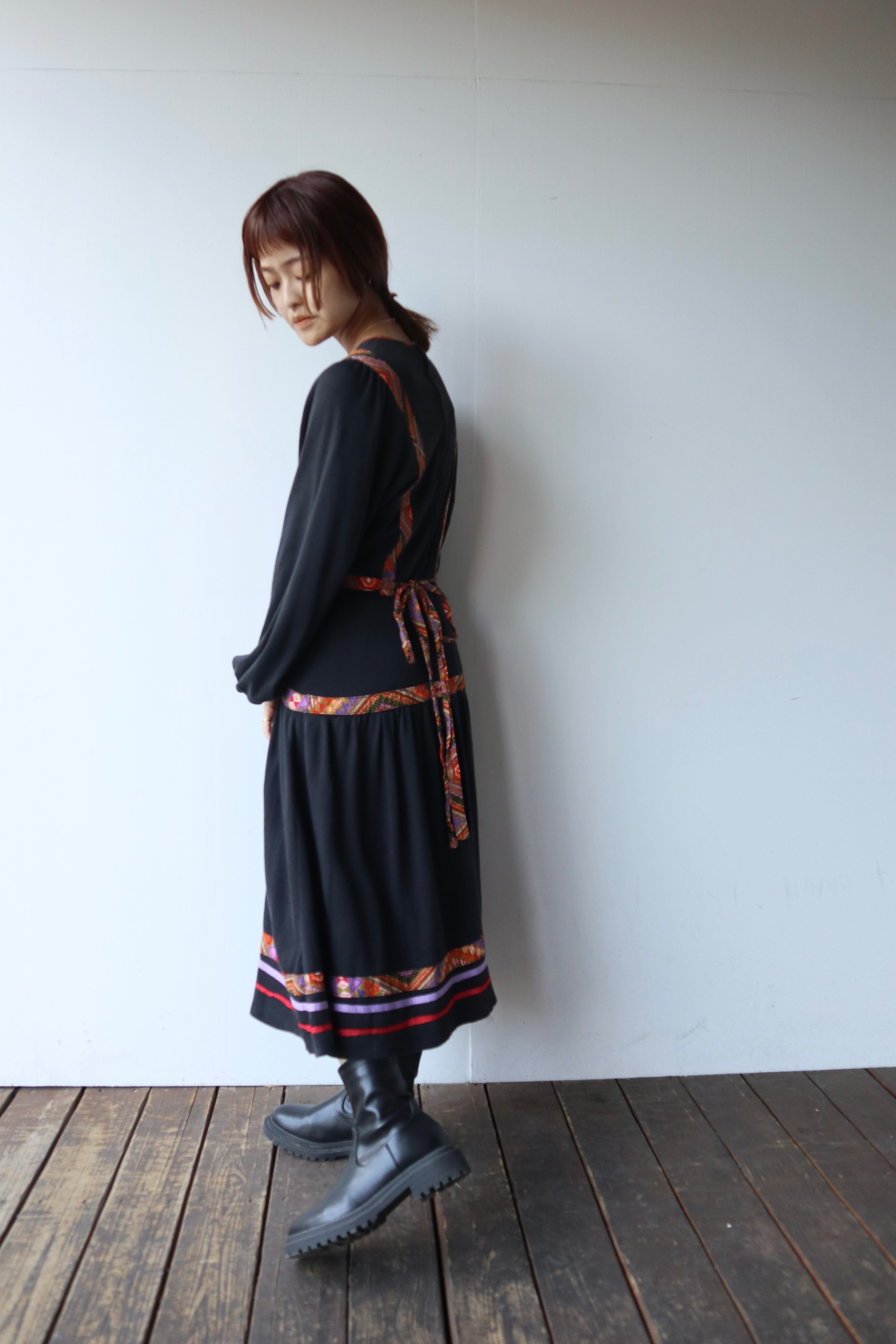 ブラックカラーにエスニック柄が程よくデザインされたワンピース