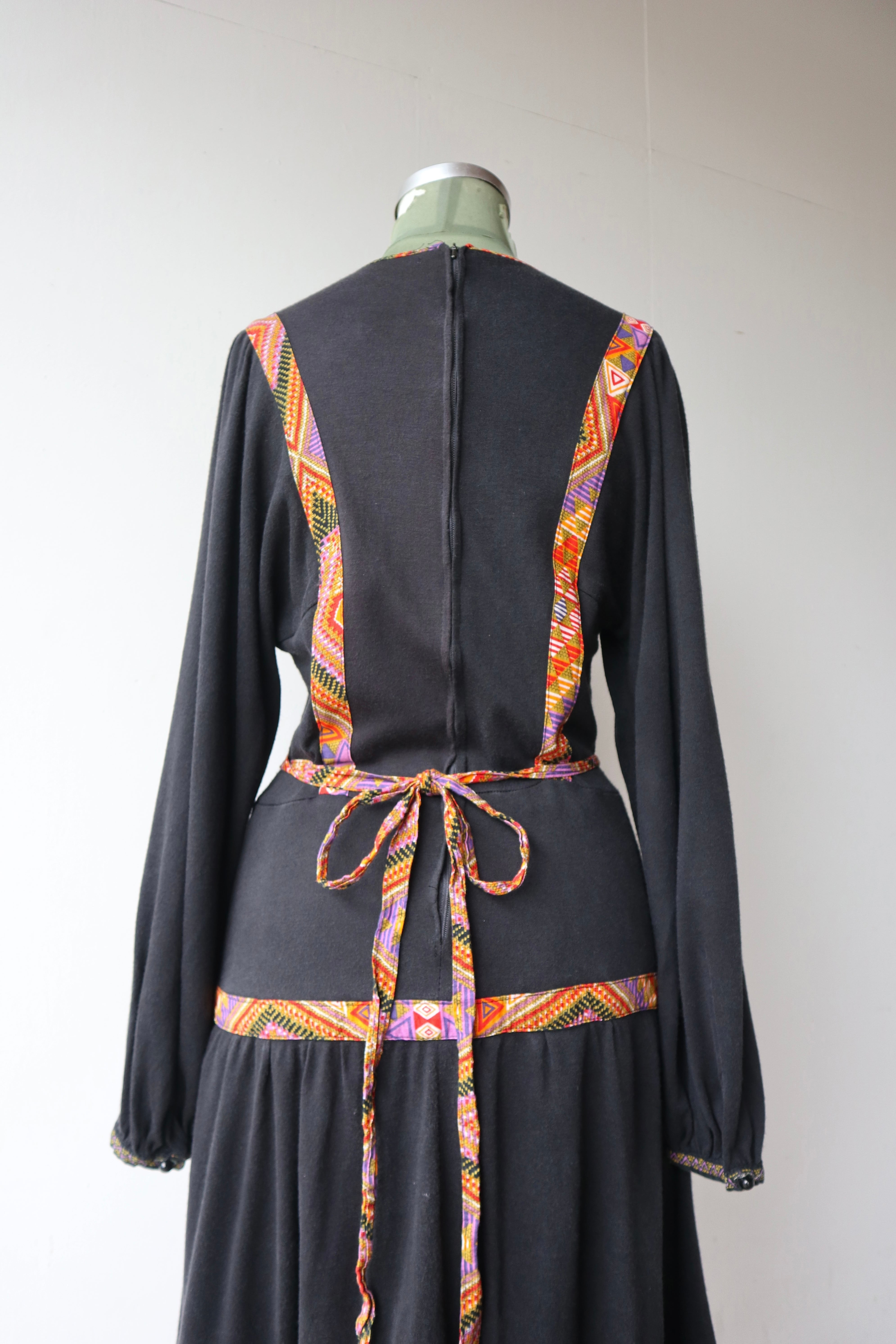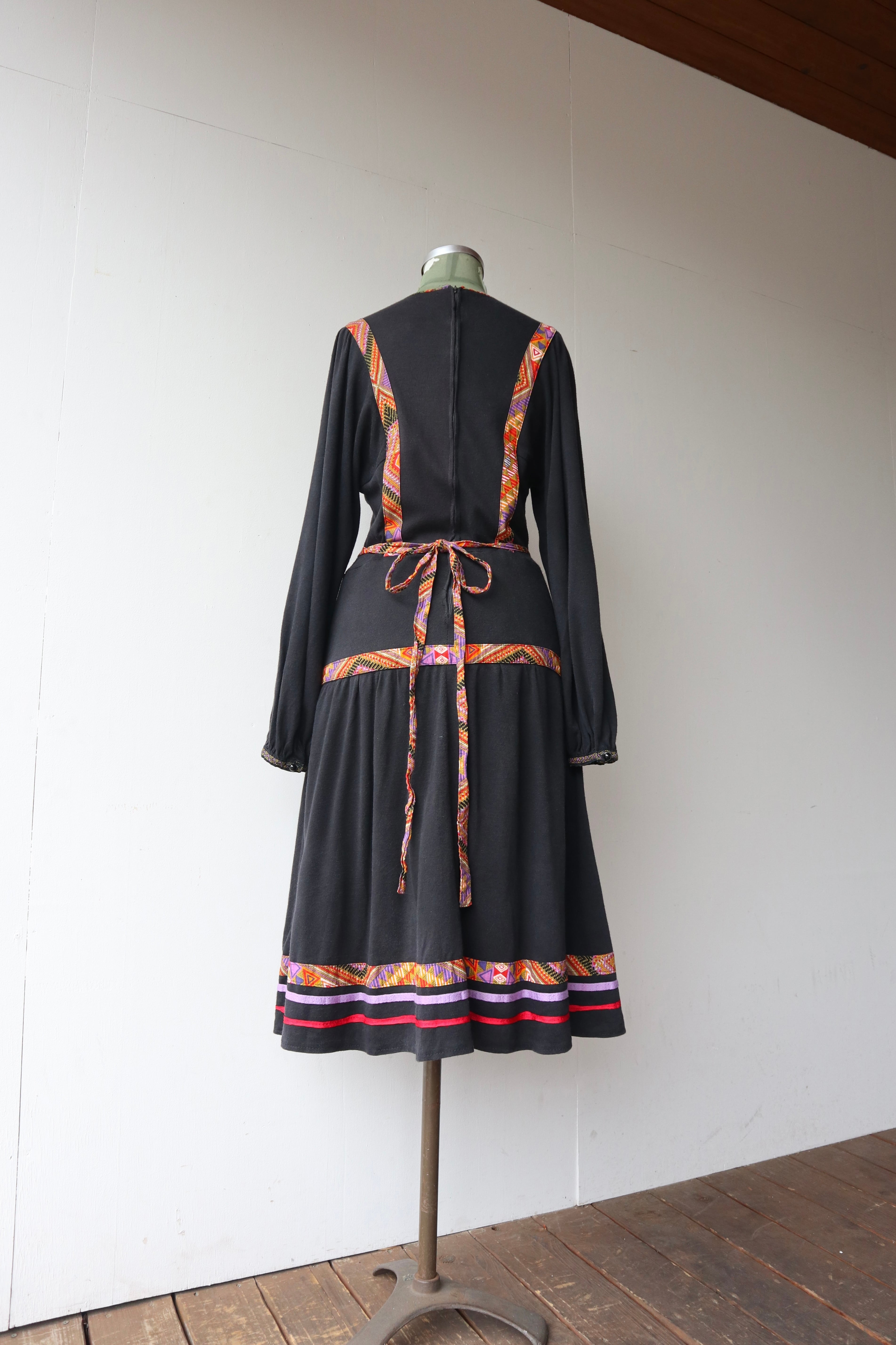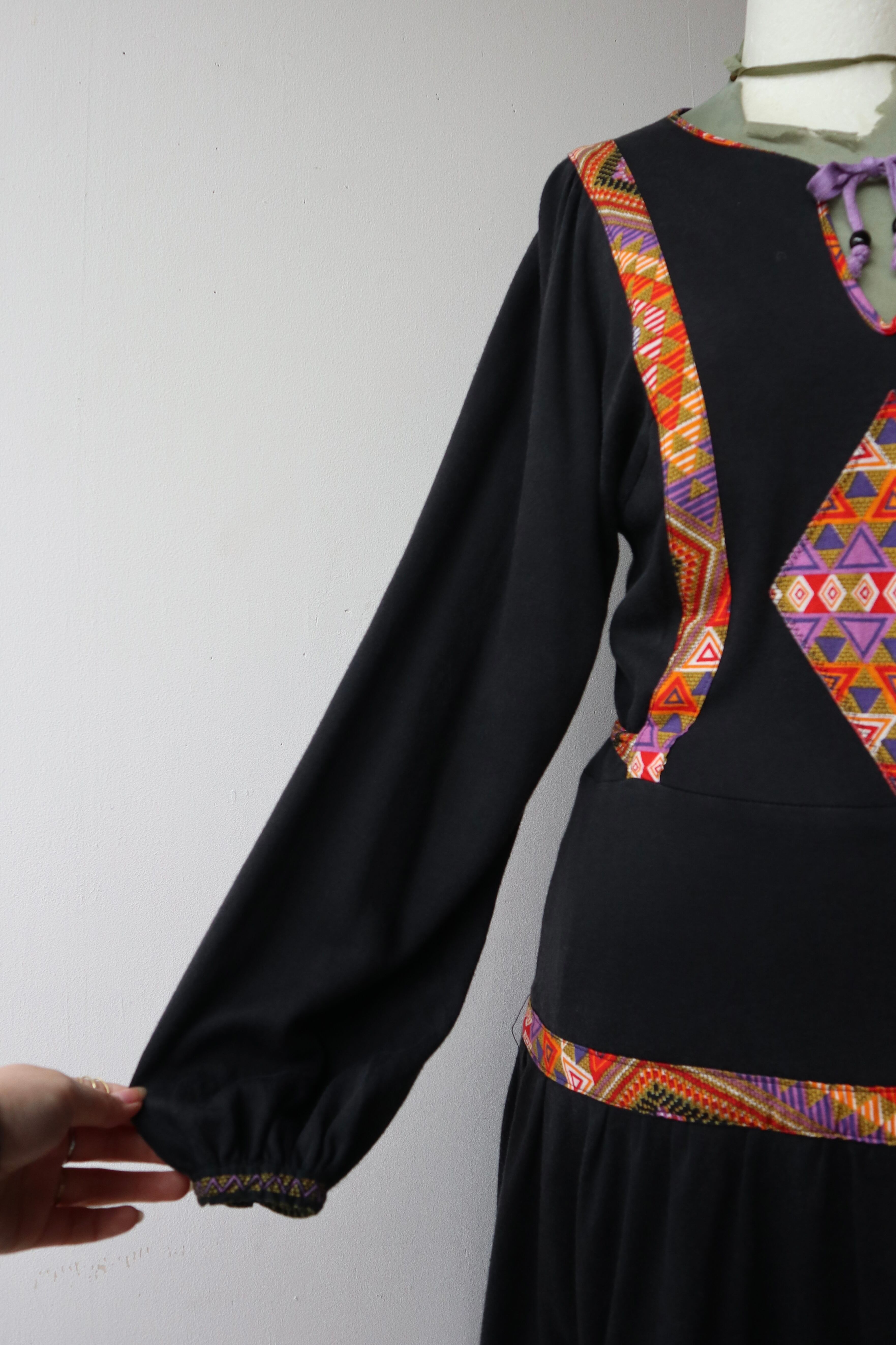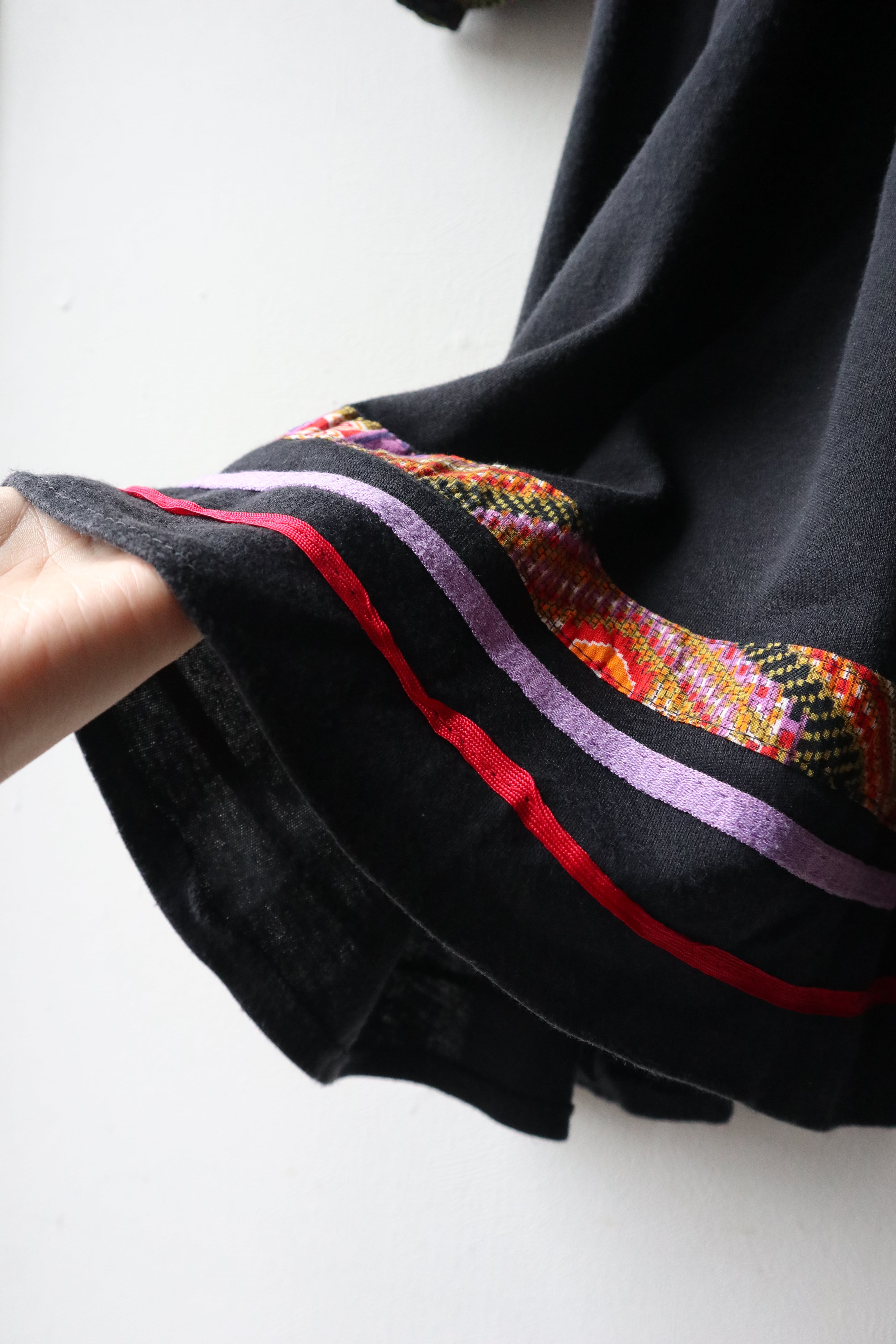 ブラックカラーにエスニック柄が程よくデザインされたワンピース
