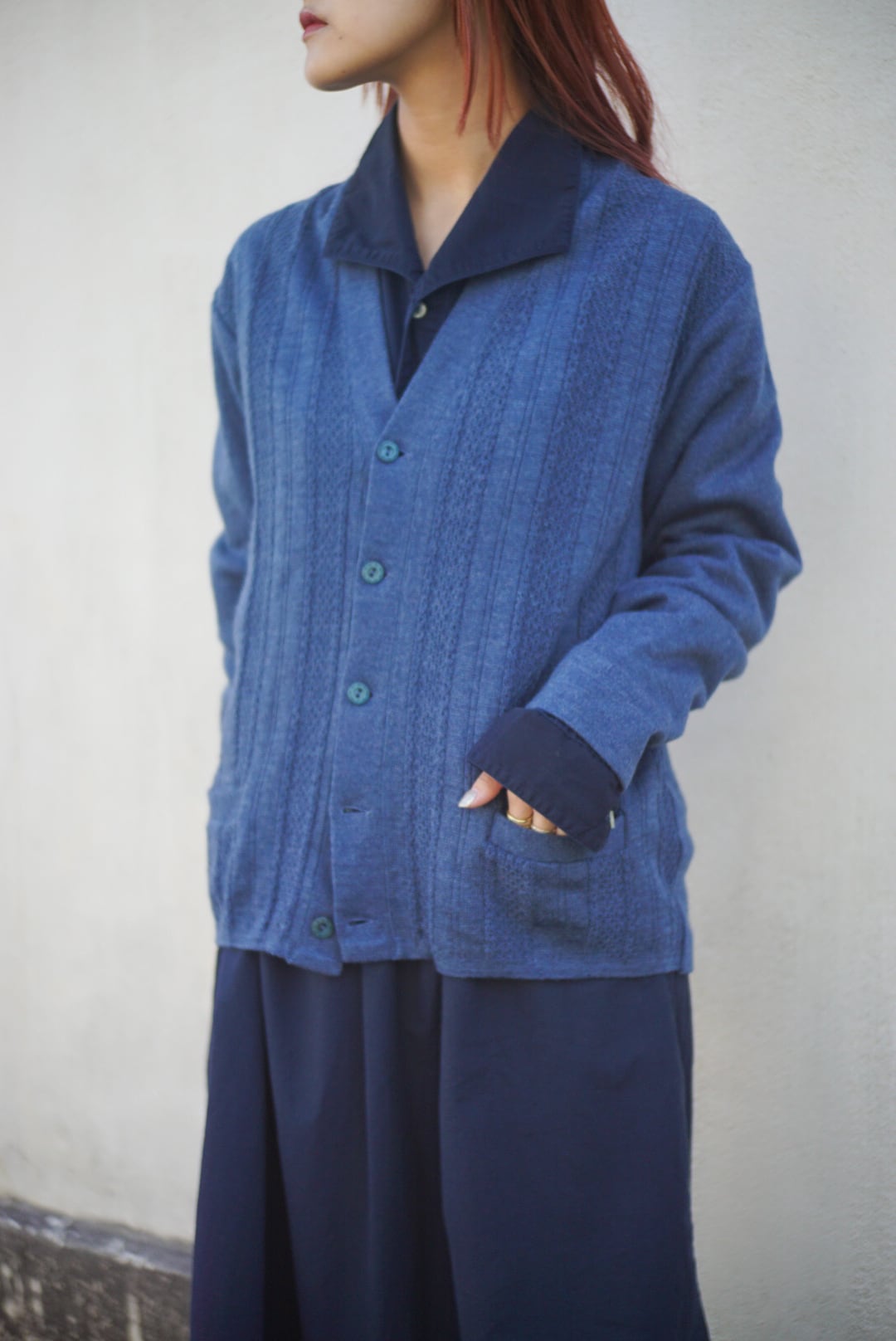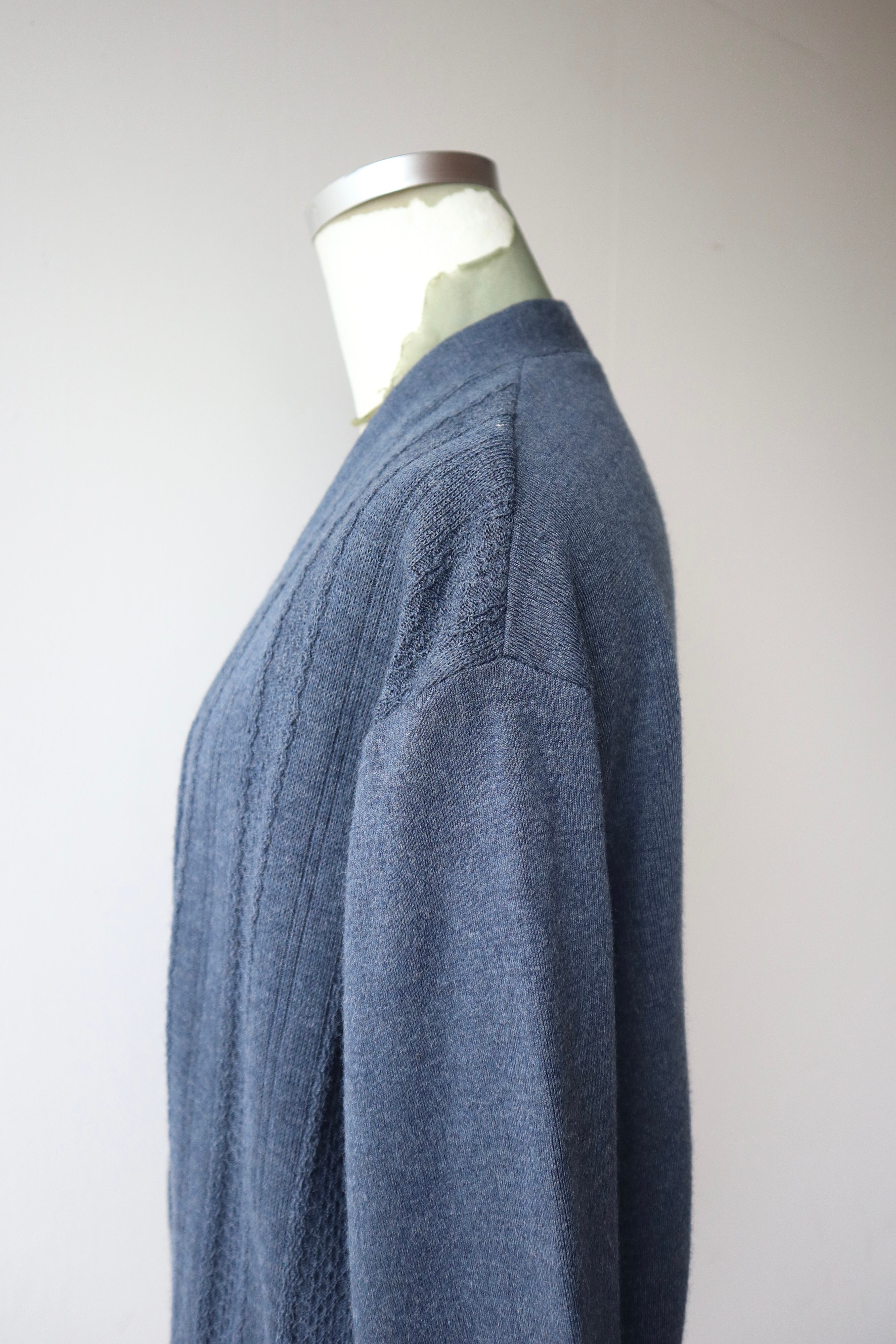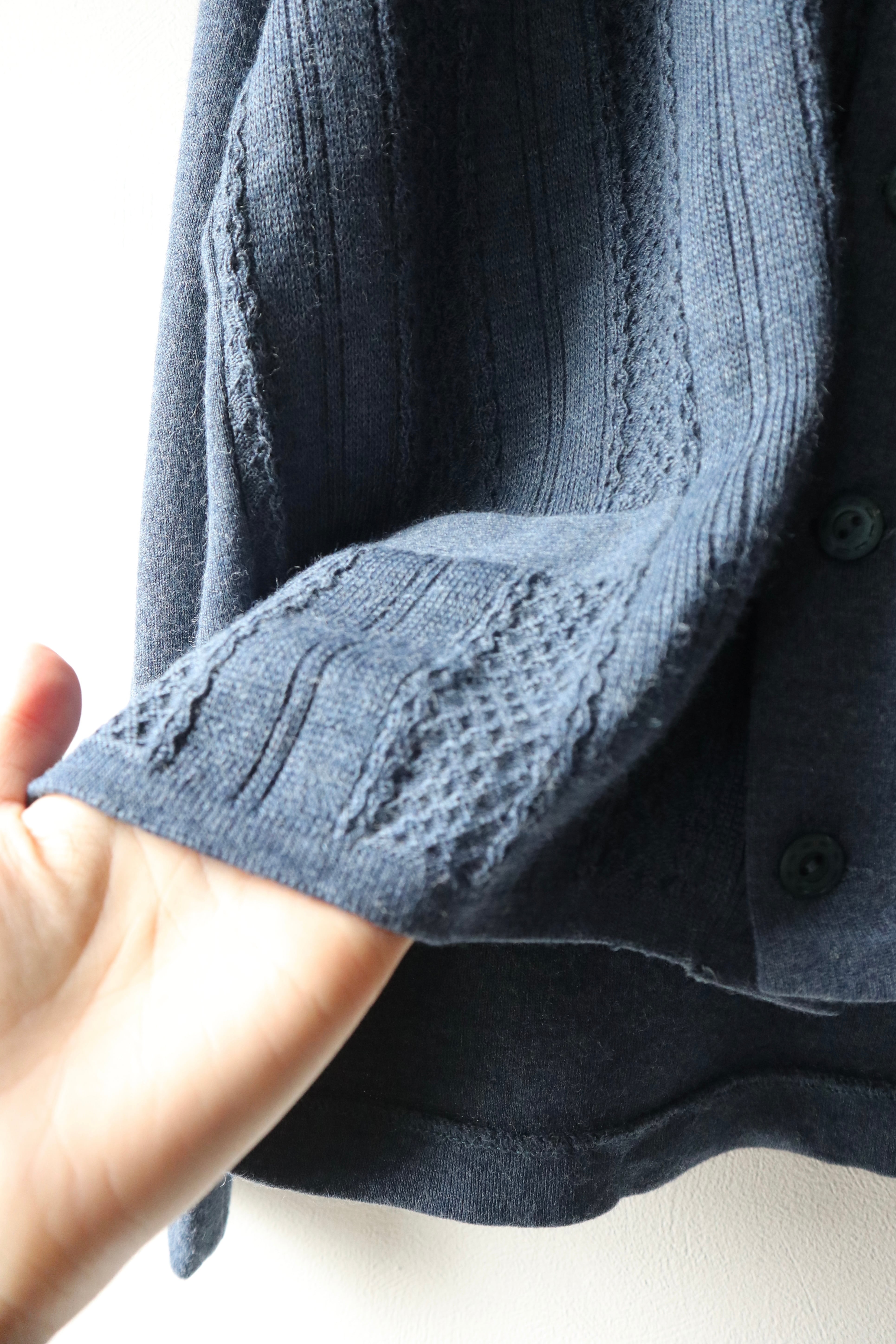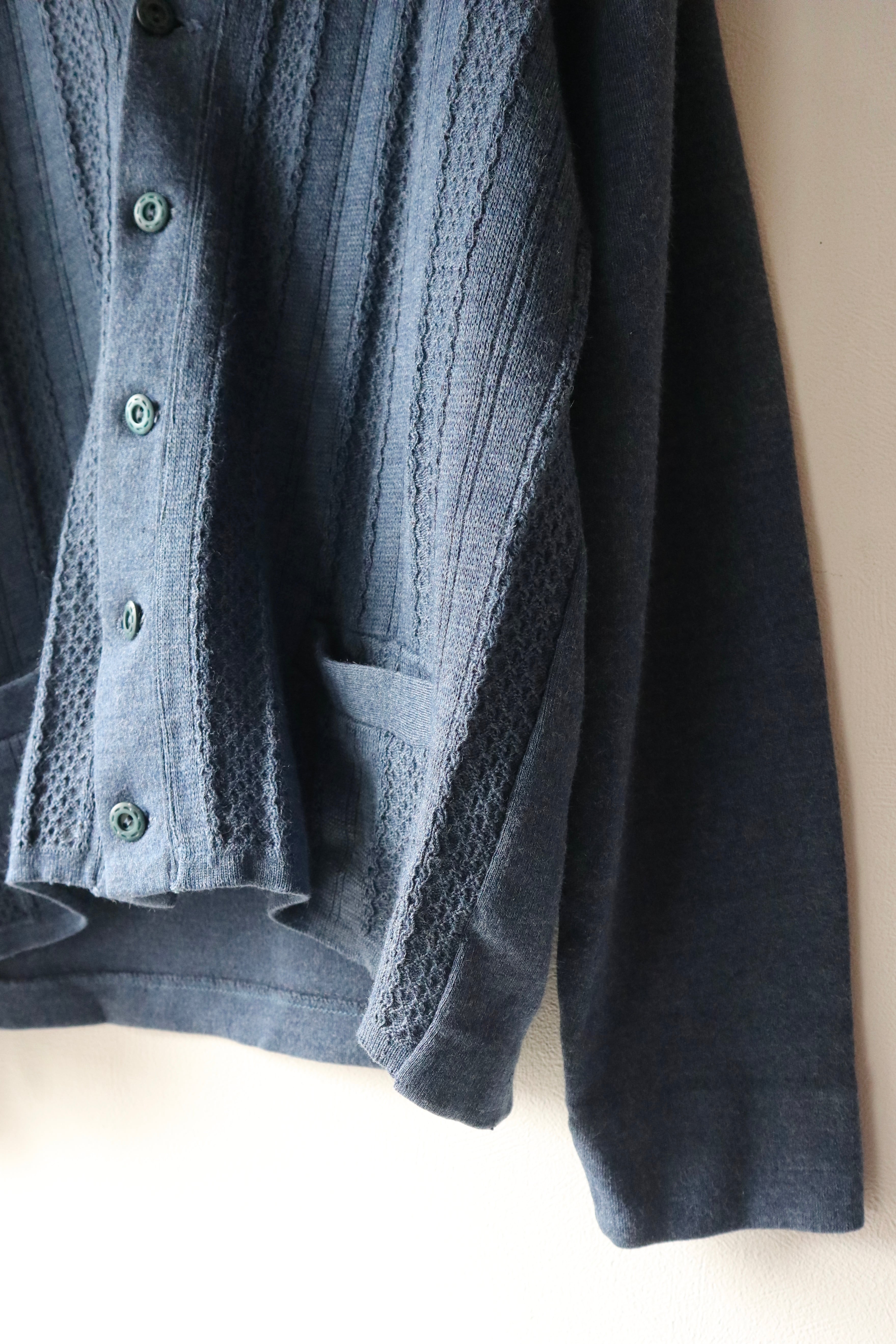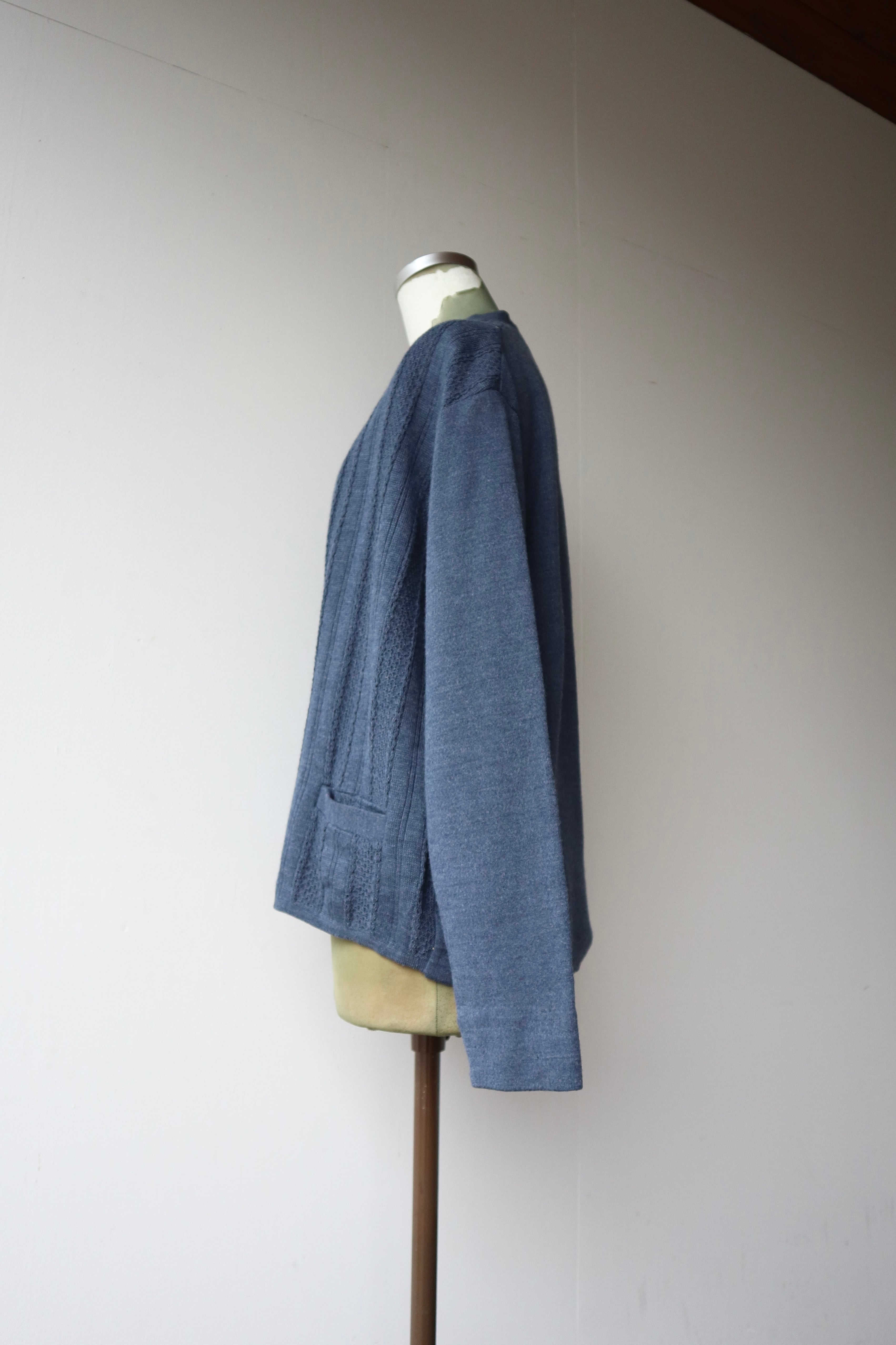くすんだブルーカラーの少しハリのある上品なウール混ニットカーディガン