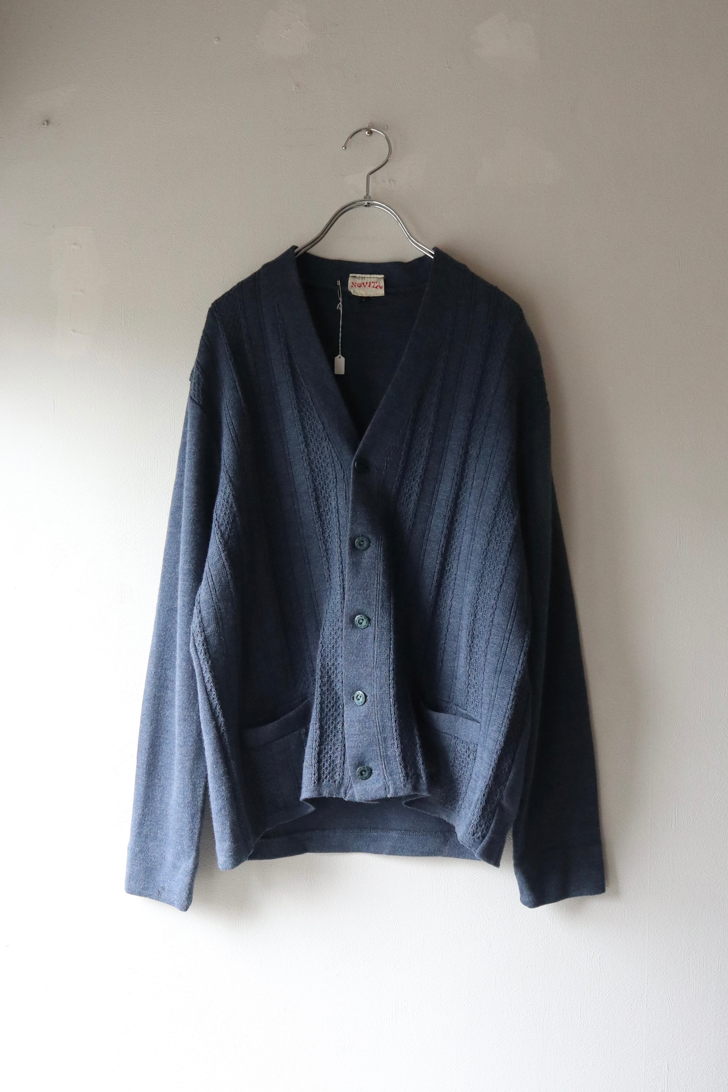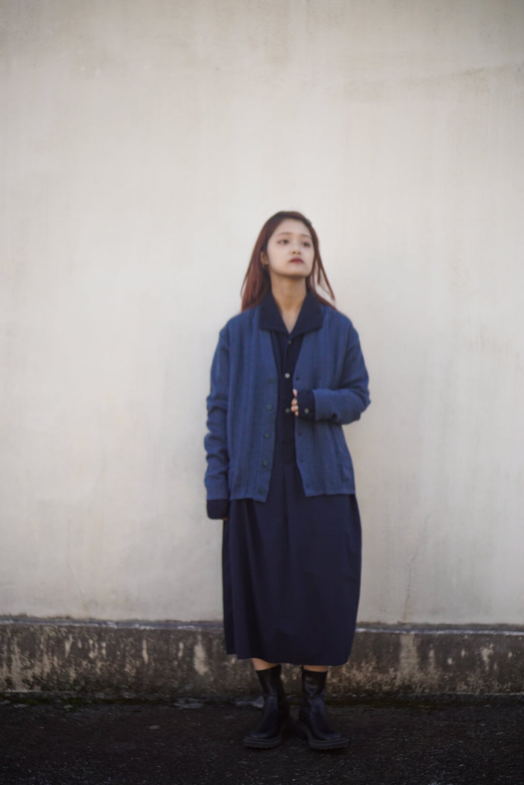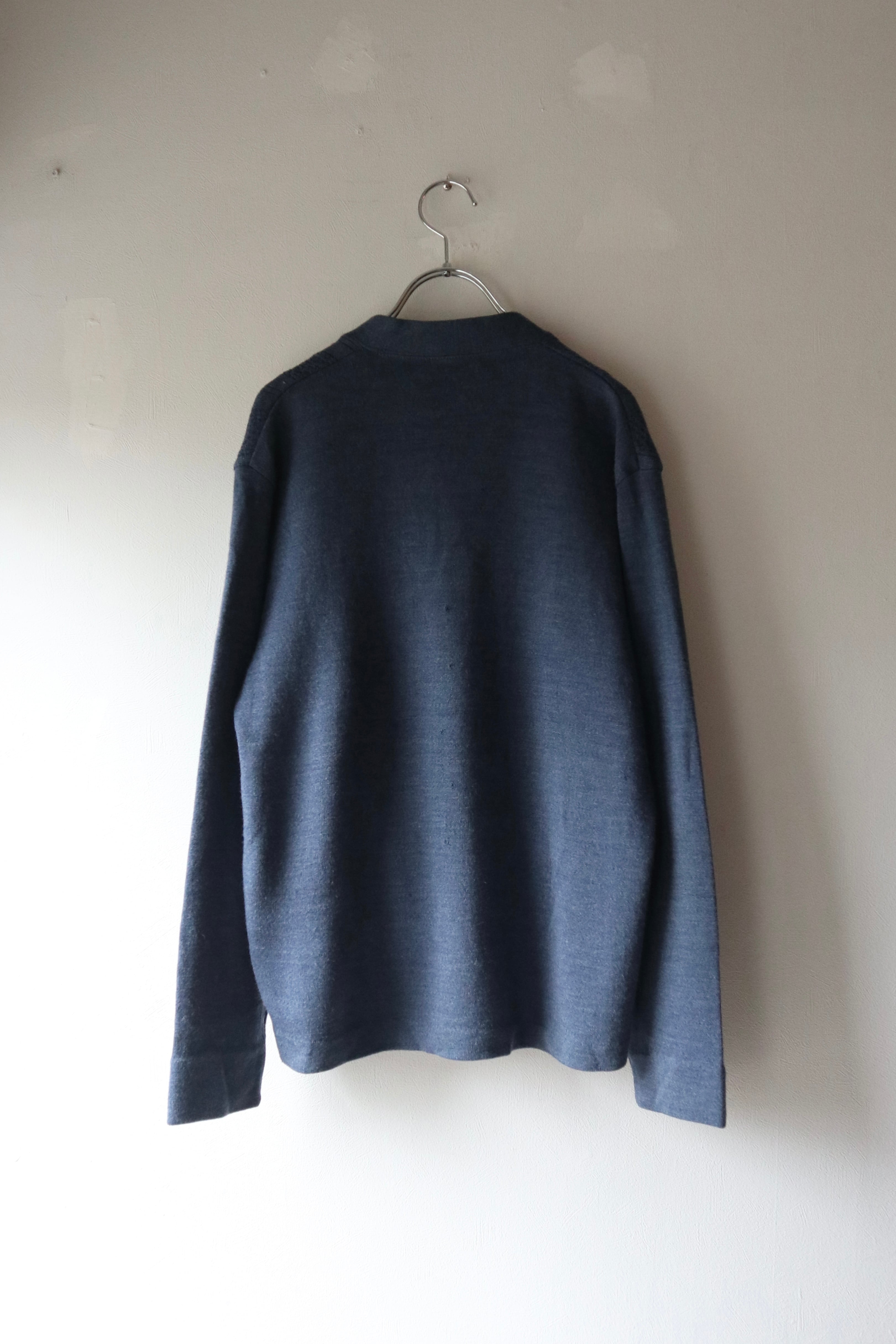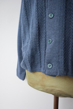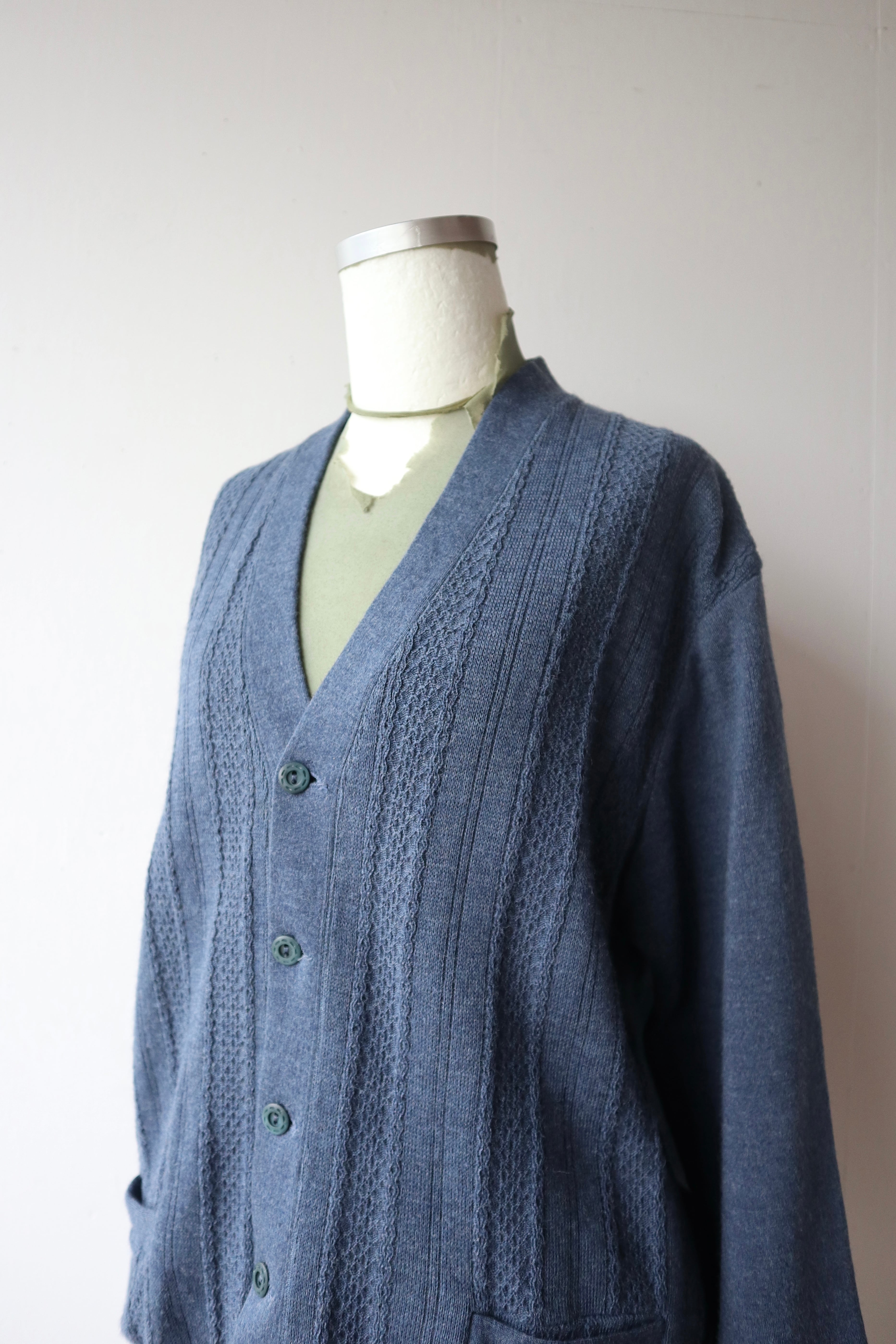くすんだブルーカラーの少しハリのある上品なウール混ニットカーディガン
