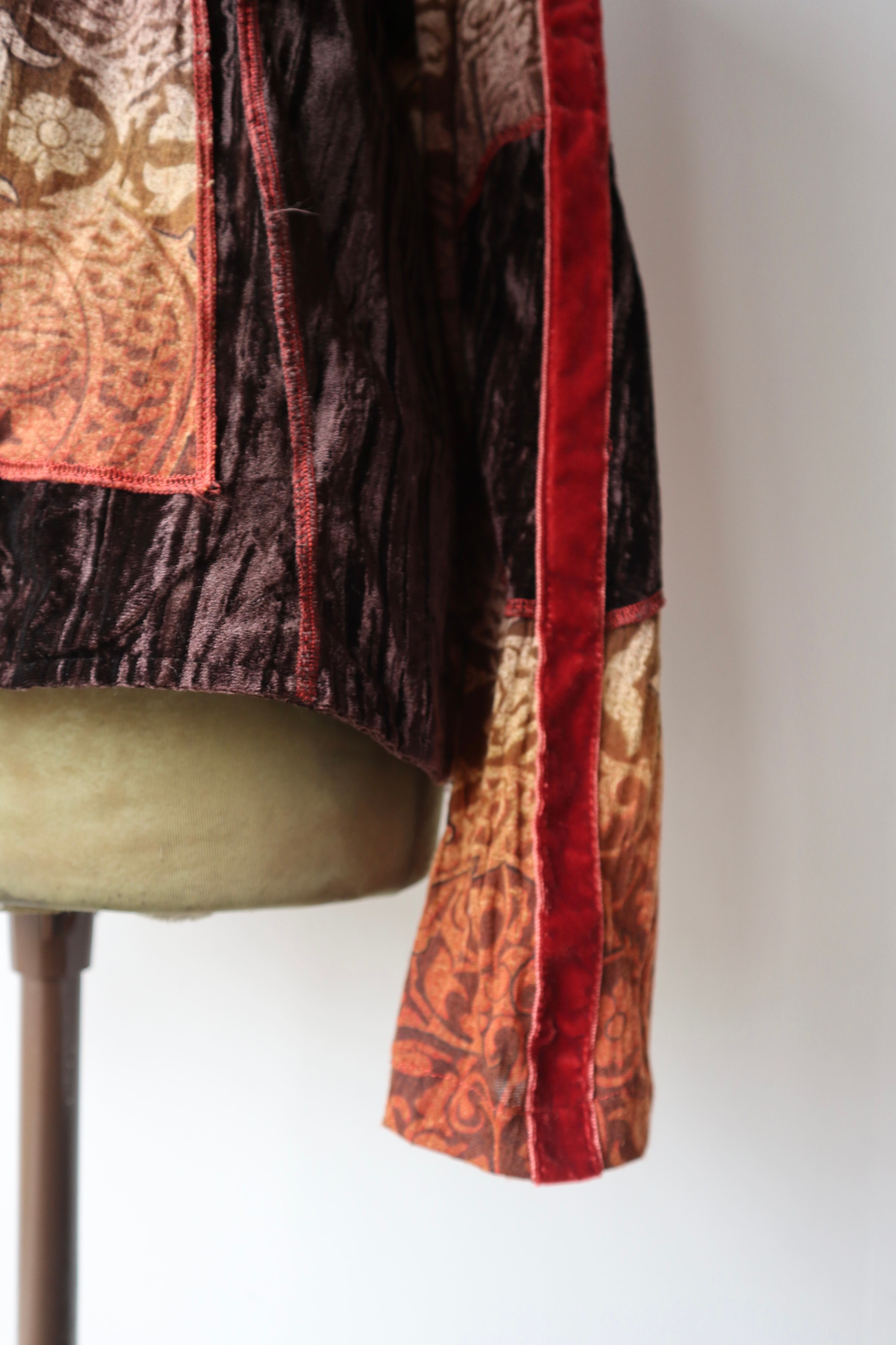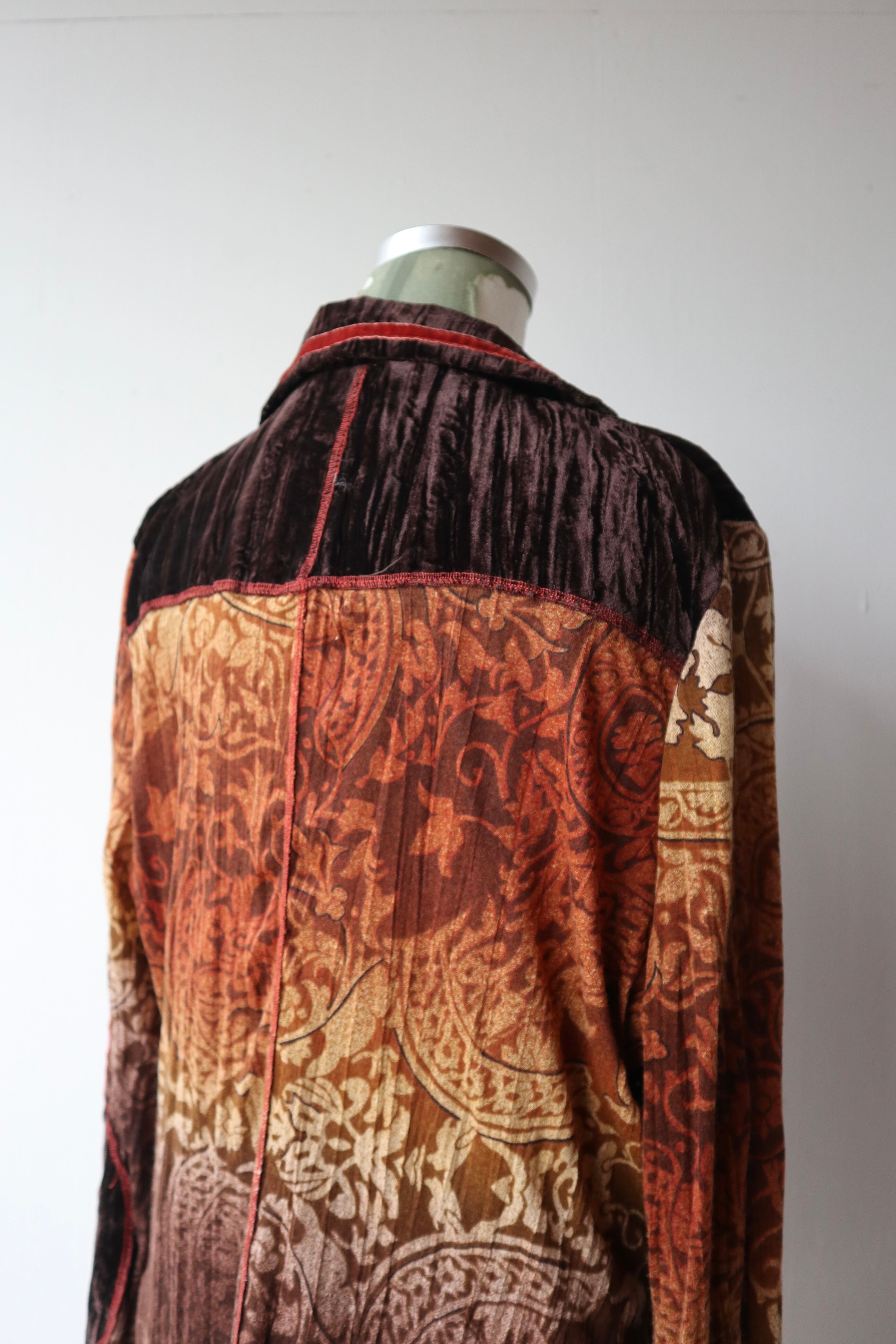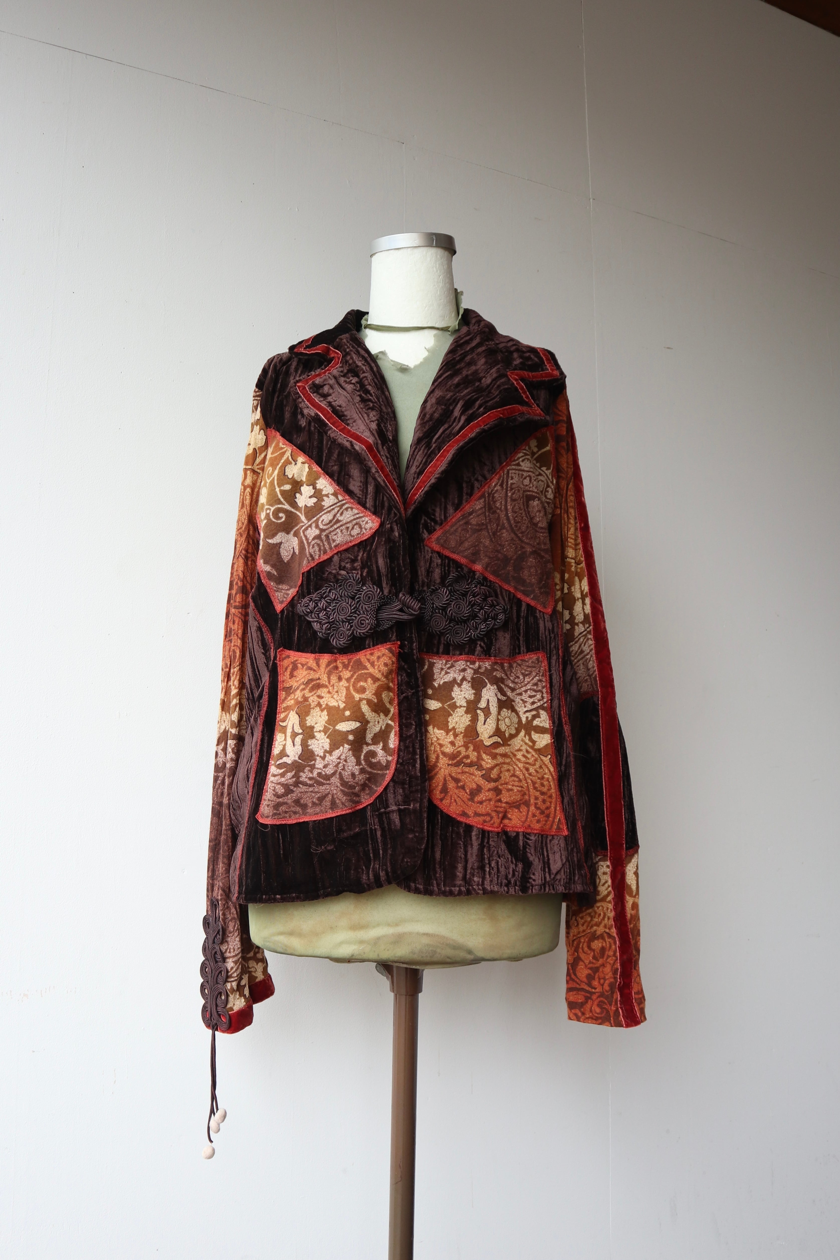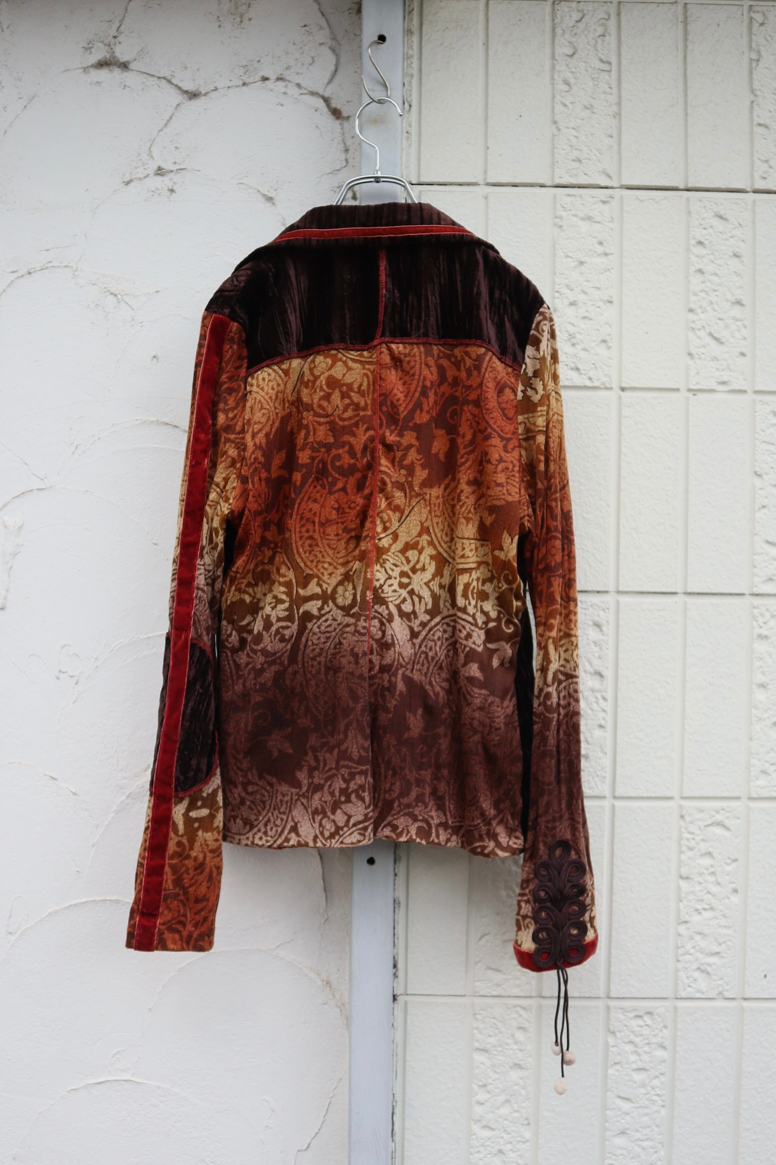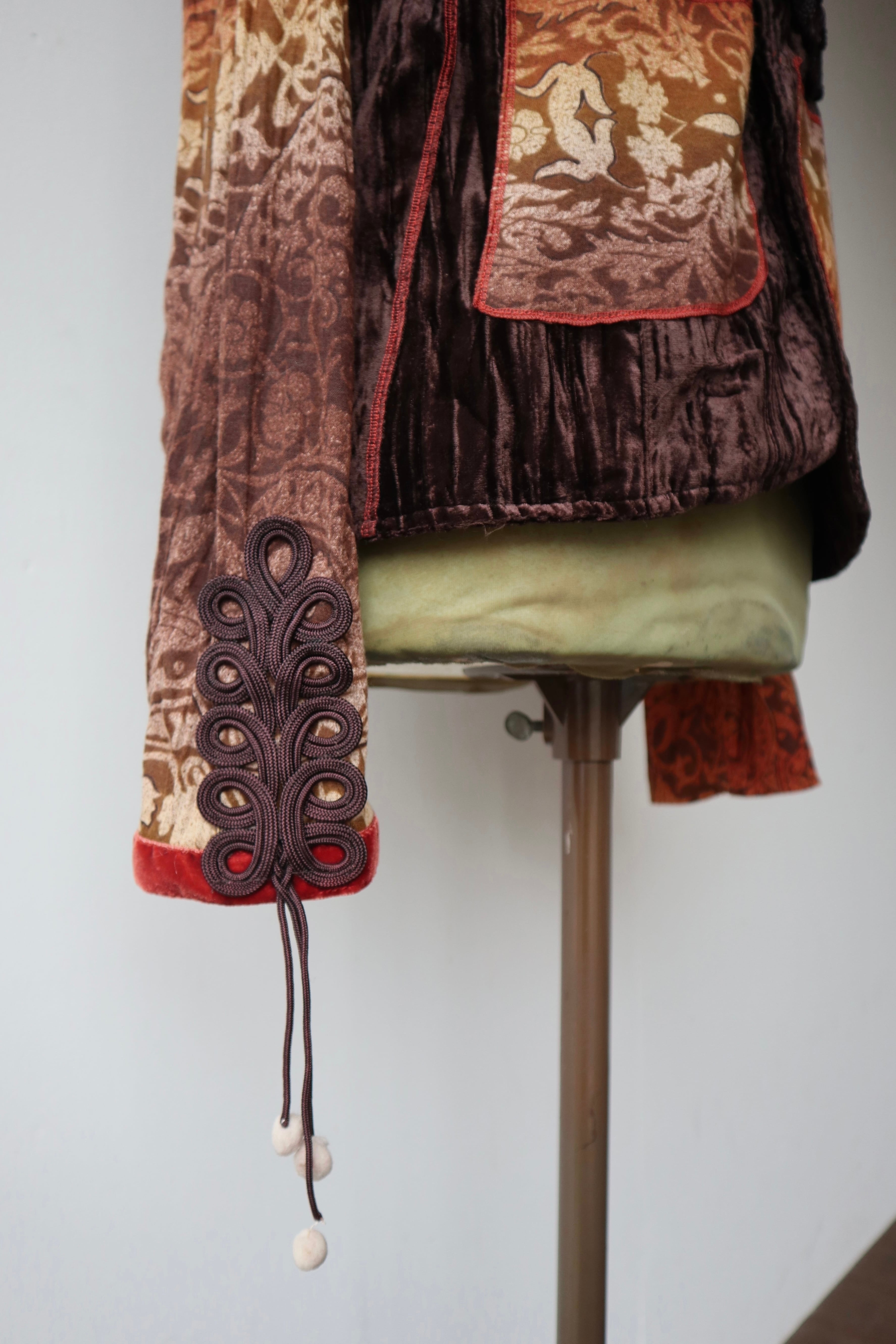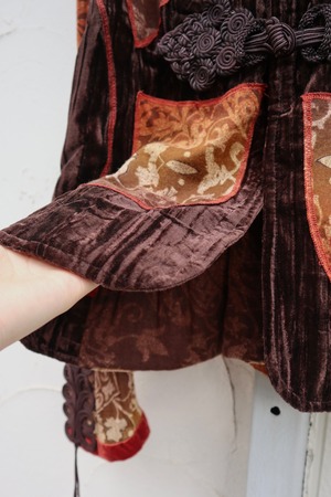 深いブラウンをベースに、赤やゴールドの模様が切り替えられ、クラシカルで華やかな雰囲気に仕上がっています