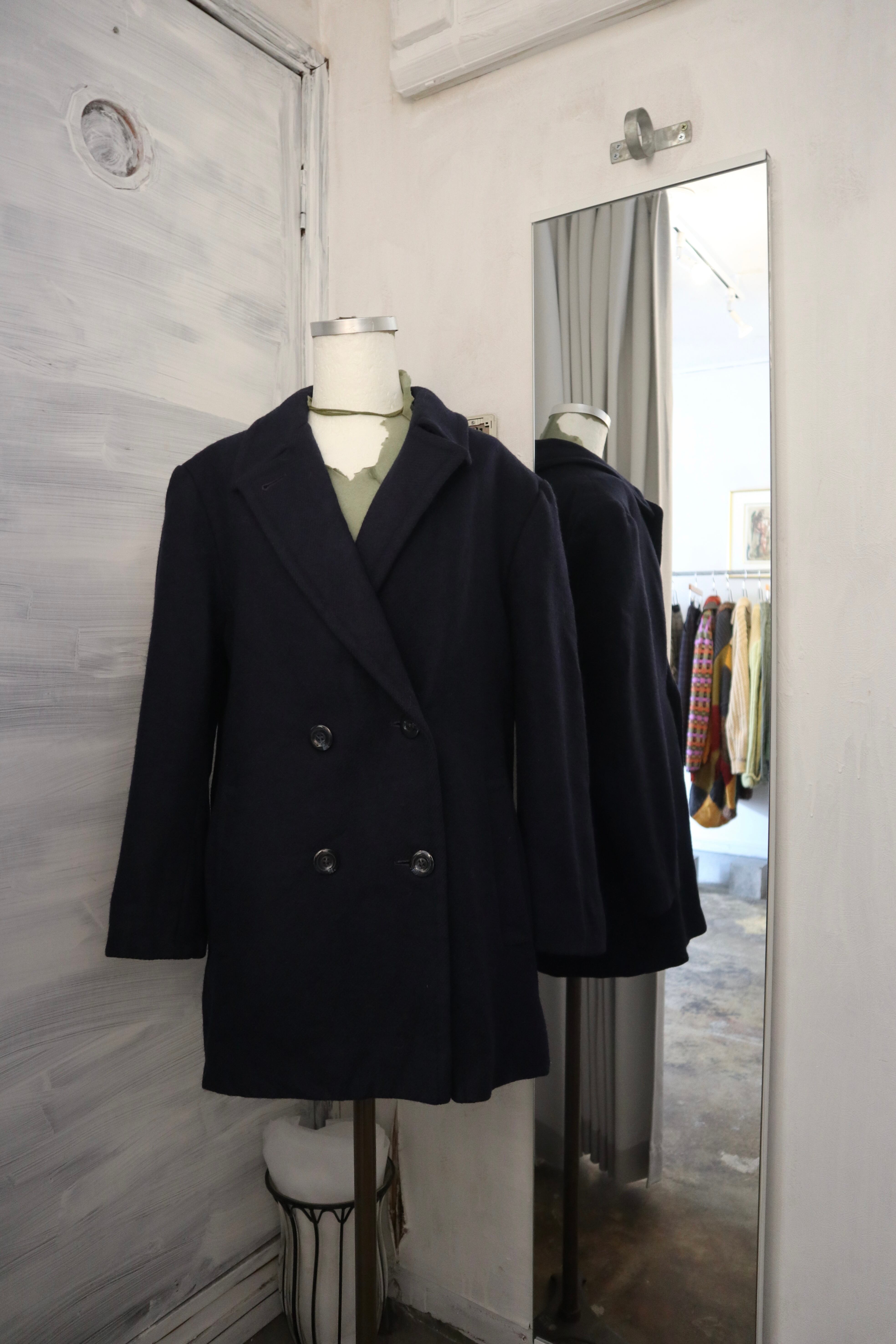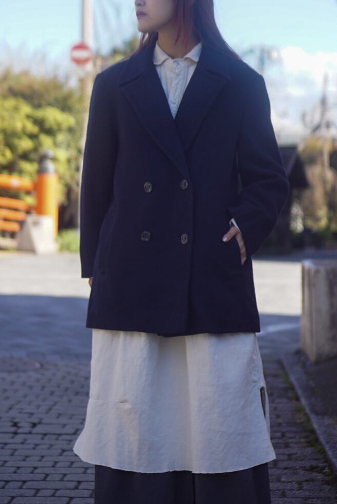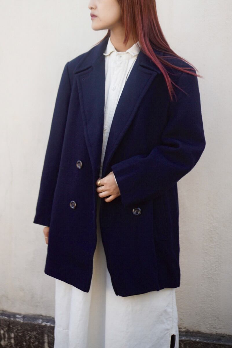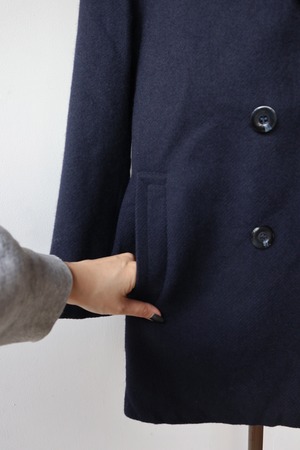 ウール素材で裏地付きのデザインが暖かく着用でき、定番のネイビーカラーで幅広い着こなしに活躍します