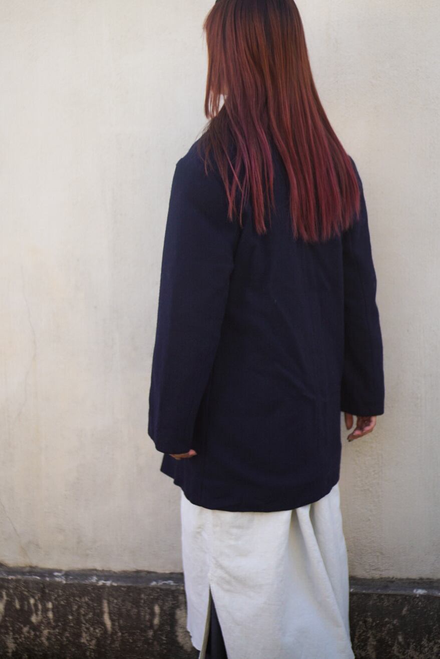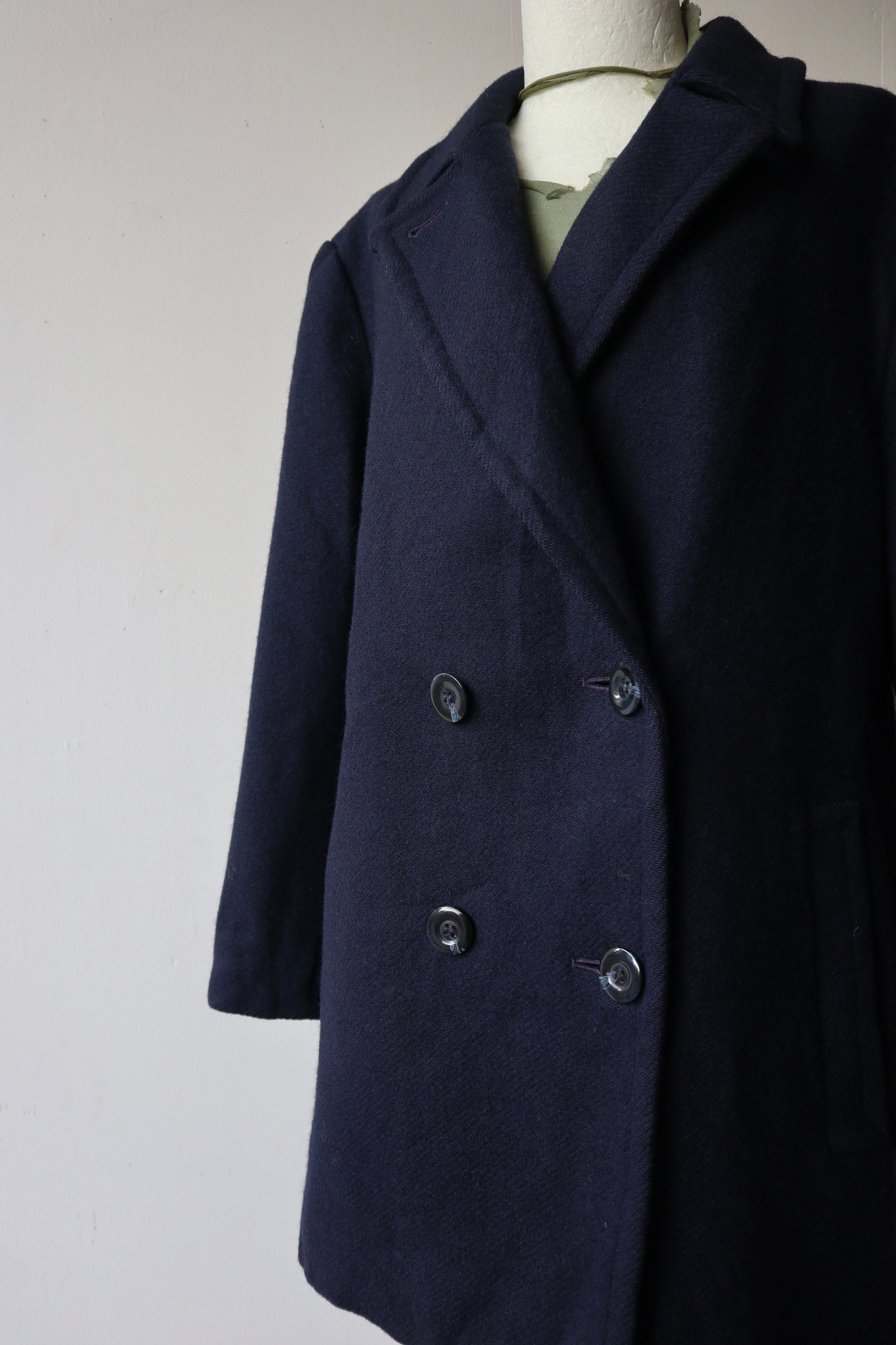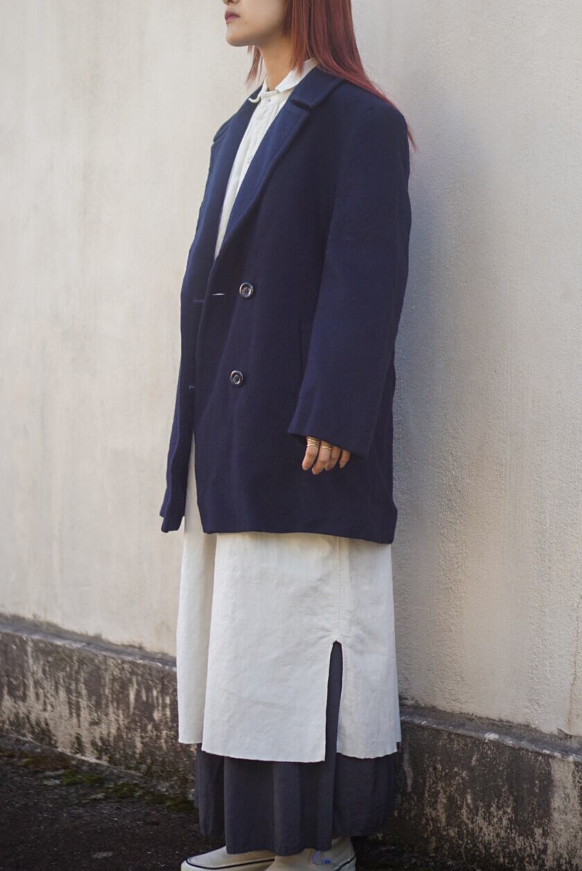 ウール素材で裏地付きのデザインが暖かく着用でき、定番のネイビーカラーで幅広い着こなしに活躍します