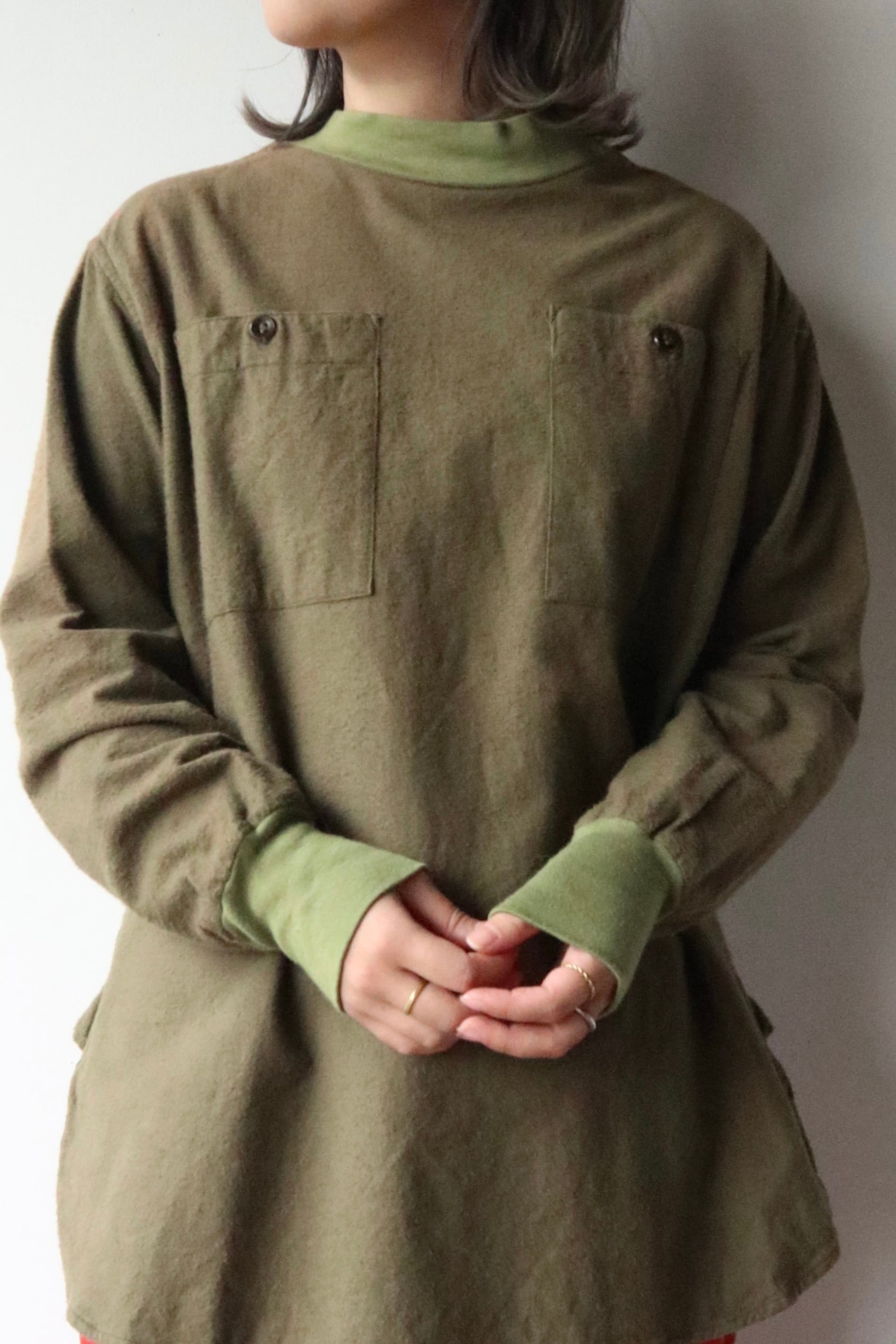 薄手ですが起毛している素材で暖かく着用頂けます。