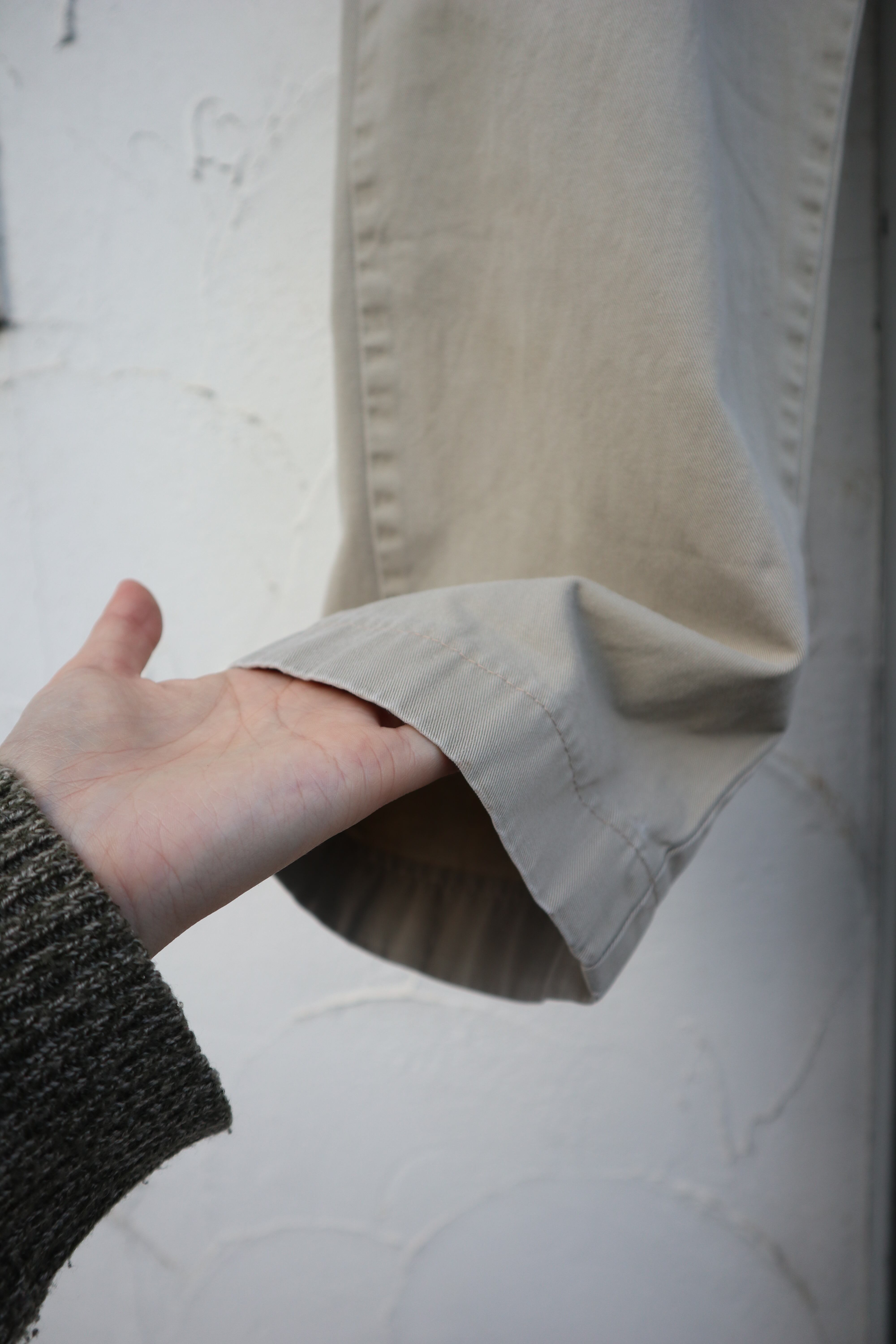 ストレートシルエットの薄手で使い勝手の良いチノパンツ。低身長な女性にピッタリなサイズ感となっています