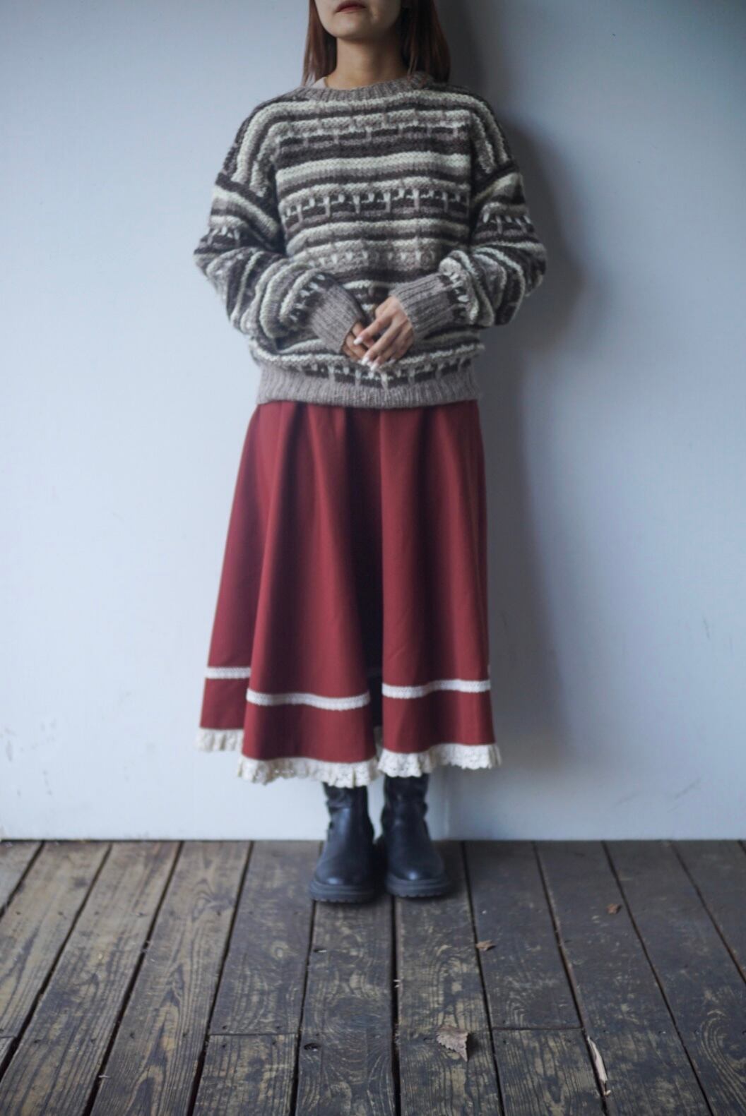 ざっくりと編まれたウールのニットセーター