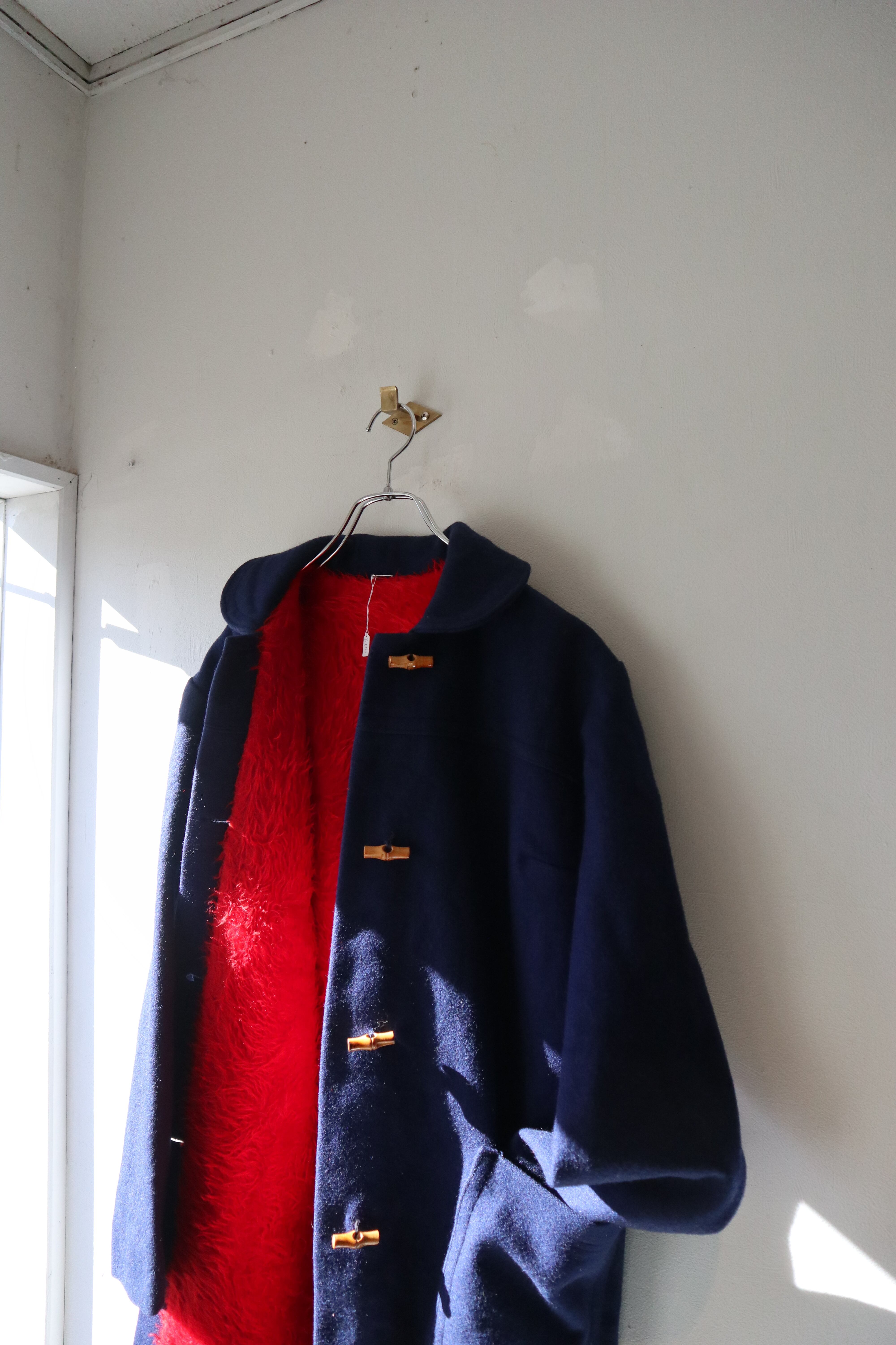 裏地が鮮やかな赤色のファー素材で温かく着用頂けます