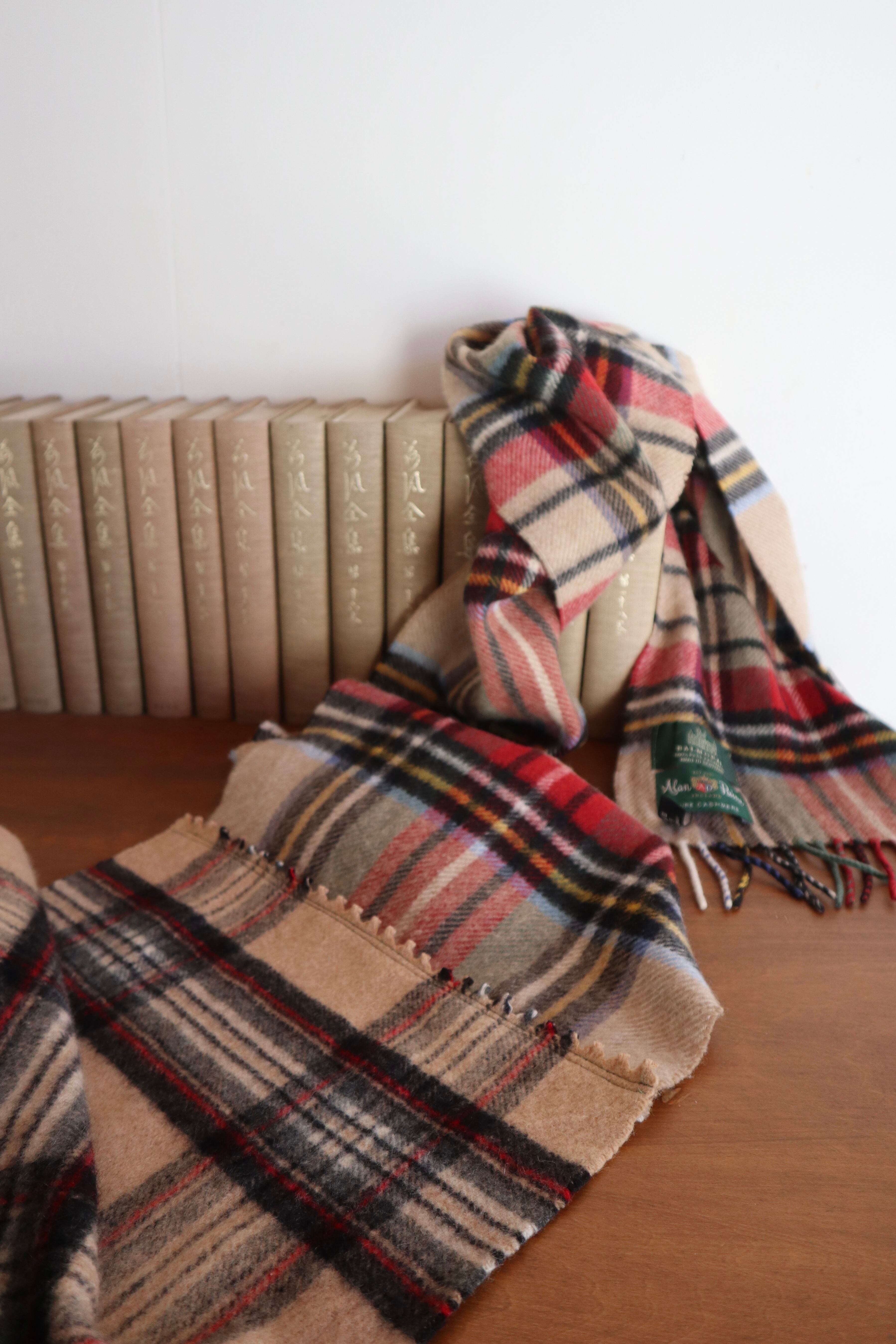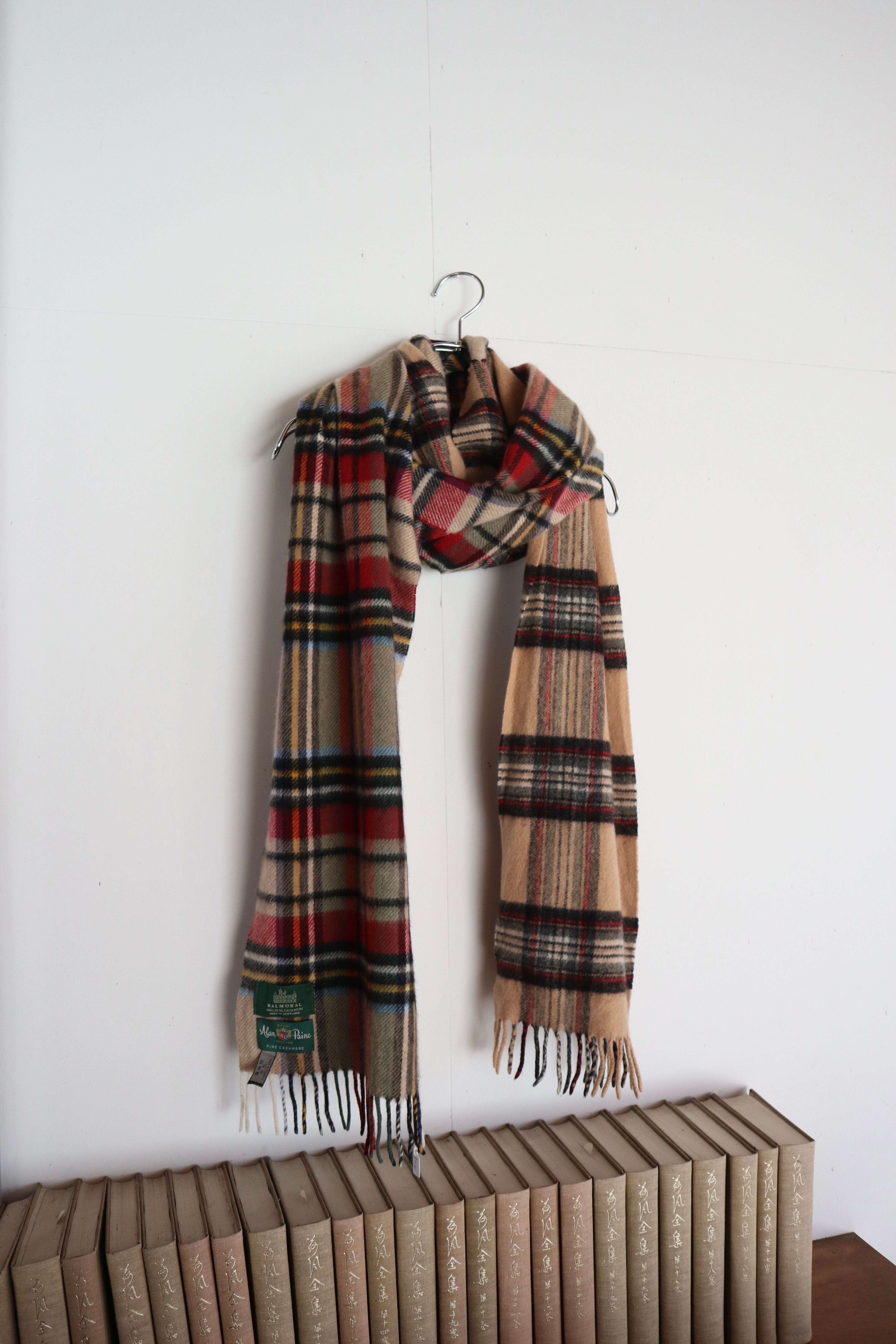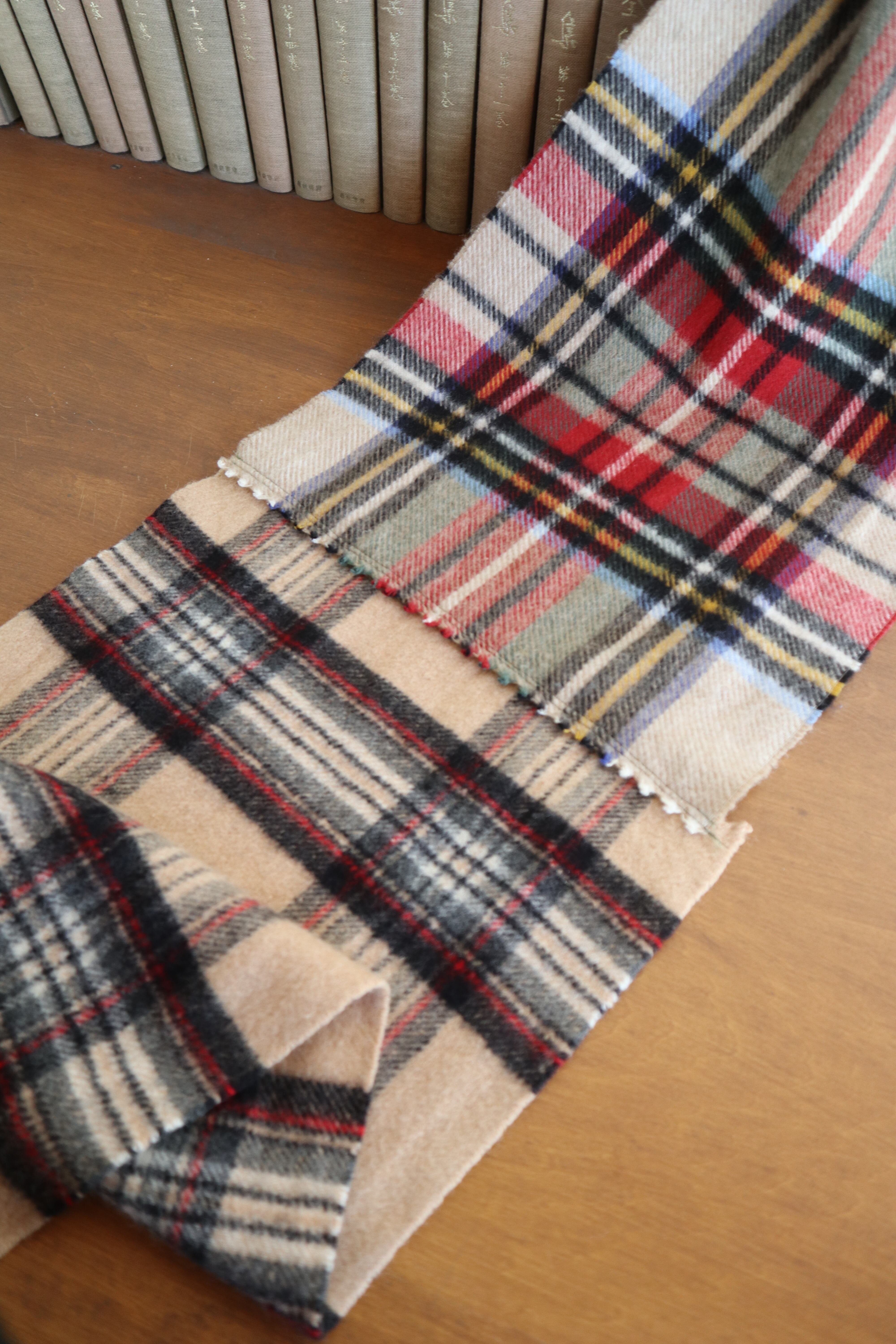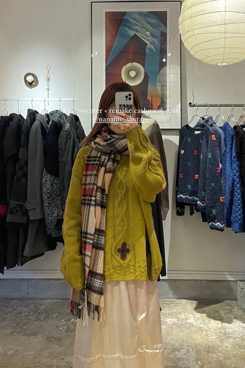 カシミヤ素材のマフラー2枚のマフラーを繋ぎ合わせタグも一ヶ所にまとめたリメイクアイテム