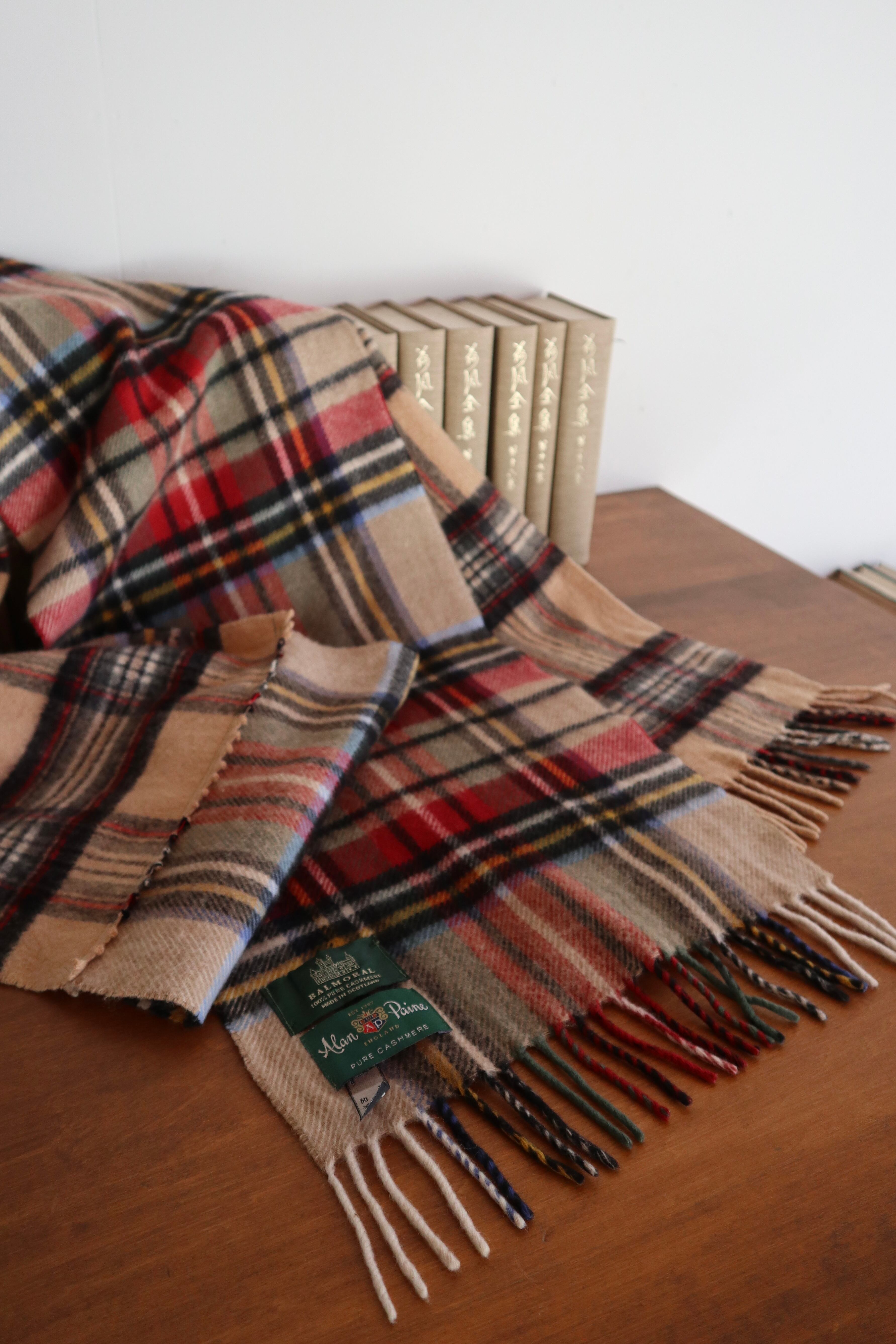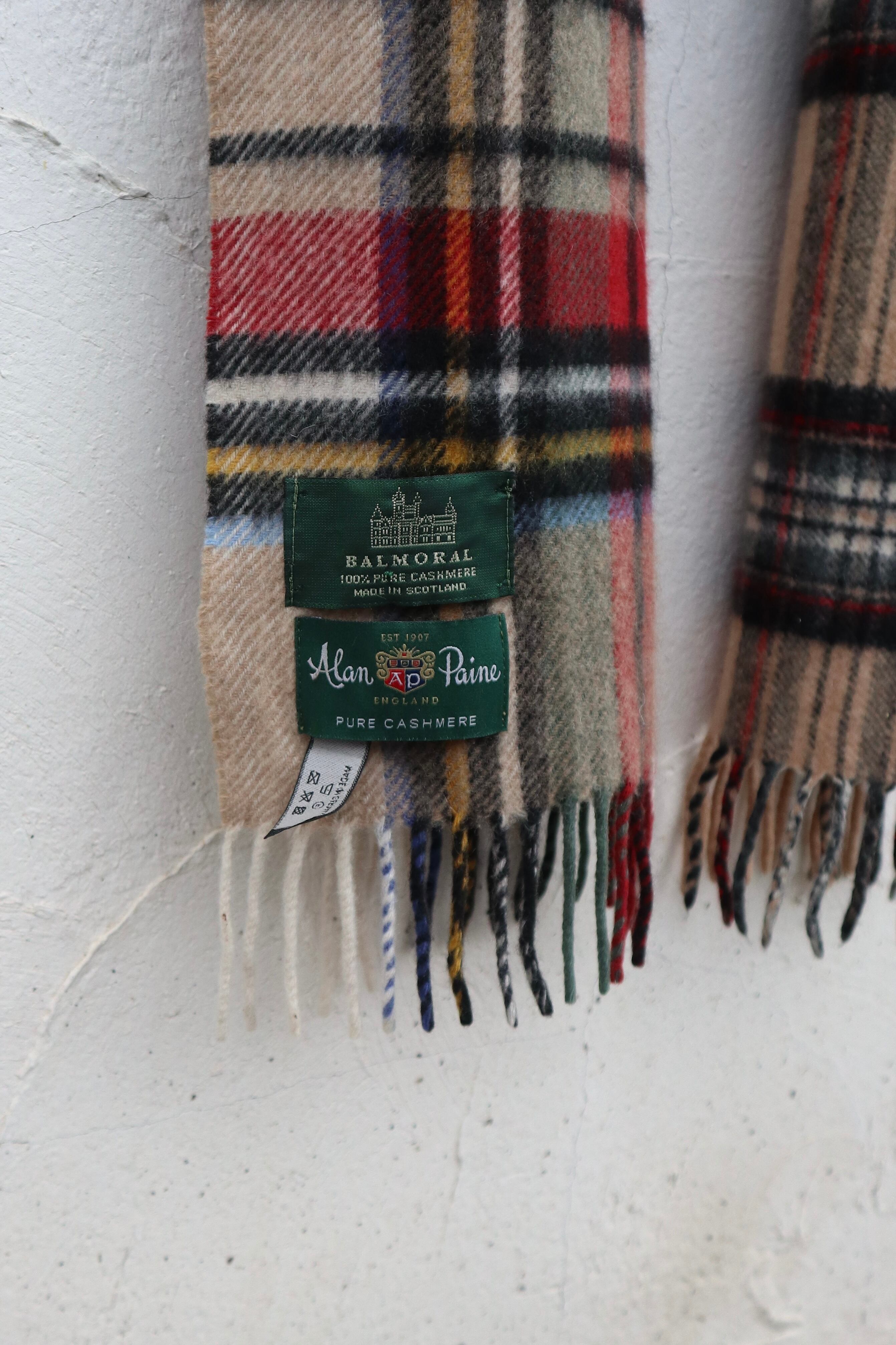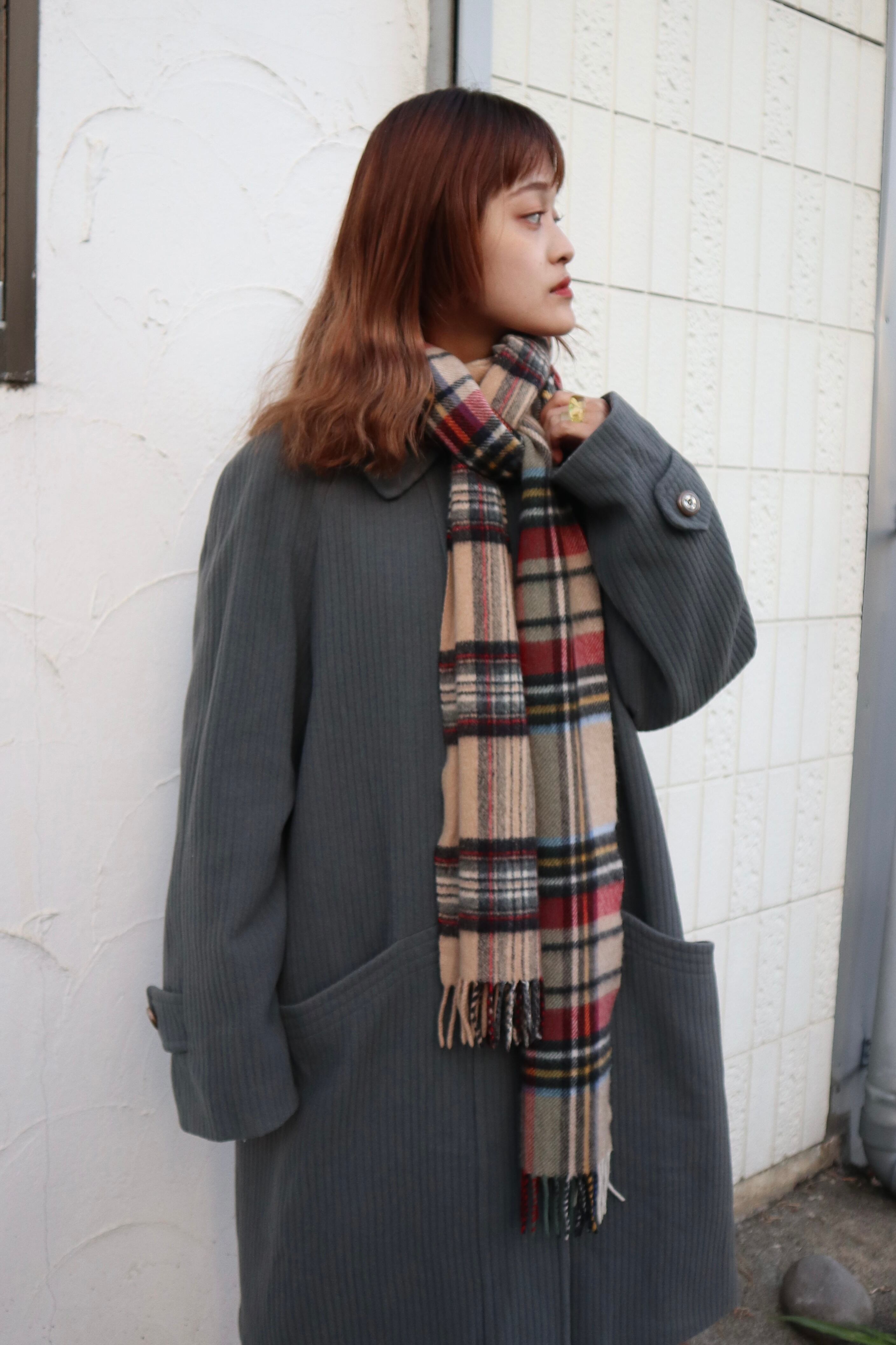 カシミヤ素材のマフラー2枚のマフラーを繋ぎ合わせタグも一ヶ所にまとめたリメイクアイテム