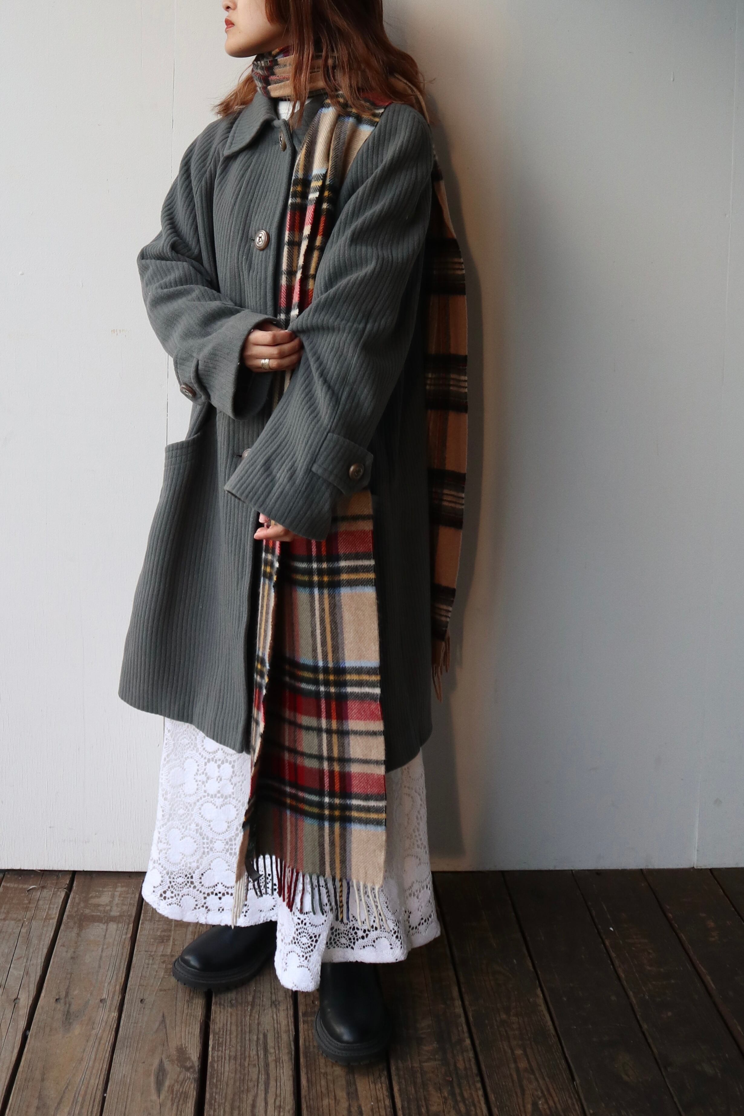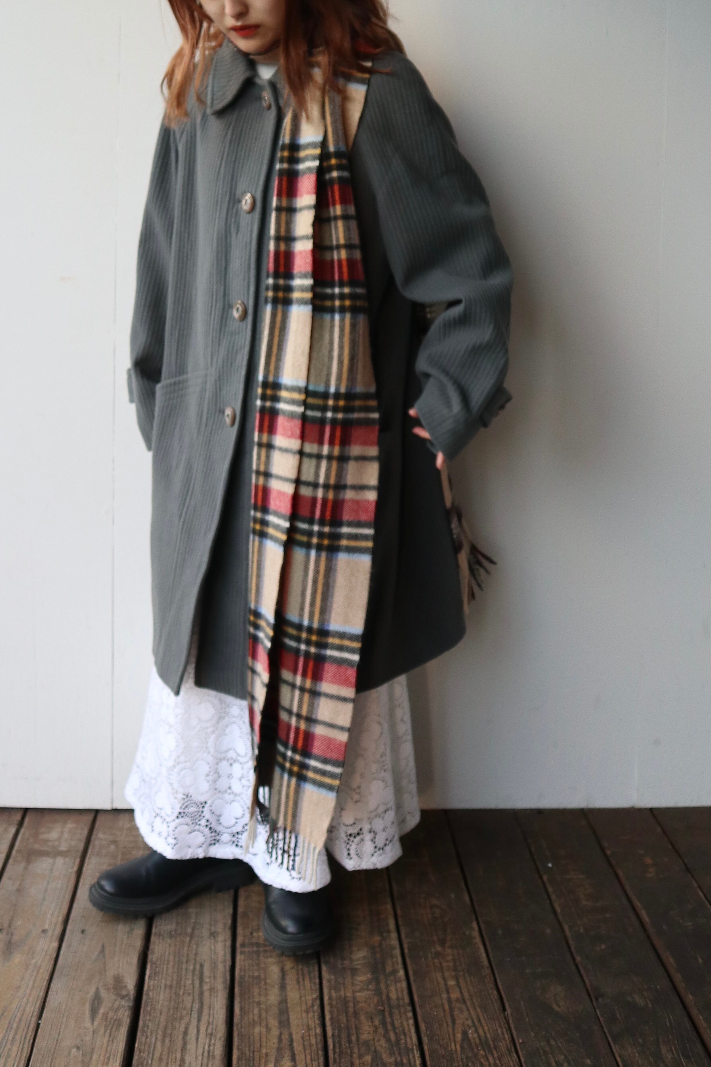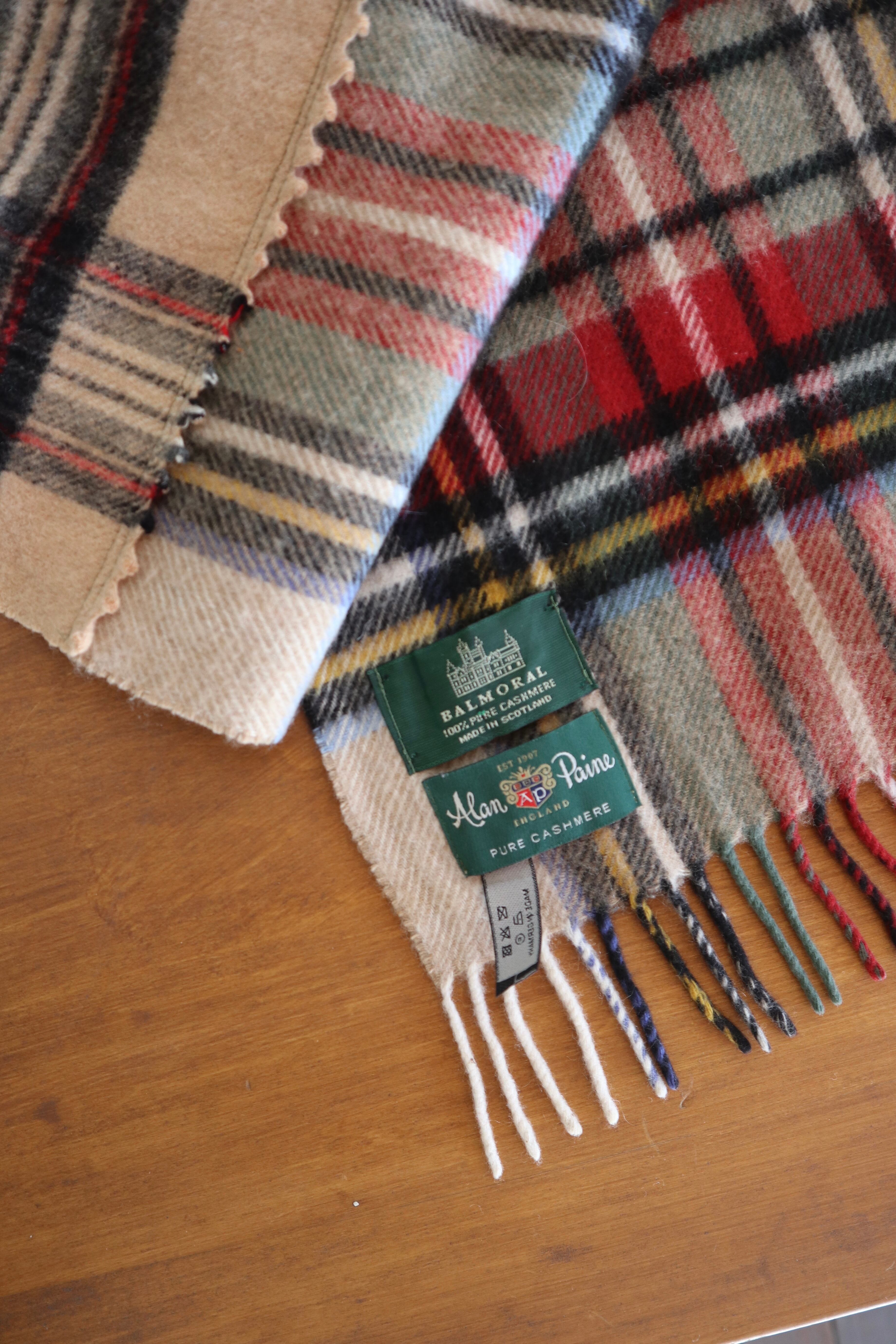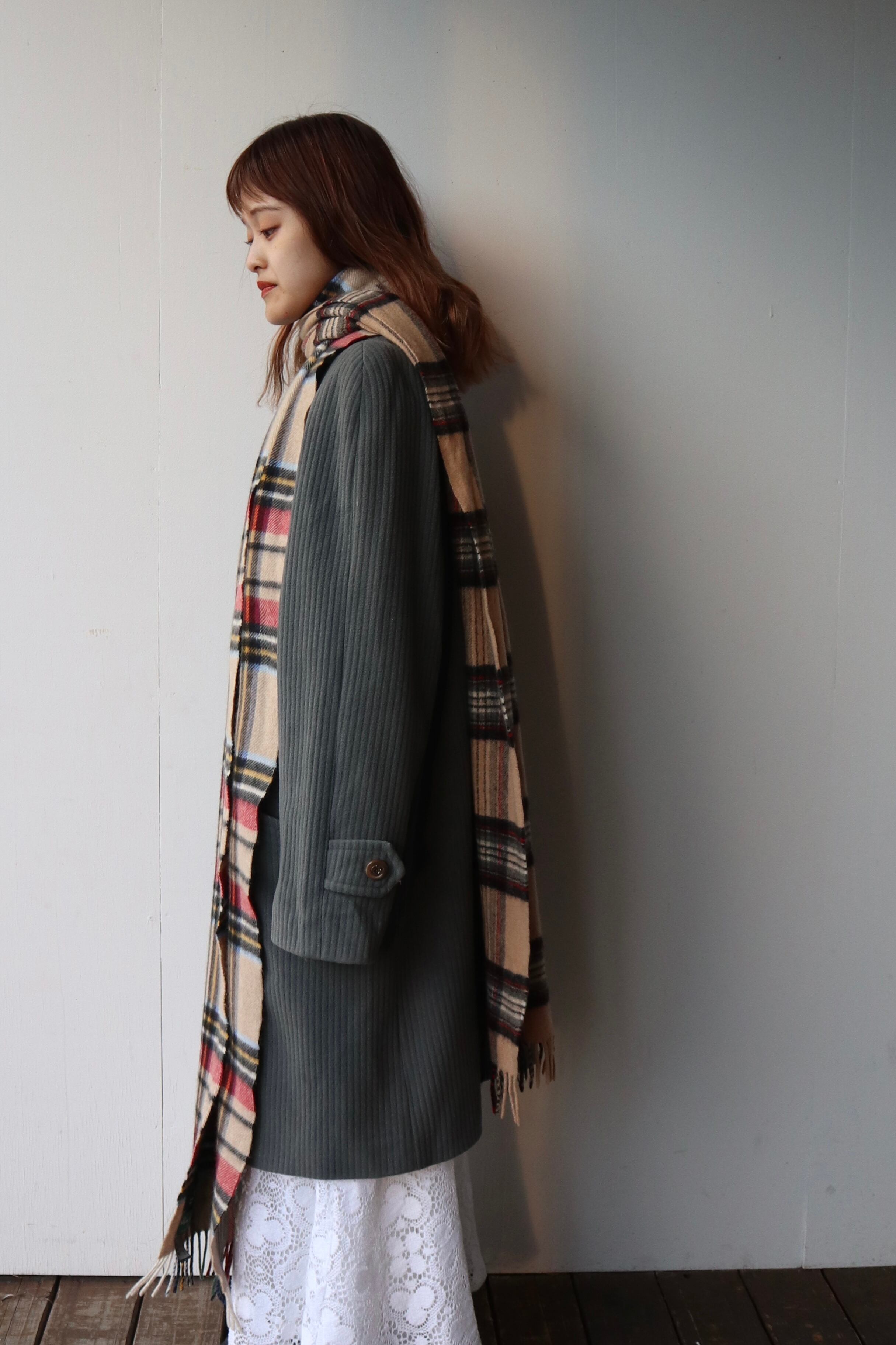 カシミヤ素材のマフラー2枚のマフラーを繋ぎ合わせタグも一ヶ所にまとめたリメイクアイテム