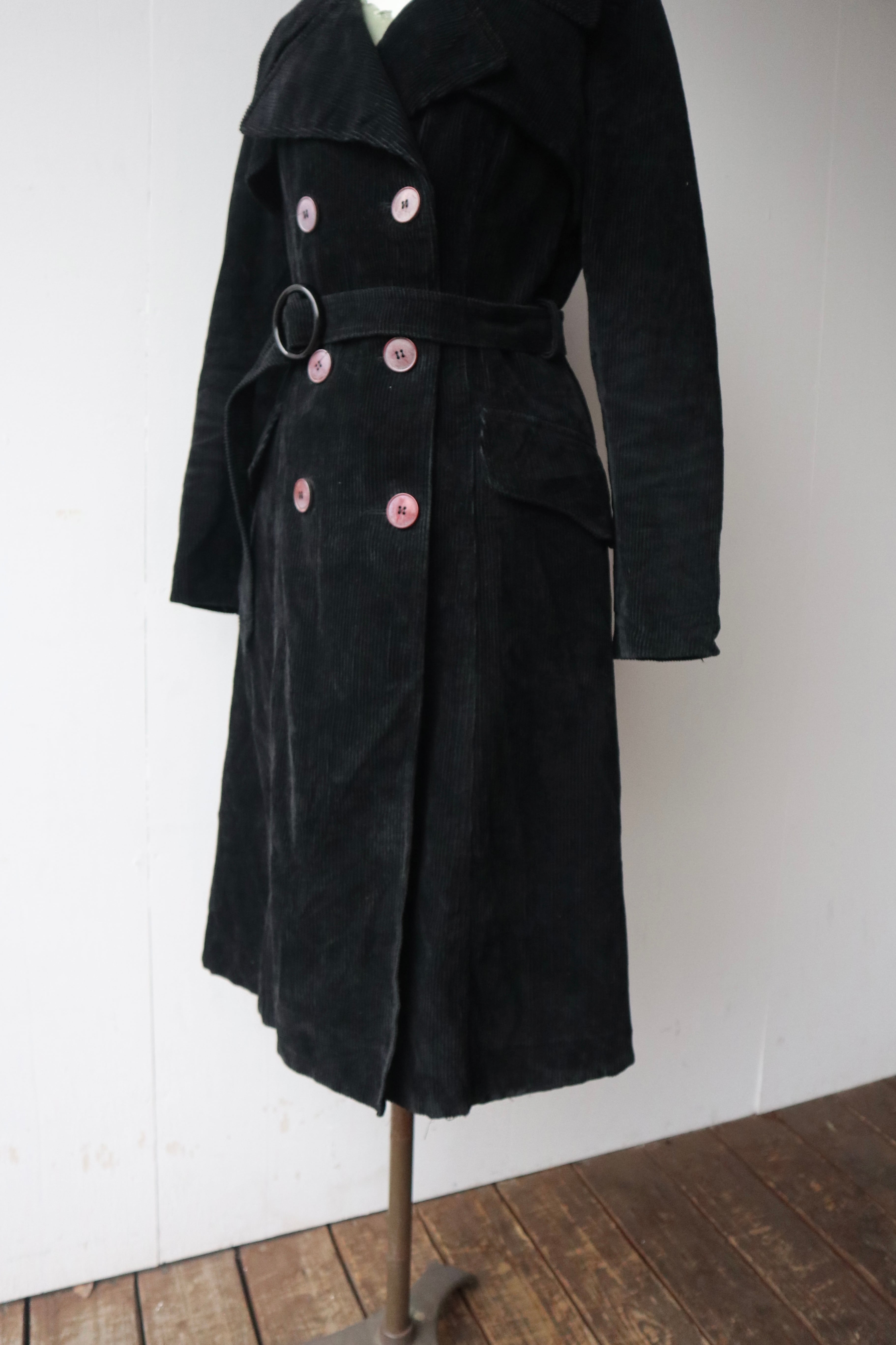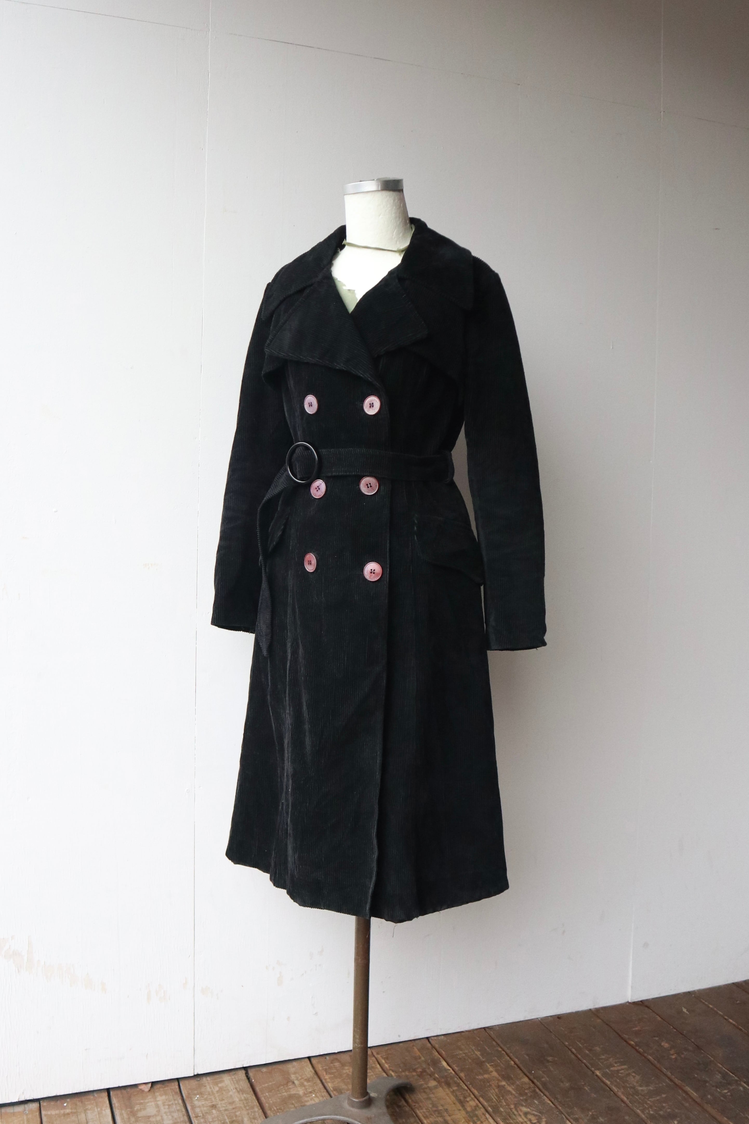 スタイリッシュなシルエットのベルト付きコーデュロイトレンチコート