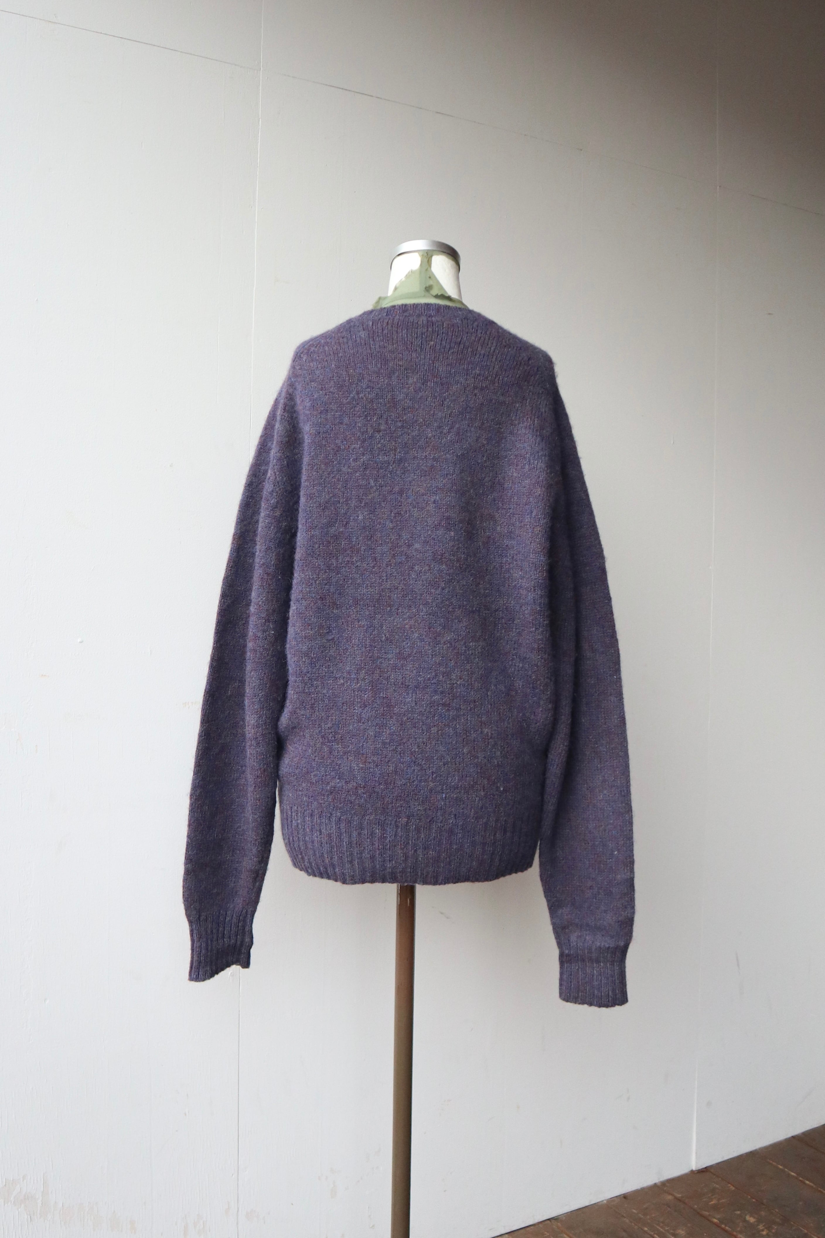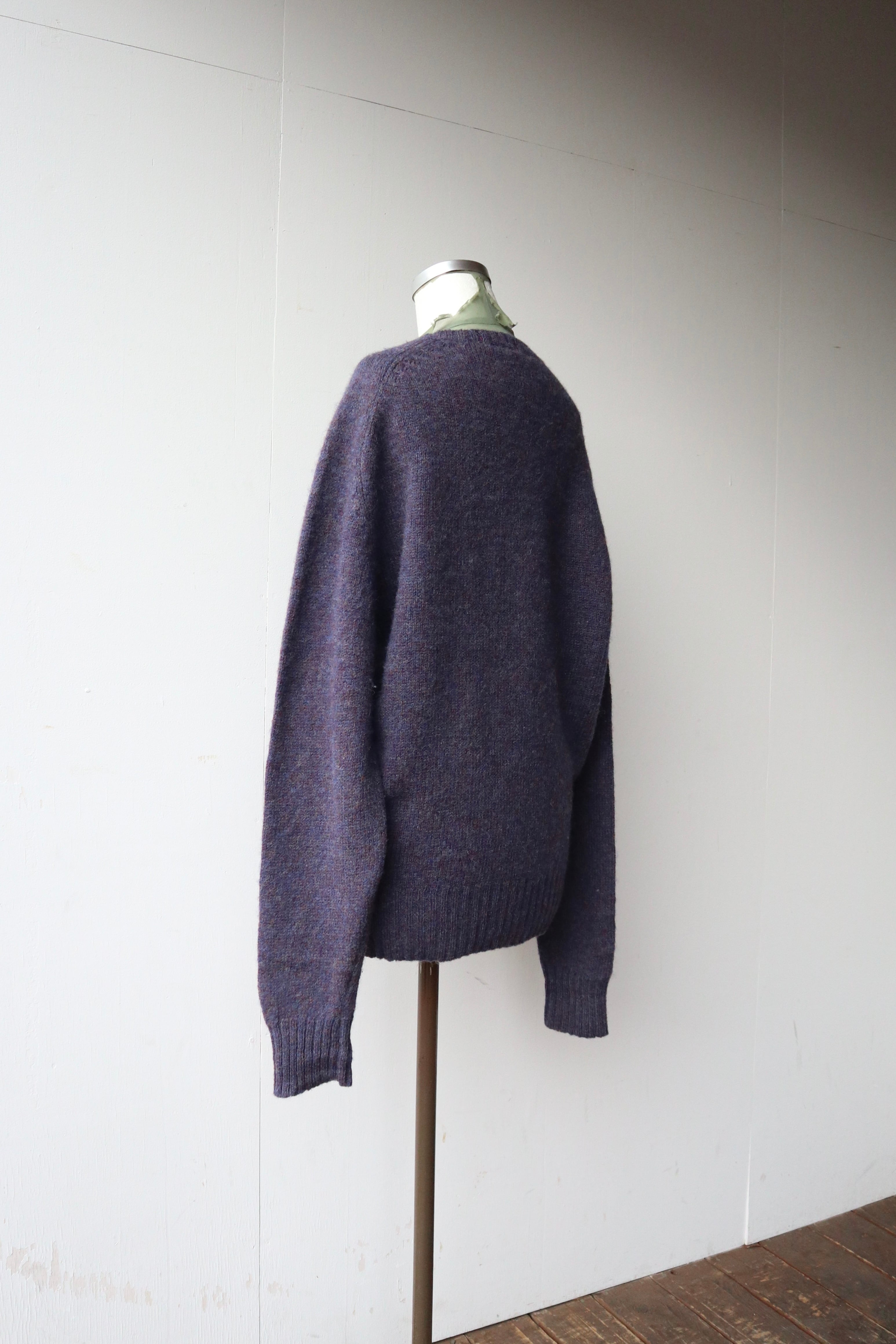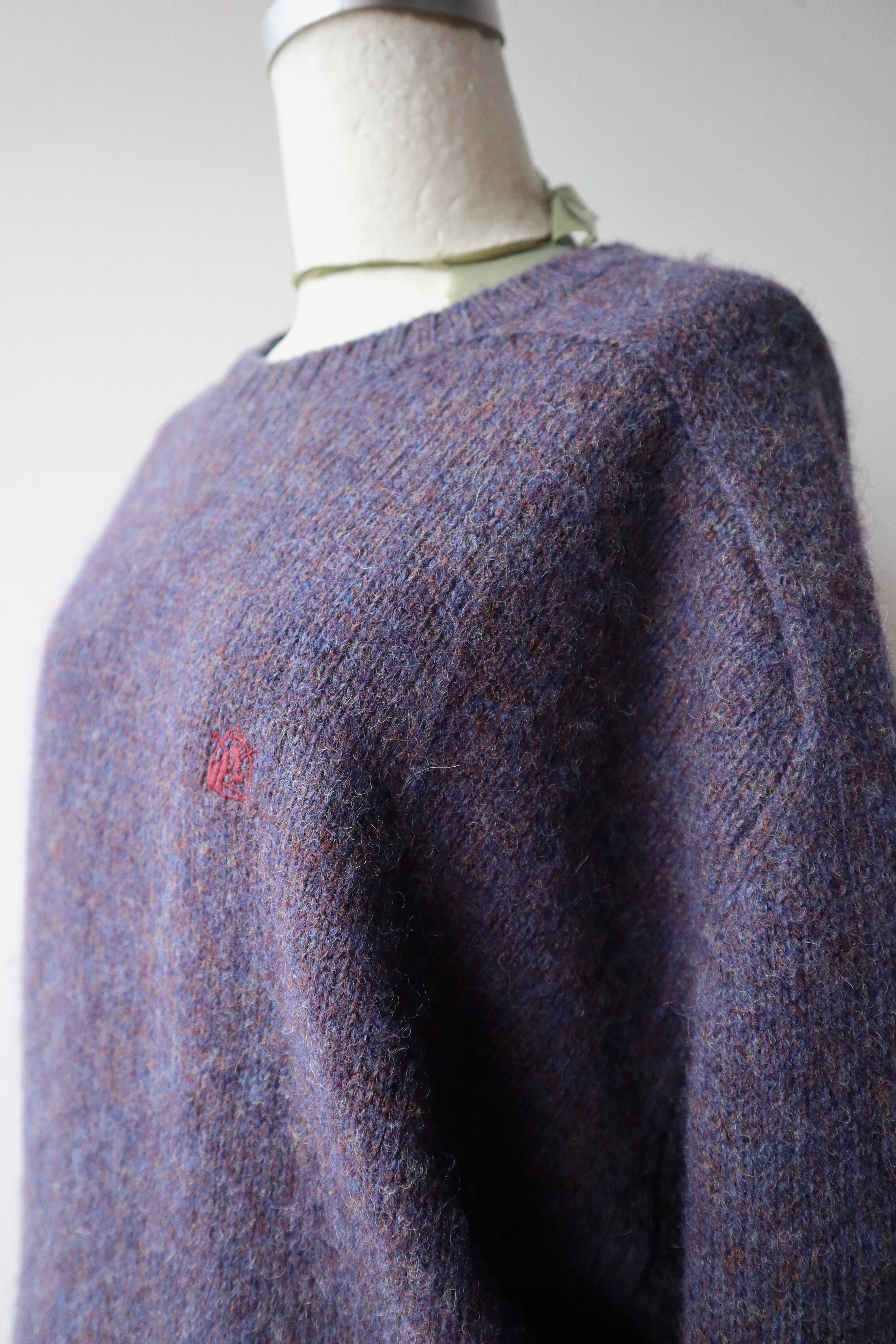 紫と青が混ざり合っているようなカラーがポイントになり、薄手のウール素材で軽くアウターなども重ねやすいニットセーター