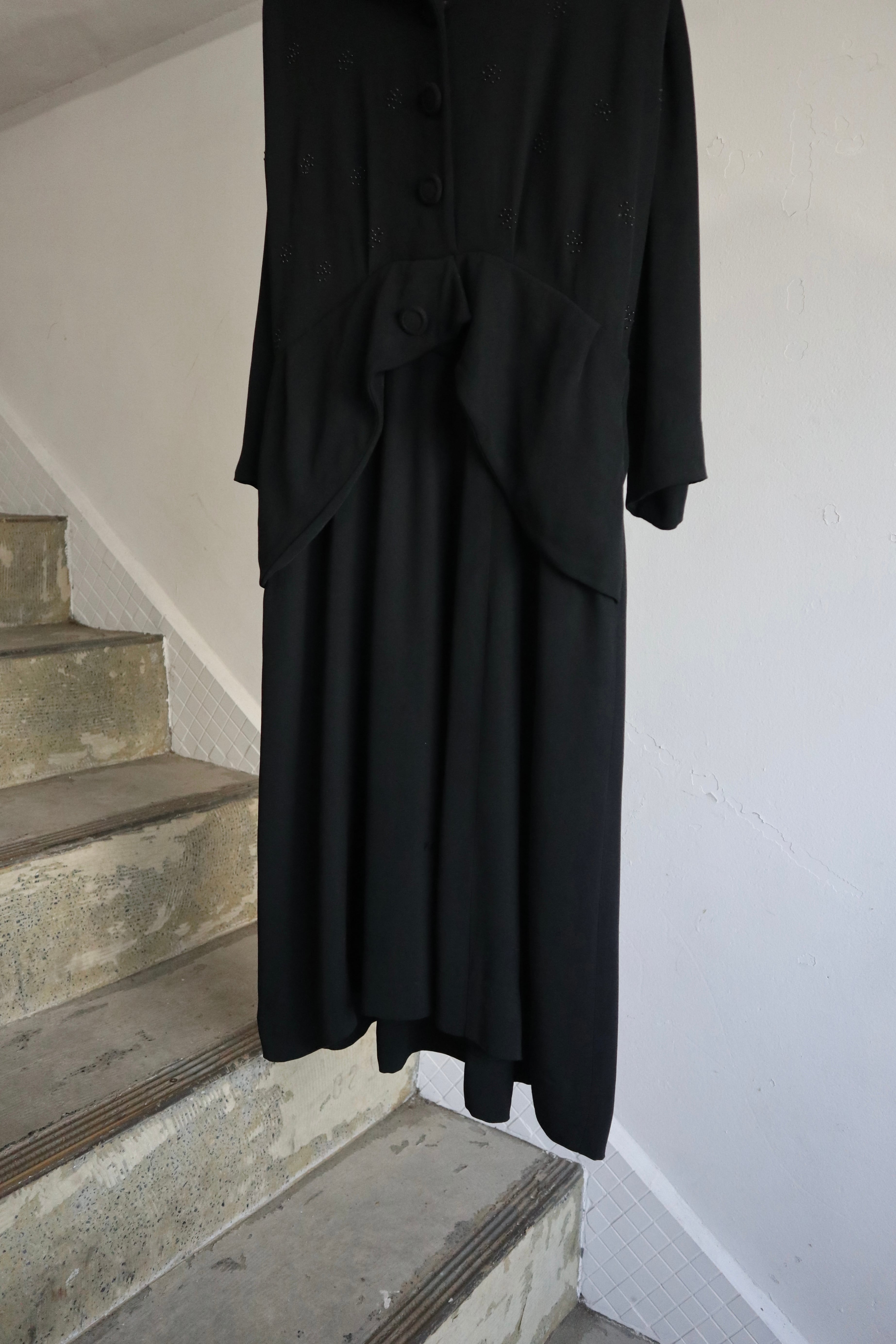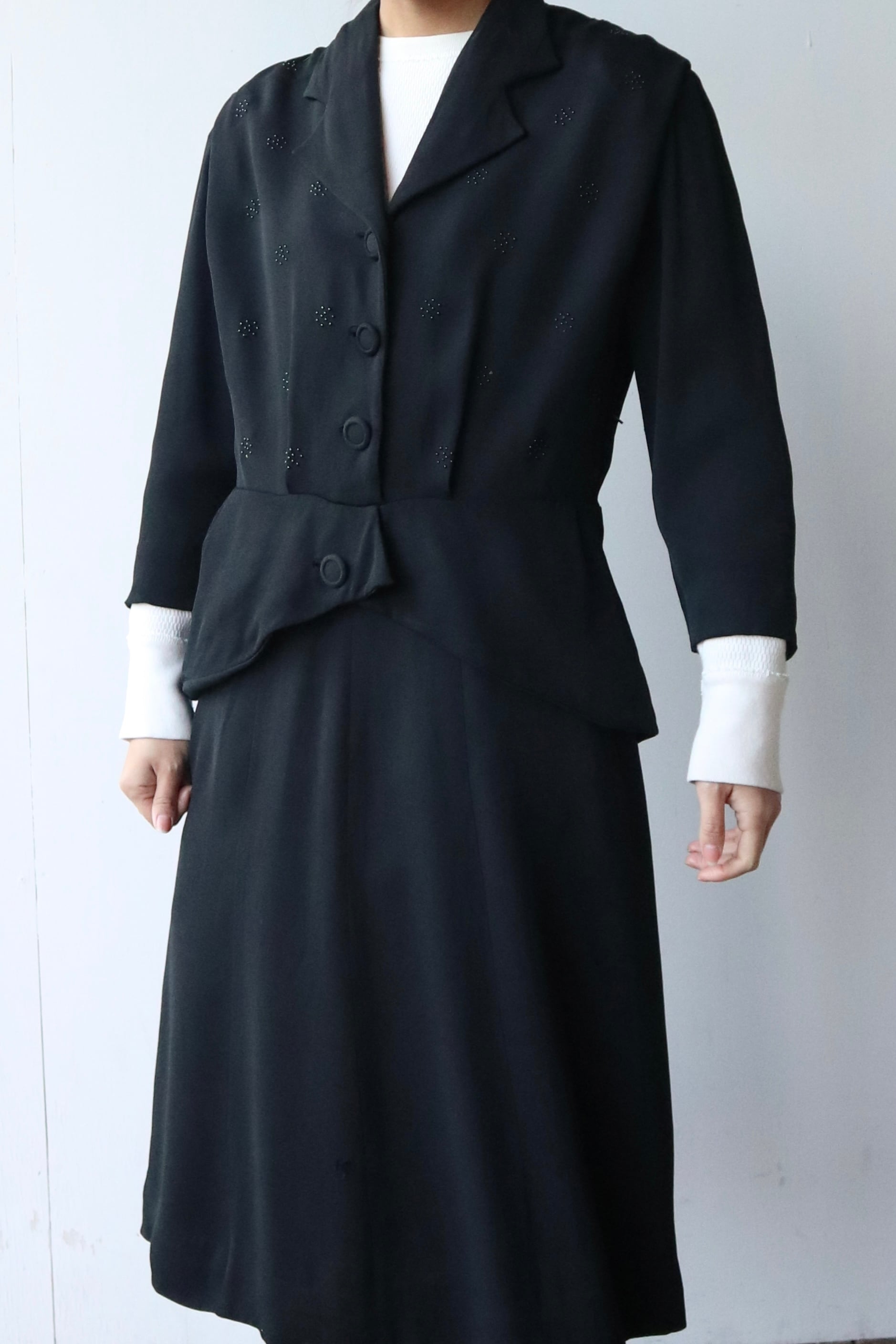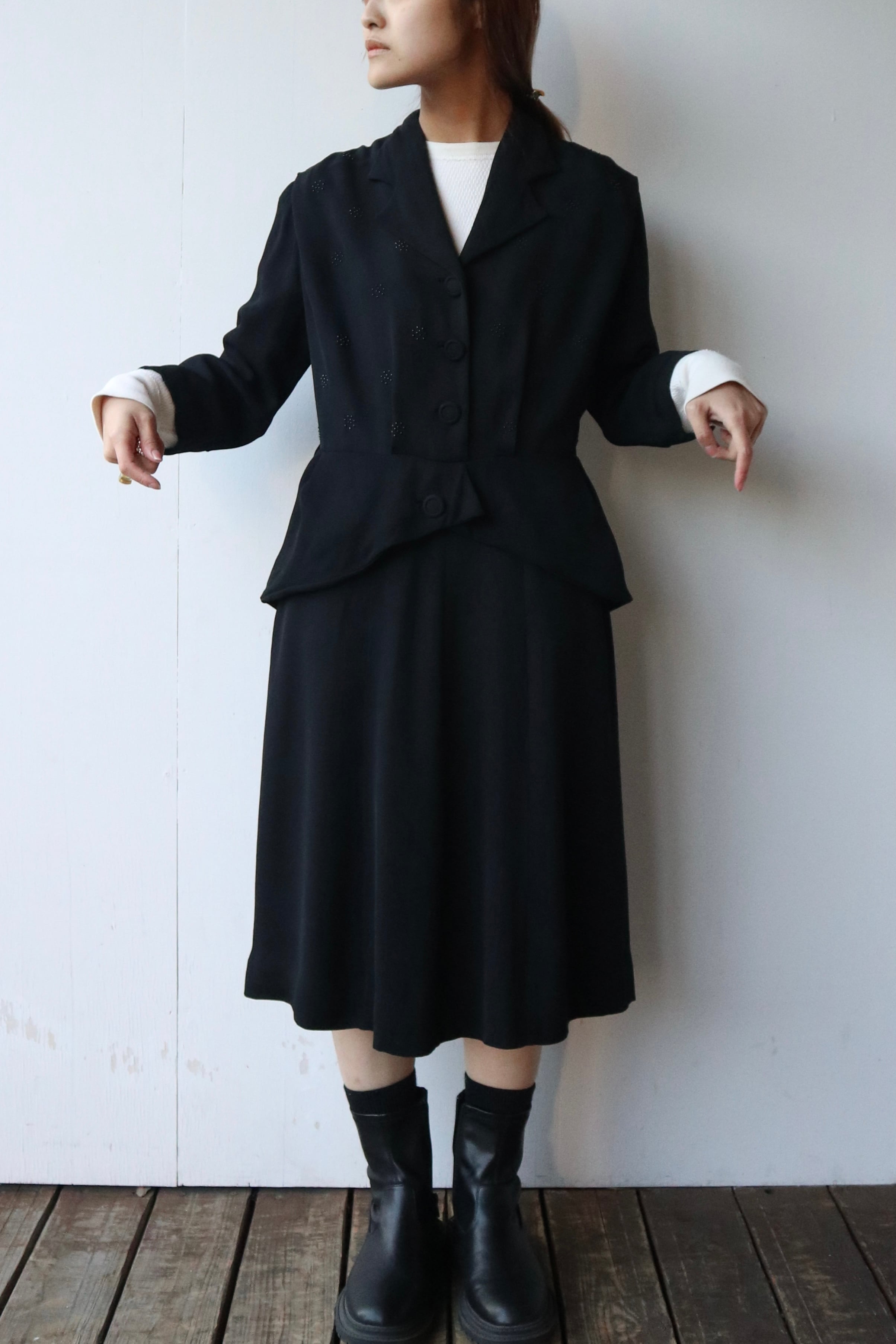 ウエストから広がるペプラムラインがポイントになります