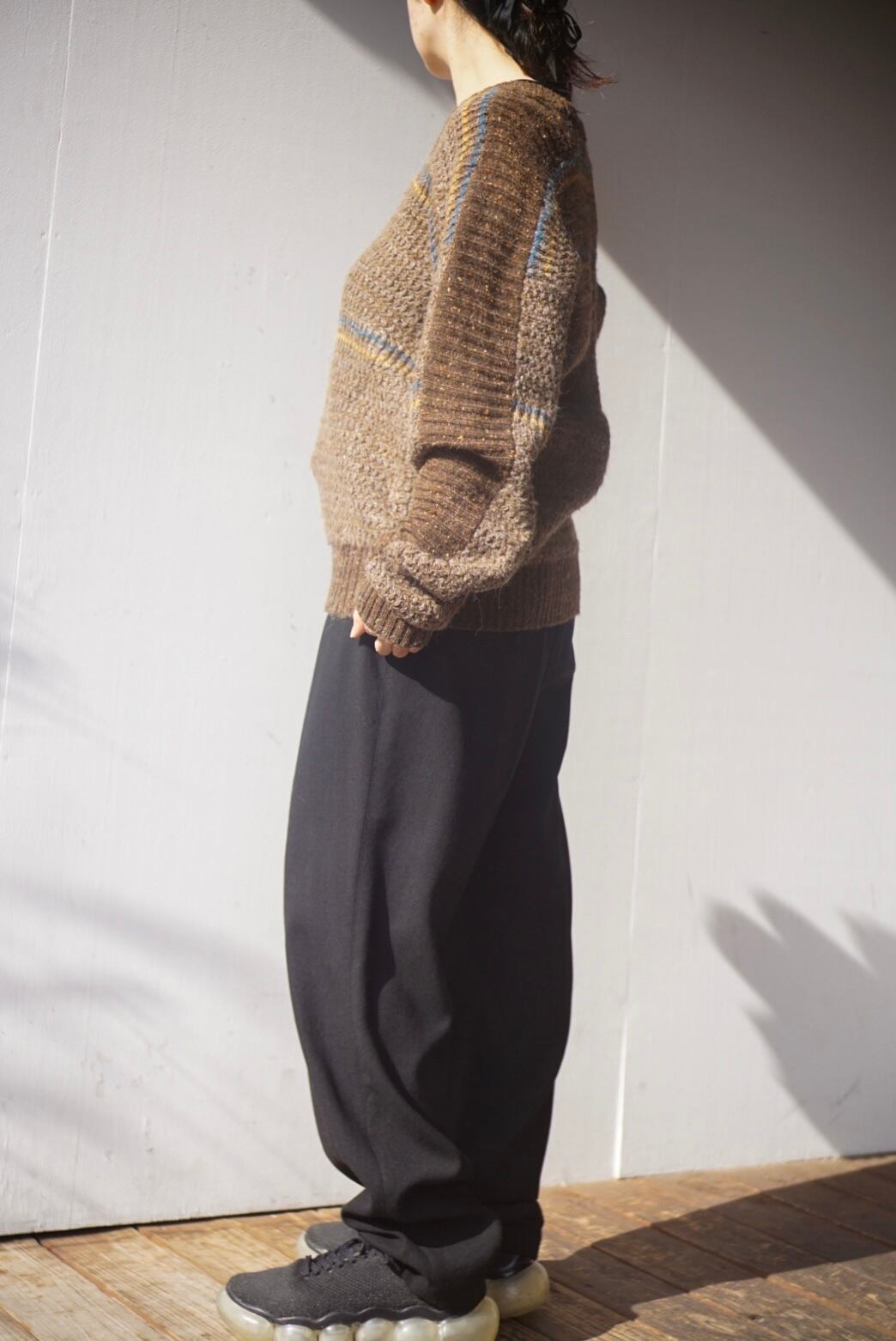 目の詰まったネップニット生地とざっくり編みのニット生地が切り替えになっているデザイン