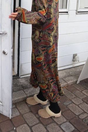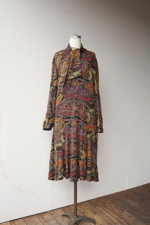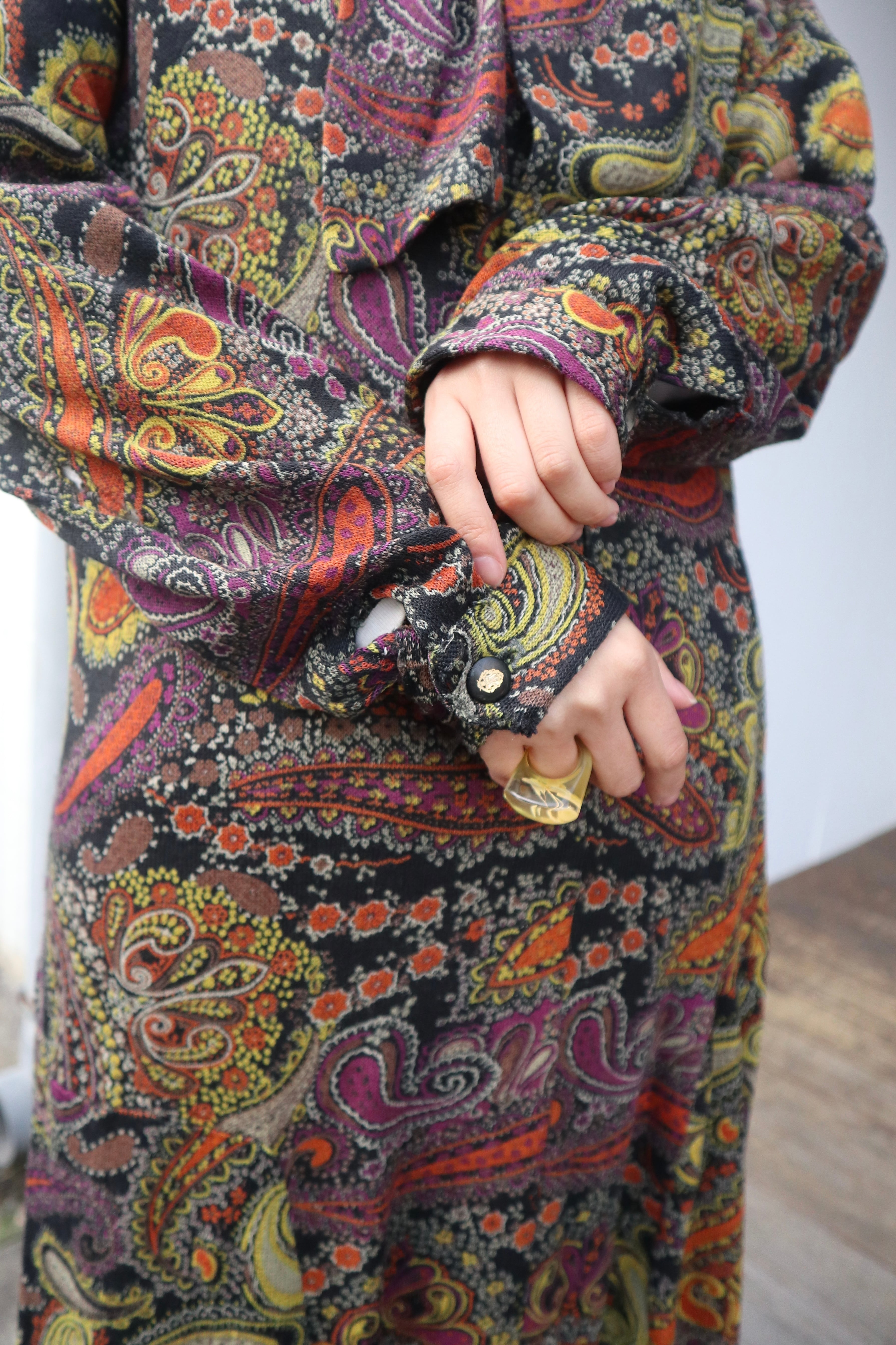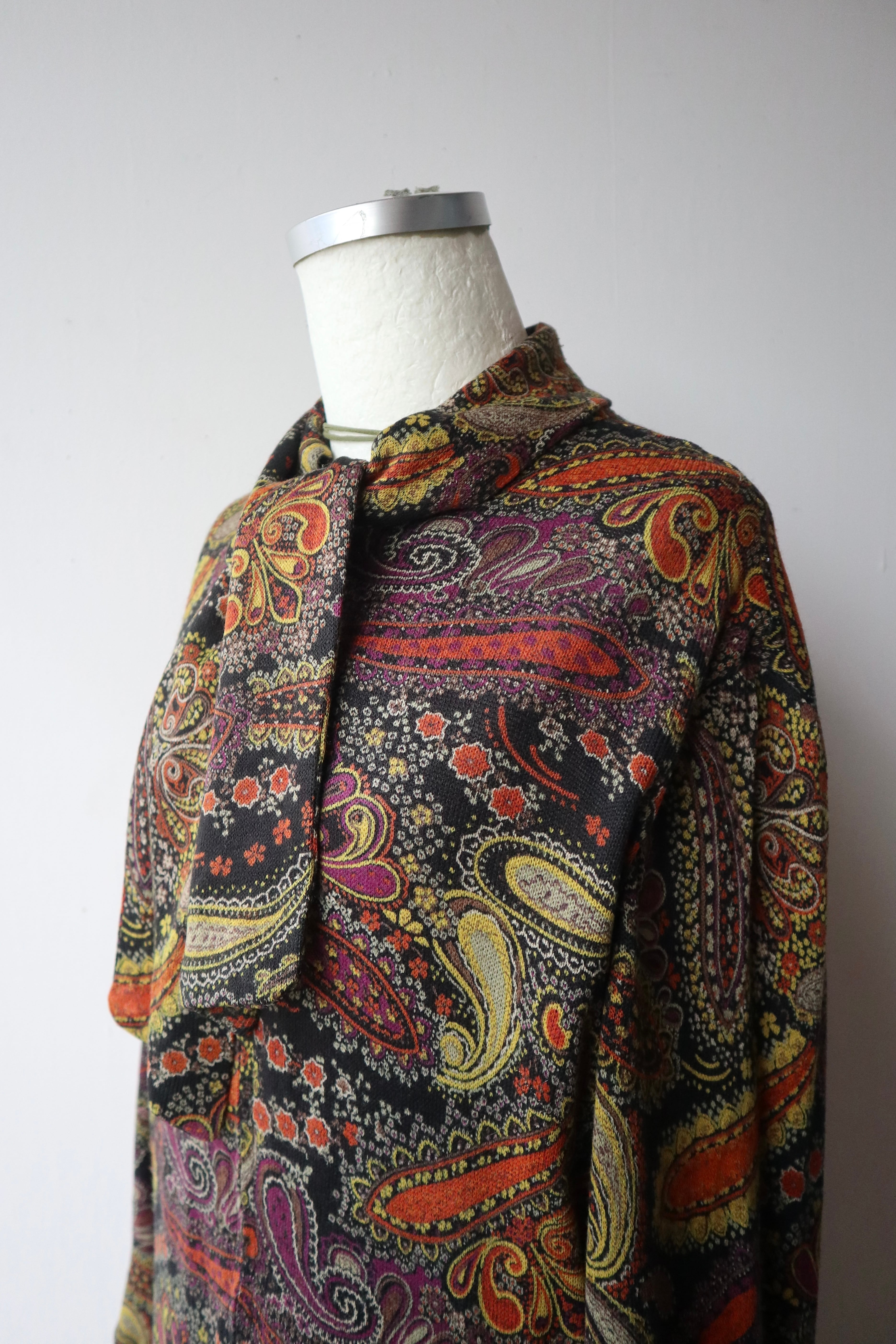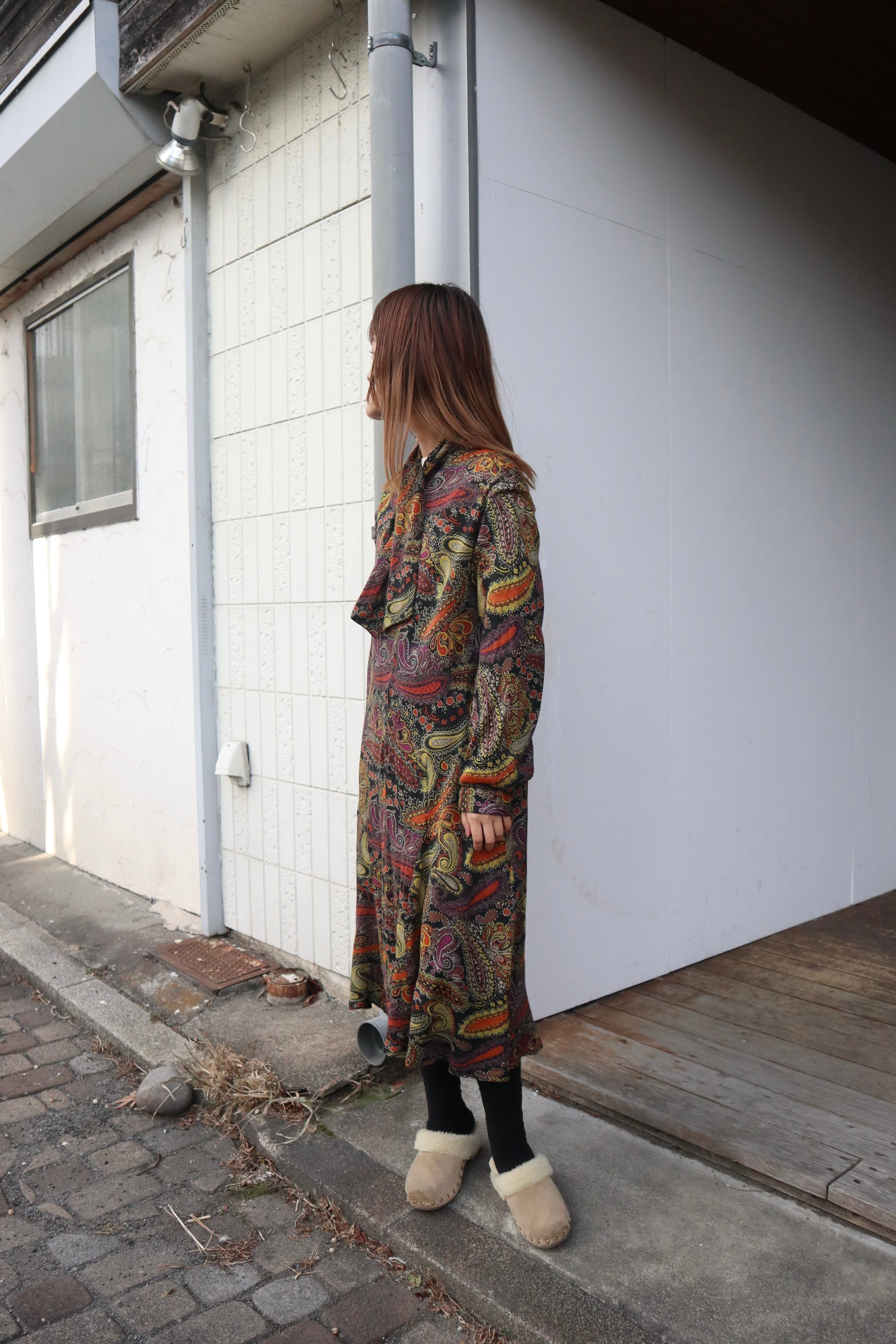 細かいペイズリー柄が主張し過ぎず、首元のリボンがより大人な雰囲気になります。