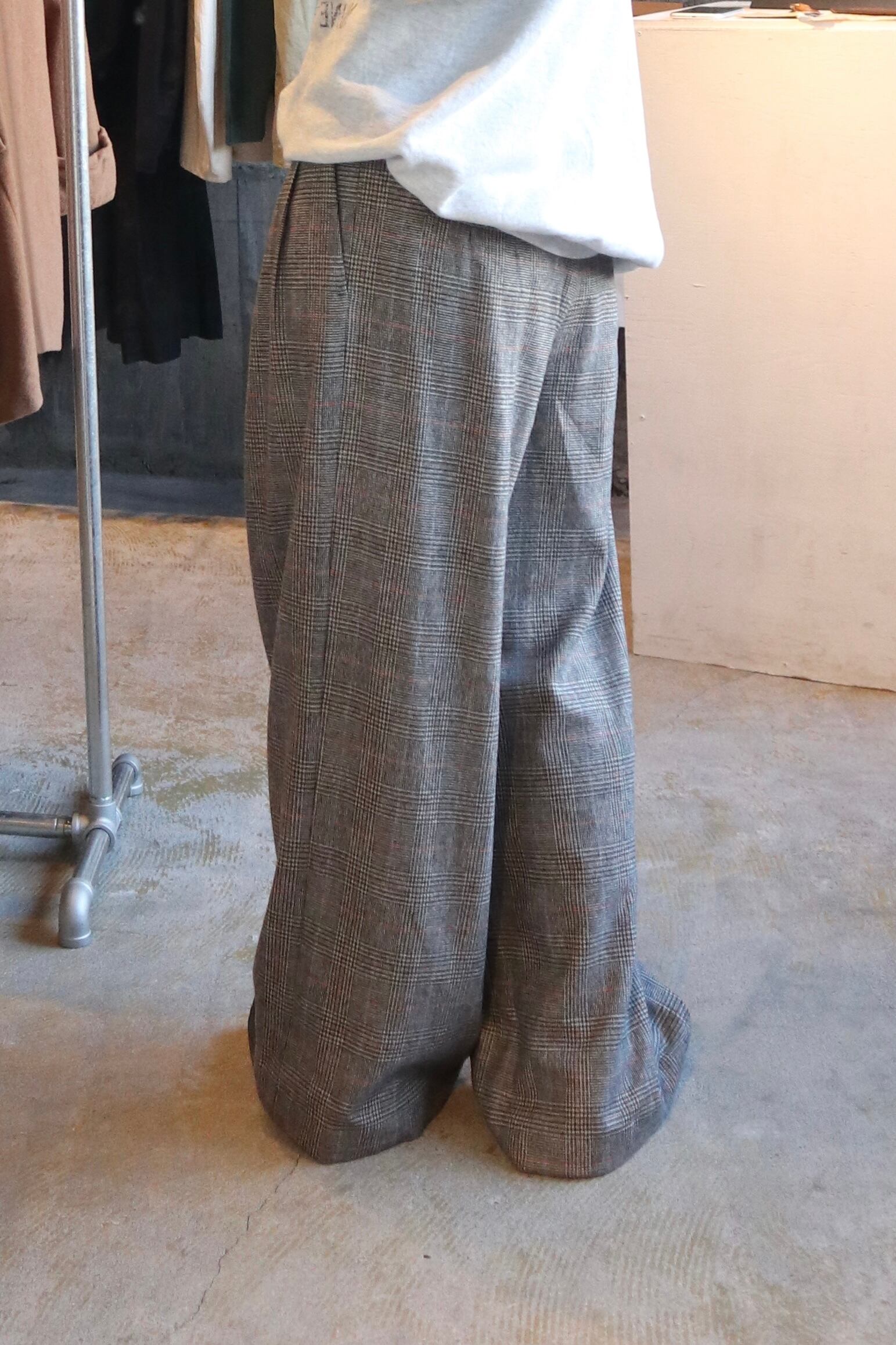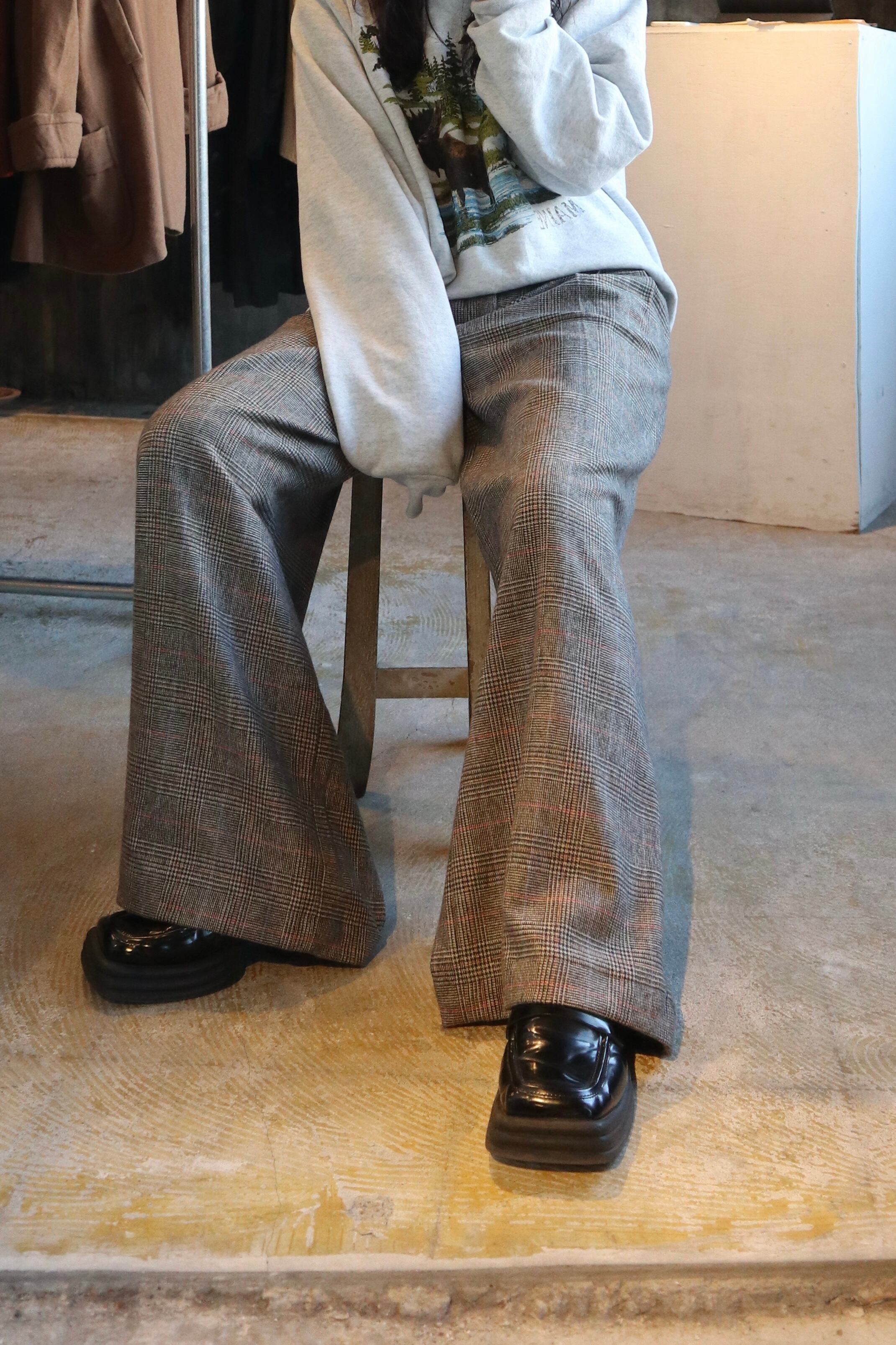 [plaid wool flare pants unisex]