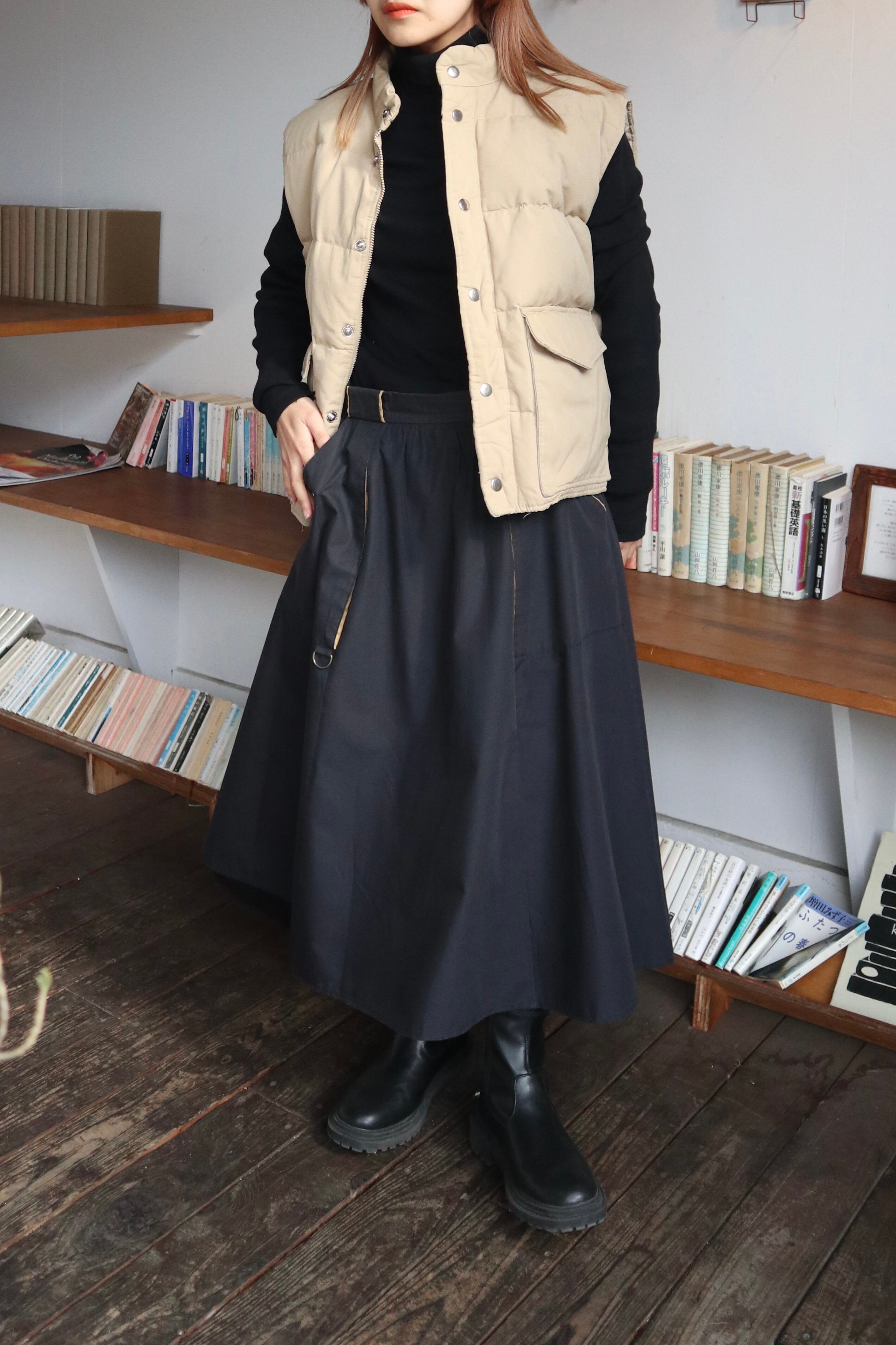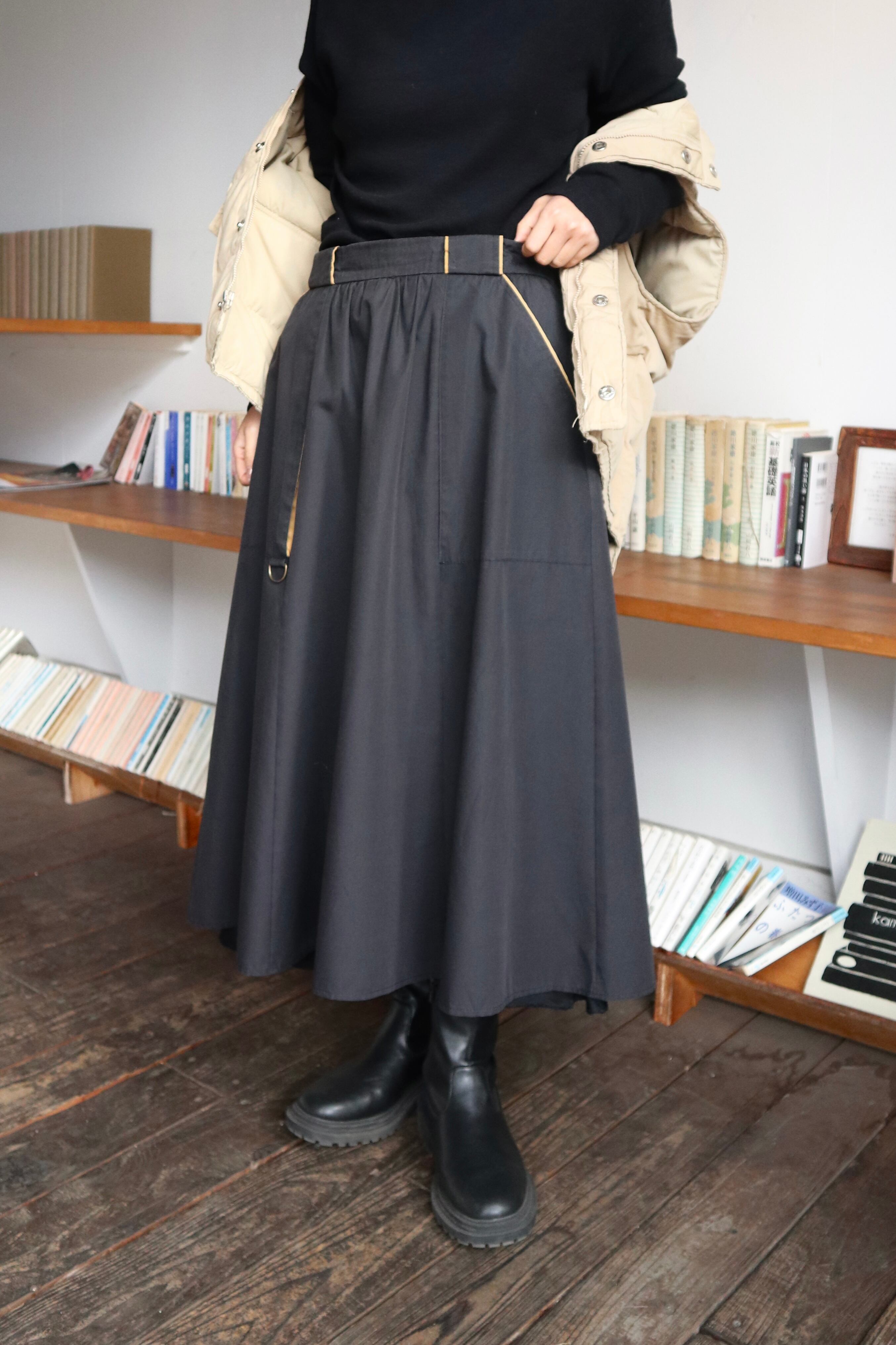 サラッとした軽いコットンポリ素材のフレアスカートで広がりのあるシルエットが綺麗です。