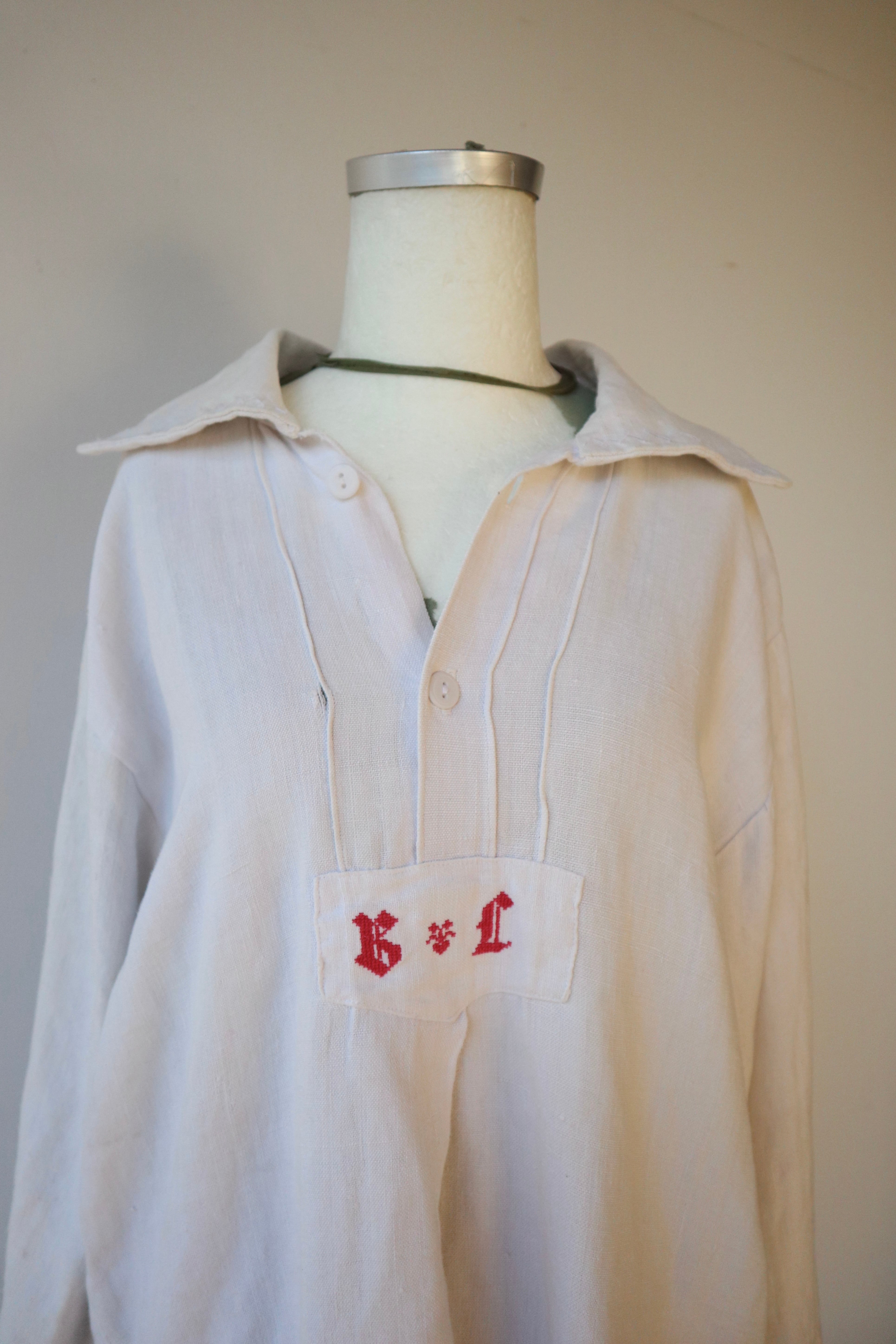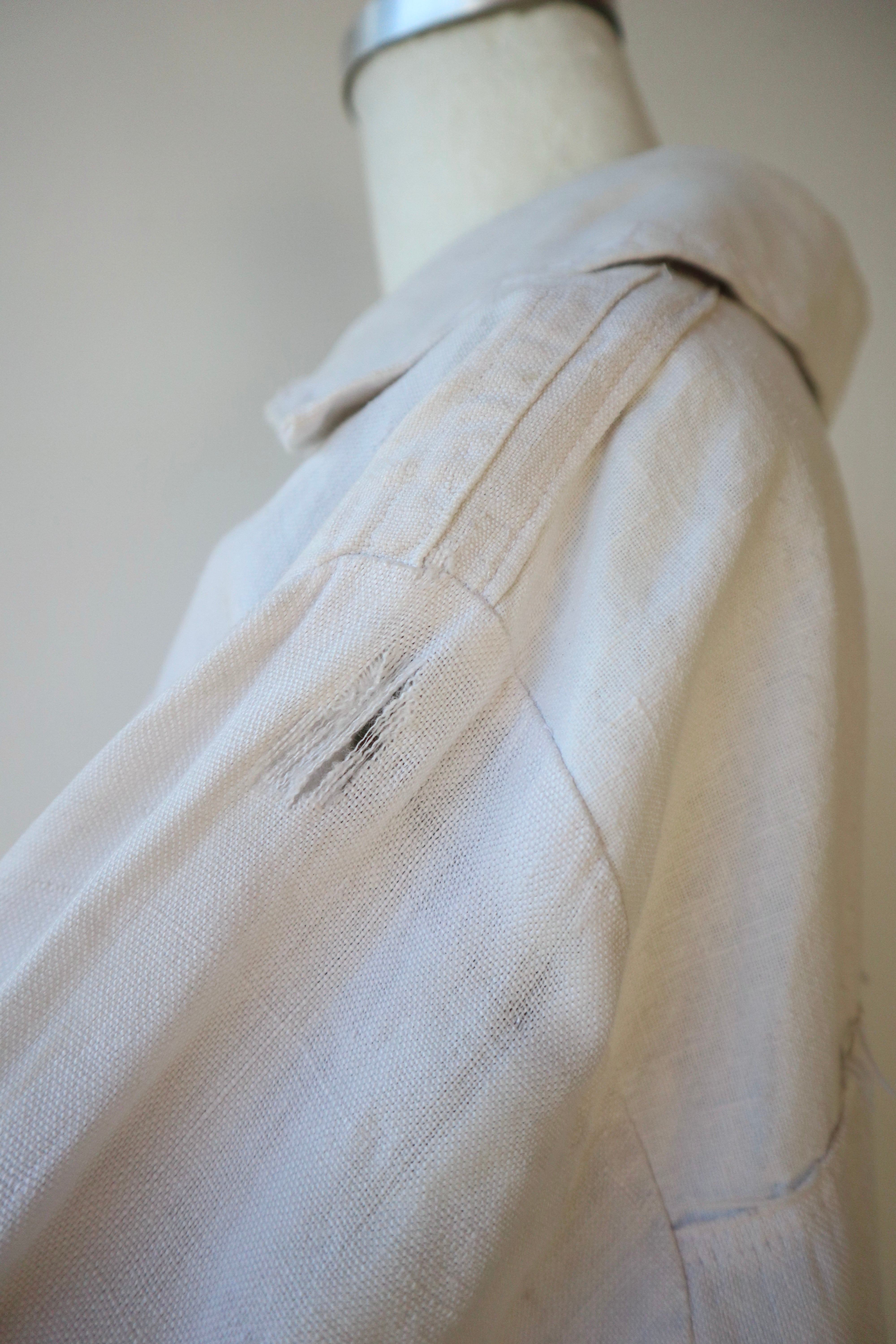 プルプルとした古いリネン素材になり、分厚すぎず身体に馴染む1着