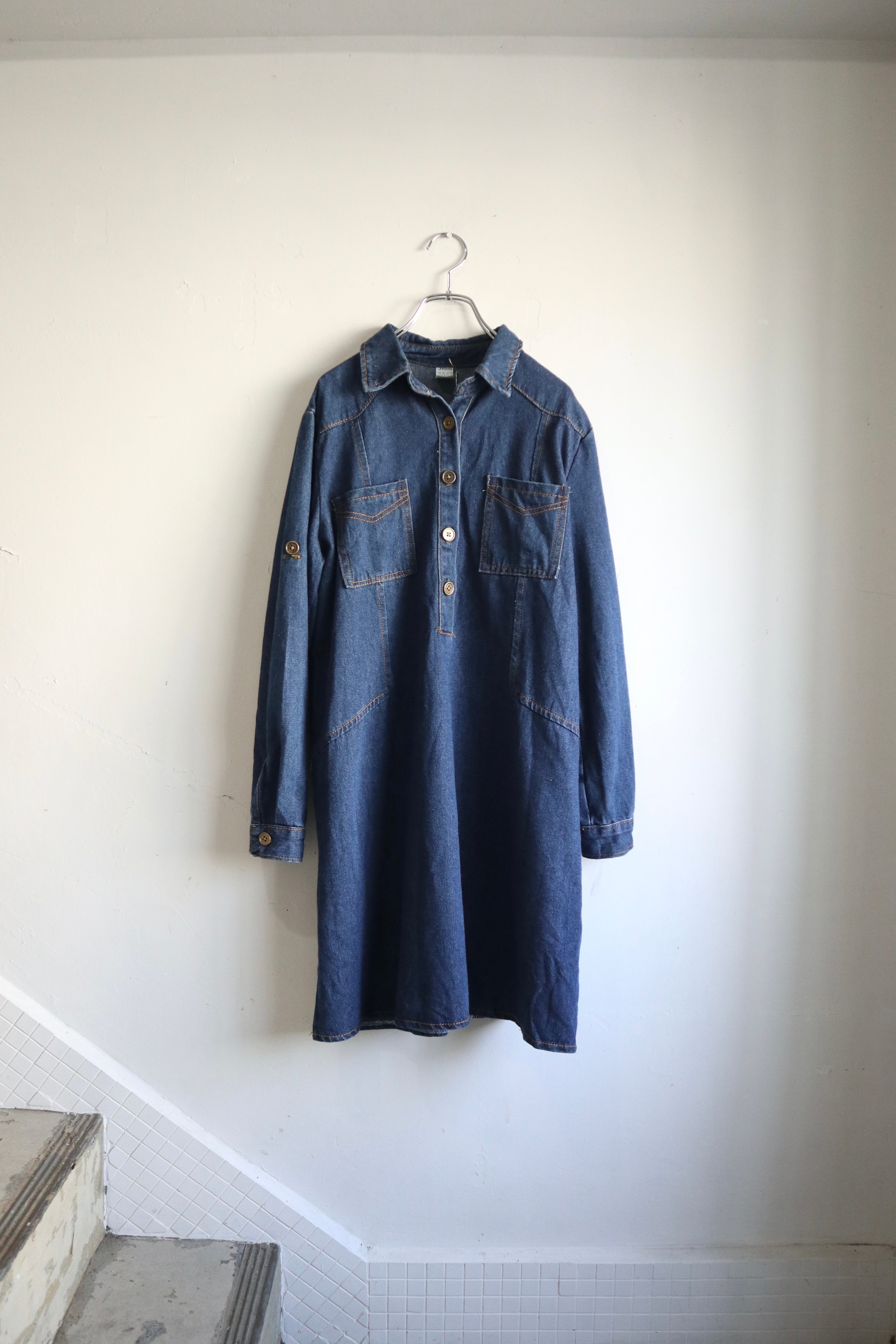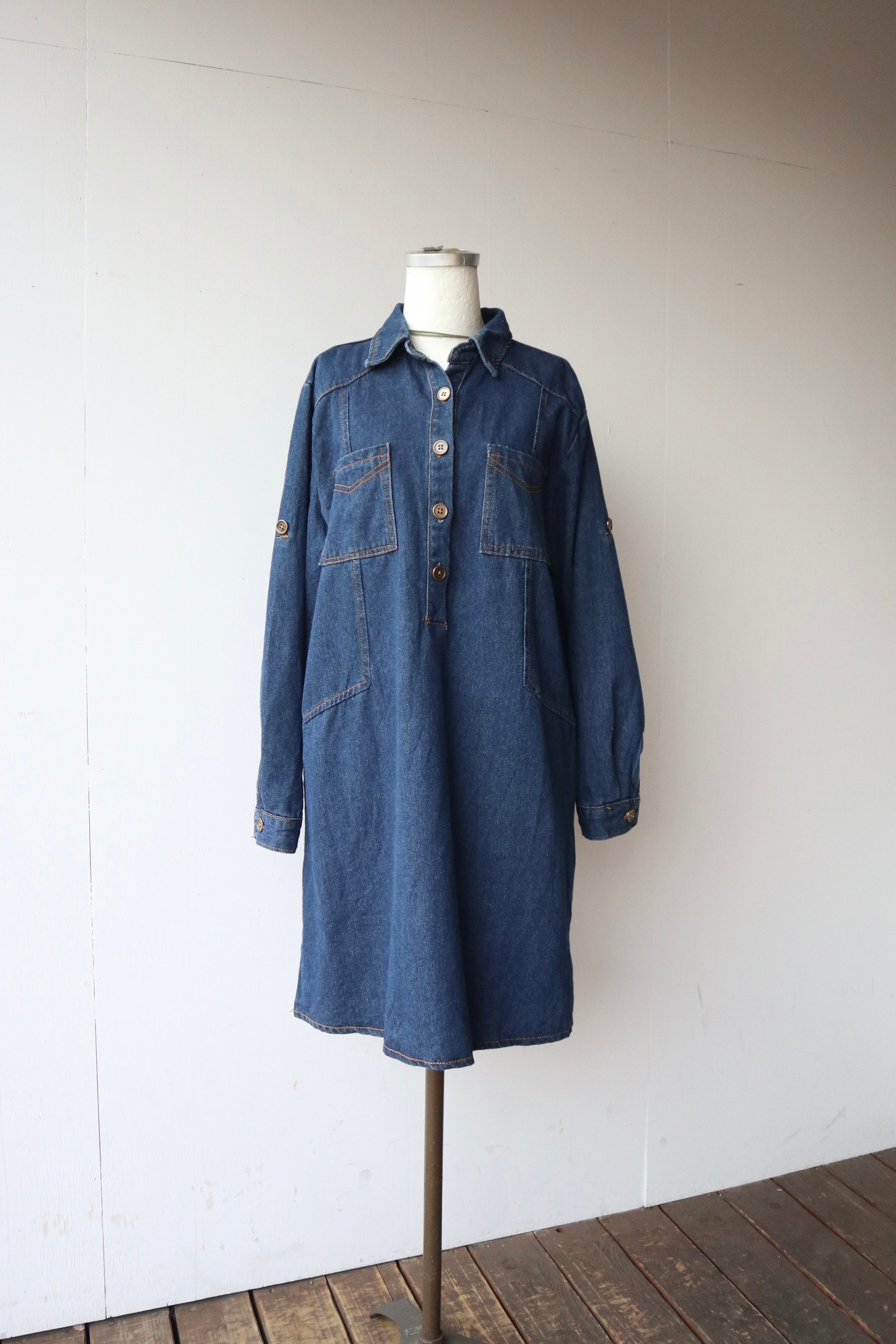 色味の濃いデニムワンピース