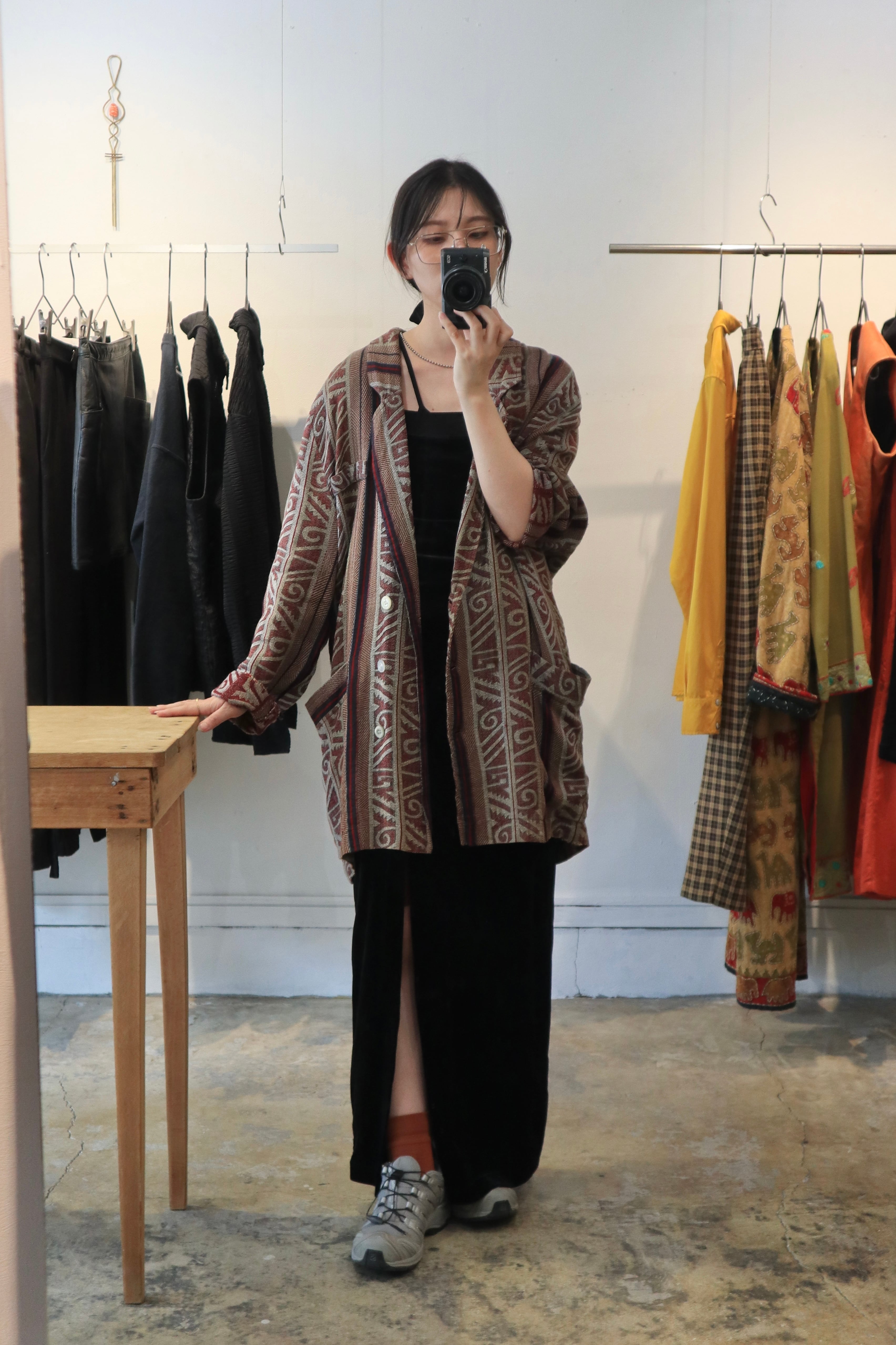 落ち着いたトーンが、いつもの装いにしっとりと馴染みながらも、確かな存在感を放つ一枚です