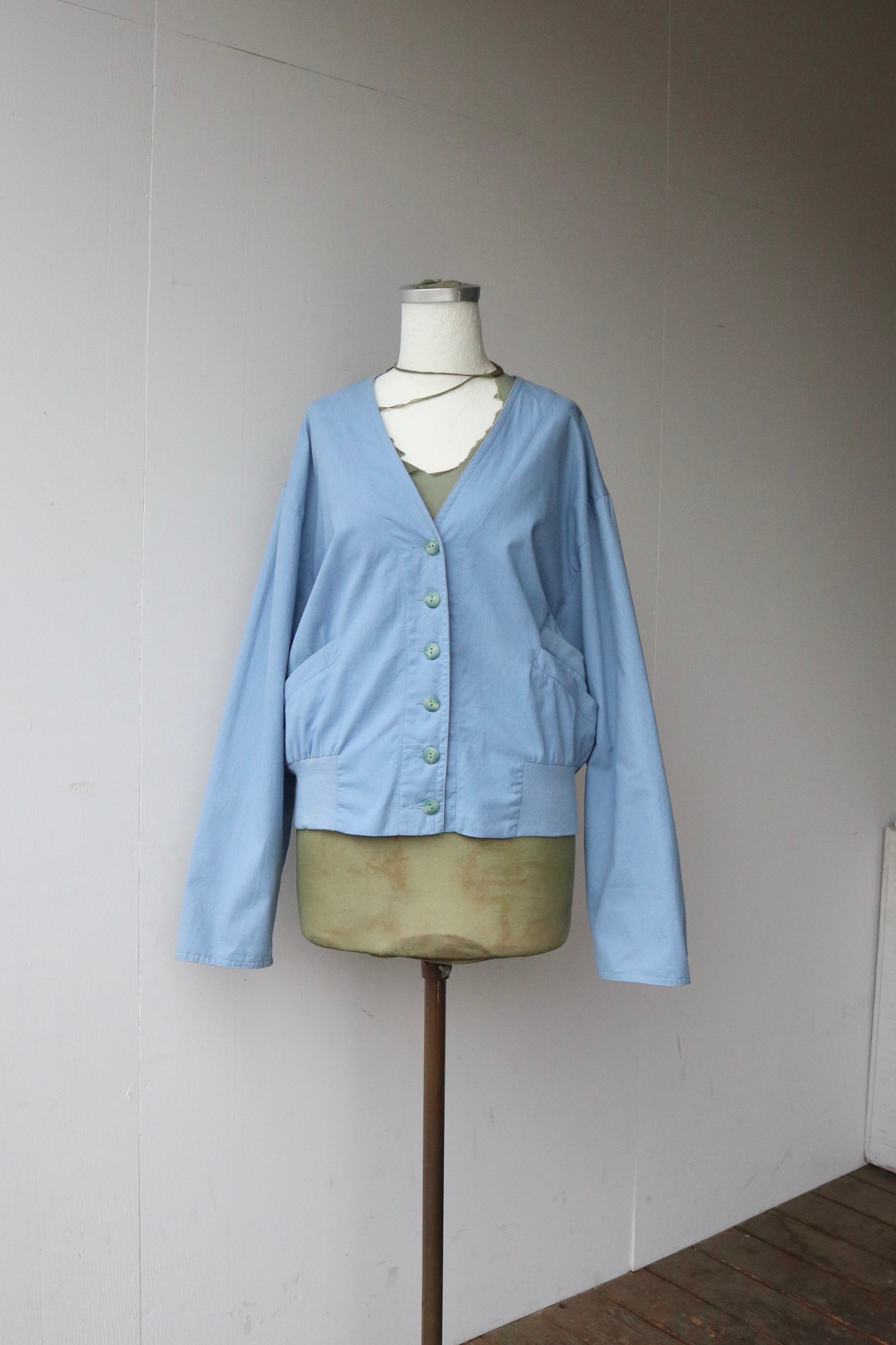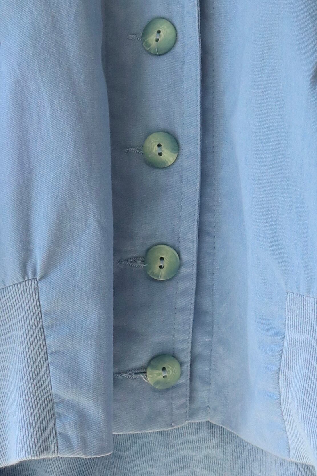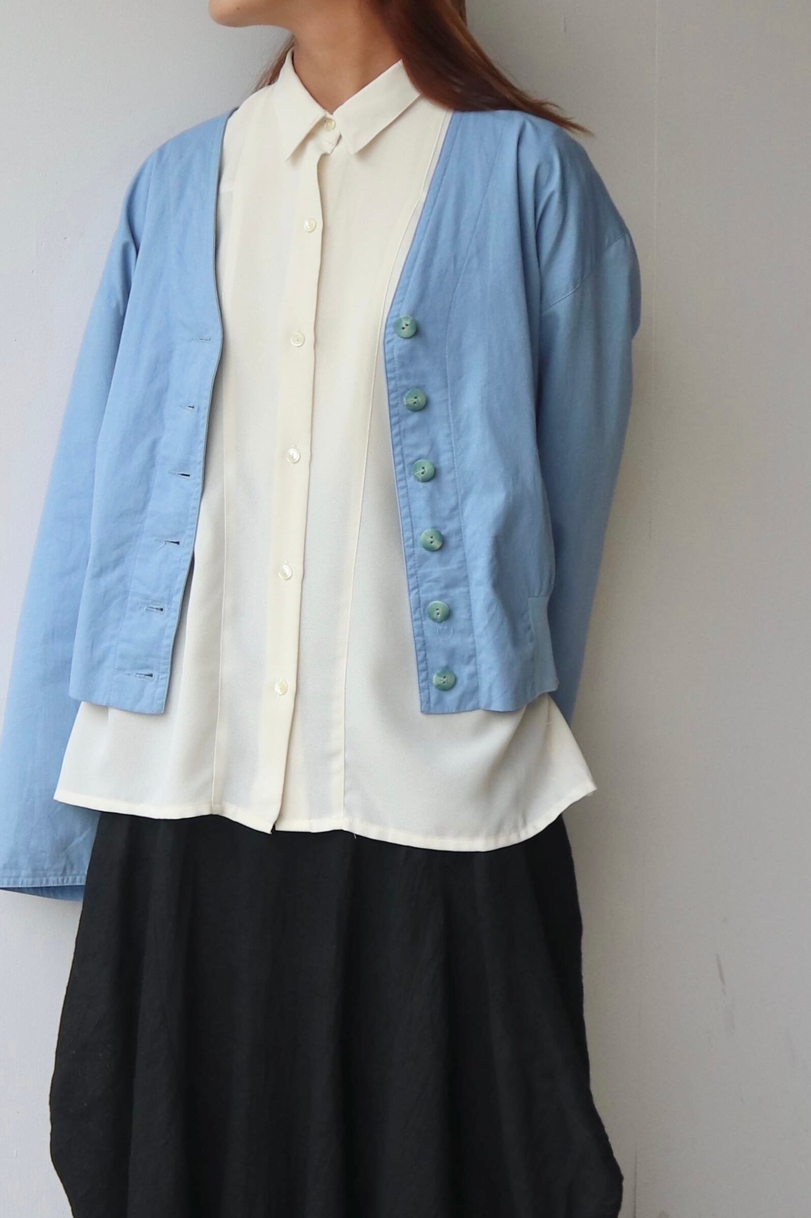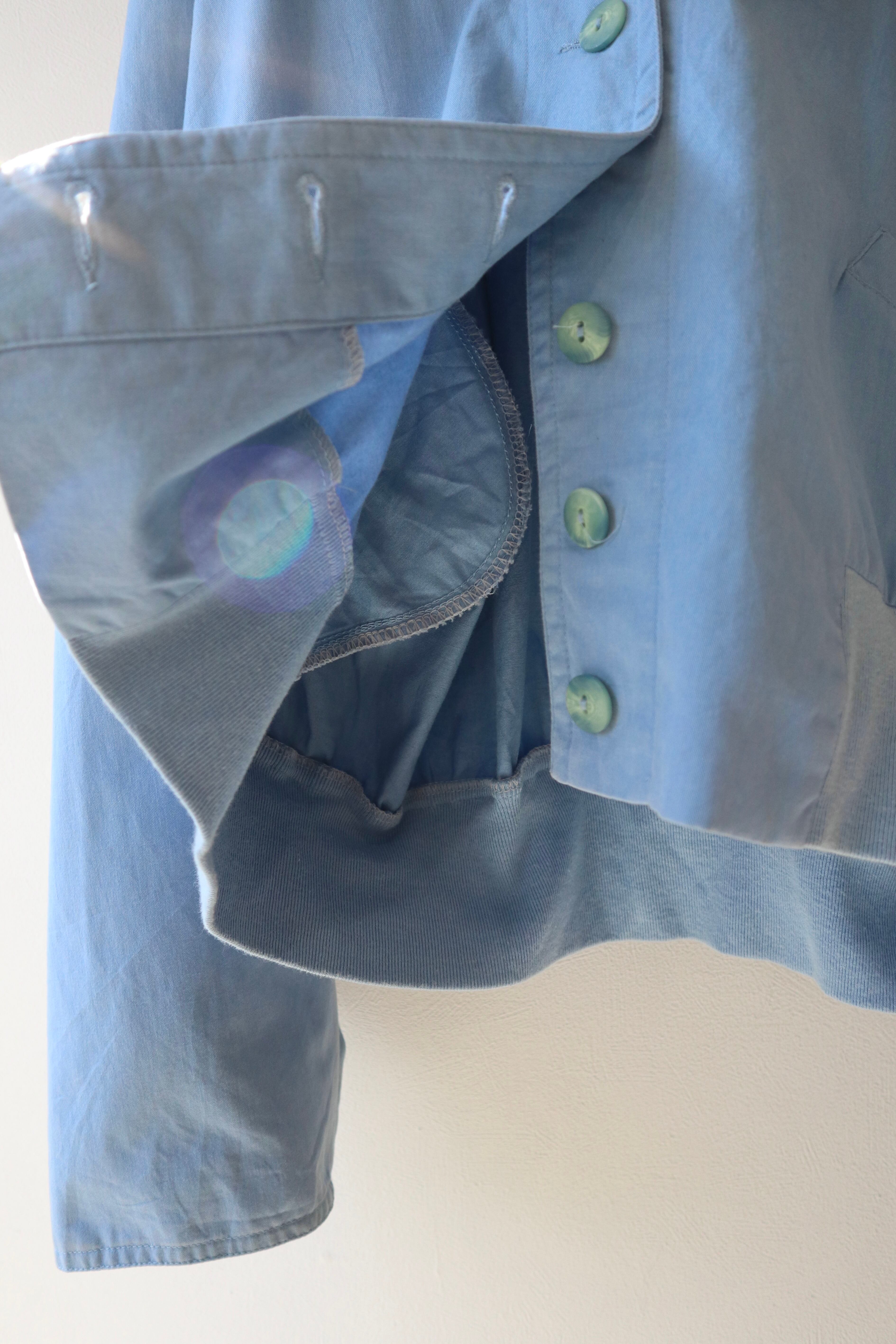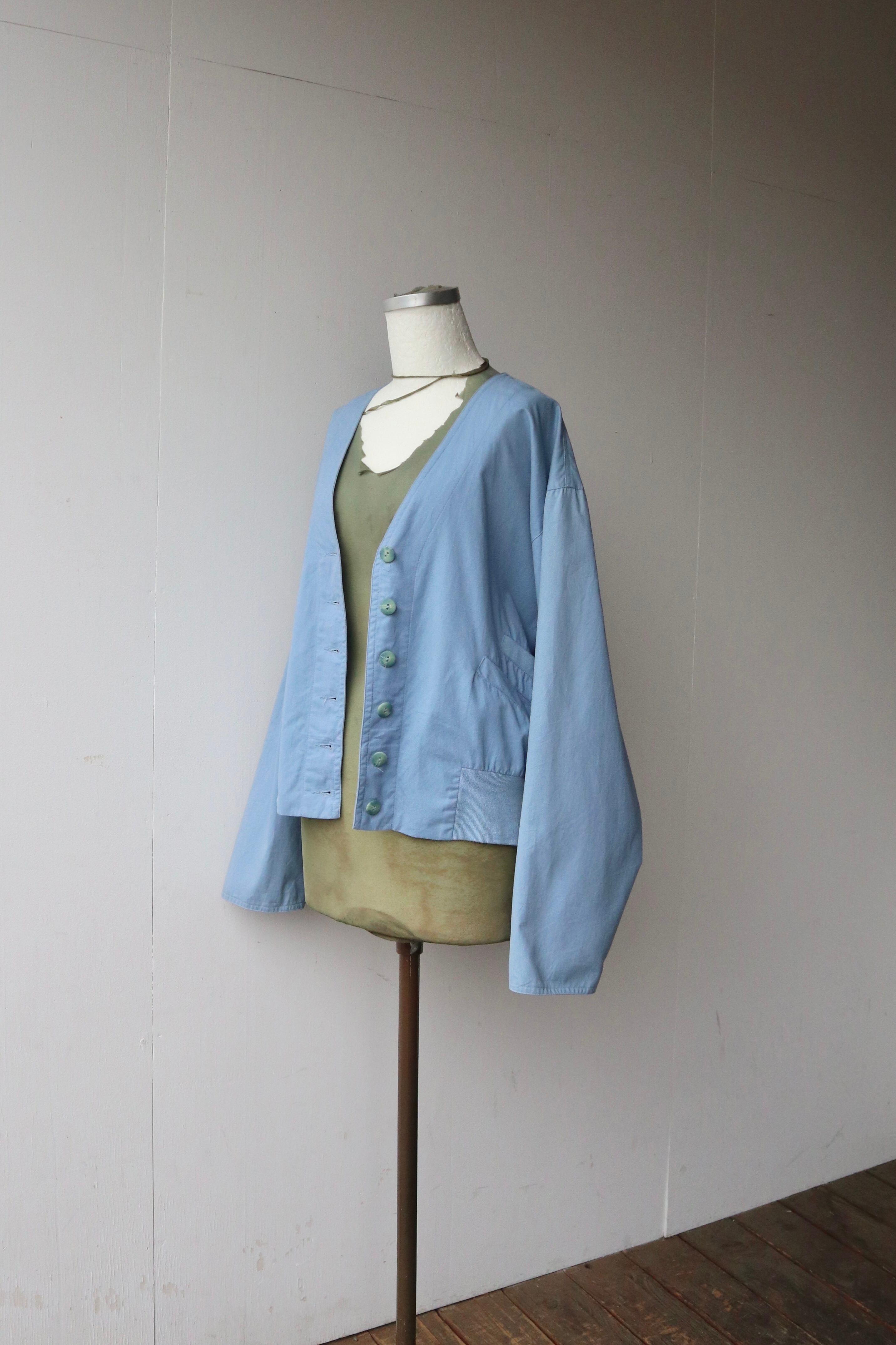 淡いブルーにサラッとしたコットン素材が季節の変わり目に重宝するライトアウター