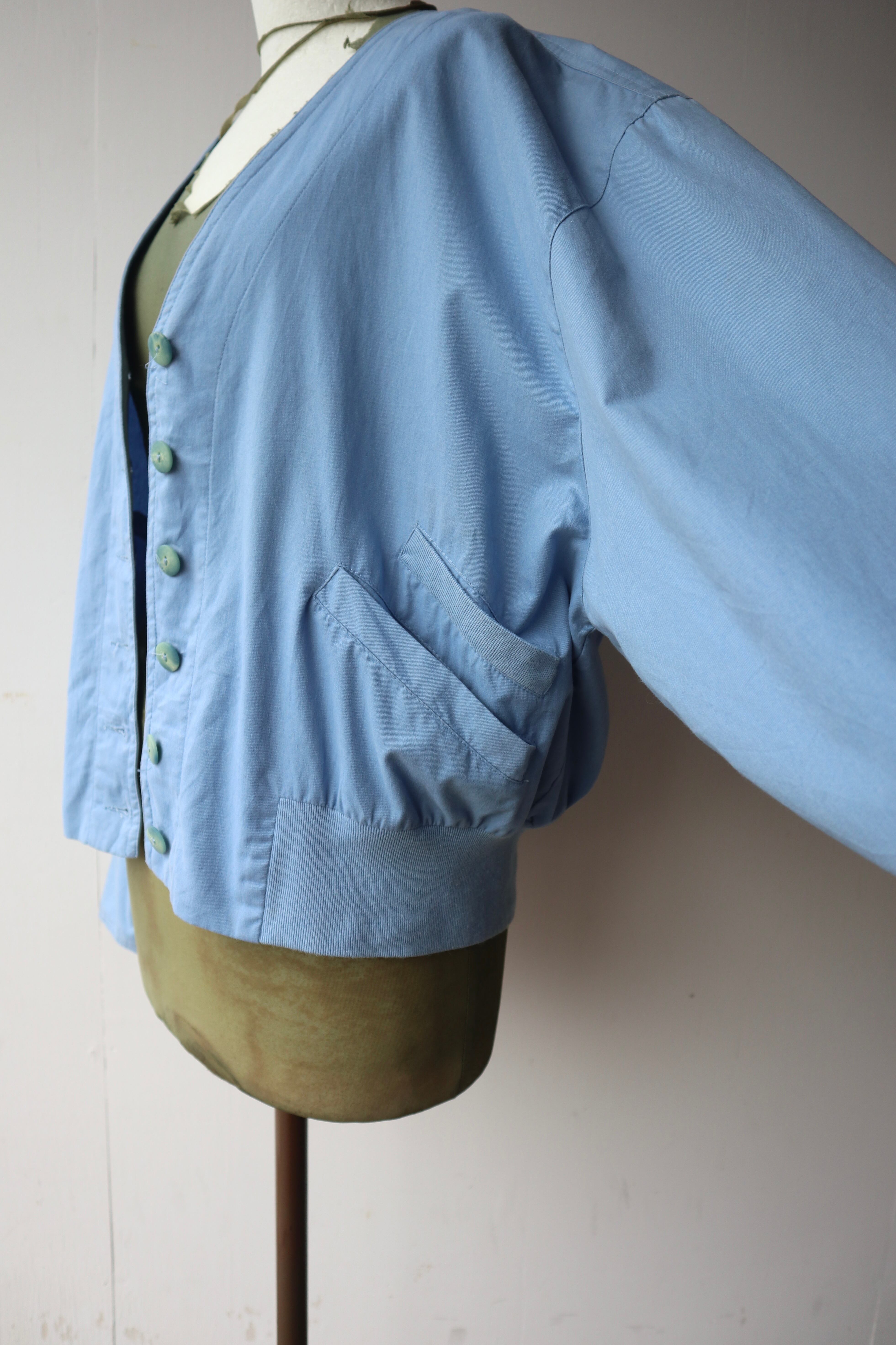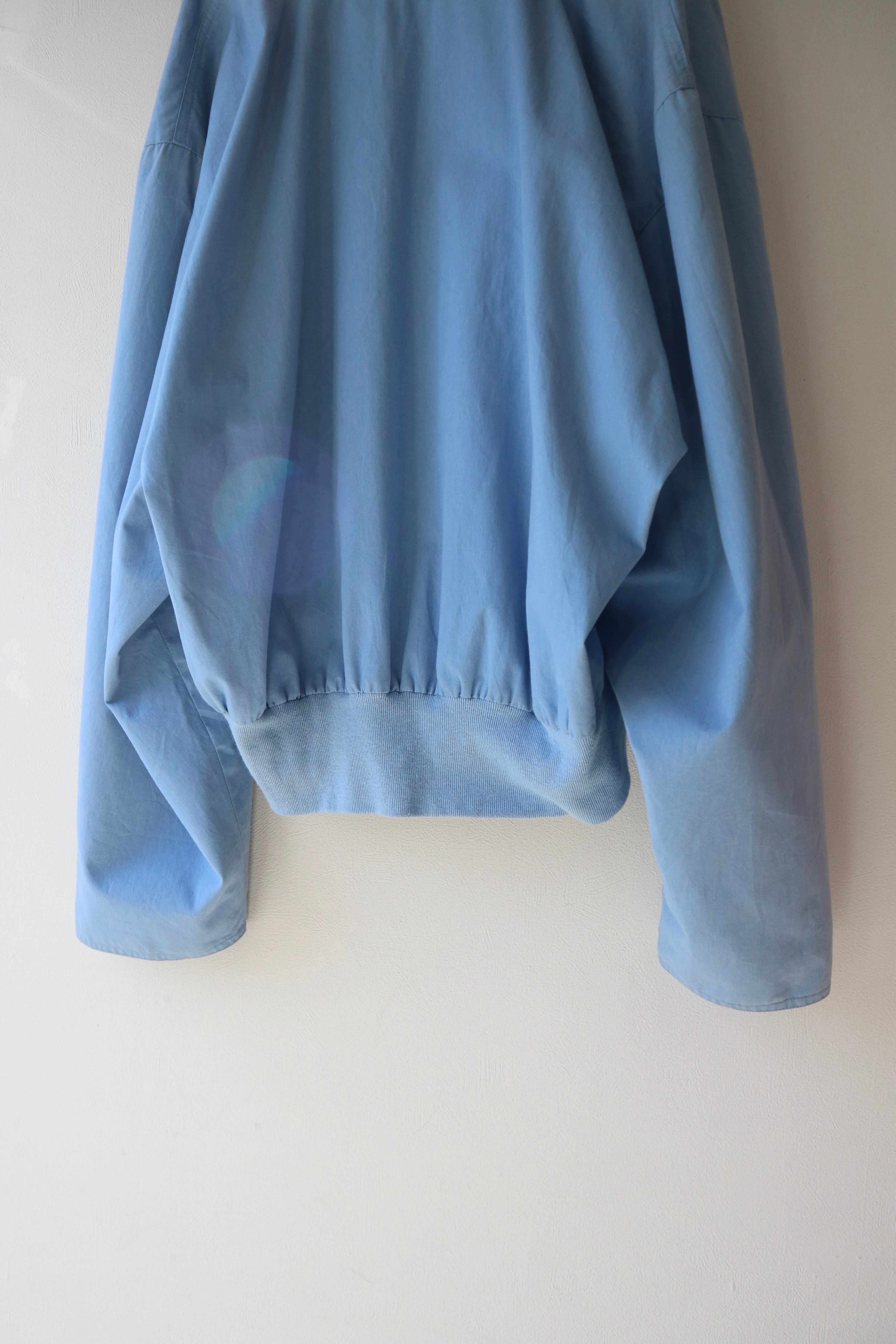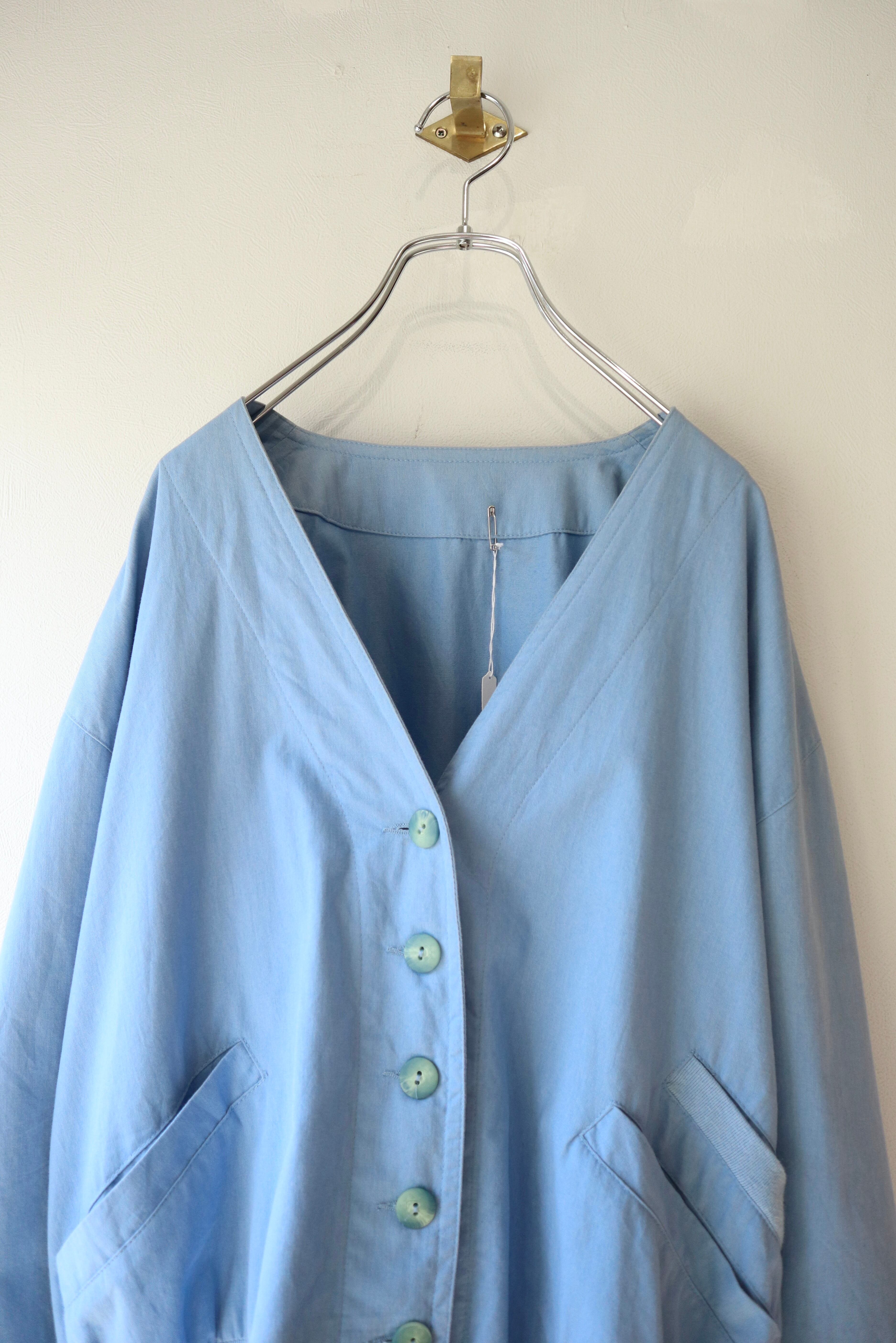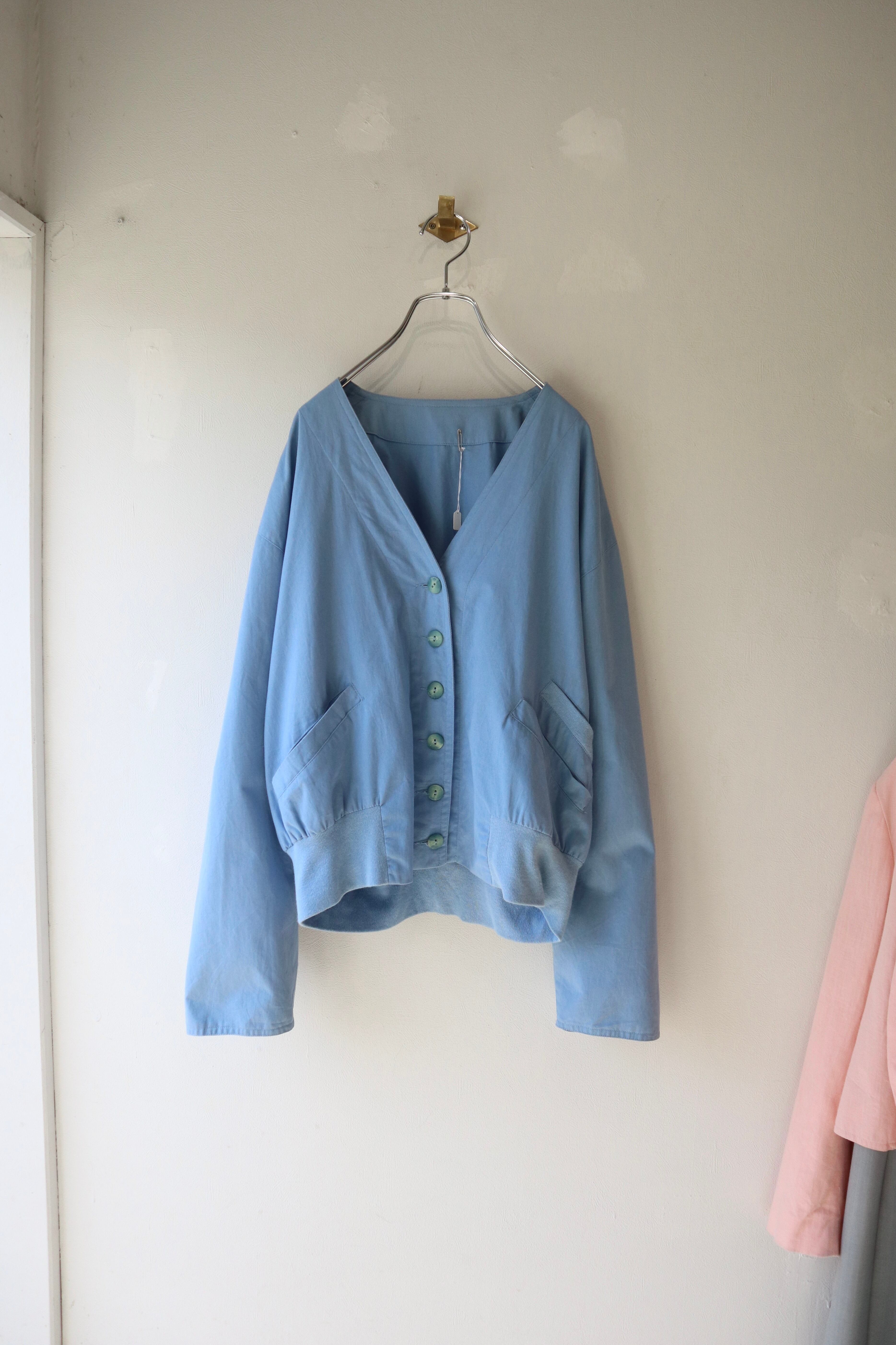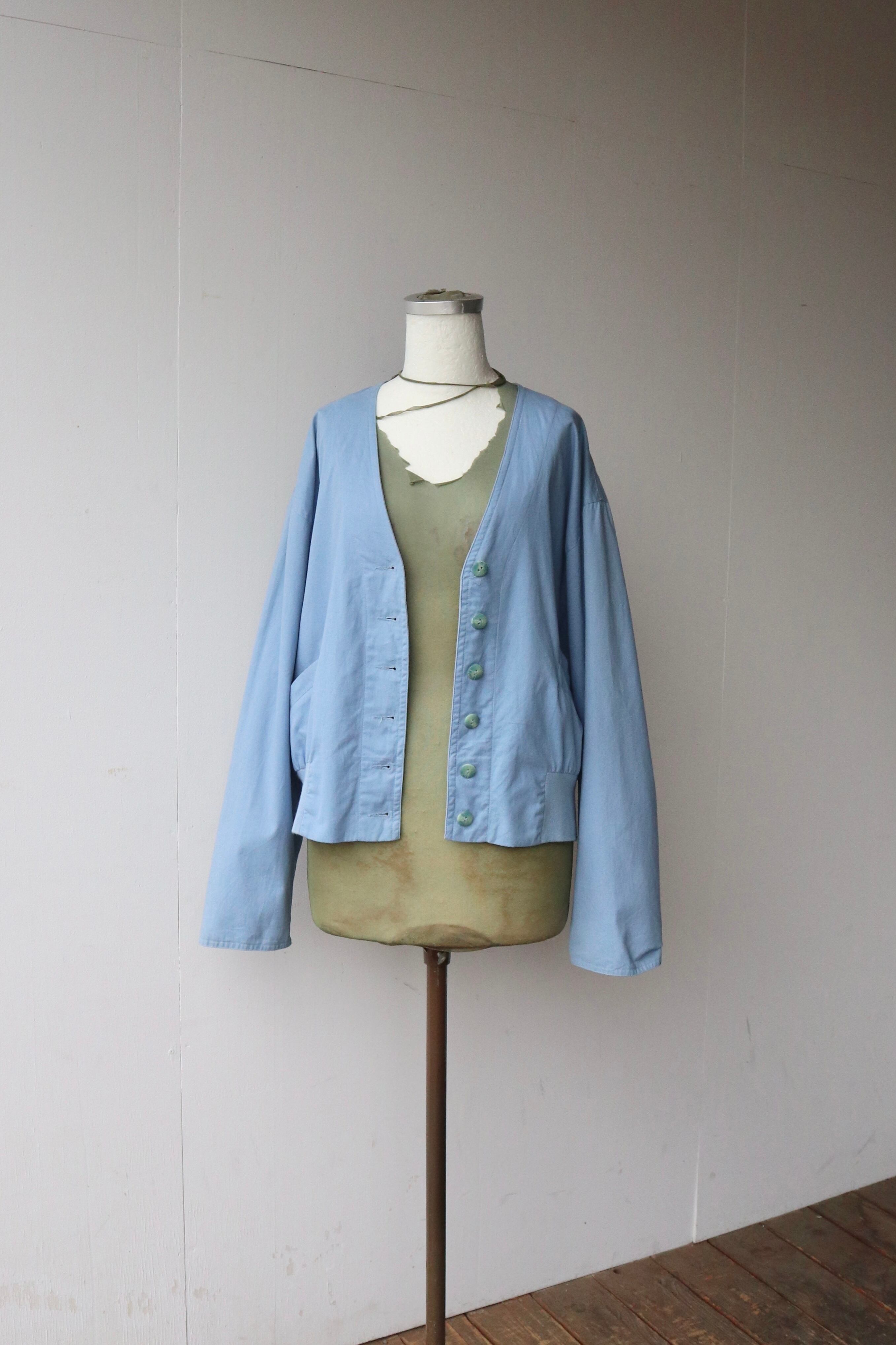淡いブルーにサラッとしたコットン素材が季節の変わり目に重宝するライトアウター
