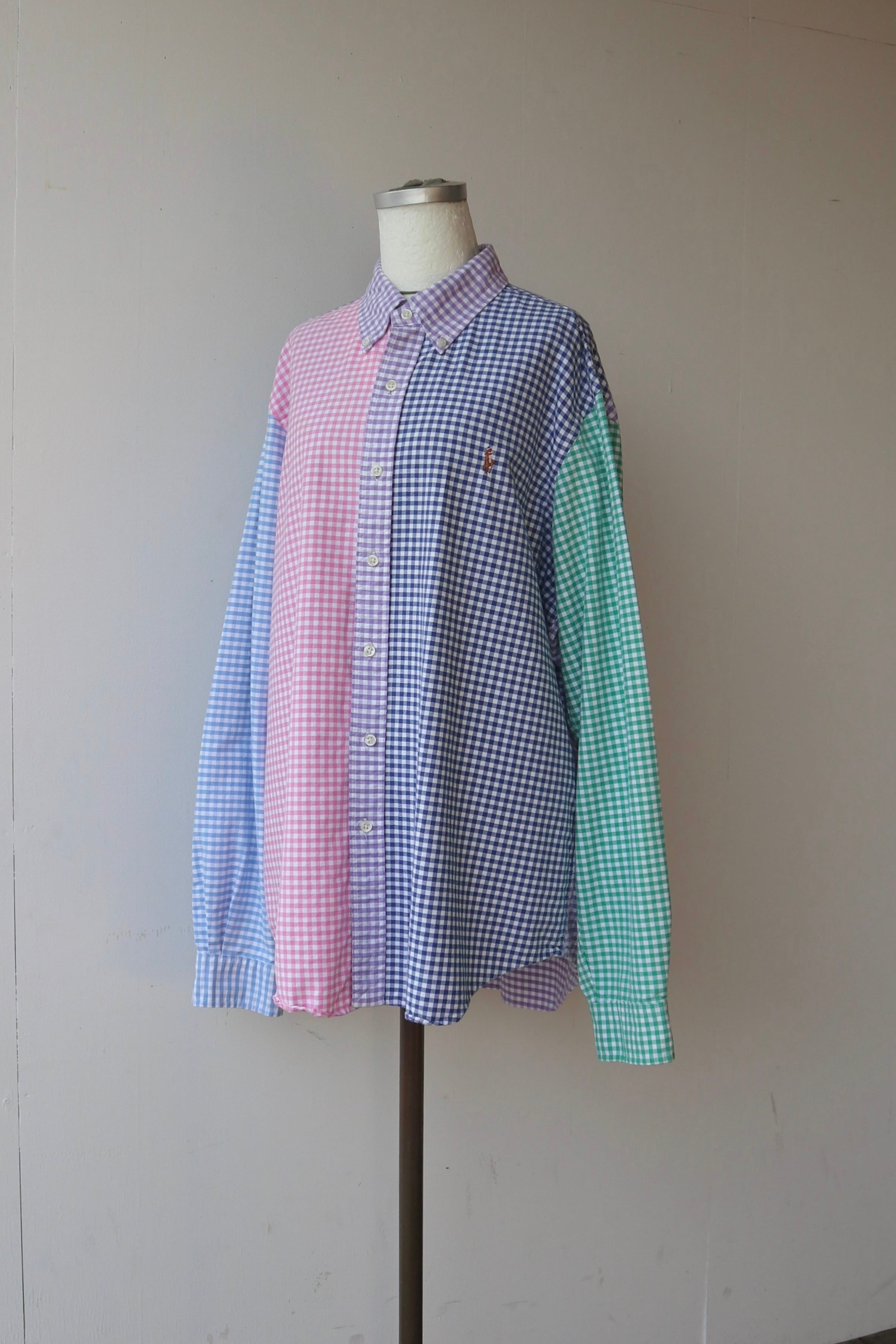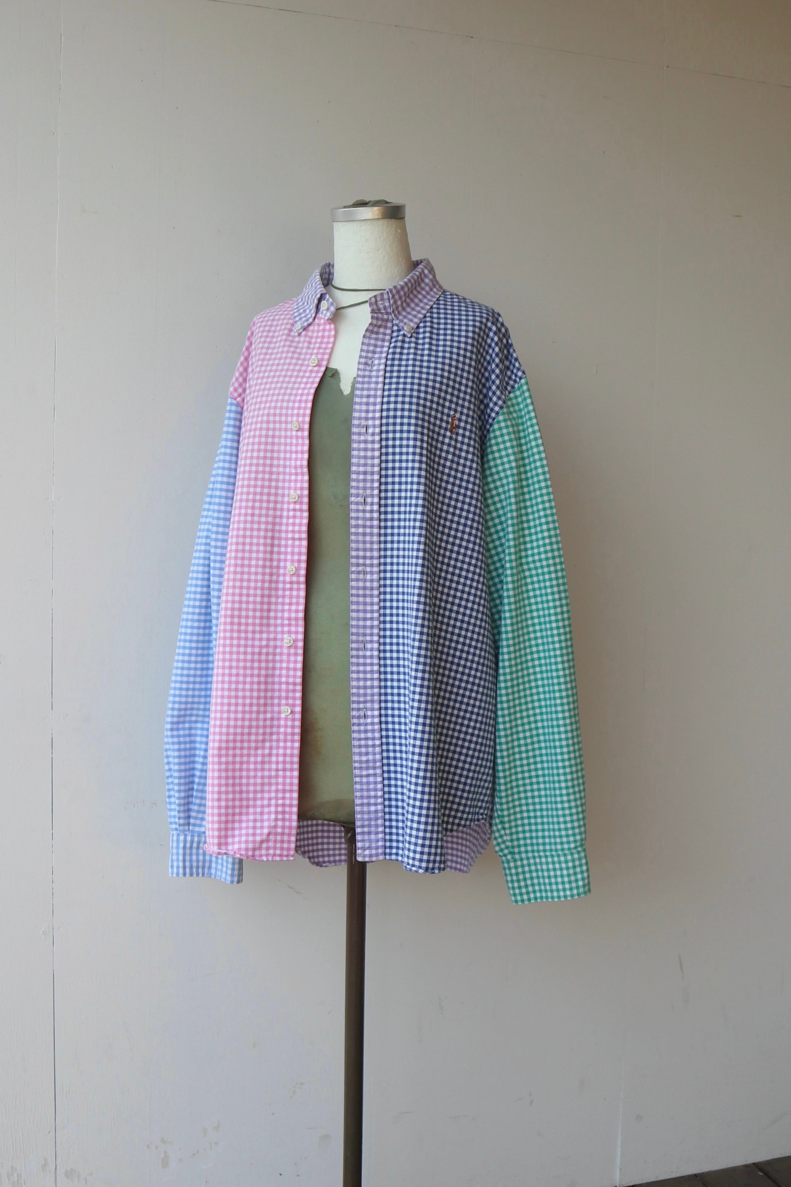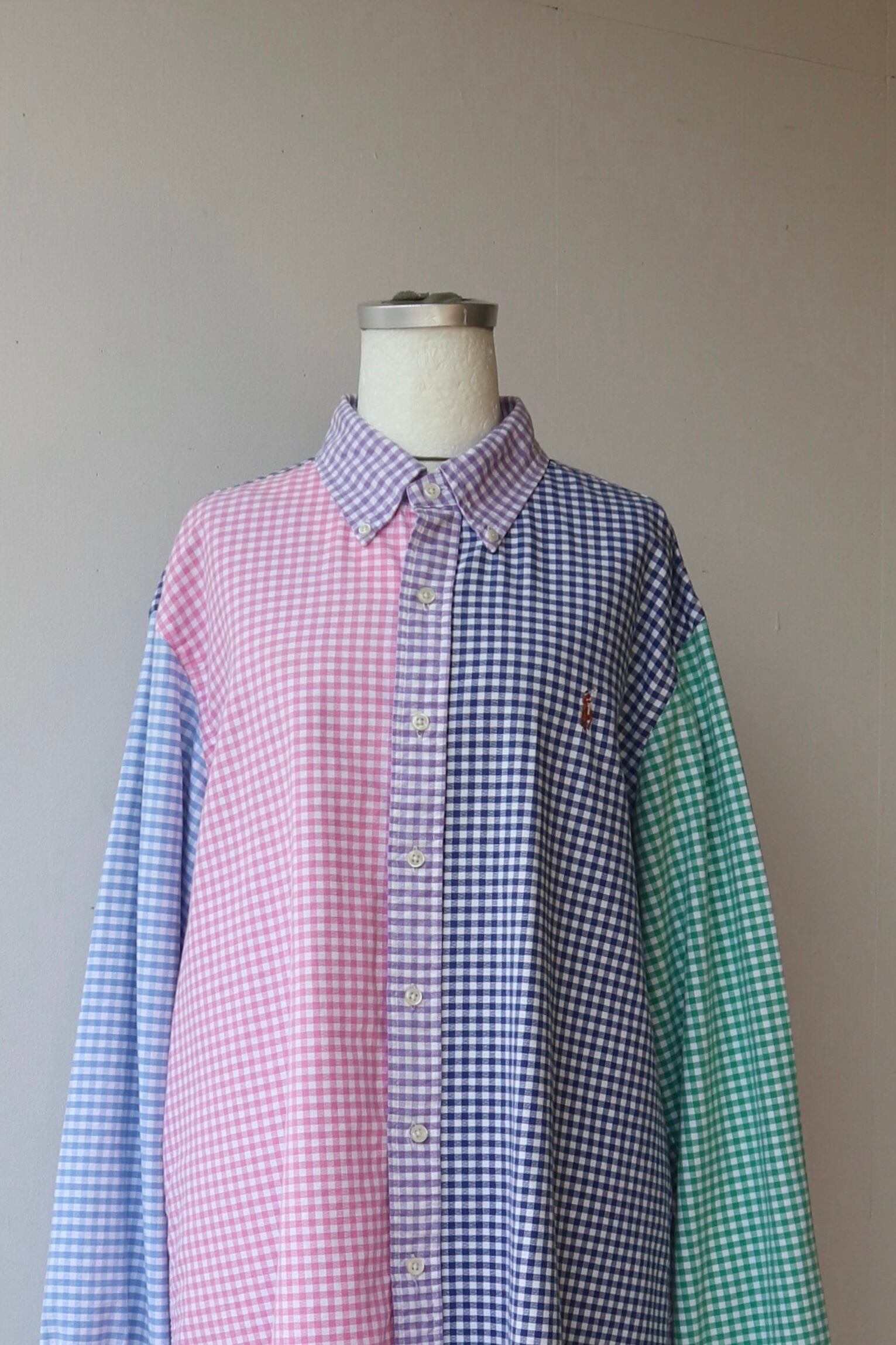 Ralph Laurenのパッチワークのような切り替えデザインが珍しいギンガムチェックシャツ